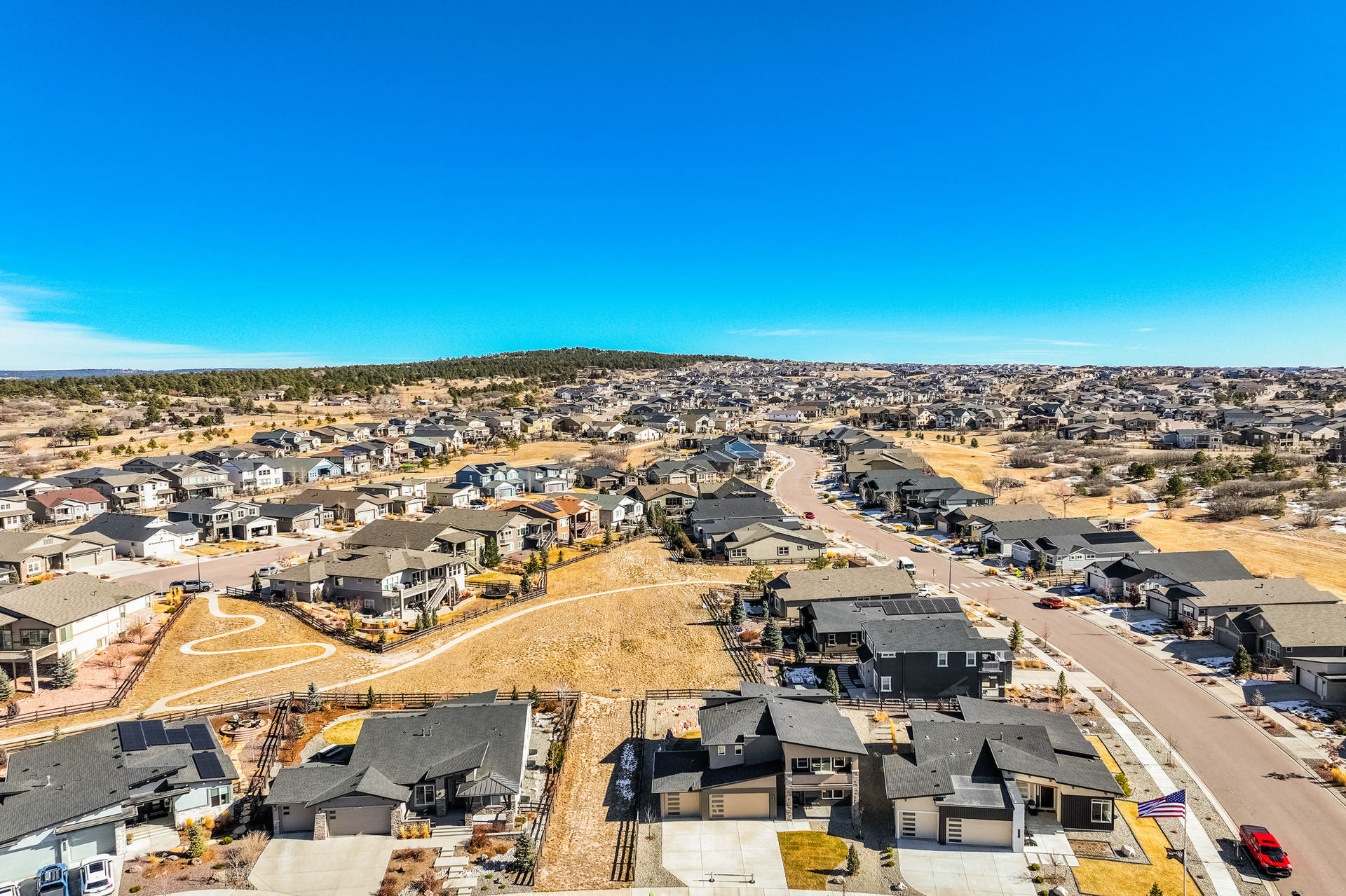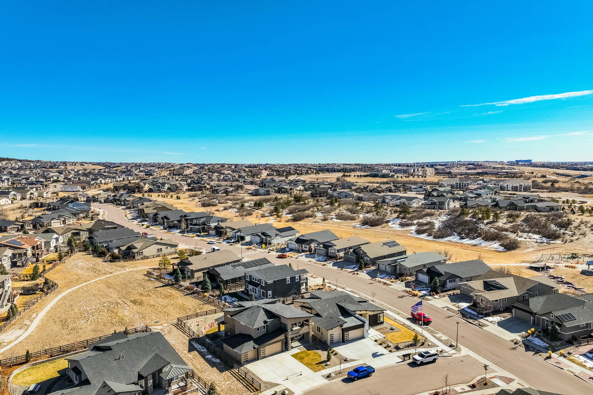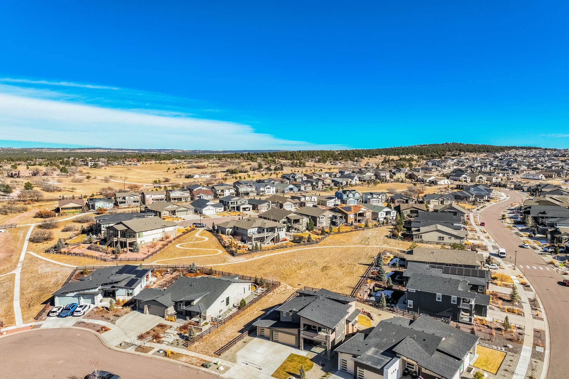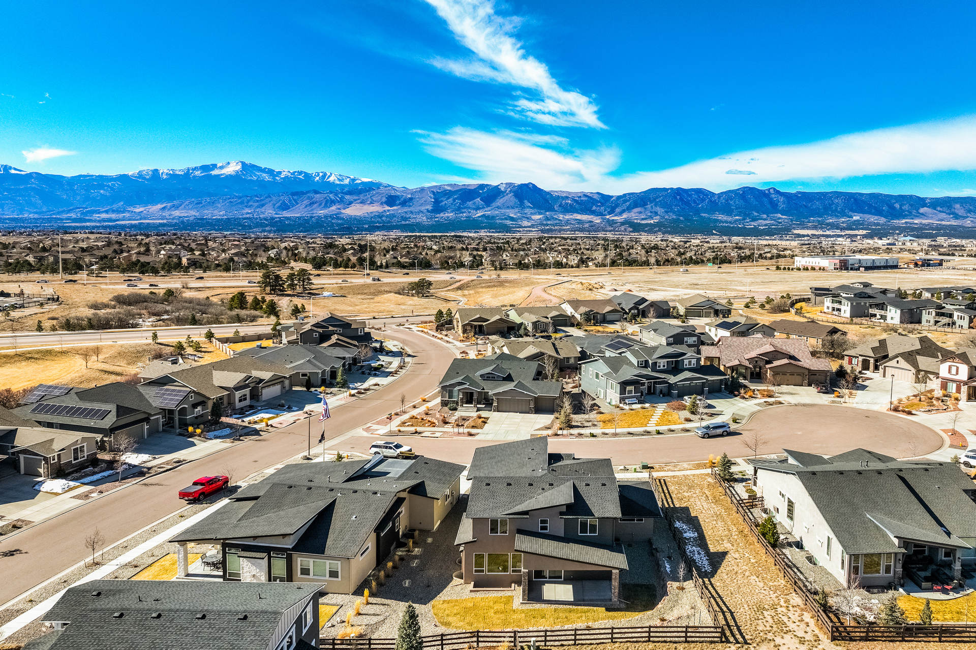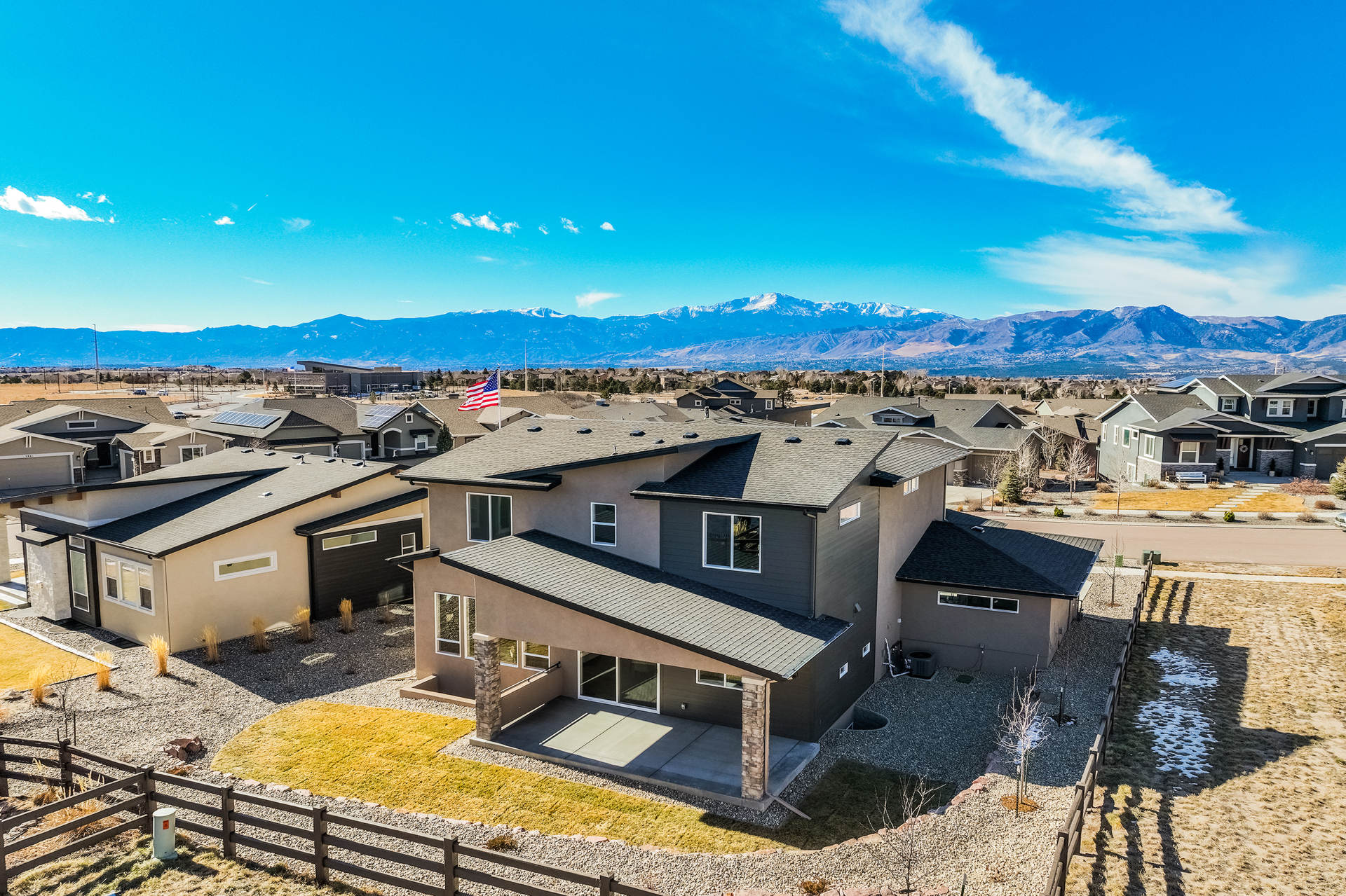 Discover the charm of this stunning two-story residence in the highly coveted Cordera community. Perfectly positioned near Wild Rumpus Park, this home captures awe-inspiring views of Pikes Peak from multiple rooms off the front of the home and abundant open space in the rear, creating a breathtaking backdrop to daily life. With six bedrooms, five bathrooms, and an oversized EZ entry three-car garage, this expansive 4,112-square-foot home offers ample space for relaxation or entertaining. The main floor is beautifully designed with upgraded wood flooring, a light-filled great room, a cozy fireplace for chilly evenings, and a chef’s kitchen featuring high-end appliances, including the refrigerator. Outdoor living spaces are easily accessible, inviting you to enjoy Colorado’s sunny days and crisp evenings. Upstairs, you'll find three bedrooms, including a luxurious primary suite with sweeping views of Pikes Peak, a spa-like bathroom with a wet room including an oversized free-standing tub, dual sinks, a vanity area, and a custom walk-in closet. The upper level also includes a conveniently located laundry room and a thoughtfully designed area for study. The fully finished basement offers two additional bedrooms and bathrooms and features a wet bar, and a large rec room perfect for entertaining. Every detail in this home has been carefully curated, from hand-selected finishes to its functional layout. Spacious bedrooms ensure comfort and privacy for everyone, making this residence both elegant and practical. Experience refined living with this magnificent home, designed for luxury and comfort in an exceptional neighborhood that includes hiking and biking trails, a community center with two pools and a fitness area, and storybook parks throughout the community.