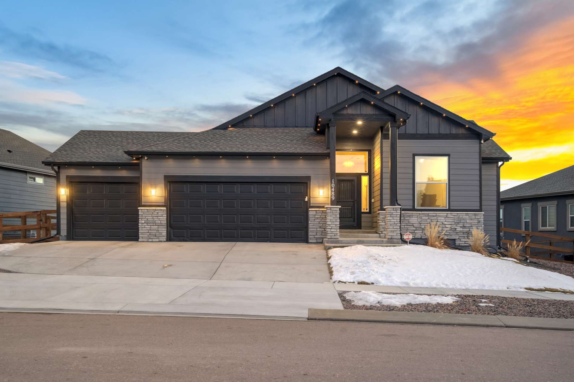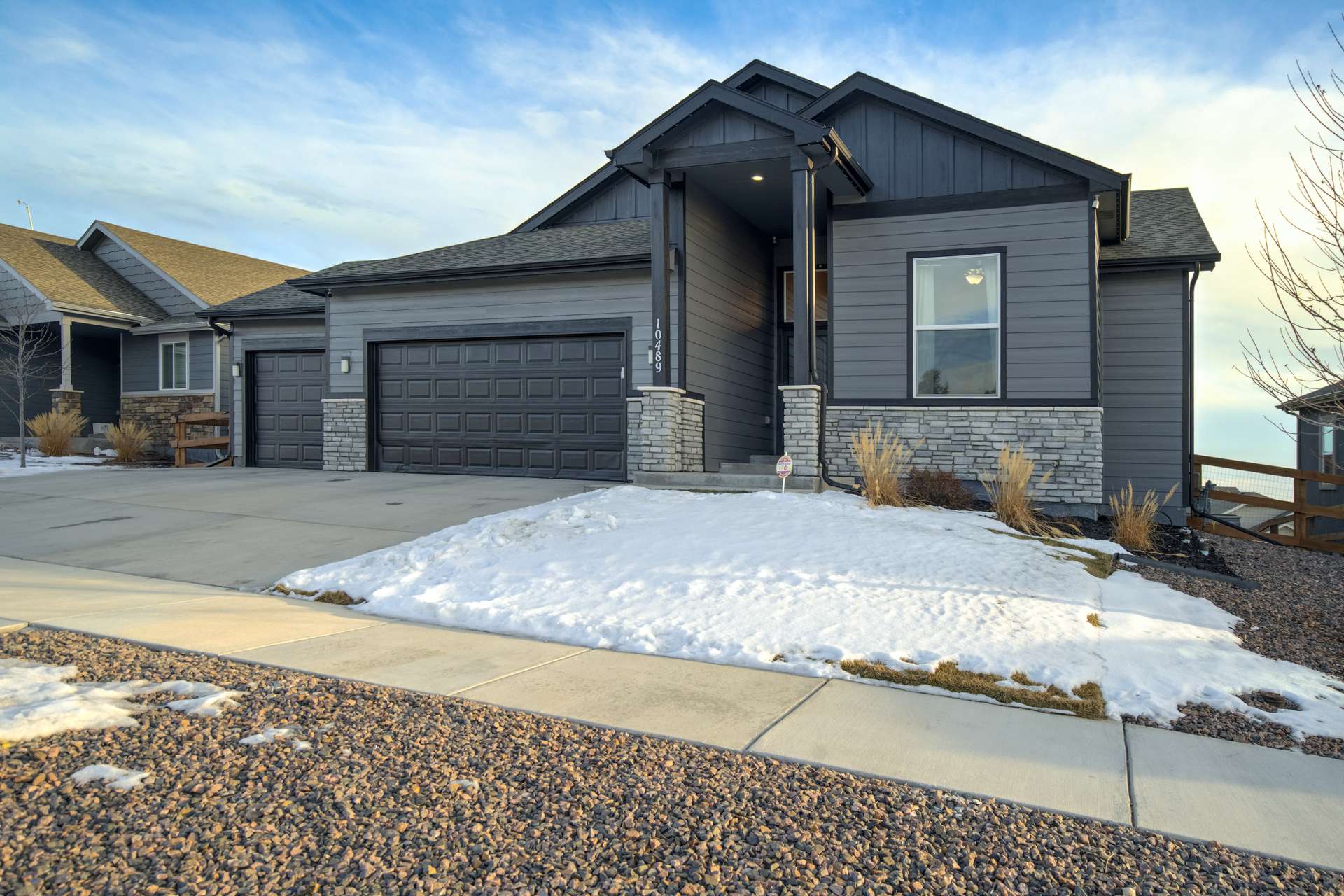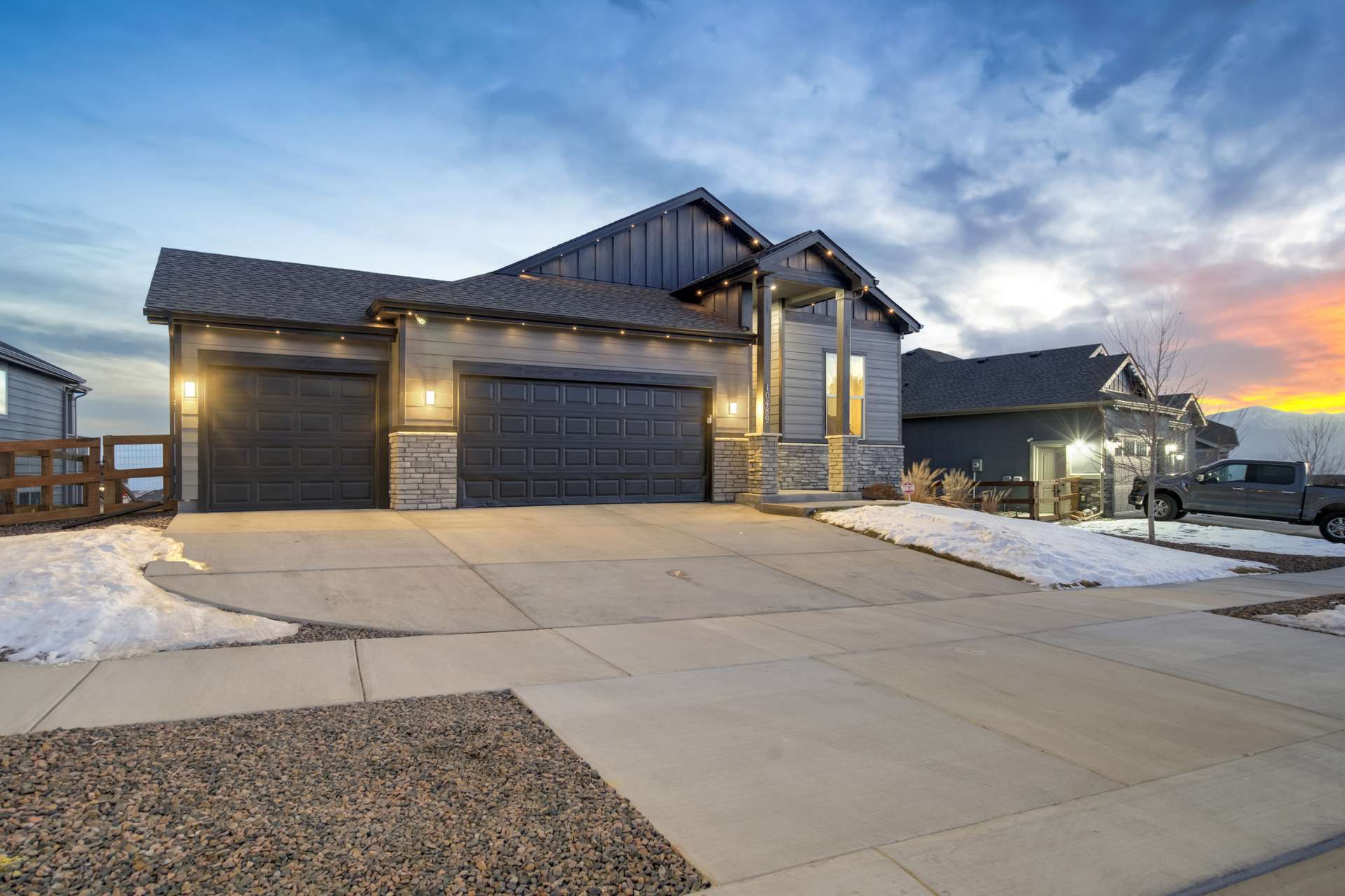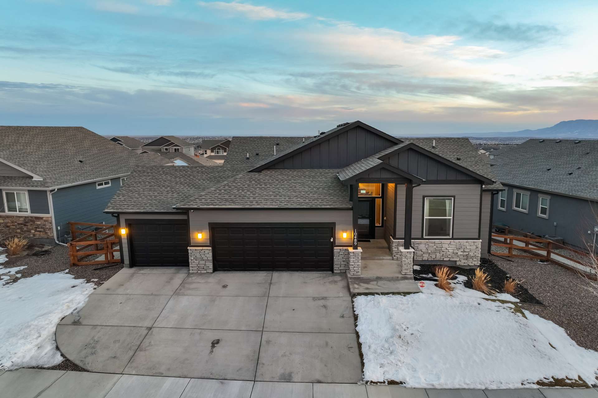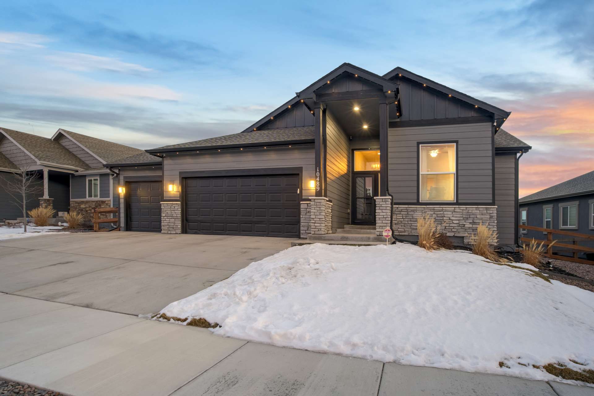 Experience the perfect blend of elevation and elegance in this stunning 6-bedroom, 3-bathroom residence. Situated to capture breathtaking mountain views, this home offers a sophisticated open-concept layout defined by vaulted ceilings and rich hardwood flooring that flows through the kitchen, dining, and great room. The heart of the home is a chef-inspired kitchen featuring 42-inch upper cabinets, granite countertops, and an island with a breakfast bar. Stainless steel appliances, a stylish tile backsplash, and a dedicated beverage fridge make this space as functional as it is beautiful. The main level is designed for convenience, anchored by a spacious great room with recessed lighting and a lighted ceiling fan. The primary suite serves as a private retreat, boasting vaulted ceilings and a luxurious 5-piece ensuite bath. In the primary bath, discover a large walk-in closet with a built-in vanity. Two additional bedrooms, a full ceramic-tiled bathroom, and a main-level laundry room provide effortless accessibility, while iron spindle rails add a touch of modern craftsmanship. The expansive walkout basement significantly increases your living space. This open, airy lower level features a massive recreation room, three bedrooms, and a full bathroom. The dry bar area, equipped with its own beverage fridge, creates the ultimate setting for entertaining. Step outside through the walkout to enjoy the Colorado sunshine in a backyard designed with low-maintenance landscaping, allowing more time to soak in the scenery. Complete with a 3-car attached garage and ample storage, this home balances grand scale with intimate details. From the recessed lighting to the premium finishes, every inch has been curated for a high-quality lifestyle. Whether you are enjoying a quiet morning overlooking the peaks or hosting in the light-filled basement, this home provides the versatility you’ve been searching for.