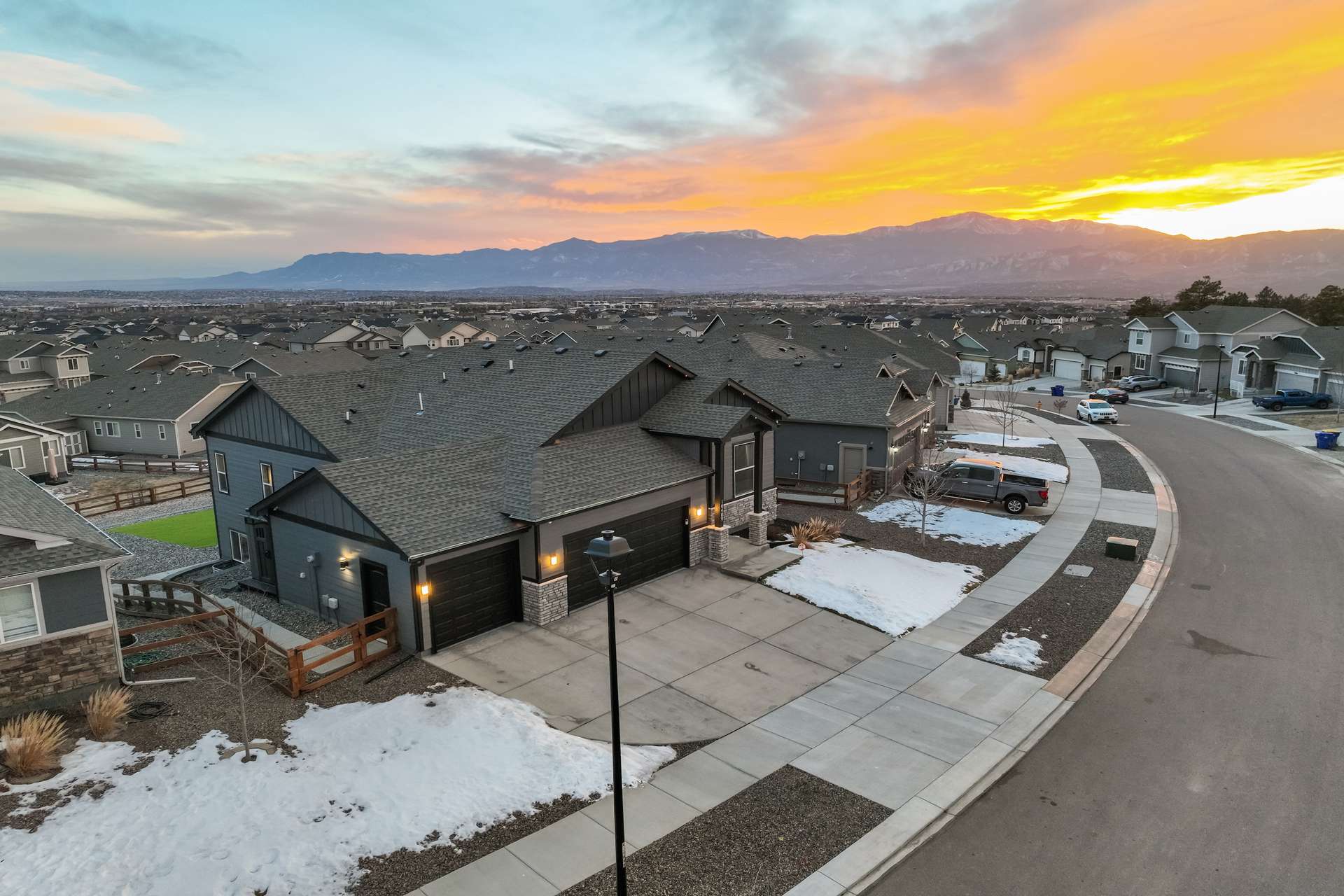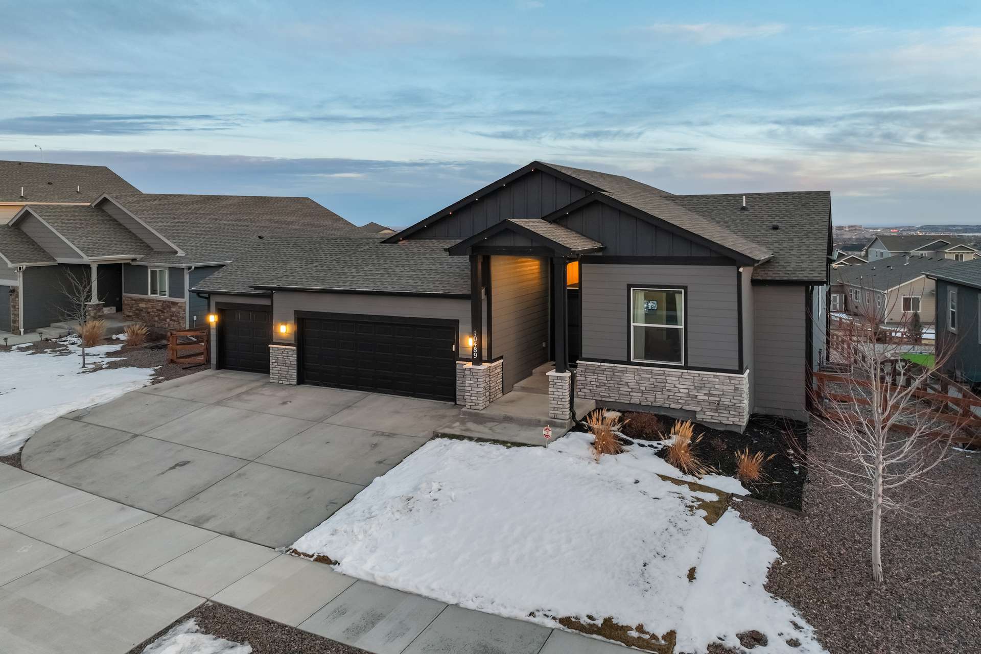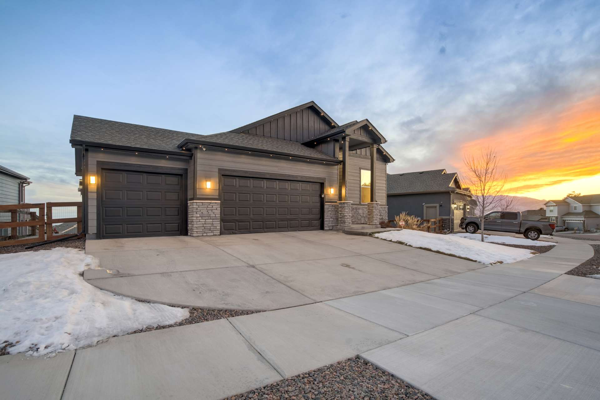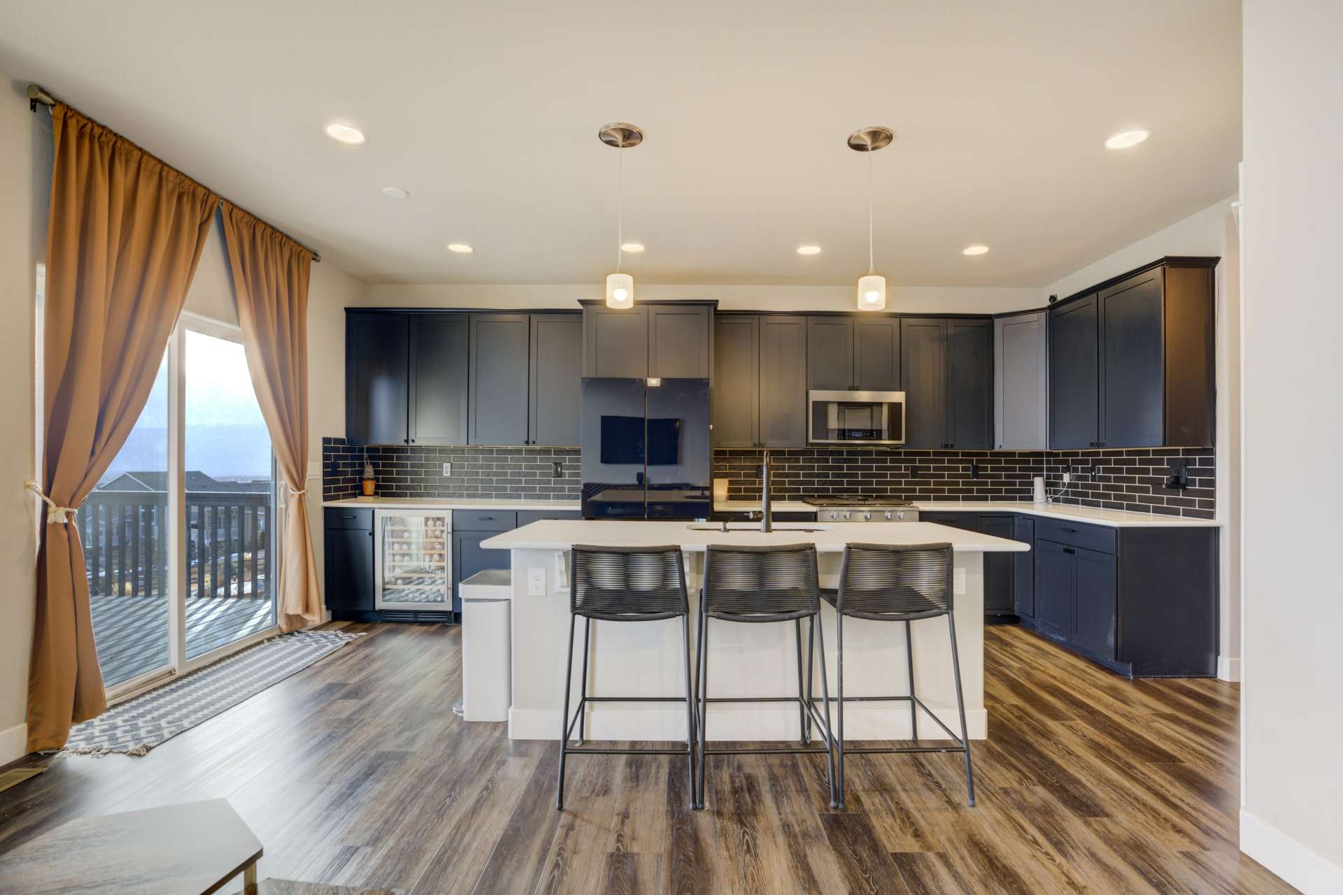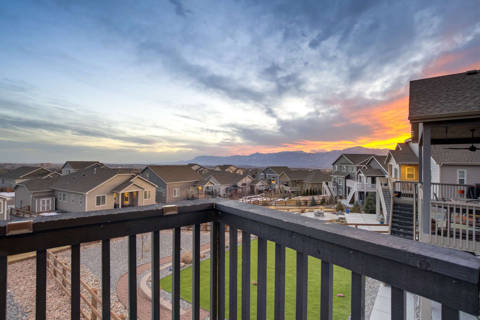Experience the perfect blend of elevation and elegance in this stunning 6-bedroom, 3-bathroom residence. Situated to capture breathtaking mountain views, this home offers a sophisticated open-concept layout defined by vaulted ceilings and rich hardwood flooring that flows through the kitchen, dining, and great room. The heart of the home is a chef-inspired kitchen featuring 42-inch upper cabinets, granite countertops, and an island with a breakfast bar. Stainless steel appliances, a stylish tile backsplash, and a dedicated beverage fridge make this space as functional as it is beautiful. The main level is designed for convenience, anchored by a spacious great room with recessed lighting and a lighted ceiling fan. The primary suite serves as a private retreat, boasting vaulted ceilings and a luxurious 5-piece ensuite bath. In the primary bath, discover a large walk-in closet with a built-in vanity. Two additional bedrooms, a full ceramic-tiled bathroom, and a main-level laundry room provide effortless accessibility, while iron spindle rails add a touch of modern craftsmanship. The expansive walkout basement significantly increases your living space. This open, airy lower level features a massive recreation room, three bedrooms, and a full bathroom. The dry bar area, equipped with its own beverage fridge, creates the ultimate setting for entertaining. Step outside through the walkout to enjoy the Colorado sunshine in a backyard designed with low-maintenance landscaping, allowing more time to soak in the scenery. Complete with a 3-car attached garage and ample storage, this home balances grand scale with intimate details. From the recessed lighting to the premium finishes, every inch has been curated for a high-quality lifestyle. Whether you are enjoying a quiet morning overlooking the peaks or hosting in the light-filled basement, this home provides the versatility you’ve been searching for.