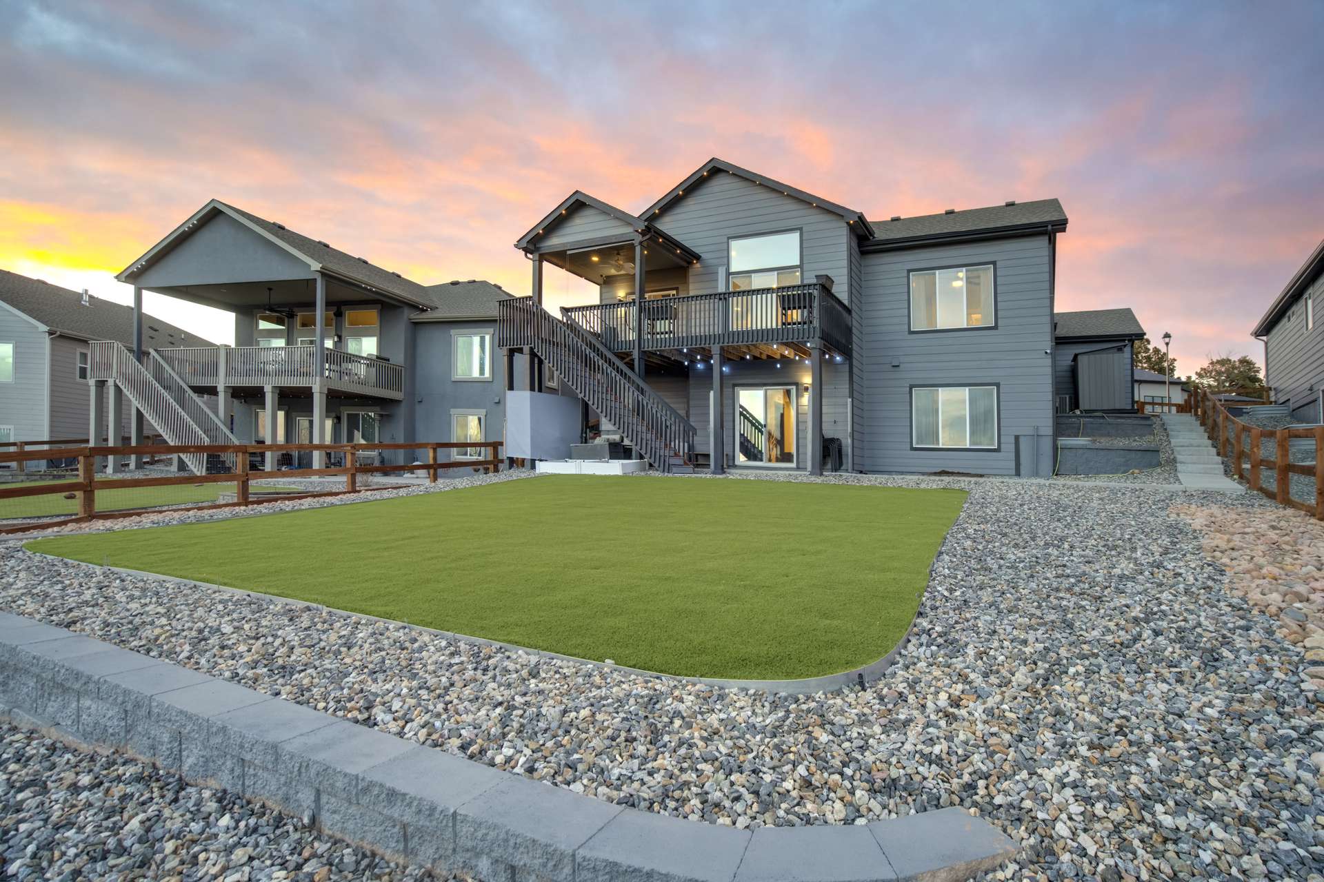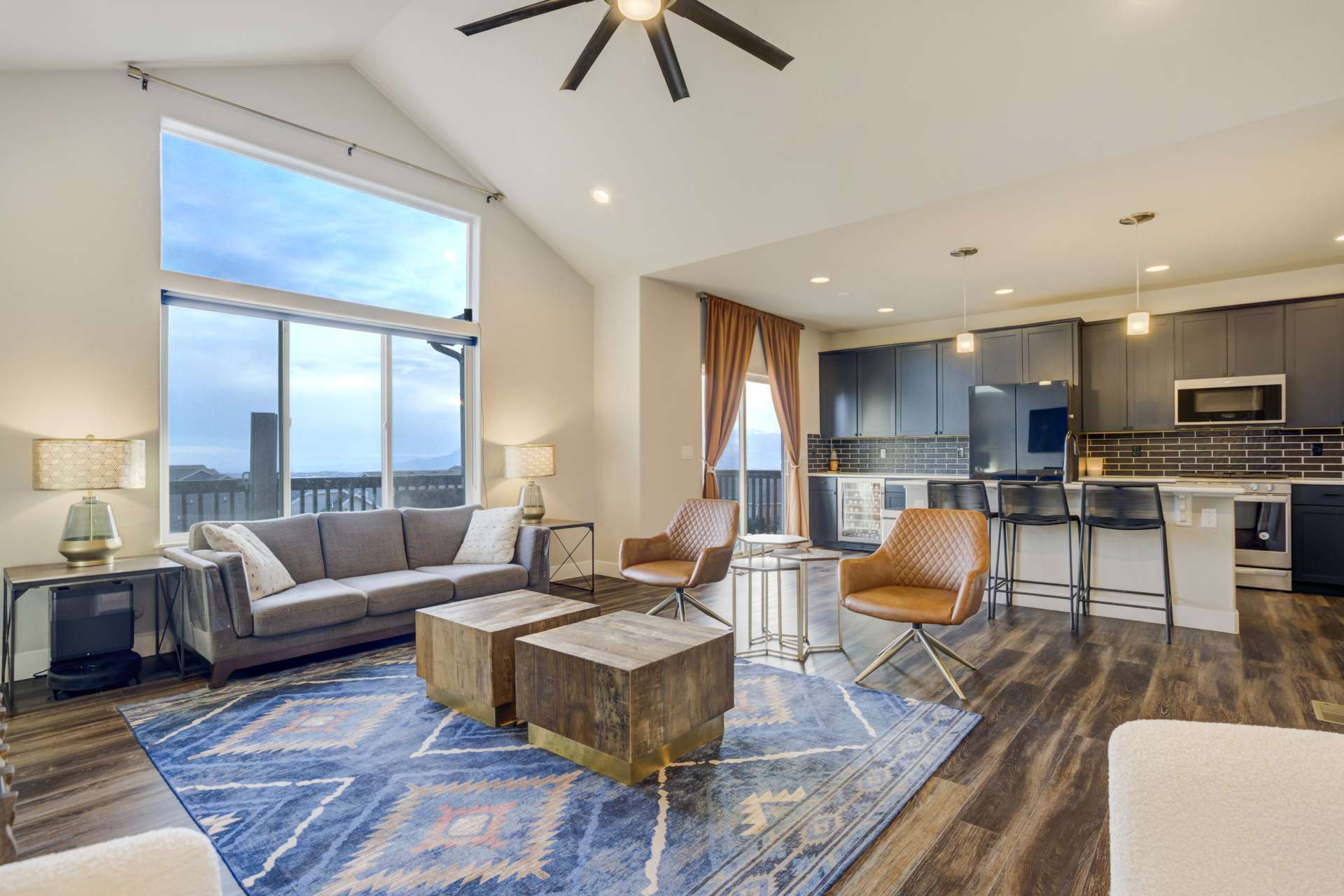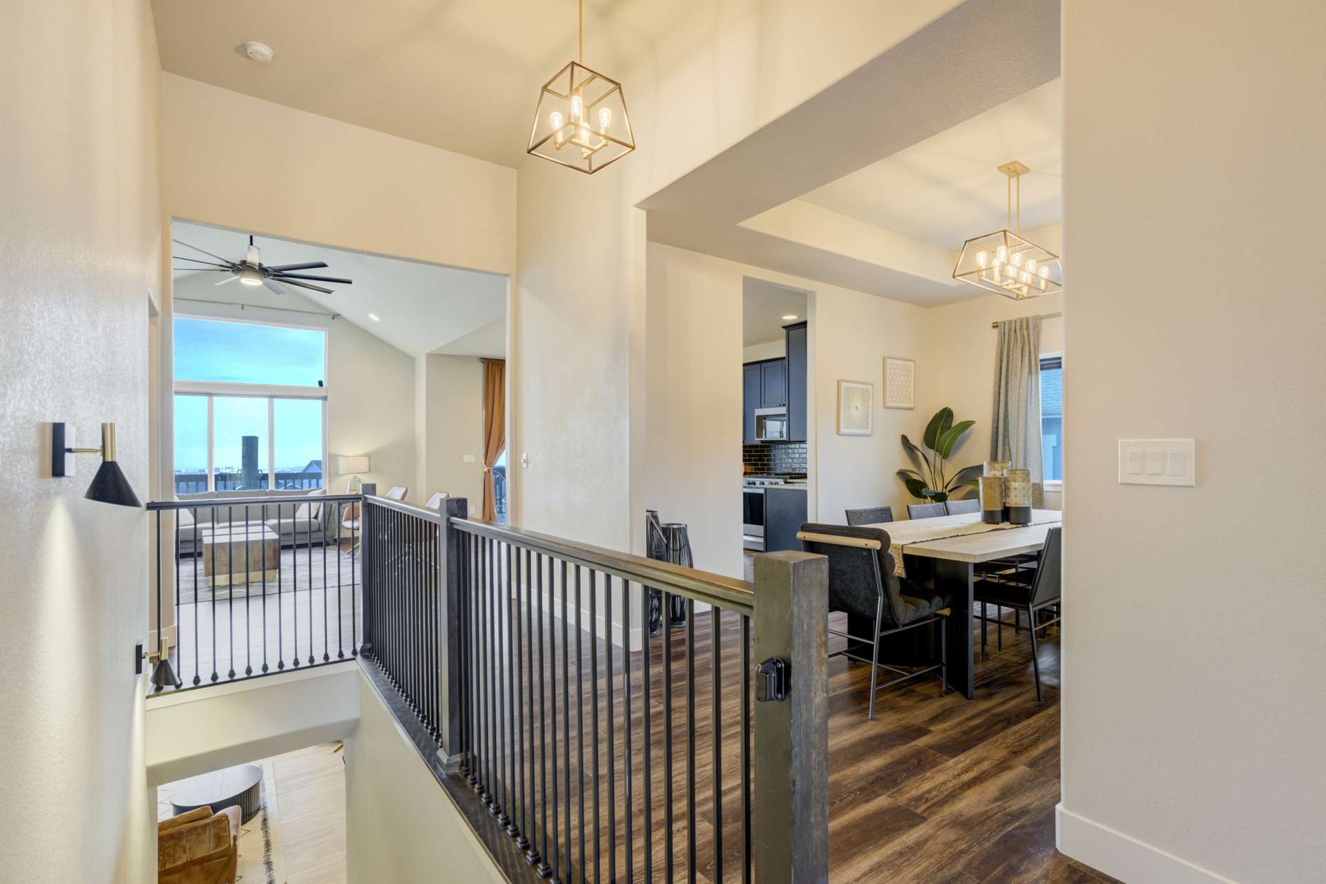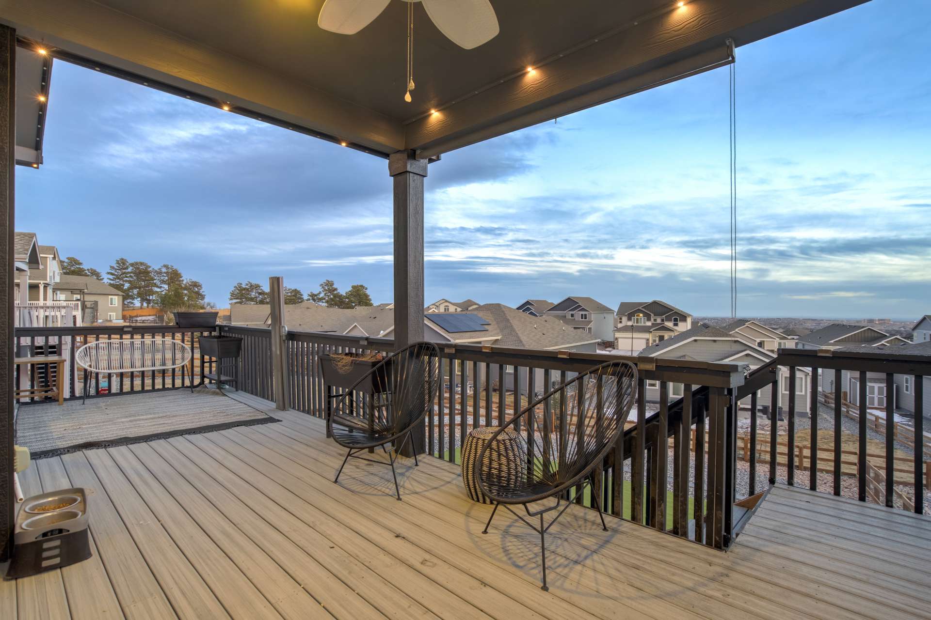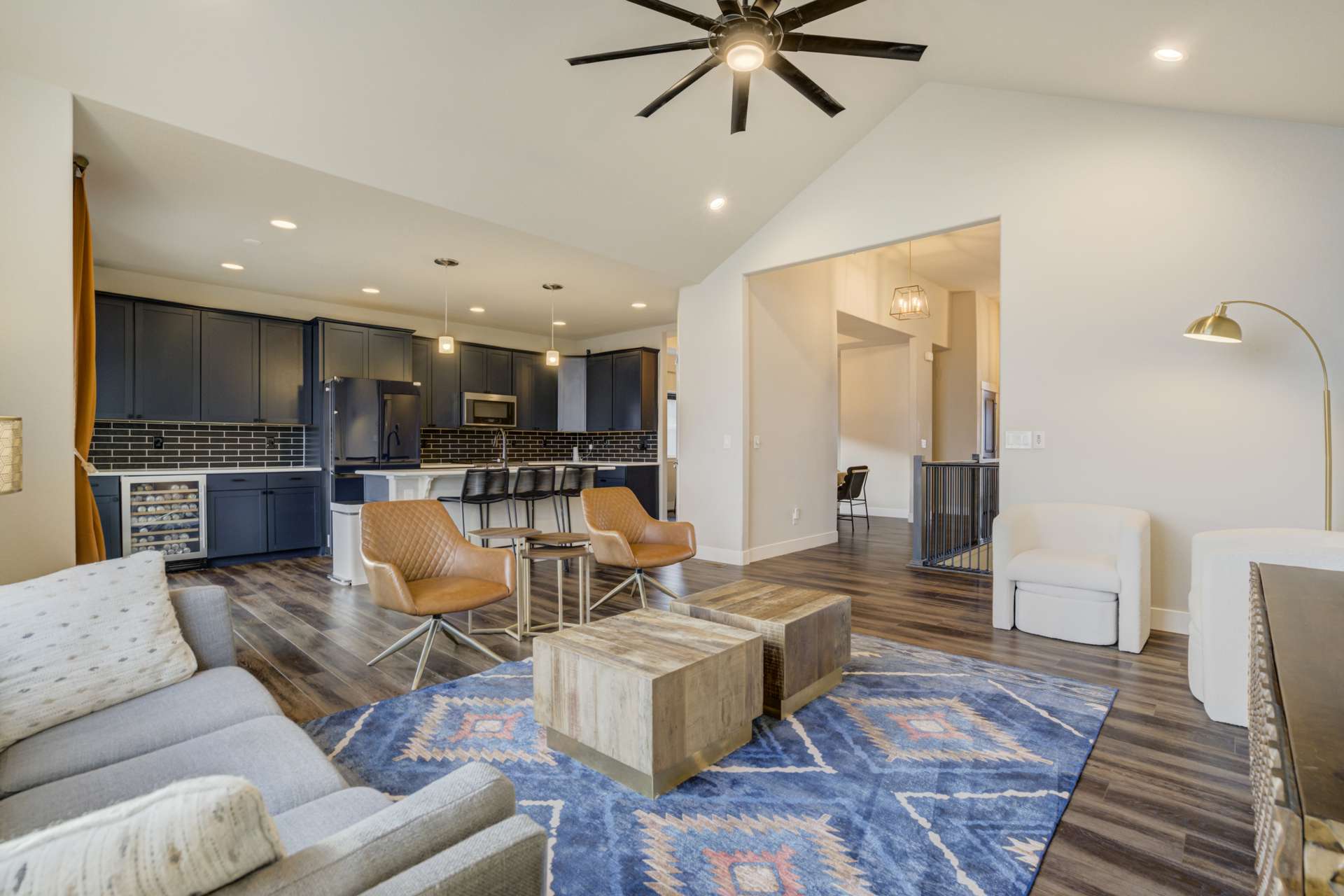 Experience the perfect blend of elevation and elegance in this stunning 6-bedroom, 3-bathroom residence. Situated to capture breathtaking mountain views, this home offers a sophisticated open-concept layout defined by vaulted ceilings and rich hardwood flooring that flows through the kitchen, dining, and great room. The heart of the home is a chef-inspired kitchen featuring 42-inch upper cabinets, granite countertops, and an island with a breakfast bar. Stainless steel appliances, a stylish tile backsplash, and a dedicated beverage fridge make this space as functional as it is beautiful. The main level is designed for convenience, anchored by a spacious great room with recessed lighting and a lighted ceiling fan. The primary suite serves as a private retreat, boasting vaulted ceilings and a luxurious 5-piece ensuite bath. In the primary bath, discover a large walk-in closet with a built-in vanity. Two additional bedrooms, a full ceramic-tiled bathroom, and a main-level laundry room provide effortless accessibility, while iron spindle rails add a touch of modern craftsmanship. The expansive walkout basement significantly increases your living space. This open, airy lower level features a massive recreation room, three bedrooms, and a full bathroom. The dry bar area, equipped with its own beverage fridge, creates the ultimate setting for entertaining. Step outside through the walkout to enjoy the Colorado sunshine in a backyard designed with low-maintenance landscaping, allowing more time to soak in the scenery. Complete with a 3-car attached garage and ample storage, this home balances grand scale with intimate details. From the recessed lighting to the premium finishes, every inch has been curated for a high-quality lifestyle. Whether you are enjoying a quiet morning overlooking the peaks or hosting in the light-filled basement, this home provides the versatility you’ve been searching for.