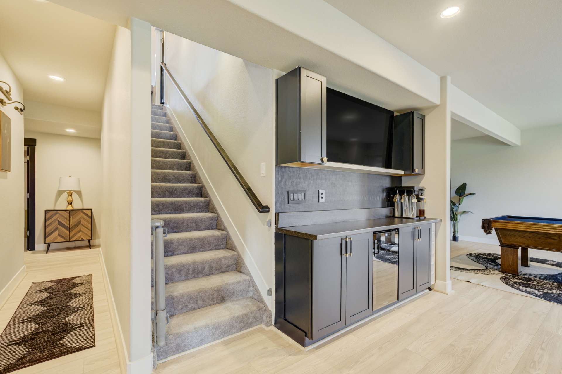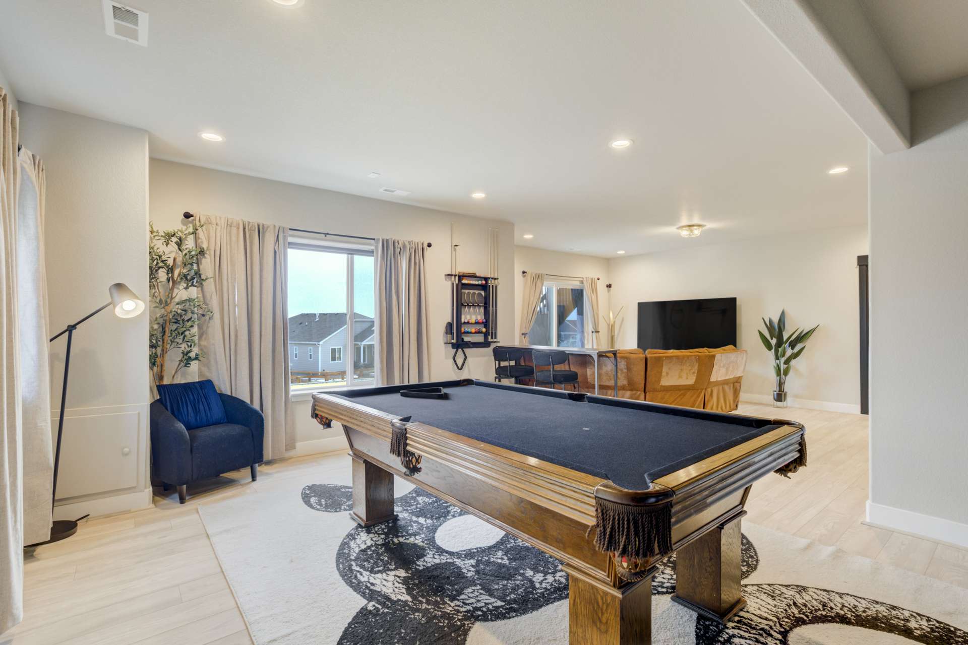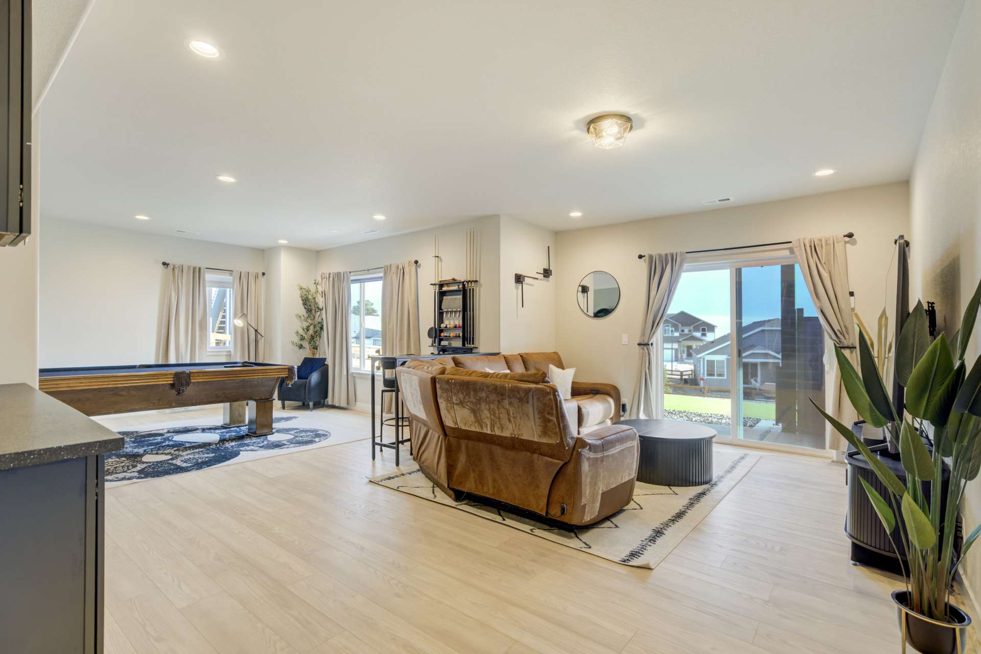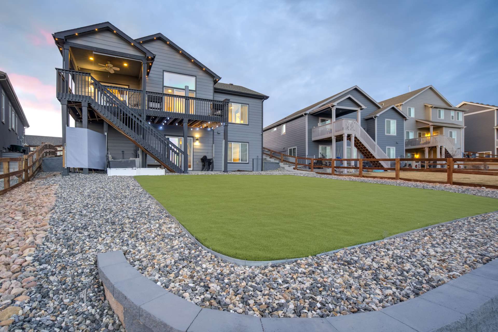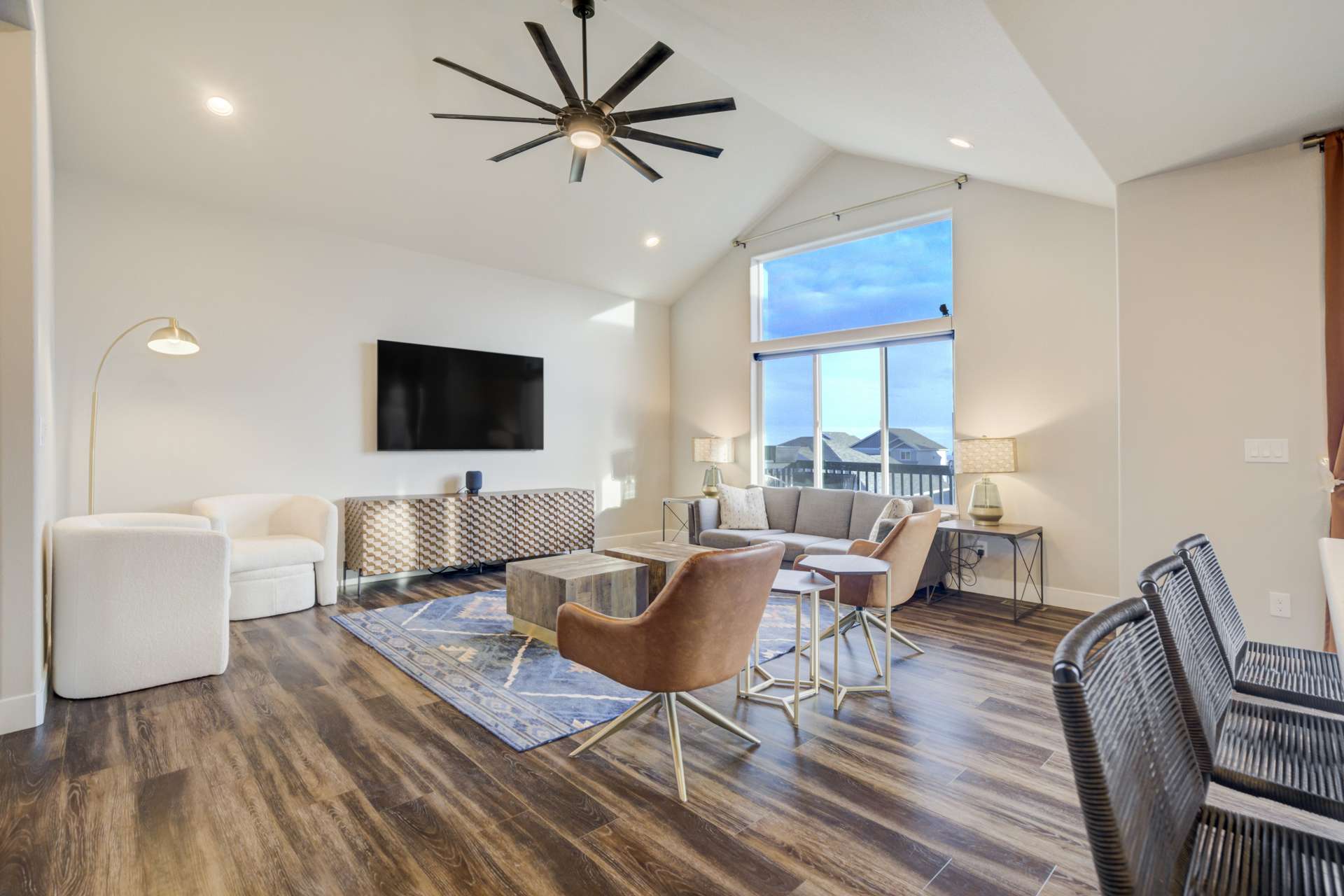 Experience the perfect blend of elevation and elegance in this stunning 6-bedroom, 3-bathroom residence. Situated to capture breathtaking mountain views, this home offers a sophisticated open-concept layout defined by vaulted ceilings and rich hardwood flooring that flows through the kitchen, dining, and great room. The heart of the home is a chef-inspired kitchen featuring 42-inch upper cabinets, granite countertops, and an island with a breakfast bar. Stainless steel appliances, a stylish tile backsplash, and a dedicated beverage fridge make this space as functional as it is beautiful. The main level is designed for convenience, anchored by a spacious great room with recessed lighting and a lighted ceiling fan. The primary suite serves as a private retreat, boasting vaulted ceilings and a luxurious 5-piece ensuite bath. In the primary bath, discover a large walk-in closet with a built-in vanity. Two additional bedrooms, a full ceramic-tiled bathroom, and a main-level laundry room provide effortless accessibility, while iron spindle rails add a touch of modern craftsmanship. The expansive walkout basement significantly increases your living space. This open, airy lower level features a massive recreation room, three bedrooms, and a full bathroom. The dry bar area, equipped with its own beverage fridge, creates the ultimate setting for entertaining. Step outside through the walkout to enjoy the Colorado sunshine in a backyard designed with low-maintenance landscaping, allowing more time to soak in the scenery. Complete with a 3-car attached garage and ample storage, this home balances grand scale with intimate details. From the recessed lighting to the premium finishes, every inch has been curated for a high-quality lifestyle. Whether you are enjoying a quiet morning overlooking the peaks or hosting in the light-filled basement, this home provides the versatility you’ve been searching for.