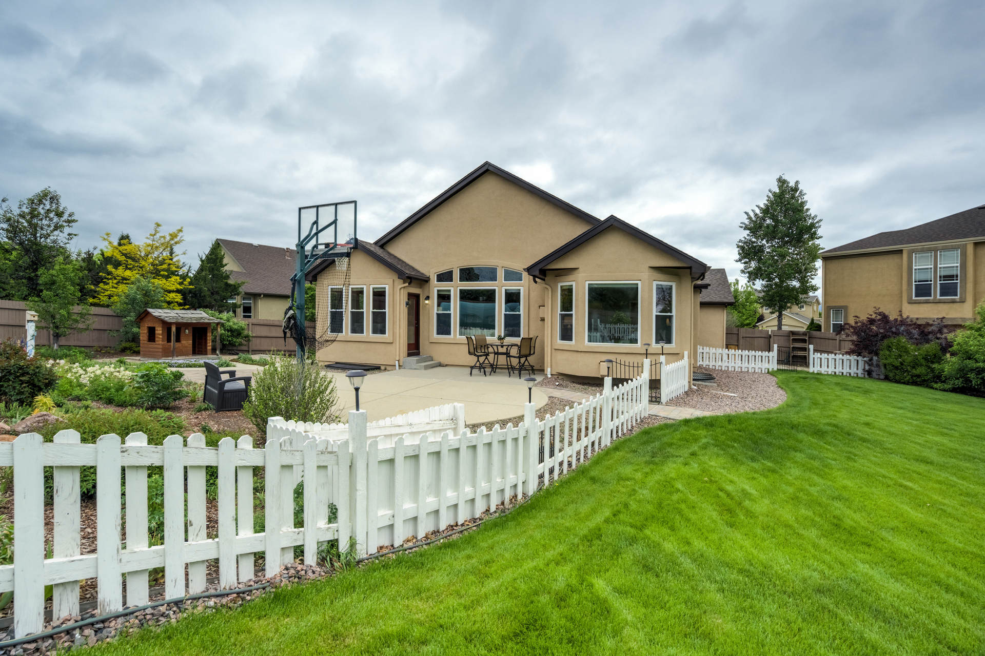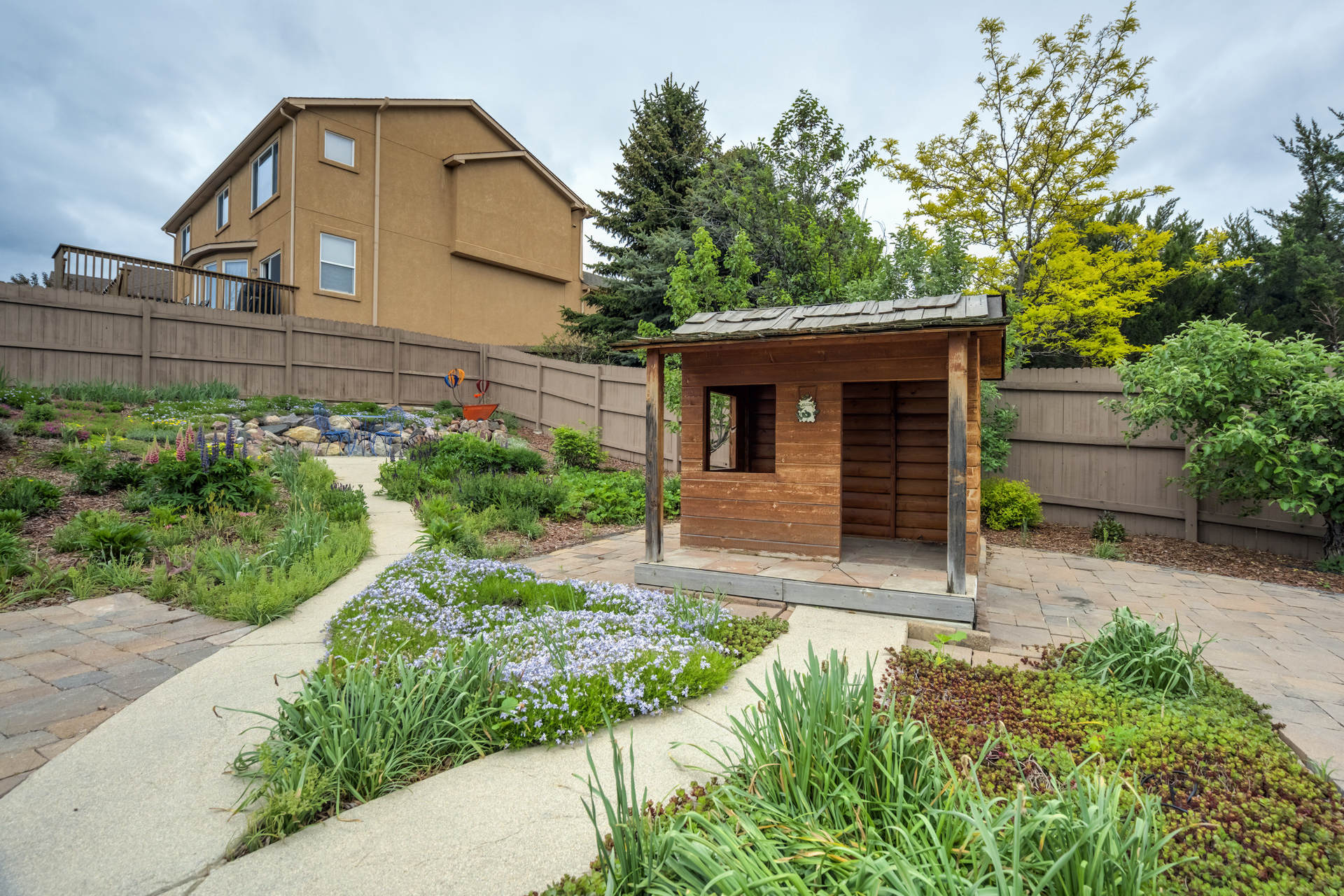 Welcome to this rare find in Bison Ridge at Kettle Creek—a beautifully maintained Ranch home on a spacious 1/3-acre lot tucked away at the end of a quiet, flat cul-de-sac. The well-planned backyard has distinct living spaces for gardening, play, and pets and is perfect for those who value nature and a variety of indoor and outdoor living spaces. Out back, you’ll discover a true gardener’s paradise, lovingly cultivated over 19 years. The expansive yard features three apple trees, a peach tree, and a stunning array of low-maintenance perennials including roses, lilacs, peonies, and azaleas. Two large greenhouses offer extended growing seasons, while a fenced dog run and adorable children’s playhouse create a space that’s fun and functional for everyone. Inside, the home offers an open layout with vaulted ceilings, a 3-car garage, and a smart, flexible design. The main level includes a spacious primary suite, a second bedroom, a second bathroom with a luxury walk-in tub and hydrotherapy jets, a dedicated laundry room, and a bright, flexible homeschool or work-from-home space that can accommodate multiple people in the family. The eat-in kitchen flows seamlessly into the living area and offers direct access to the backyard patio, creating the perfect setup for outdoor dining, morning coffee, or evenings spent by the garden. Downstairs, the finished basement adds two more bedrooms, a full bathroom, and generous open space for relaxing, entertaining, or hosting holiday events. A cozy nook with gas fireplace and built-in benches adds extra charm and warmth. Located in the highly sought-after Academy District 20, this home also features a newer roof, low HOA dues, air conditioner and 2 furnaces to keep you comfortable year round. With easy access to parks, trails, top-rated schools, shopping, restaurants, and quick routes to Powers and I-25, this home offers a rare combination of peace, quiet and convenience.