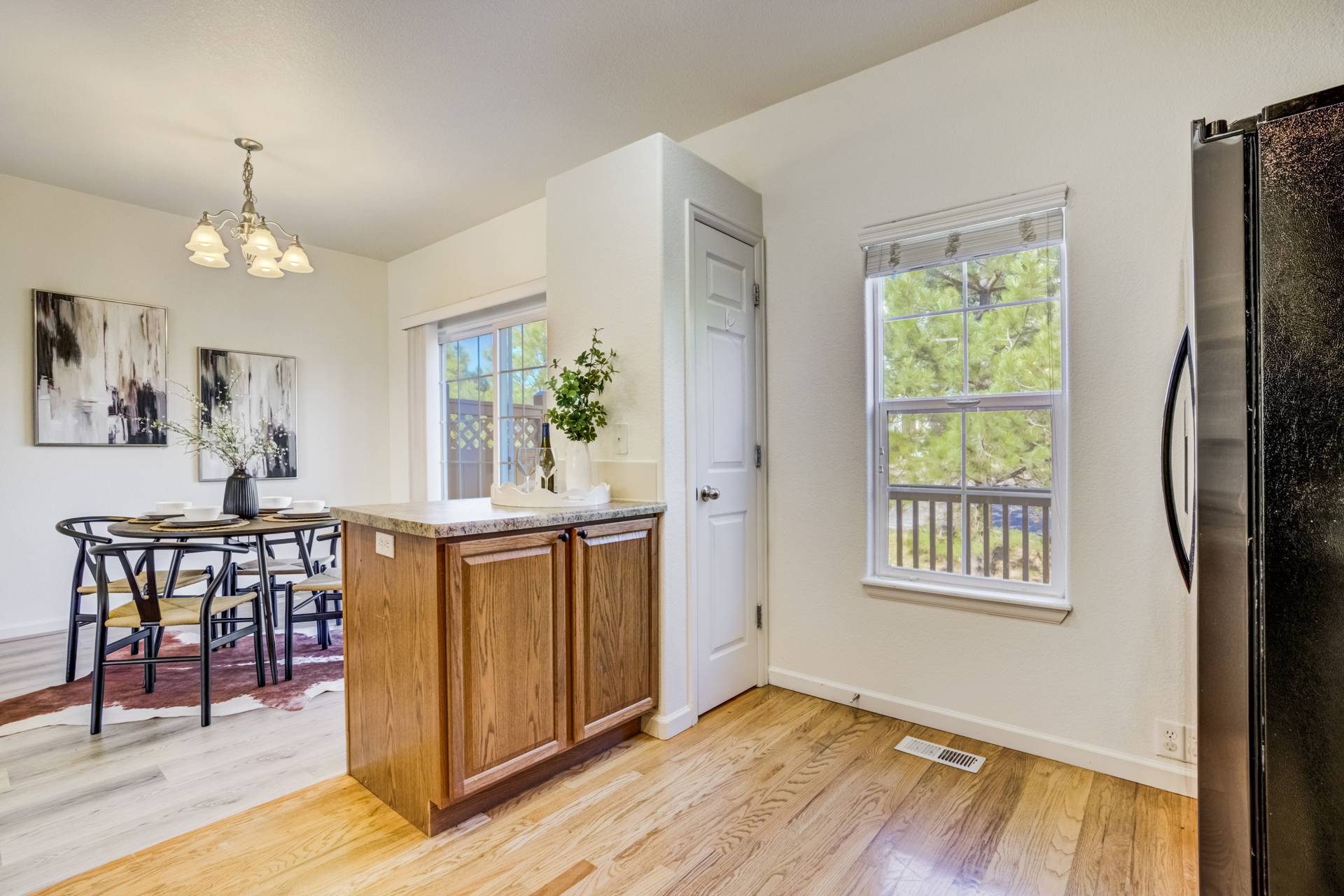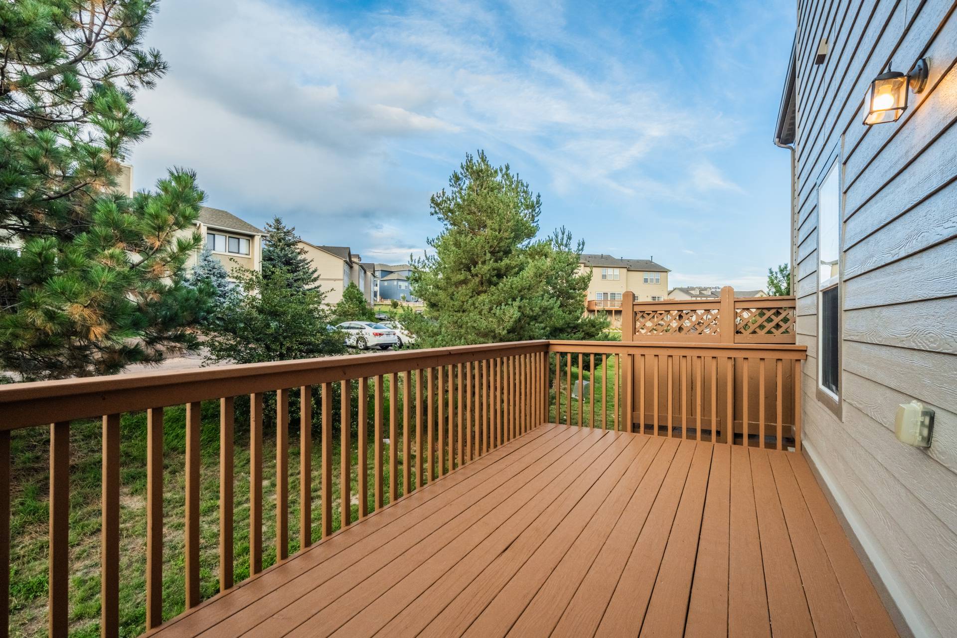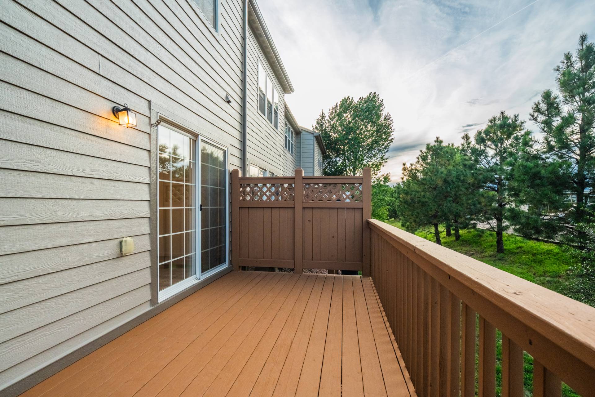 Freshly updated & move-in ready, this Walters Commons townhome features new carpet, new luxury vinyl flooring, fresh interior paint, a newly painted deck, a newer refrigerator, & a recently replaced water heater. With central A/C, forced air heating, & an attached 1-car garage, the home blends practical comfort w/ low-maintenance ease. Inside, the three-level layout offers 9’ ceilings on the main floor, an open-concept great room anchored by a gas fireplace, & a kitchen/dining area that walks out to the spacious deck—ideal for indoor-outdoor flow. Each of the three bedrooms has its own private en-suite bath, including two upper-level suites & a third suite on the lower level, offering flexible guest or multi-gen options. Ample guest parking is just steps away, & the HOA covers exterior maintenance, trash, snow removal, & structure insurance. Conveniently located near I-25, Hwy 83, downtown Monument, USAFA, hiking trails, golf courses, & top-rated D38 schools, this is easy living in one of Monument’s most accessible neighborhoods.