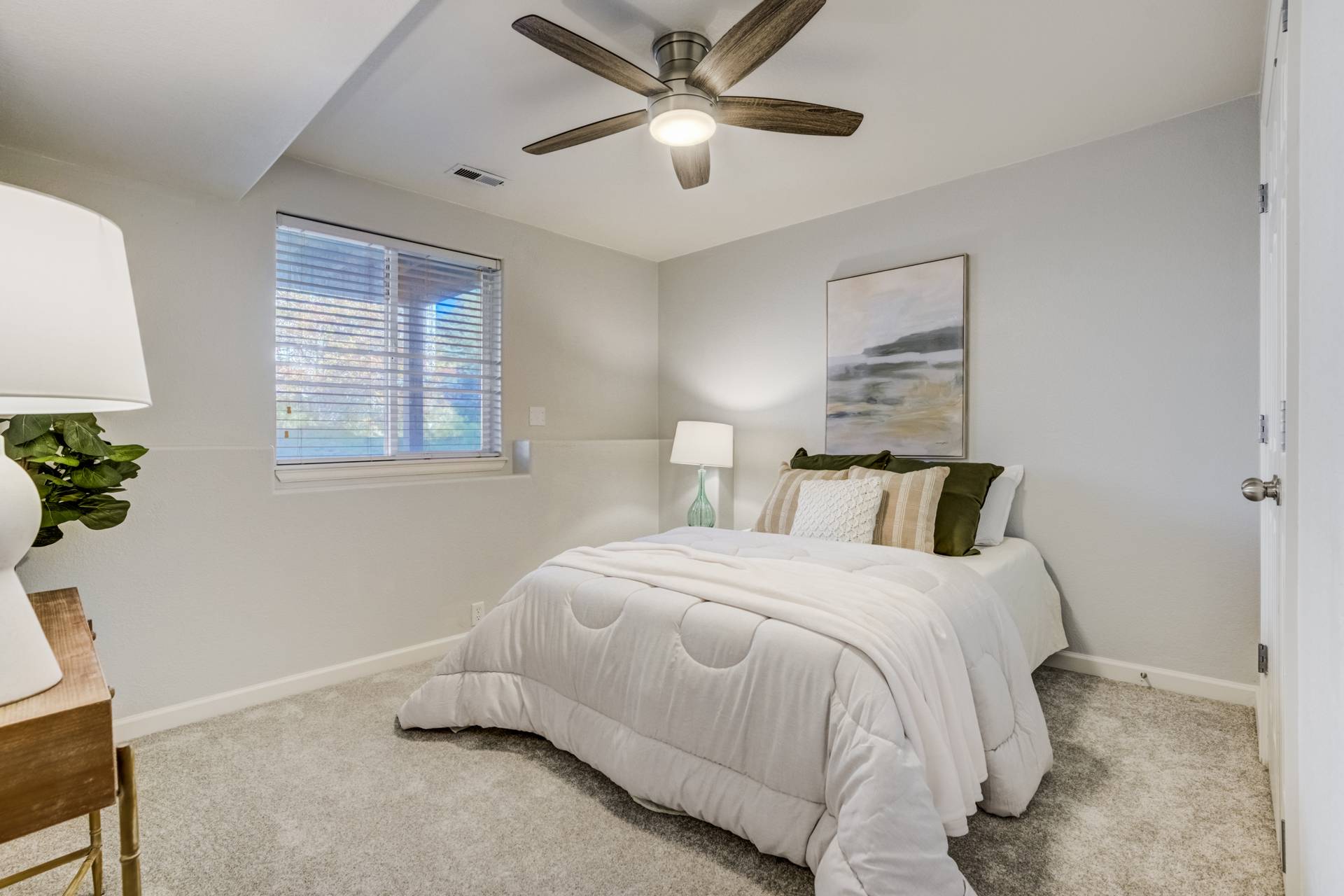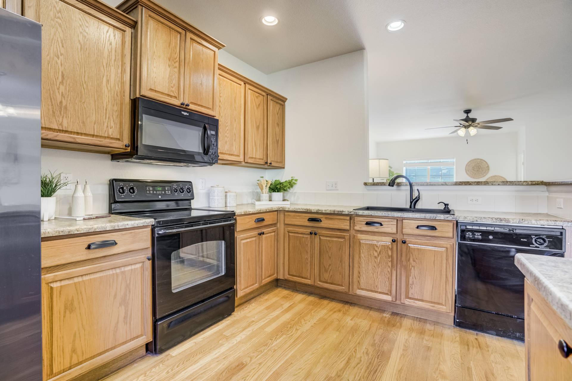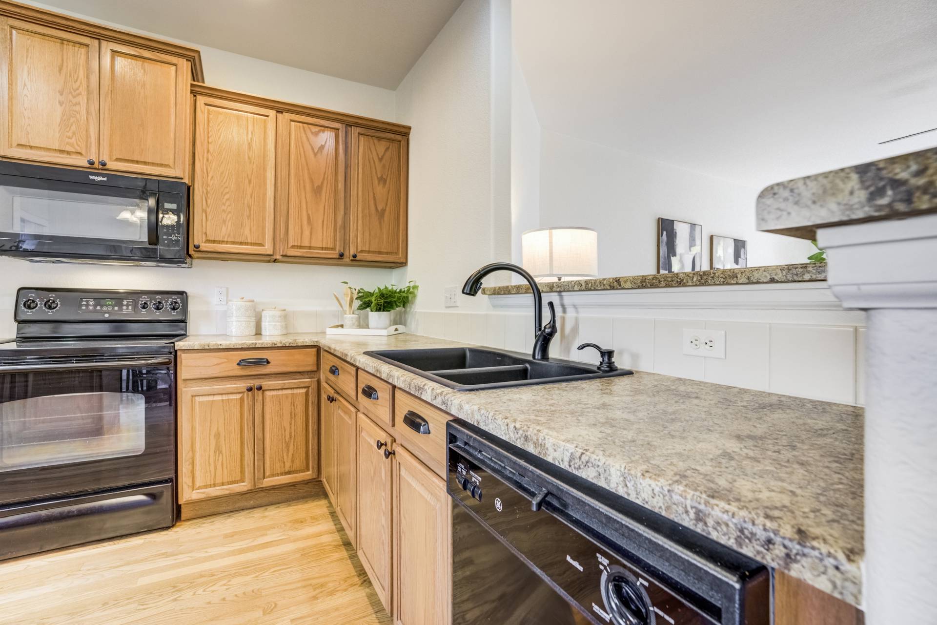 Freshly updated & move-in ready, this Walters Commons townhome features new carpet, new luxury vinyl flooring, fresh interior paint, a newly painted deck, a newer refrigerator, & a recently replaced water heater. With central A/C, forced air heating, & an attached 1-car garage, the home blends practical comfort w/ low-maintenance ease. Inside, the three-level layout offers 9’ ceilings on the main floor, an open-concept great room anchored by a gas fireplace, & a kitchen/dining area that walks out to the spacious deck—ideal for indoor-outdoor flow. Each of the three bedrooms has its own private en-suite bath, including two upper-level suites & a third suite on the lower level, offering flexible guest or multi-gen options. Ample guest parking is just steps away, & the HOA covers exterior maintenance, trash, snow removal, & structure insurance. Conveniently located near I-25, Hwy 83, downtown Monument, USAFA, hiking trails, golf courses, & top-rated D38 schools, this is easy living in one of Monument’s most accessible neighborhoods.