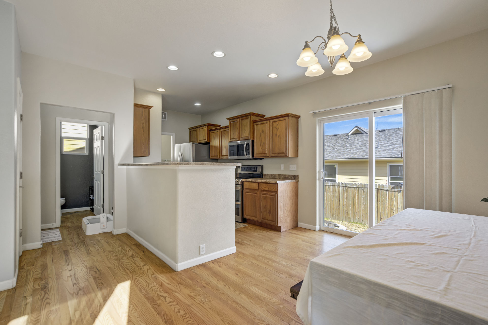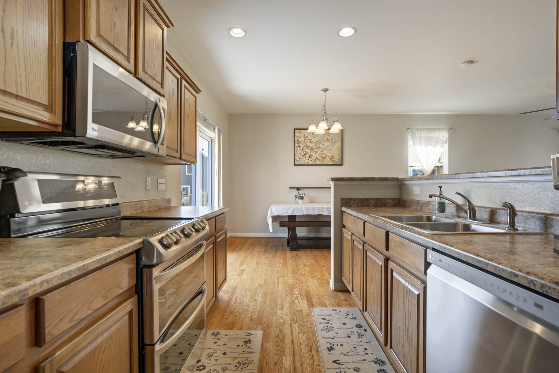 Lovely Home that's Move-In Ready on a cul-de-sac! You will be delighted with open floorplan. Main floor is real wood flooring. Living room flows into the dining and kitchen area. Kitchen is spacious with a breakfast bar, a tremendous amount of cabinet space, stainless appliances with the dishwasher and stove and a pantry! The half bath on the main floor is perfect for company when entertaining. Primary bedroom suite is a true retreat with attached bathroom and walk-in closet. Additionally, there are bedrooms and a full bathroom. **WATER is INCLUDED in your metro fees!!** ** Woodmen Hills Community Provides TWO Recreation Centers, Indoor & Outdoor Pools, Basketball Courts, Weight Room, Playgrounds, and Wide Variety of Events Throughout the Year. Conveniently Close to Peterson AFB and Schriever AFB, Shopping, Food, Amenities, & More.