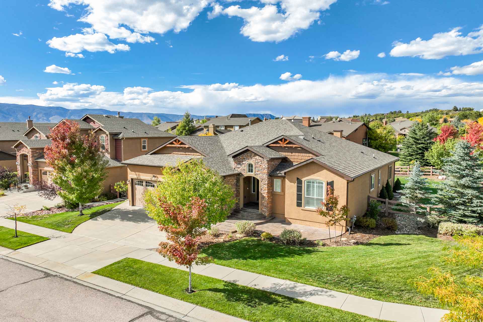 Welcome to this exceptional corner lot residence, nestled in a serene neighborhood with breathtaking mountain views. This meticulously maintained home boasts an array of features that make it an ideal haven for folks seeking comfort, space, and convenience. With new paint inside and out, it exudes a fresh, welcoming ambiance. Abundant storage options and proximity to schools make this property an absolute gem. Prime corner lot positioning offers both privacy and ample space for outdoor activities. Enjoy the picturesque views of the surrounding mountains, creating a tranquil setting for everyday living. Step inside to discover a tastefully updated interior with a modern color palette. The freshly painted walls create an inviting atmosphere, blending seamlessly with various décor styles. This versatile home offers five to six generously sized bedrooms, providing ample space for a growing family. One of the bedrooms can easily be converted into a home office, perfect for remote work or study sessions. Tired of clutter? This property boasts an abundance of storage solutions, ensuring all your belongings have their rightful place. From spacious closets to well-placed cabinets, organization has never been easier. You will appreciate the convenience of living within proximity to award-winning D-20 schools. This location makes the morning drop-off and afternoon pick-up a breeze. Close to Flying Horse Club for swimming, tennis, golf, and a great restaurant! Chef's kitchen with modern appliances and ample counter space. Cozy fireplace in the living area for those chilly winter nights. Landscaped backyard with a patio, perfect for outdoor entertaining. Attached garage with extra space for hobbies or a workshop. This corner lot property with mountain views truly offers the best of both worlds - a peaceful retreat with easy access to essential amenities. Don't miss the opportunity to make this house your forever home.