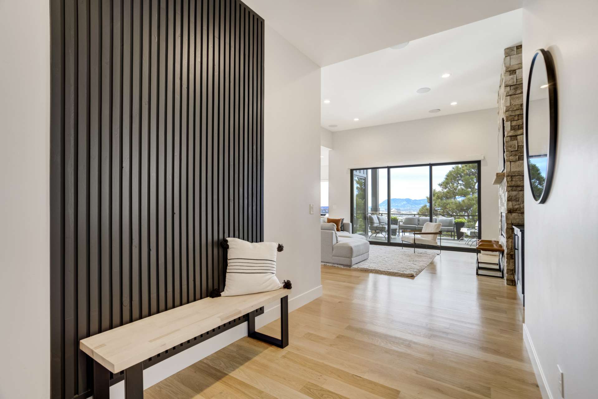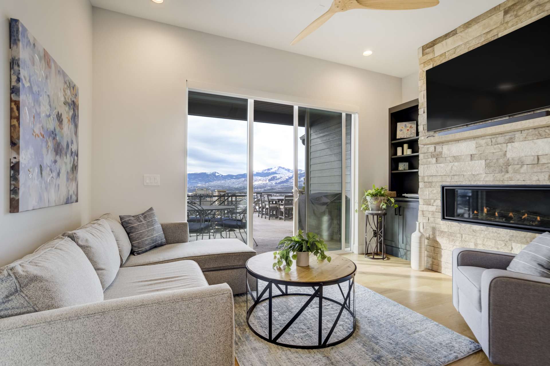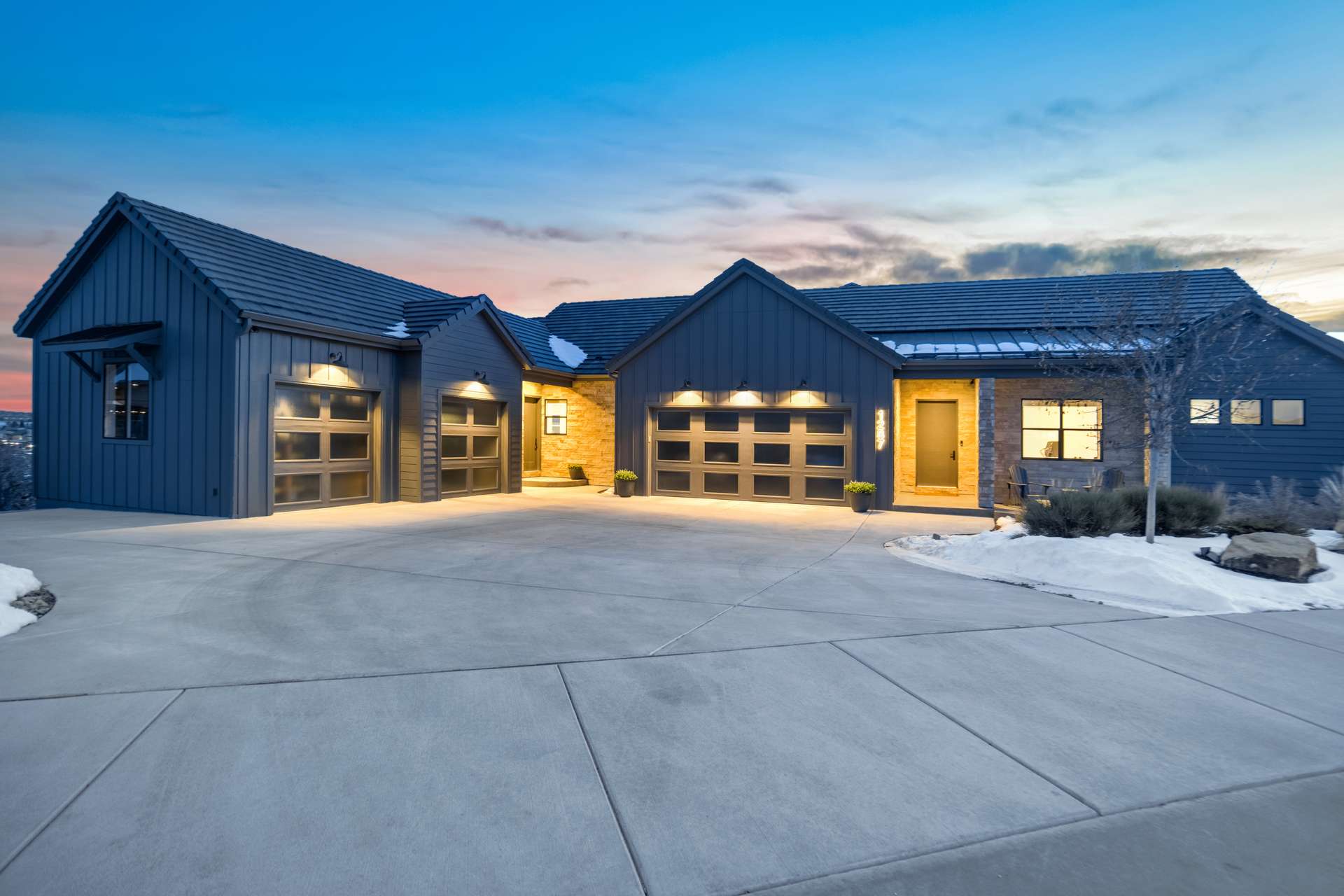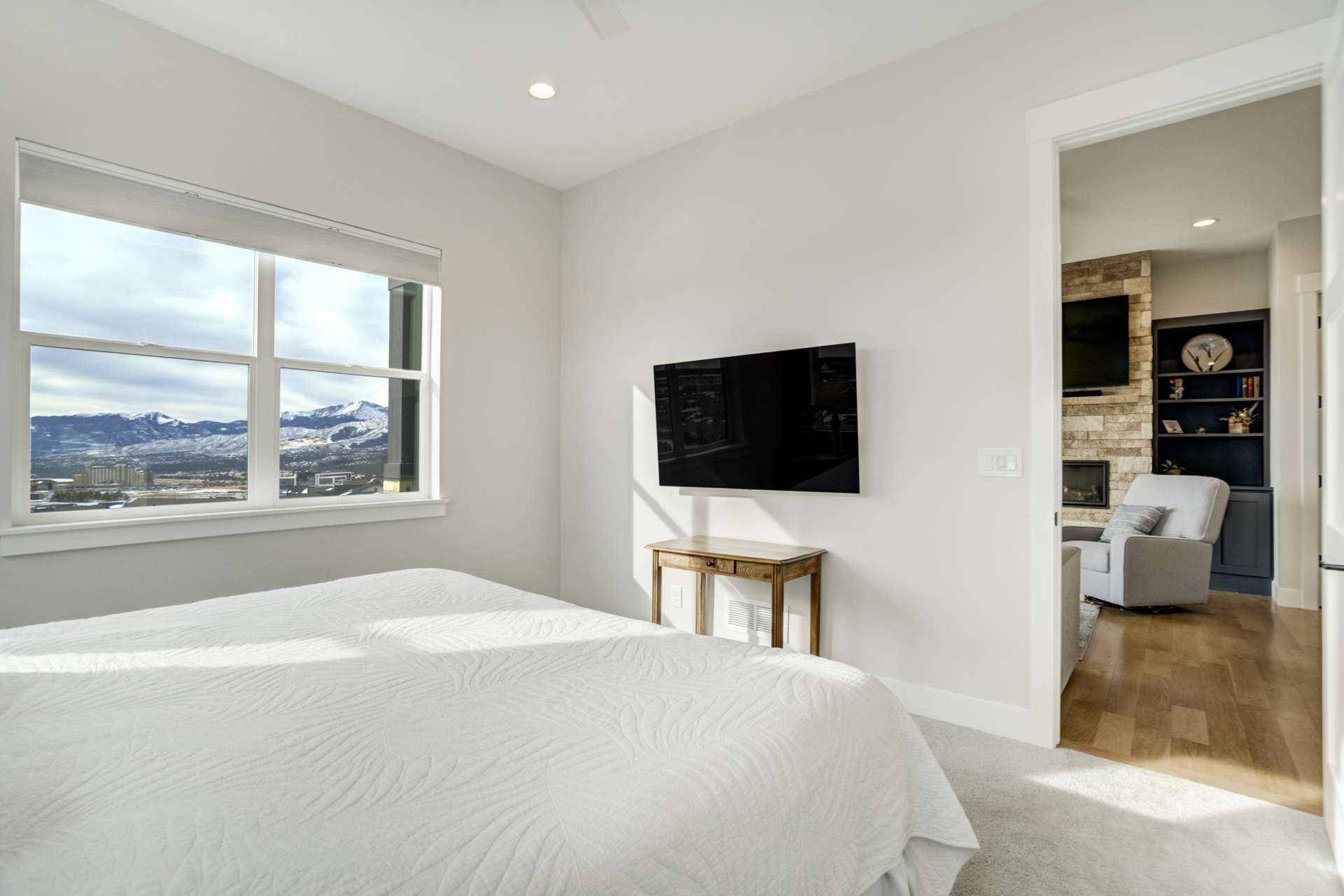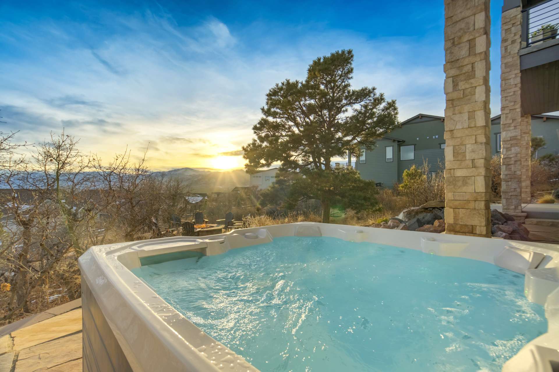 Set within the custom Julep Estates neighborhood of The Farm, this exceptional custom home blends modern Farmhouse architecture with thoughtful design, flexibility, and breathtaking Pikes Peak views. Designed for both everyday comfort and effortless entertaining, the open-concept layout is filled with natural light and seamless indoor/outdoor connections. The great room showcases expansive views of Pikes Peak with a stacking slider that opens to covered patios, creating an ideal setting for indoor/outdoor living. Light hardwood floors, custom finishes, and a dedicated sunroom add warmth and sophistication throughout the main living spaces. The gourmet kitchen anchors the home with an oversized island, granite and marble countertops, double ovens, gas range, and abundant storage—perfect for entertaining friends and family. The main-level primary suite offers a peaceful retreat with mountain views, a spa-inspired bath featuring a soaking tub, oversized custom shower, Carrara marble countertops, and a generous walk-in closet with built-ins. Additional bedrooms provide flexibility for family, guests, or work-from-home needs, while the finished basement expands the living space with a wet bar, workout or recreation room, flex rooms, and a secure vault room. An attached in-law suite provides a private living area with its own entrance, full kitchen, living room with fireplace, bedroom, bathroom, covered deck, and garage —ideal for multigenerational living or extended guests. Outdoor living is equally impressive, with multiple patios, covered decks, a fire pit, a hot tub, a water feature, and professionally landscaped grounds designed for beauty and low maintenance. The oversized 4+ car garages feature extra-tall ceilings, workshop space, EV charging, and extensive storage. With high-performance systems, whole-house audio, fiber-optic connectivity, and designer finishes throughout, this home offers a rare combination of luxury, versatility, and iconic Front Range views.