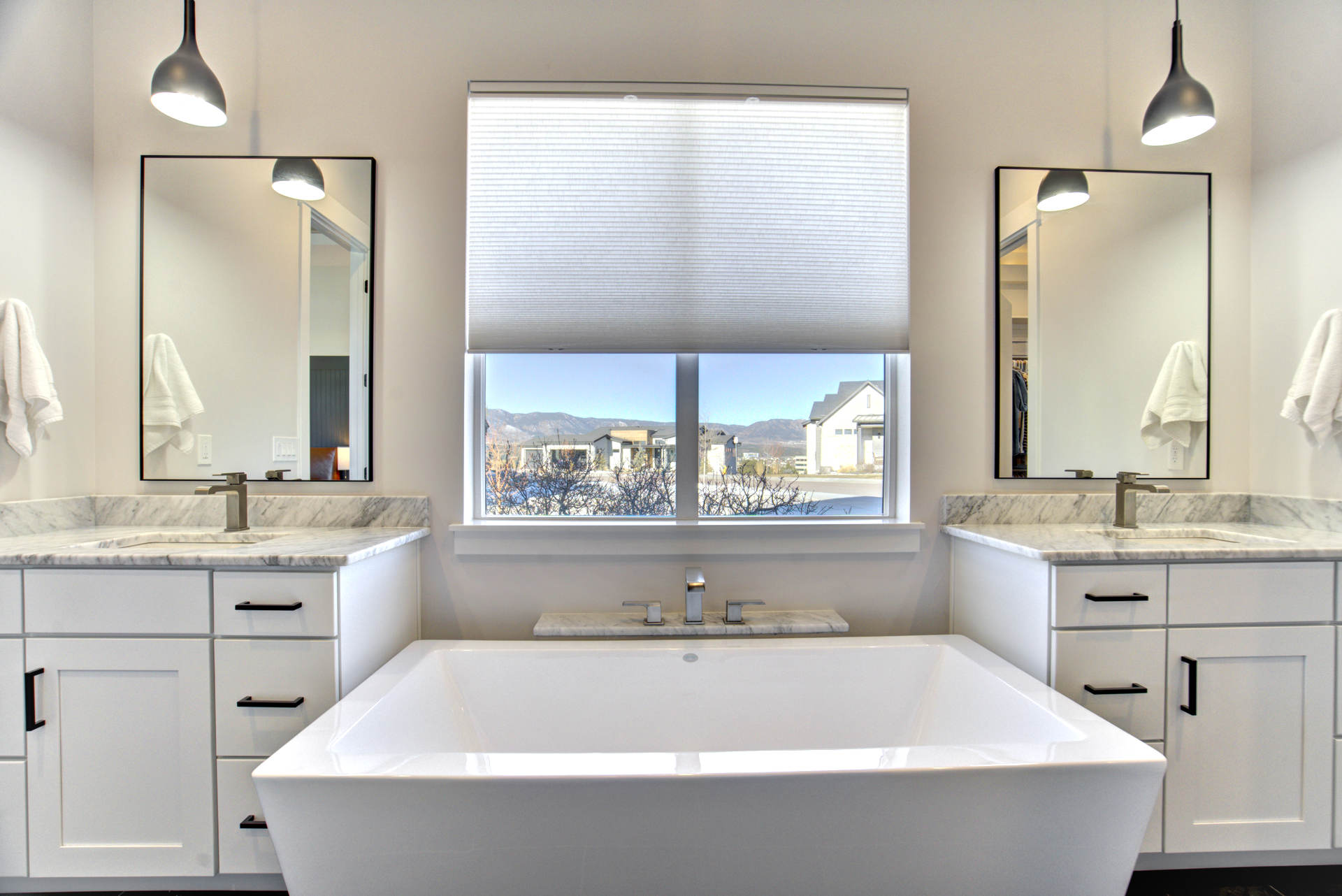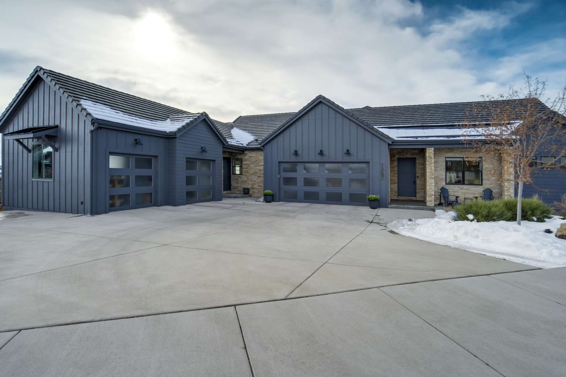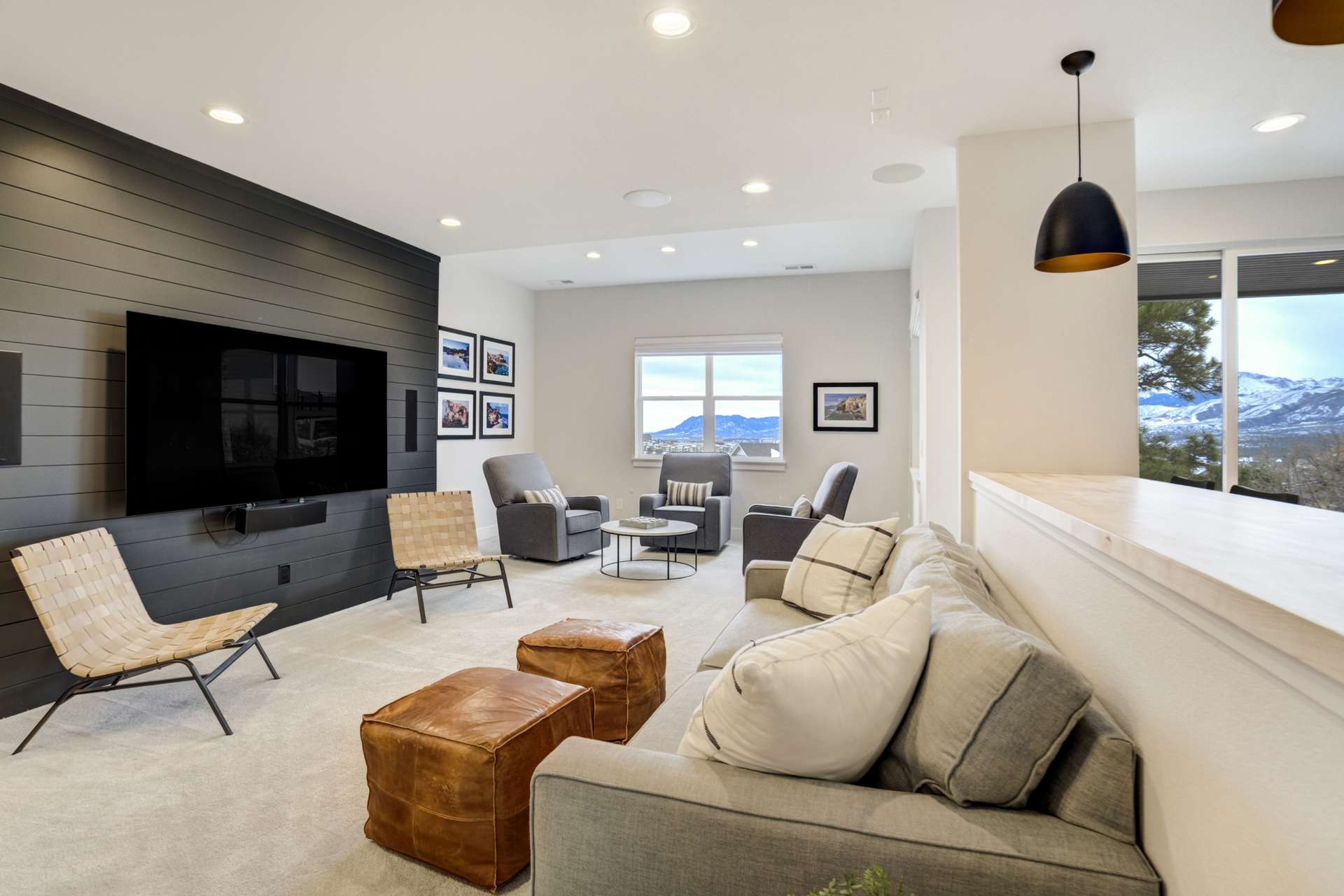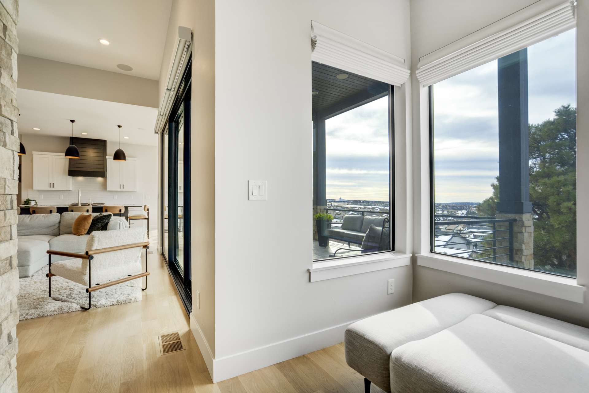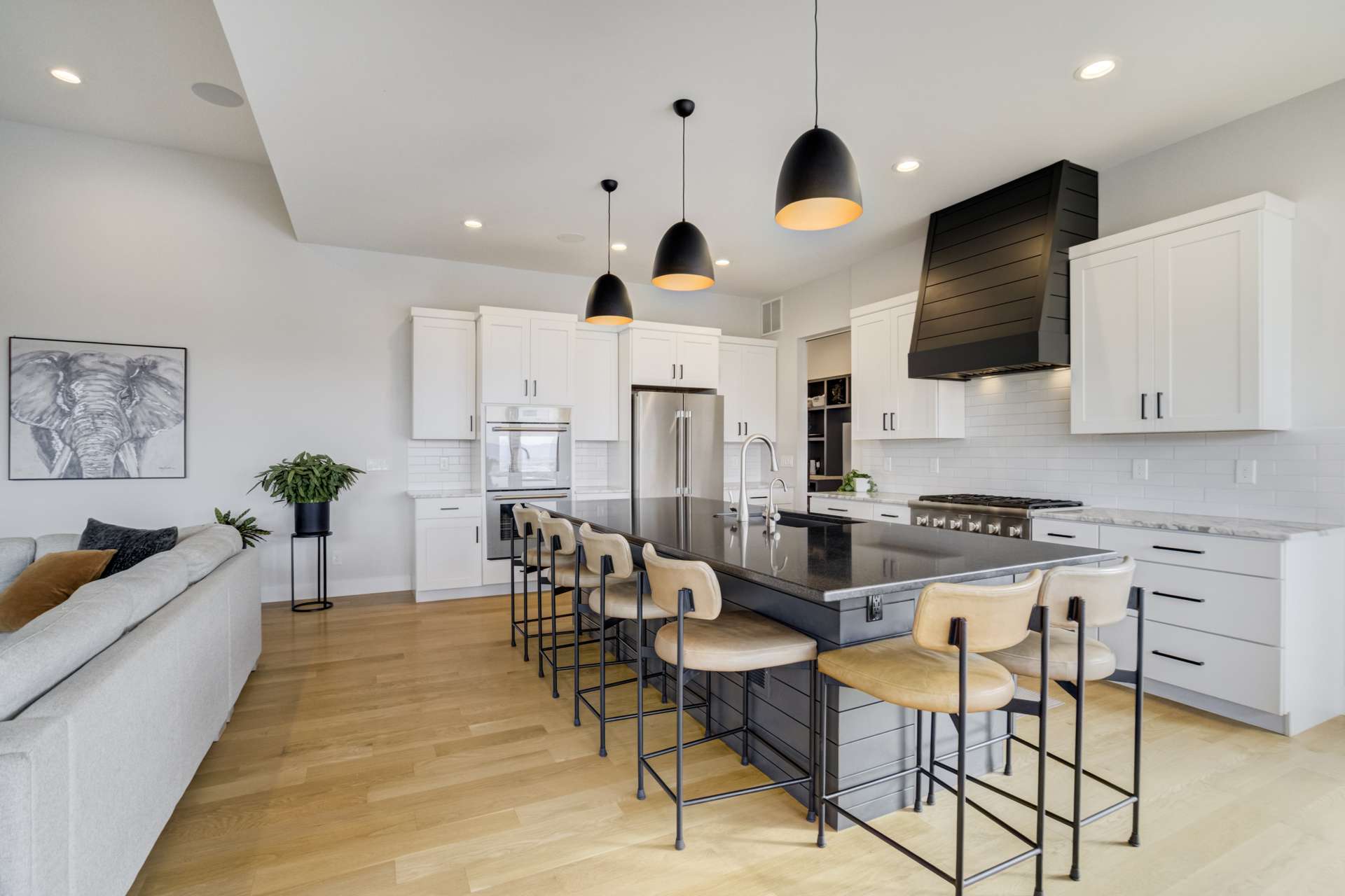Set within the custom Julep Estates neighborhood of The Farm, this exceptional custom home blends modern Farmhouse architecture with thoughtful design, flexibility, and breathtaking Pikes Peak views. Designed for both everyday comfort and effortless entertaining, the open-concept layout is filled with natural light and seamless indoor/outdoor connections. The great room showcases expansive views of Pikes Peak with a stacking slider that opens to covered patios, creating an ideal setting for indoor/outdoor living. Light hardwood floors, custom finishes, and a dedicated sunroom add warmth and sophistication throughout the main living spaces. The gourmet kitchen anchors the home with an oversized island, granite and marble countertops, double ovens, gas range, and abundant storage—perfect for entertaining friends and family. The main-level primary suite offers a peaceful retreat with mountain views, a spa-inspired bath featuring a soaking tub, oversized custom shower, Carrara marble countertops, and a generous walk-in closet with built-ins. Additional bedrooms provide flexibility for family, guests, or work-from-home needs, while the finished basement expands the living space with a wet bar, workout or recreation room, flex rooms, and a secure vault room. An attached in-law suite provides a private living area with its own entrance, full kitchen, living room with fireplace, bedroom, bathroom, covered deck, and garage —ideal for multigenerational living or extended guests. Outdoor living is equally impressive, with multiple patios, covered decks, a fire pit, a hot tub, a water feature, and professionally landscaped grounds designed for beauty and low maintenance. The oversized 4+ car garages feature extra-tall ceilings, workshop space, EV charging, and extensive storage. With high-performance systems, whole-house audio, fiber-optic connectivity, and designer finishes throughout, this home offers a rare combination of luxury, versatility, and iconic Front Range views.