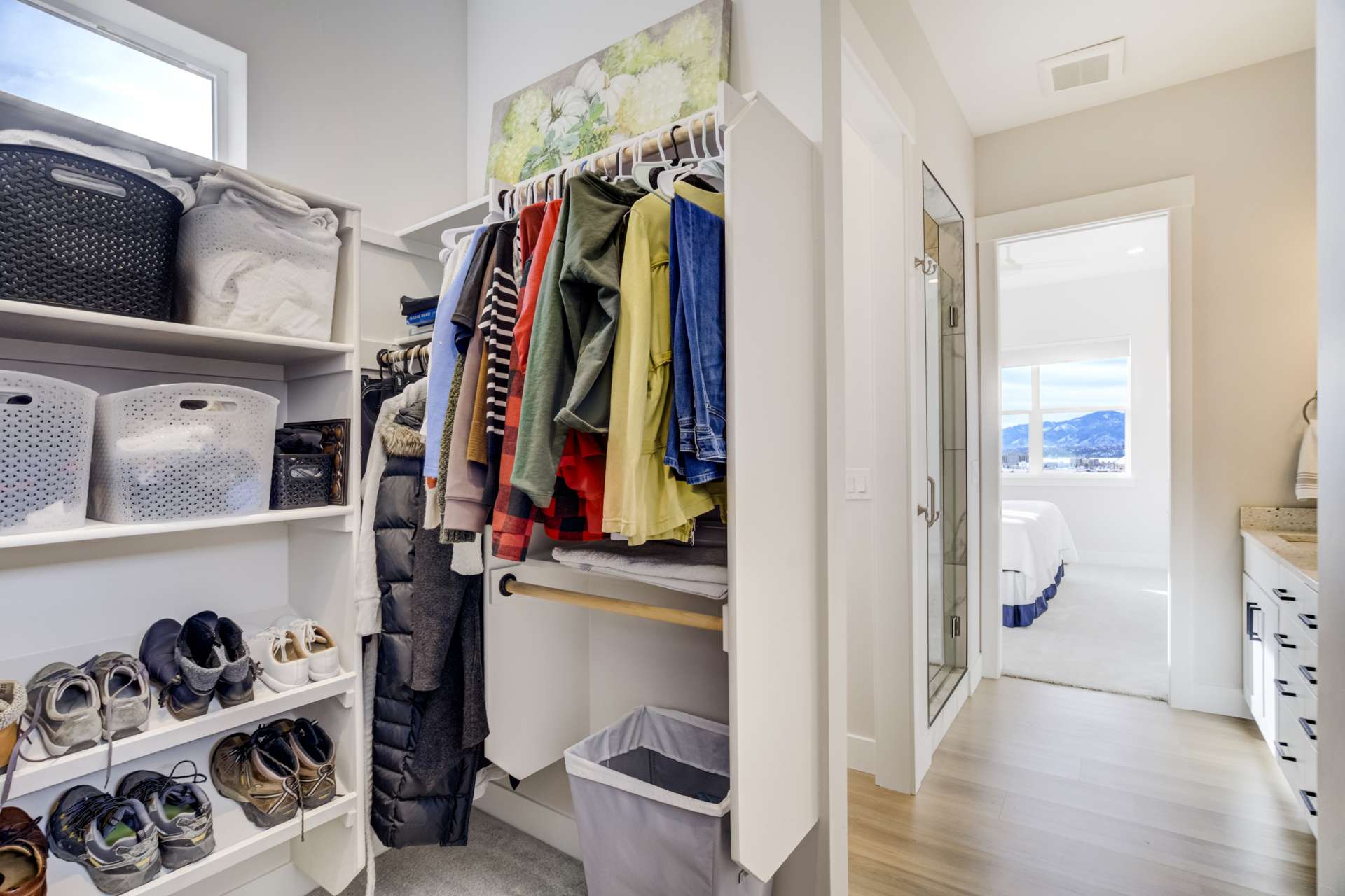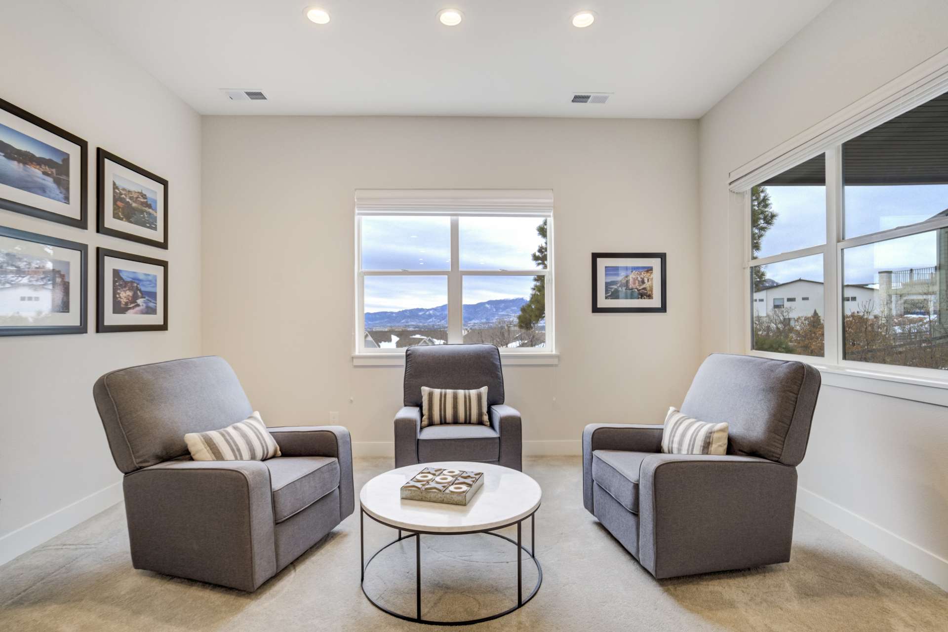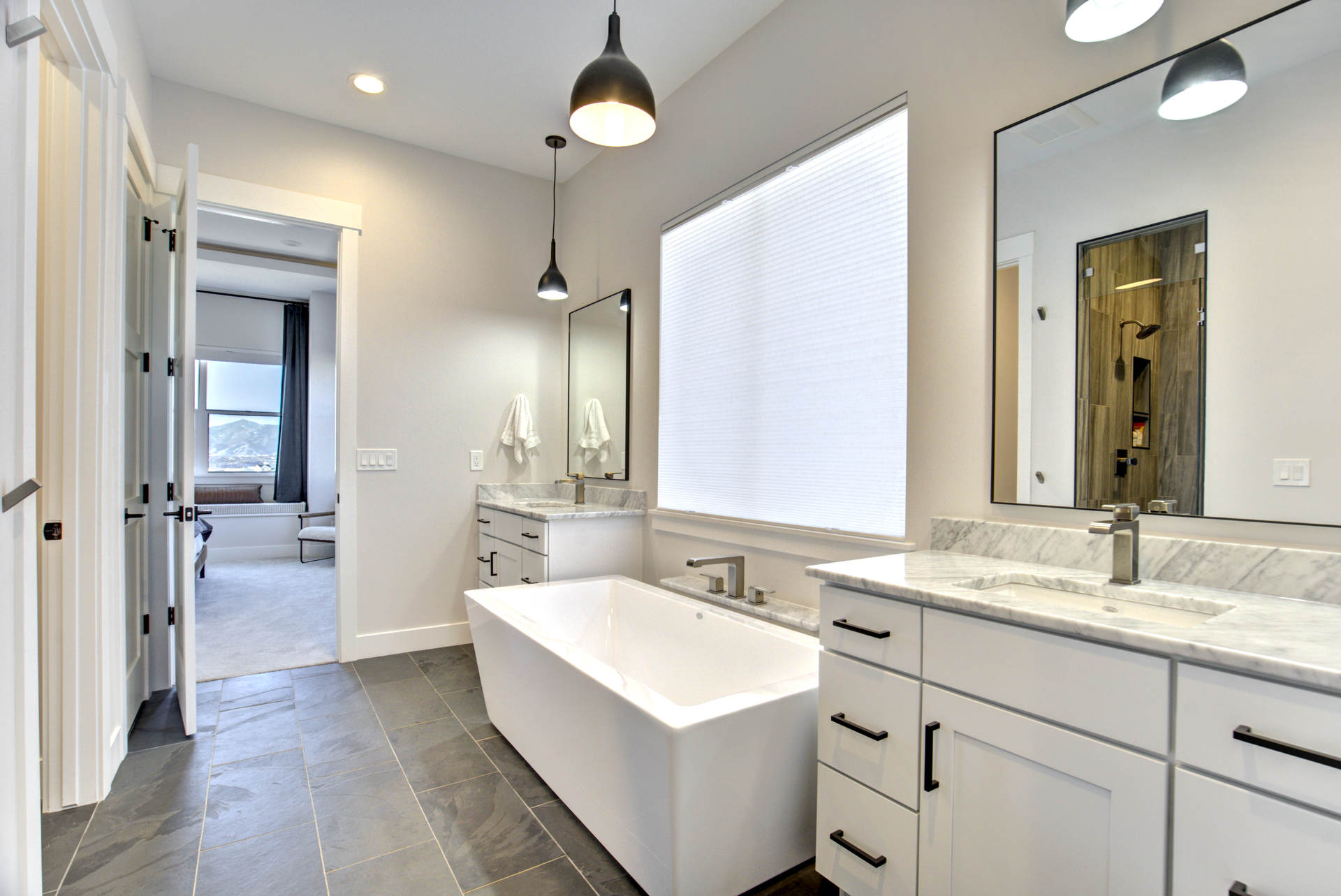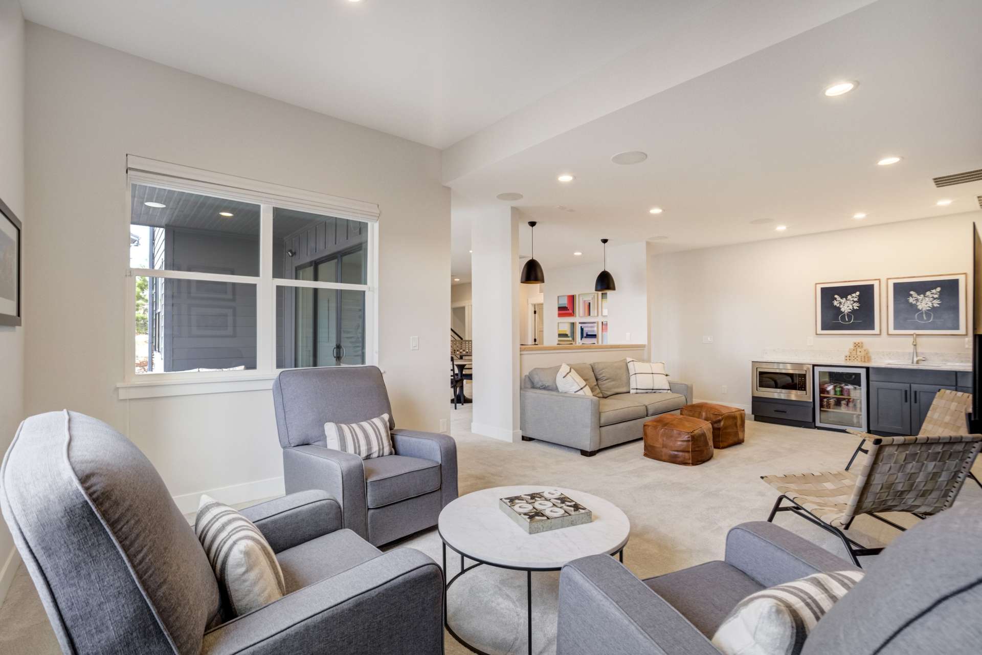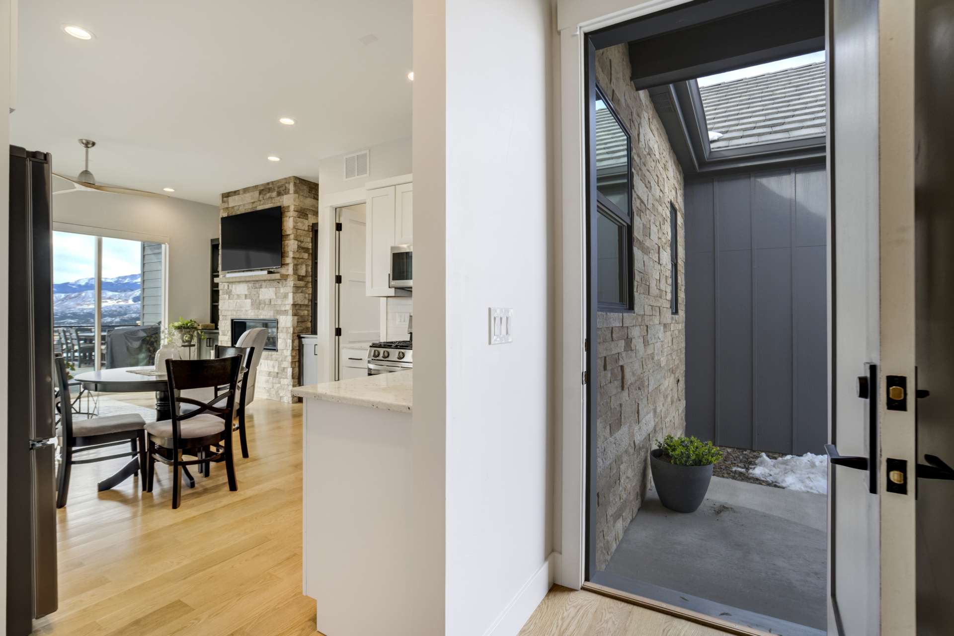 Set within the custom Julep Estates neighborhood of The Farm, this exceptional custom home blends modern Farmhouse architecture with thoughtful design, flexibility, and breathtaking Pikes Peak views. Designed for both everyday comfort and effortless entertaining, the open-concept layout is filled with natural light and seamless indoor/outdoor connections. The great room showcases expansive views of Pikes Peak with a stacking slider that opens to covered patios, creating an ideal setting for indoor/outdoor living. Light hardwood floors, custom finishes, and a dedicated sunroom add warmth and sophistication throughout the main living spaces. The gourmet kitchen anchors the home with an oversized island, granite and marble countertops, double ovens, gas range, and abundant storage—perfect for entertaining friends and family. The main-level primary suite offers a peaceful retreat with mountain views, a spa-inspired bath featuring a soaking tub, oversized custom shower, Carrara marble countertops, and a generous walk-in closet with built-ins. Additional bedrooms provide flexibility for family, guests, or work-from-home needs, while the finished basement expands the living space with a wet bar, workout or recreation room, flex rooms, and a secure vault room. An attached in-law suite provides a private living area with its own entrance, full kitchen, living room with fireplace, bedroom, bathroom, covered deck, and garage —ideal for multigenerational living or extended guests. Outdoor living is equally impressive, with multiple patios, covered decks, a fire pit, a hot tub, a water feature, and professionally landscaped grounds designed for beauty and low maintenance. The oversized 4+ car garages feature extra-tall ceilings, workshop space, EV charging, and extensive storage. With high-performance systems, whole-house audio, fiber-optic connectivity, and designer finishes throughout, this home offers a rare combination of luxury, versatility, and iconic Front Range views.