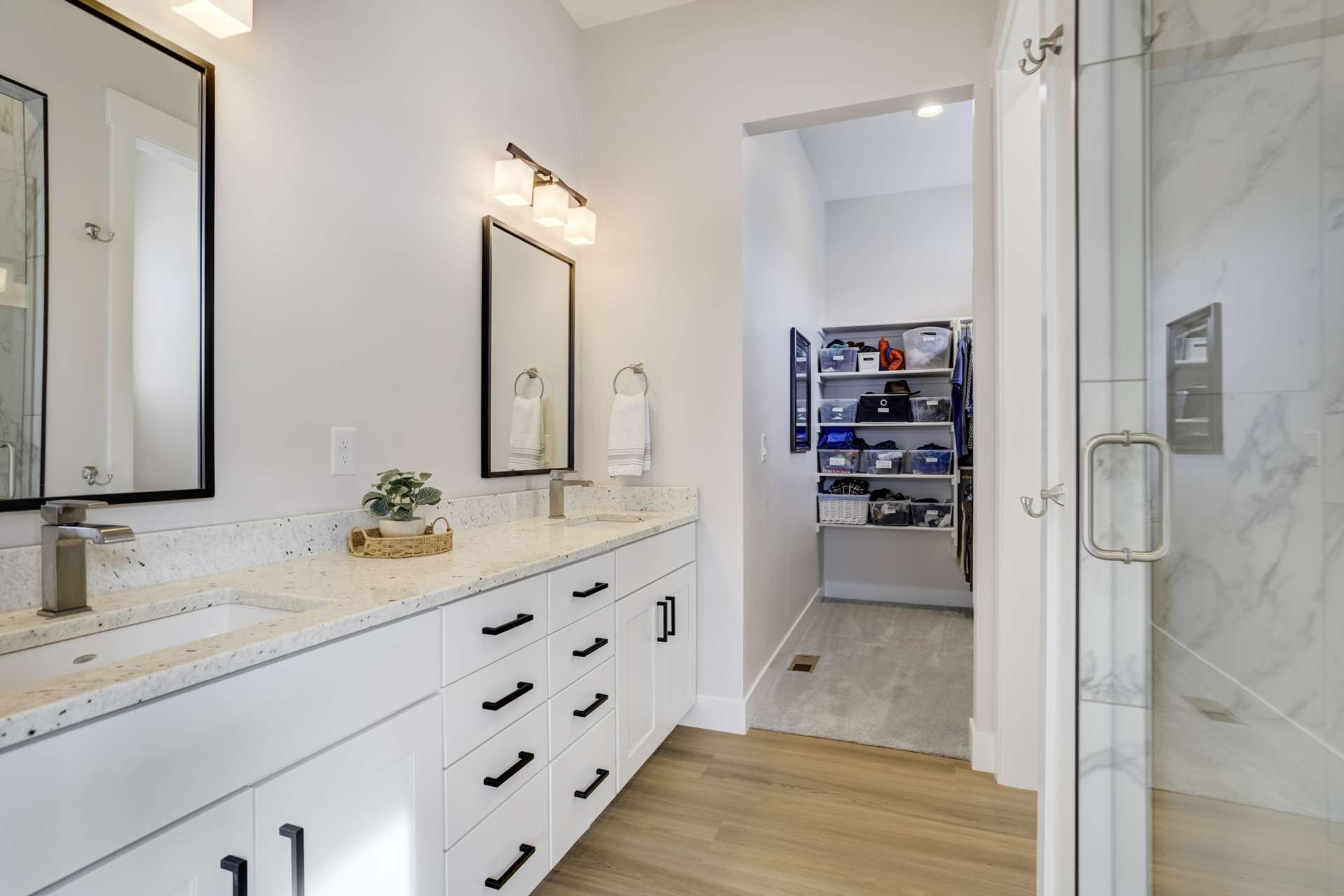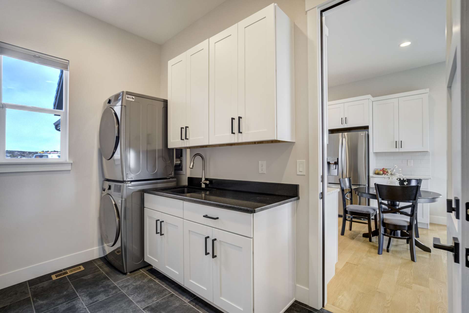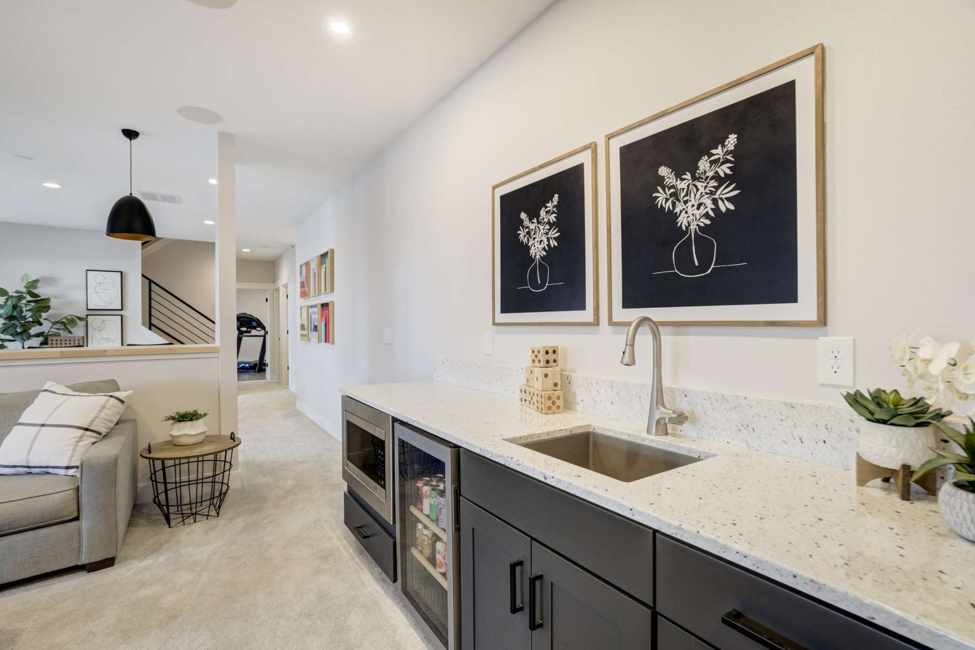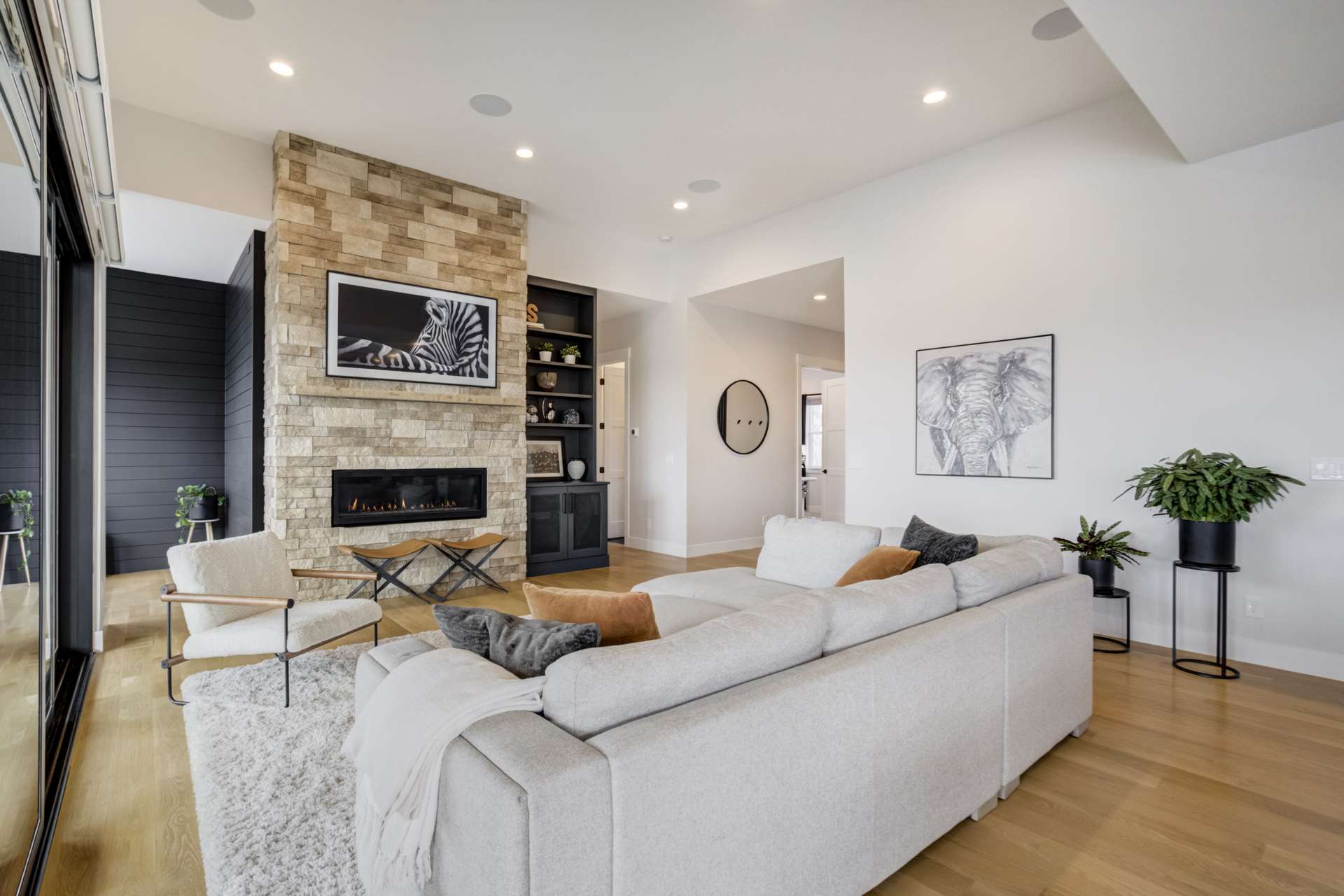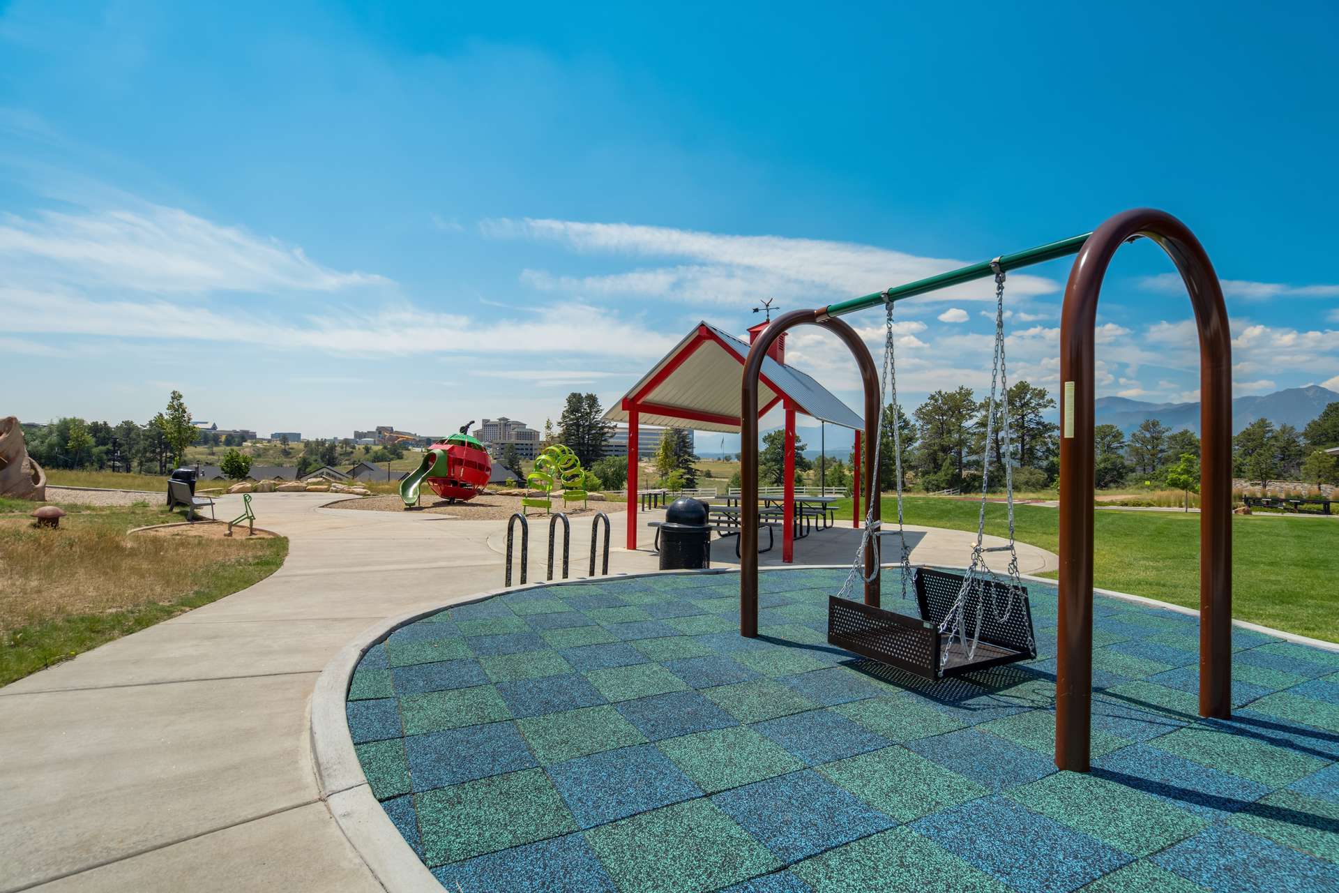 Set within the custom Julep Estates neighborhood of The Farm, this exceptional custom home blends modern Farmhouse architecture with thoughtful design, flexibility, and breathtaking Pikes Peak views. Designed for both everyday comfort and effortless entertaining, the open-concept layout is filled with natural light and seamless indoor/outdoor connections. The great room showcases expansive views of Pikes Peak with a stacking slider that opens to covered patios, creating an ideal setting for indoor/outdoor living. Light hardwood floors, custom finishes, and a dedicated sunroom add warmth and sophistication throughout the main living spaces. The gourmet kitchen anchors the home with an oversized island, granite and marble countertops, double ovens, gas range, and abundant storage—perfect for entertaining friends and family. The main-level primary suite offers a peaceful retreat with mountain views, a spa-inspired bath featuring a soaking tub, oversized custom shower, Carrara marble countertops, and a generous walk-in closet with built-ins. Additional bedrooms provide flexibility for family, guests, or work-from-home needs, while the finished basement expands the living space with a wet bar, workout or recreation room, flex rooms, and a secure vault room. An attached in-law suite provides a private living area with its own entrance, full kitchen, living room with fireplace, bedroom, bathroom, covered deck, and garage —ideal for multigenerational living or extended guests. Outdoor living is equally impressive, with multiple patios, covered decks, a fire pit, a hot tub, a water feature, and professionally landscaped grounds designed for beauty and low maintenance. The oversized 4+ car garages feature extra-tall ceilings, workshop space, EV charging, and extensive storage. With high-performance systems, whole-house audio, fiber-optic connectivity, and designer finishes throughout, this home offers a rare combination of luxury, versatility, and iconic Front Range views.