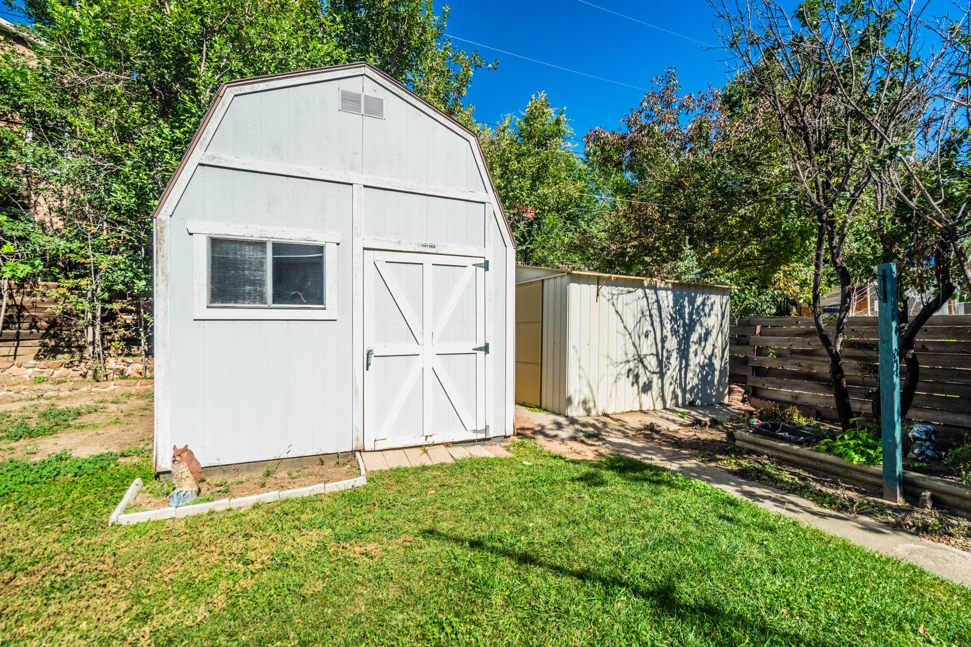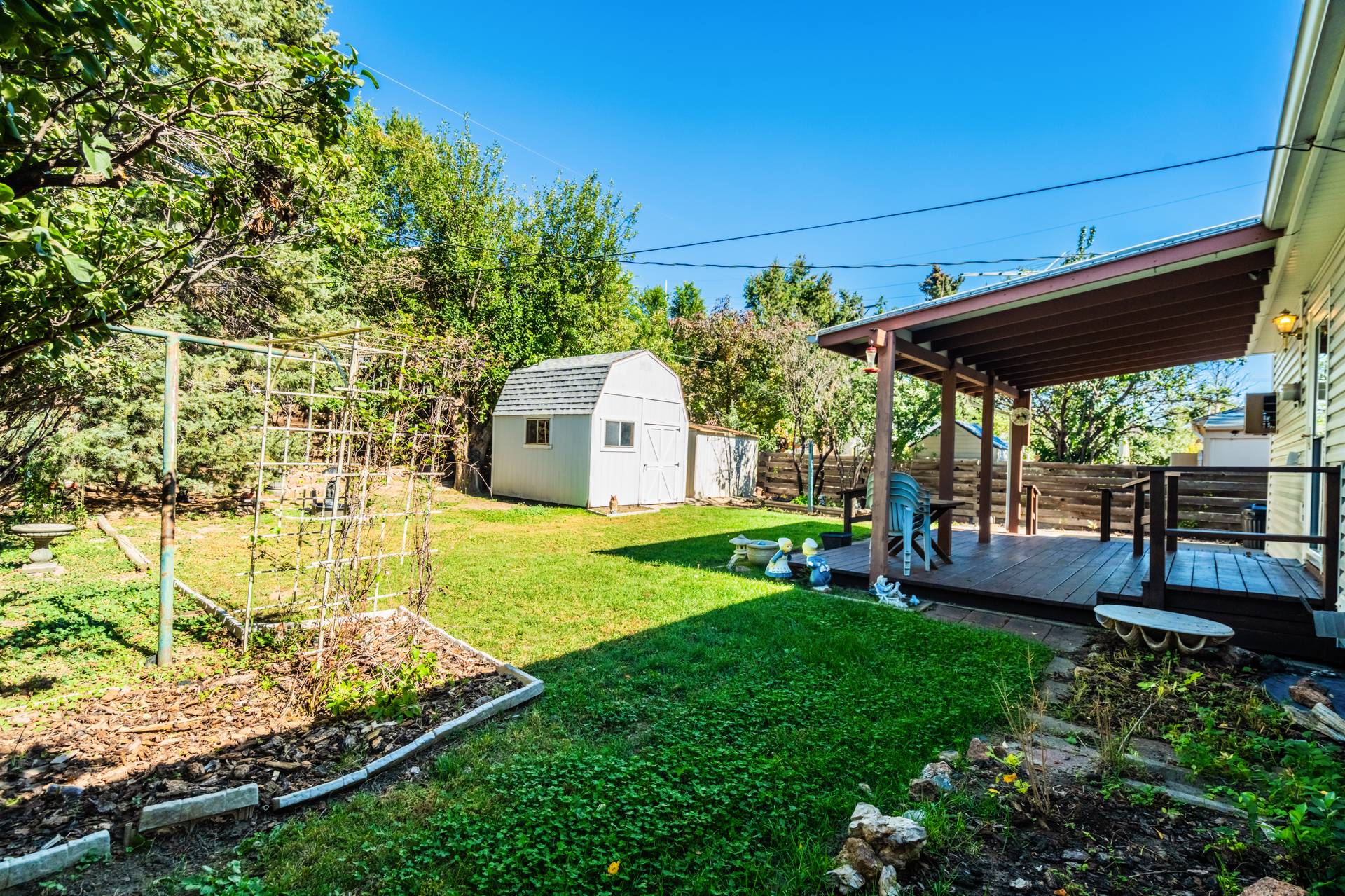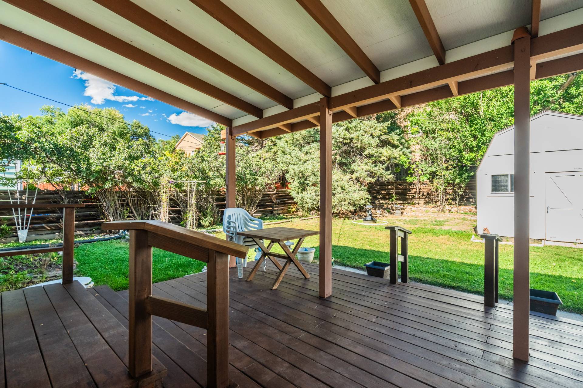 Located in the heart of Indian Heights on the west side, this home sits within walking distance of Garden of the Gods, offering unmatched access to Colorado Springs’ most iconic trails, red rock formations, & scenic open spaces. The setting combines a quiet neighborhood feel w/ close proximity to local coffee shops, dining along West Colorado Ave, & quick access to Mesa Road, Old Colorado City, & downtown. Inside, solid oak hardwood floors span the main level, including all three bedrooms, lending timeless character & warmth. The bright living room opens to the dining area for an easy, connected flow, framed by natural light from the large picture window. The kitchen blends darker wood cabinetry, laminate countertops, & gas cooking, w/ a direct walk-out to the covered back deck, perfect for morning coffee or summer evenings outdoors. The main level bath has an updated vanity, adding a modern touch to the home’s mid-century bones. The finished lower level extends the living space w/ a spacious family room, fourth bedroom, full bath, & laundry area. Out back, the covered wood deck overlooks a fully fenced, level yard w/ mature trees, plus a storage shed for added utility. The carport, vinyl siding, & updated windows round out the practical upgrades, while the location delivers unbeatable outdoor access just steps from Garden of the Gods & nearby hiking, biking, & neighborhood parks. A rare westside find offering everyday comfort, classic hardwood charm, & a true Colorado lifestyle, where Garden of the Gods is literally in your backyard.