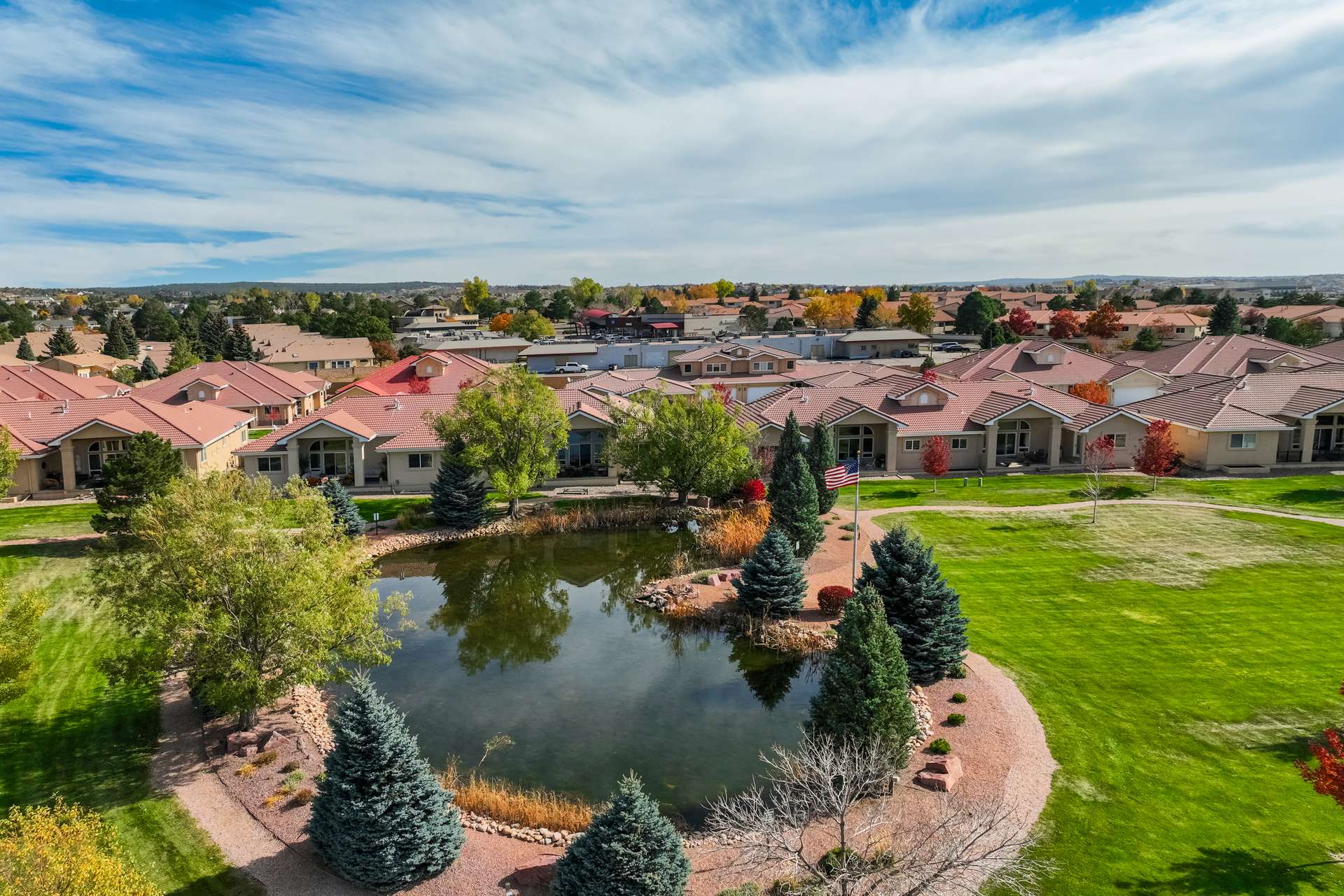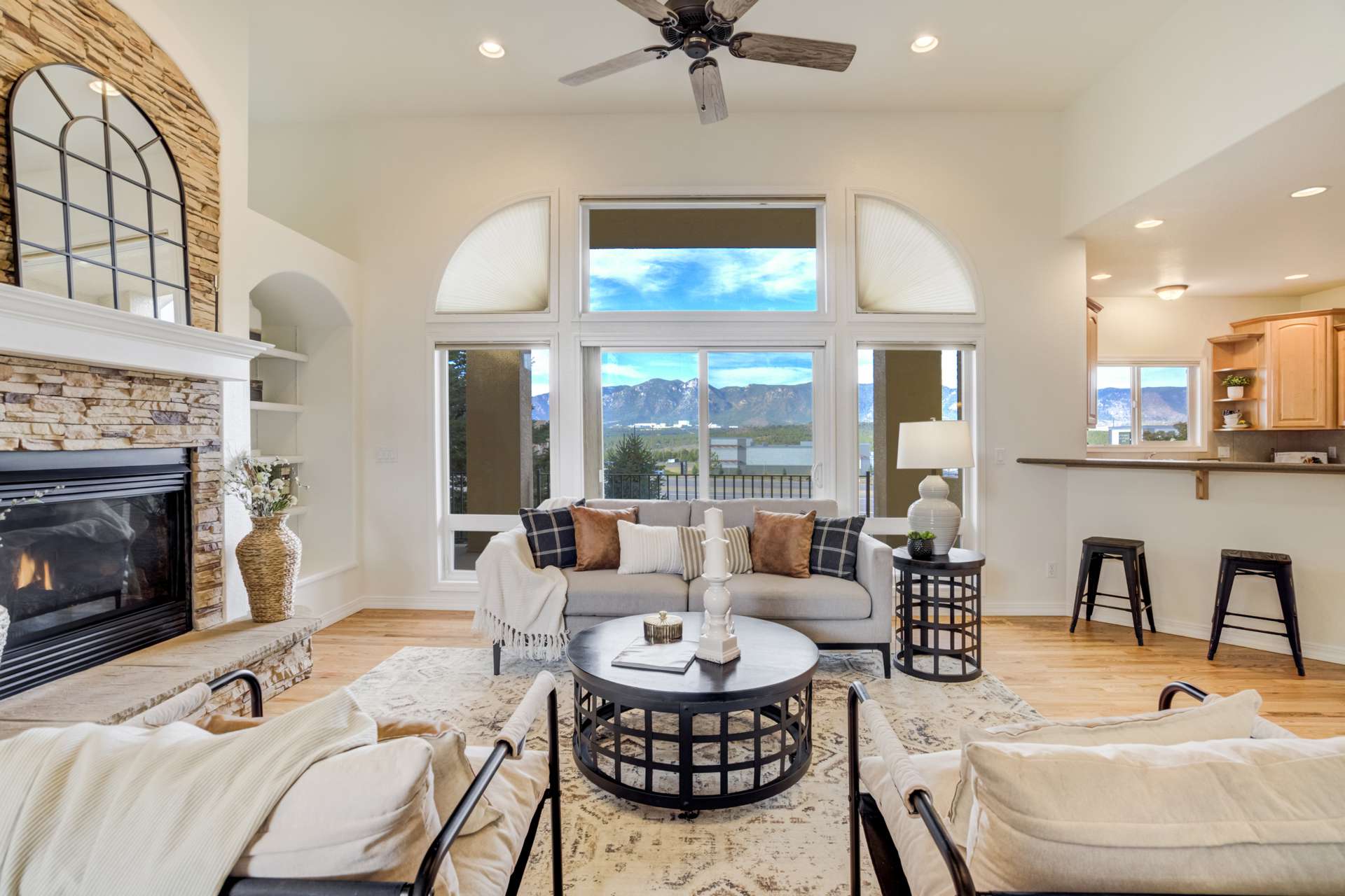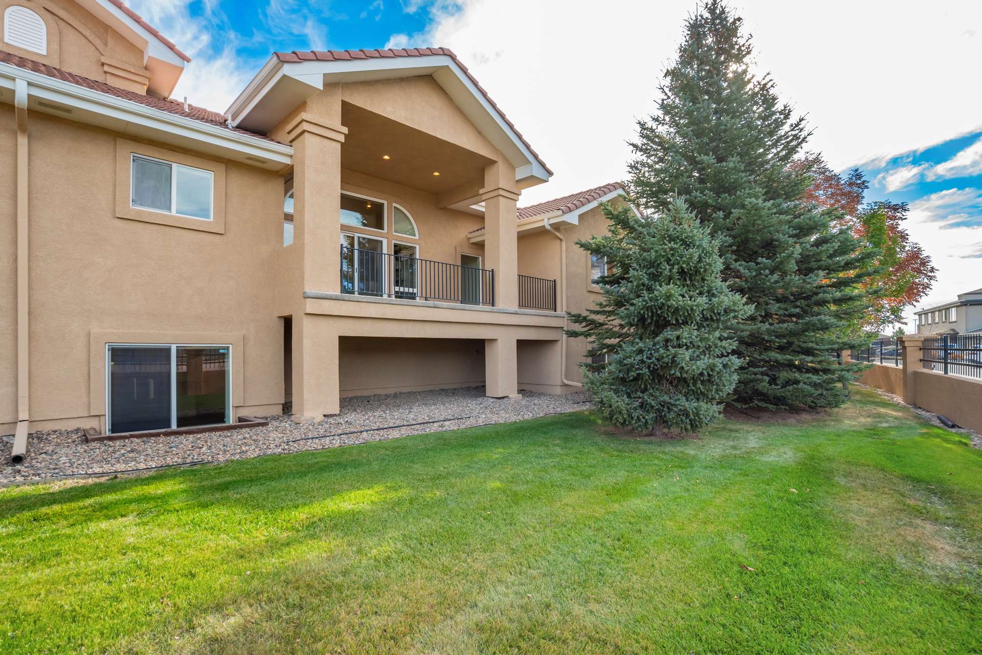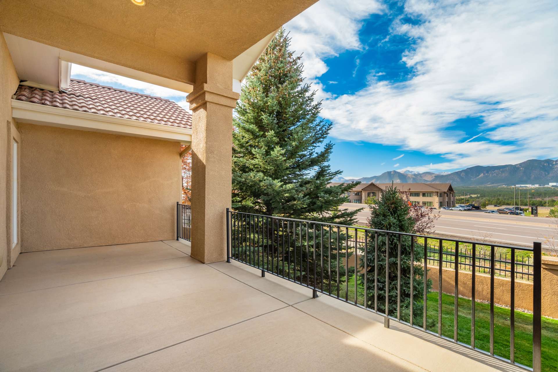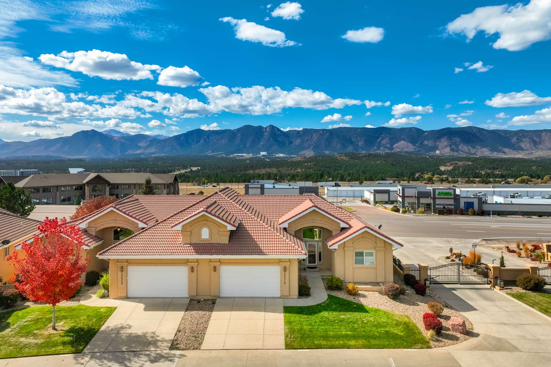 Beautifully maintained and sparkling with brand-new paint, upgraded carpet, and refinished hardwood floors, this move-in-ready ranch-style paired patio home in the gated enclave of Paradise Villas in Gleneagle offers the perfect blend of elegance, comfort, and low-maintenance living. Nestled within a boutique community celebrated for its mountain and USAFA views, manicured lawn spaces, and peaceful setting near Gleneagle’s trail system, this home invites a refined lock-and-leave lifestyle.The sprawling ranch design welcomes you with an inviting great room featuring 12-foot ceilings, a stone-accented gas fireplace, and abundant natural light opening to a covered deck flowing effortlessly from the living room—perfect for enjoying Colorado’s breathtaking sunsets. Designed for easy entertaining, the kitchen offers ample cabinetry, a breakfast bar, and a walk-in pantry, complemented by a separate dining area and main-level laundry with direct garage access.The primary suite is a serene retreat—framed by a mature pine outside the window, capturing the true spirit of Colorado living. The ensuite bath includes a five-piece layout with jetted tub and a spacious walk-in closet, while the secondary main-level bedroom doubles beautifully as a private office. The finished lower level extends the living space with a generous family room featuring a wet bar, a TV/media niche, and an additional bedroom plus flex room/office/fitness area connected by a full bath with split vanities—perfect for guests or multi-generational living. Lovingly cared for by its original owner, this timeless home combines refinement and practicality in one of Gleneagle’s most desirable gated communities, with parks, trails, award-winning D-20 schools, and quick access to I-25, Northgate, and Monument’s shopping and dining.