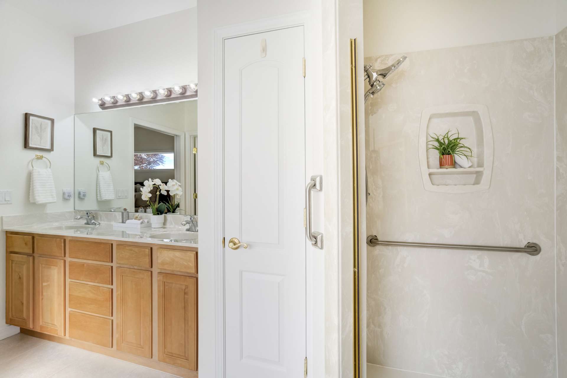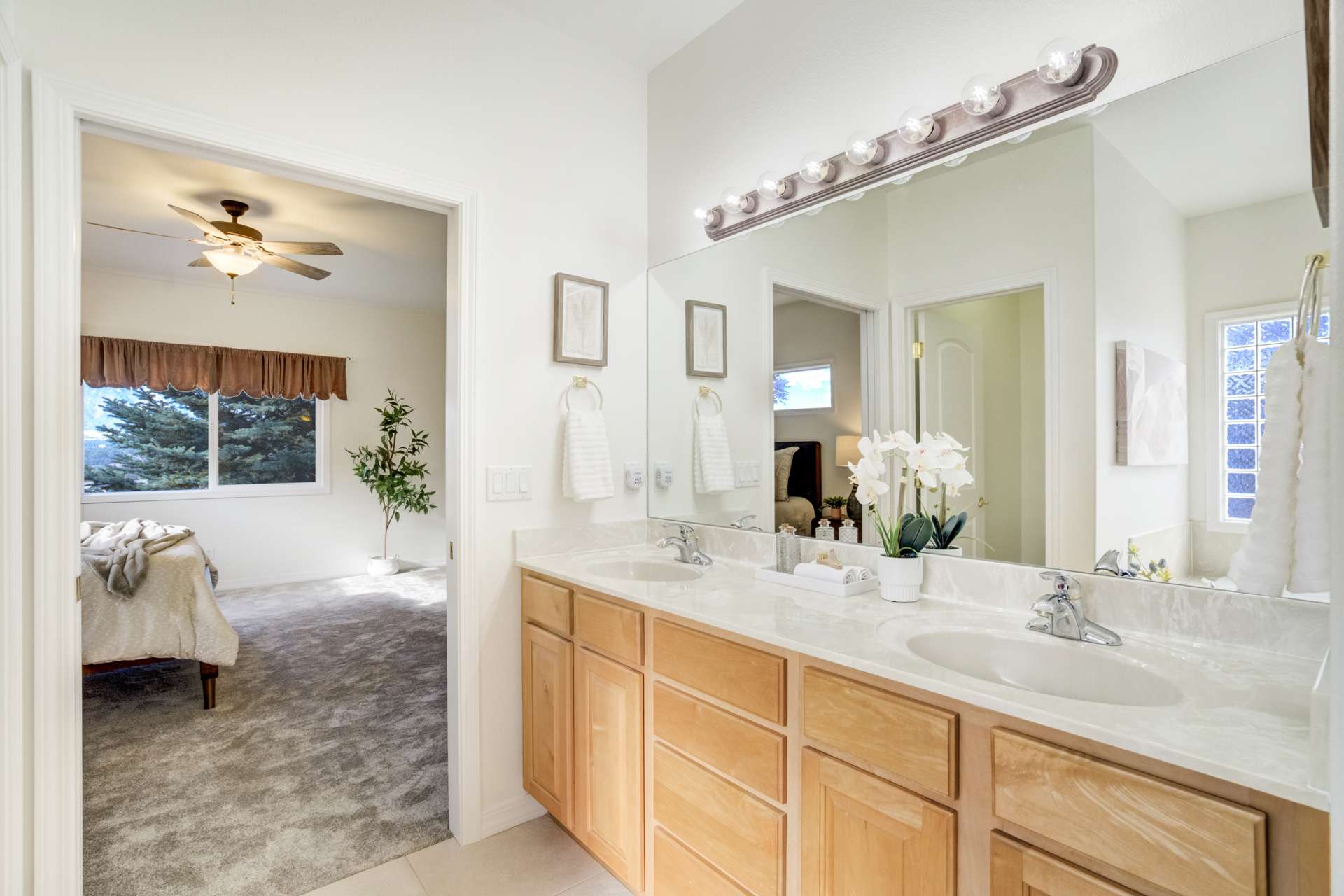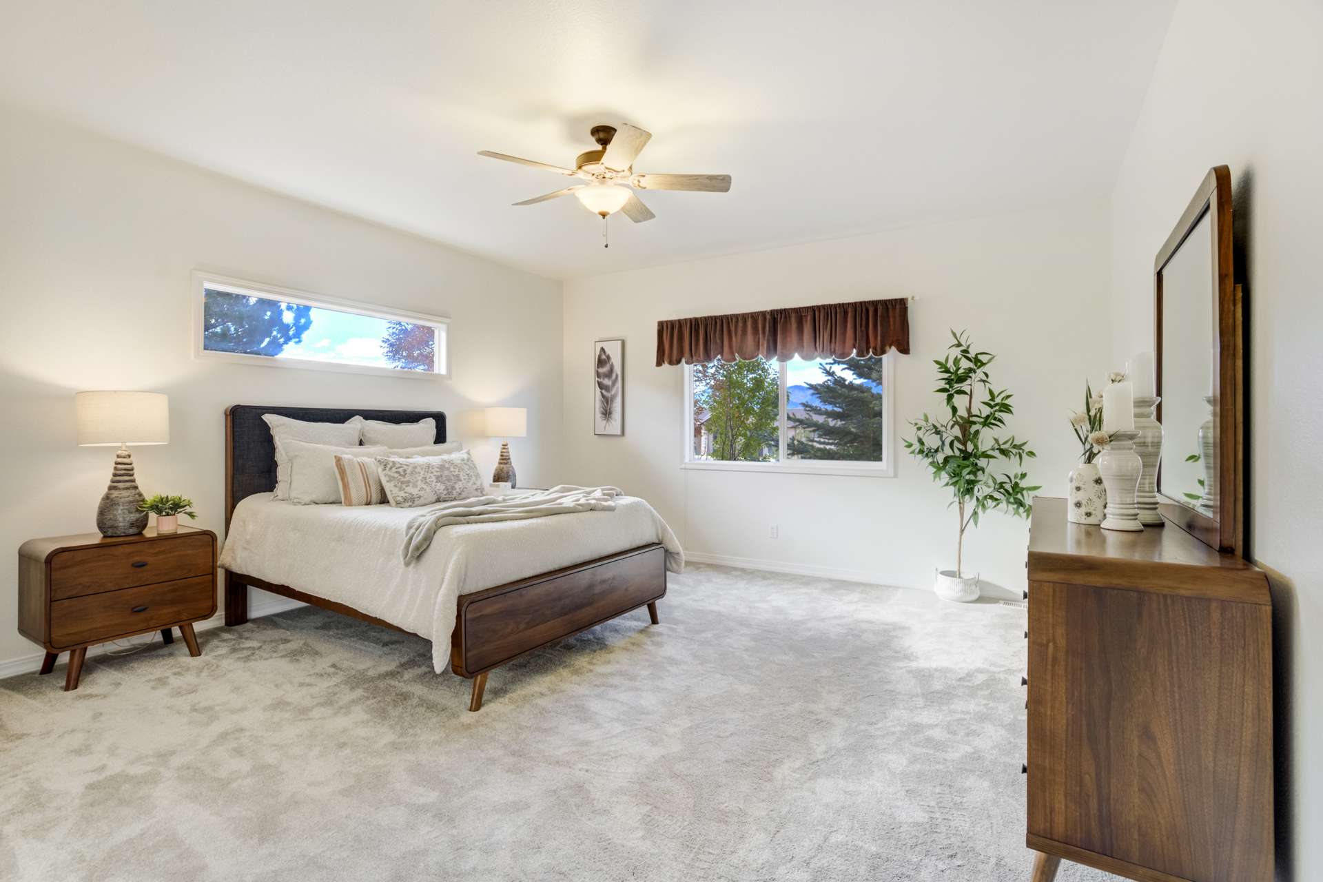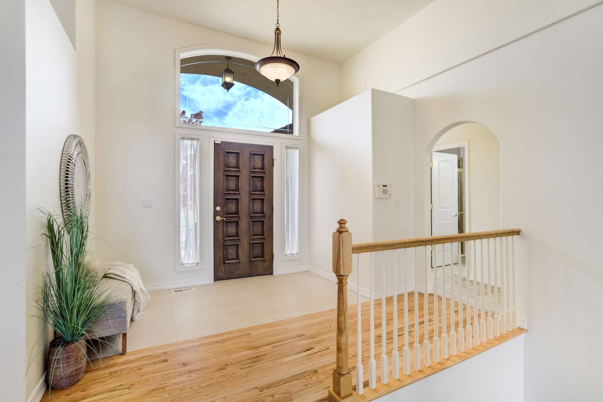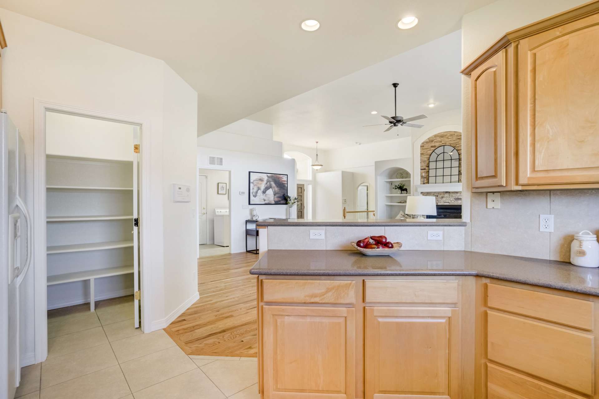 Beautifully maintained and sparkling with brand-new paint, upgraded carpet, and refinished hardwood floors, this move-in-ready ranch-style paired patio home in the gated enclave of Paradise Villas in Gleneagle offers the perfect blend of elegance, comfort, and low-maintenance living. Nestled within a boutique community celebrated for its mountain and USAFA views, manicured lawn spaces, and peaceful setting near Gleneagle’s trail system, this home invites a refined lock-and-leave lifestyle.The sprawling ranch design welcomes you with an inviting great room featuring 12-foot ceilings, a stone-accented gas fireplace, and abundant natural light opening to a covered deck flowing effortlessly from the living room—perfect for enjoying Colorado’s breathtaking sunsets. Designed for easy entertaining, the kitchen offers ample cabinetry, a breakfast bar, and a walk-in pantry, complemented by a separate dining area and main-level laundry with direct garage access.The primary suite is a serene retreat—framed by a mature pine outside the window, capturing the true spirit of Colorado living. The ensuite bath includes a five-piece layout with jetted tub and a spacious walk-in closet, while the secondary main-level bedroom doubles beautifully as a private office. The finished lower level extends the living space with a generous family room featuring a wet bar, a TV/media niche, and an additional bedroom plus flex room/office/fitness area connected by a full bath with split vanities—perfect for guests or multi-generational living. Lovingly cared for by its original owner, this timeless home combines refinement and practicality in one of Gleneagle’s most desirable gated communities, with parks, trails, award-winning D-20 schools, and quick access to I-25, Northgate, and Monument’s shopping and dining.