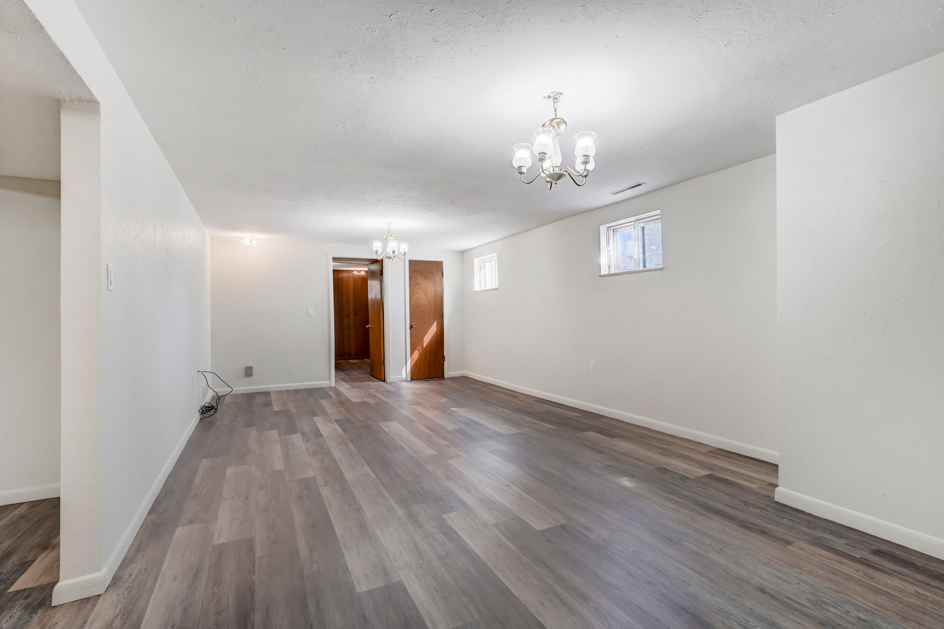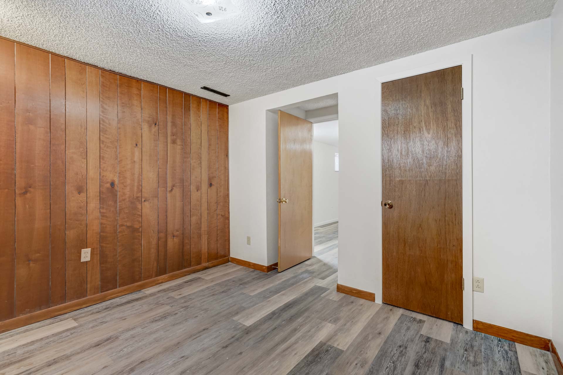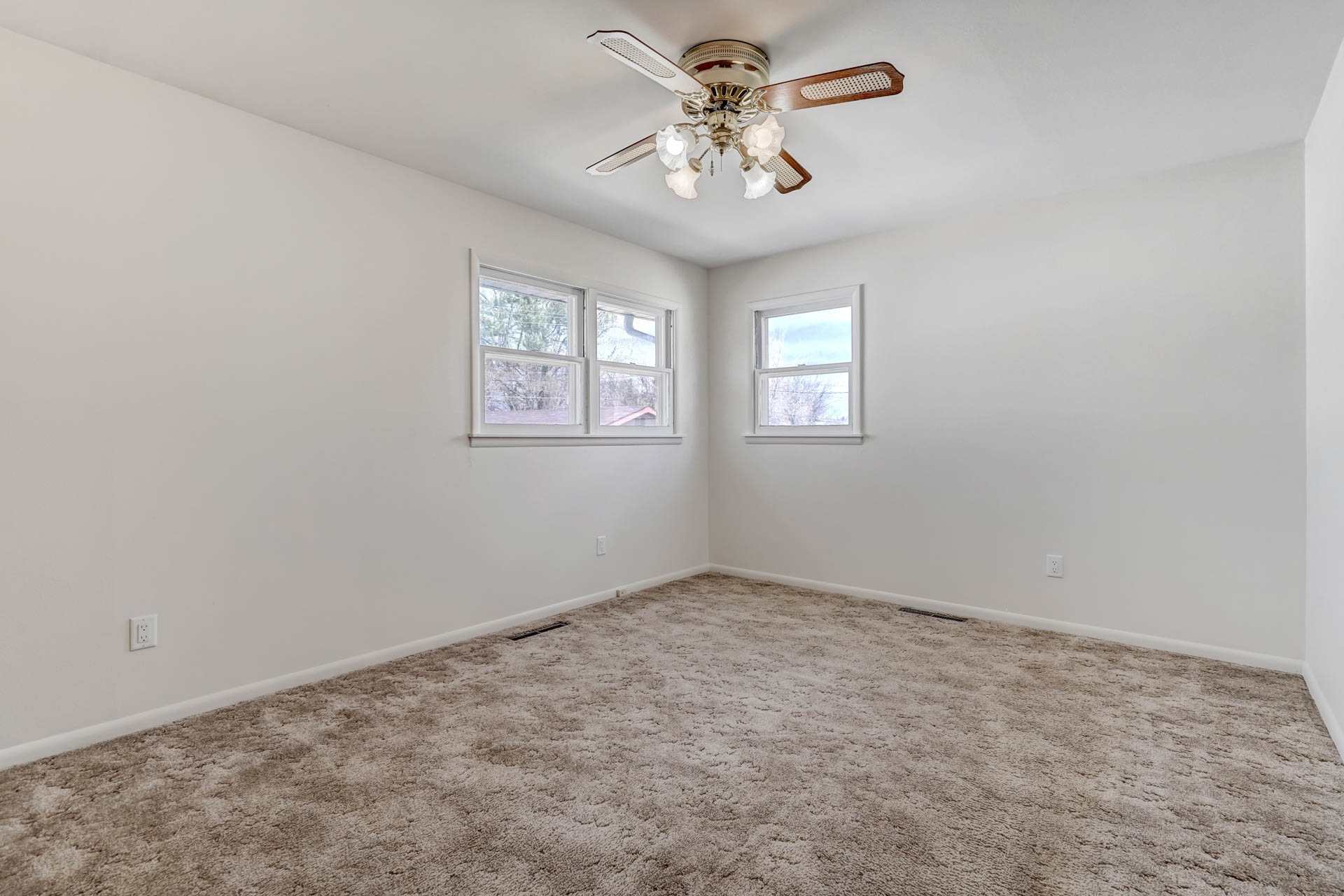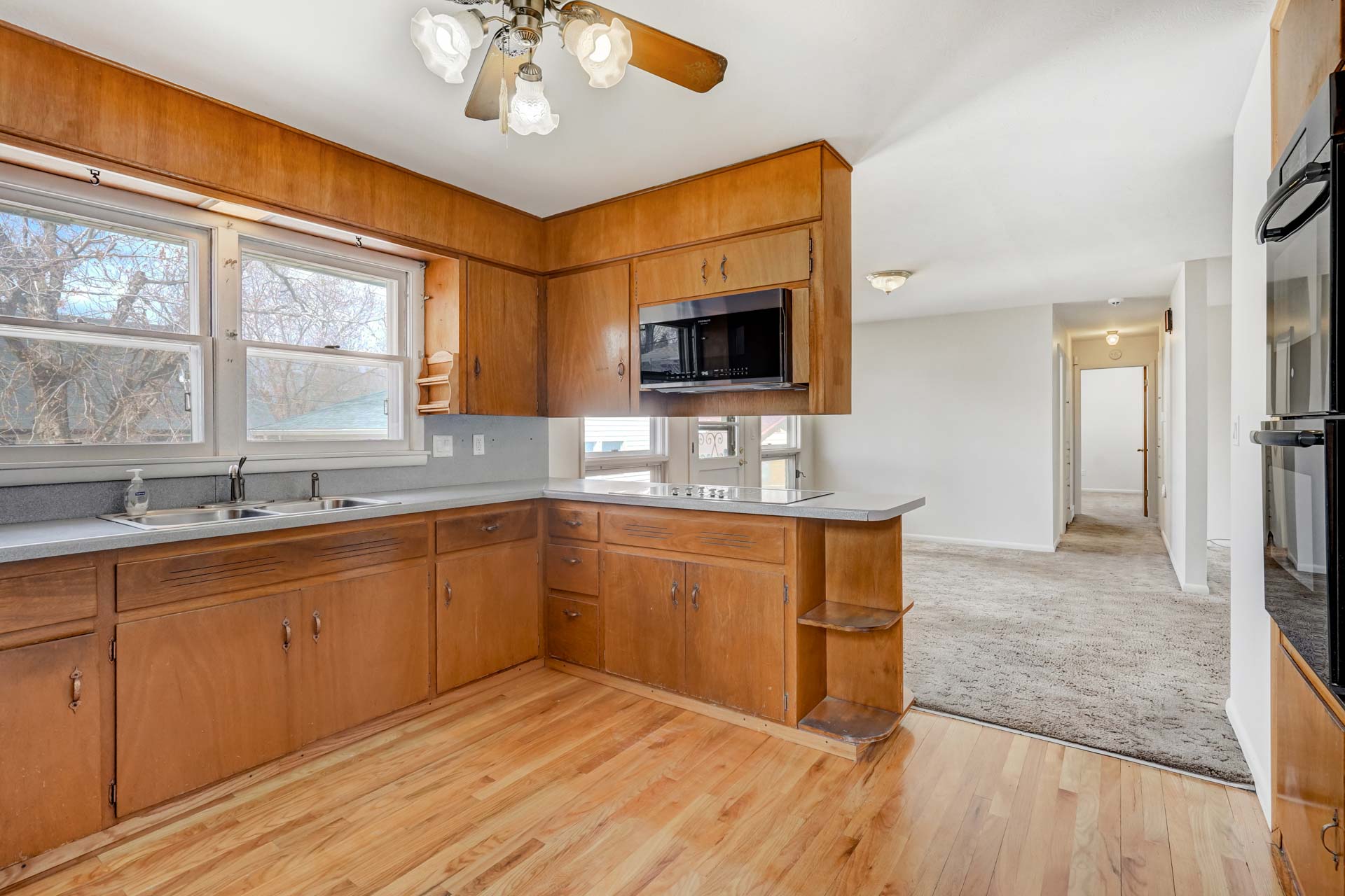 Centrally located ranch style home with a fresh coat of interior paint and a brand-new roof. Beautiful entry with new storm door. This 5 bedroom and 2 bath former model home boasts a one car attached garage and a detached oversized two car garage. Imagine what the preserved hardwood floors look like! The kitchen has plenty of cabinet and counter top space with newer appliances. Enjoy three generous bedrooms and a full bathroom on the main level as well as retro cabinets and drawers for storage. Walk out to the nice yard with green grass and extensive patio for evening BBQ’s. Downstairs boasts newer LVP. The laundry area has been opened up to create space for a 2nd kitchen or flex space depending on your needs. Two more bedrooms, a family room and a ¾ bath round out the space. Lots of storage in the crawlspace. Come check out this Palmer Park area gem today.