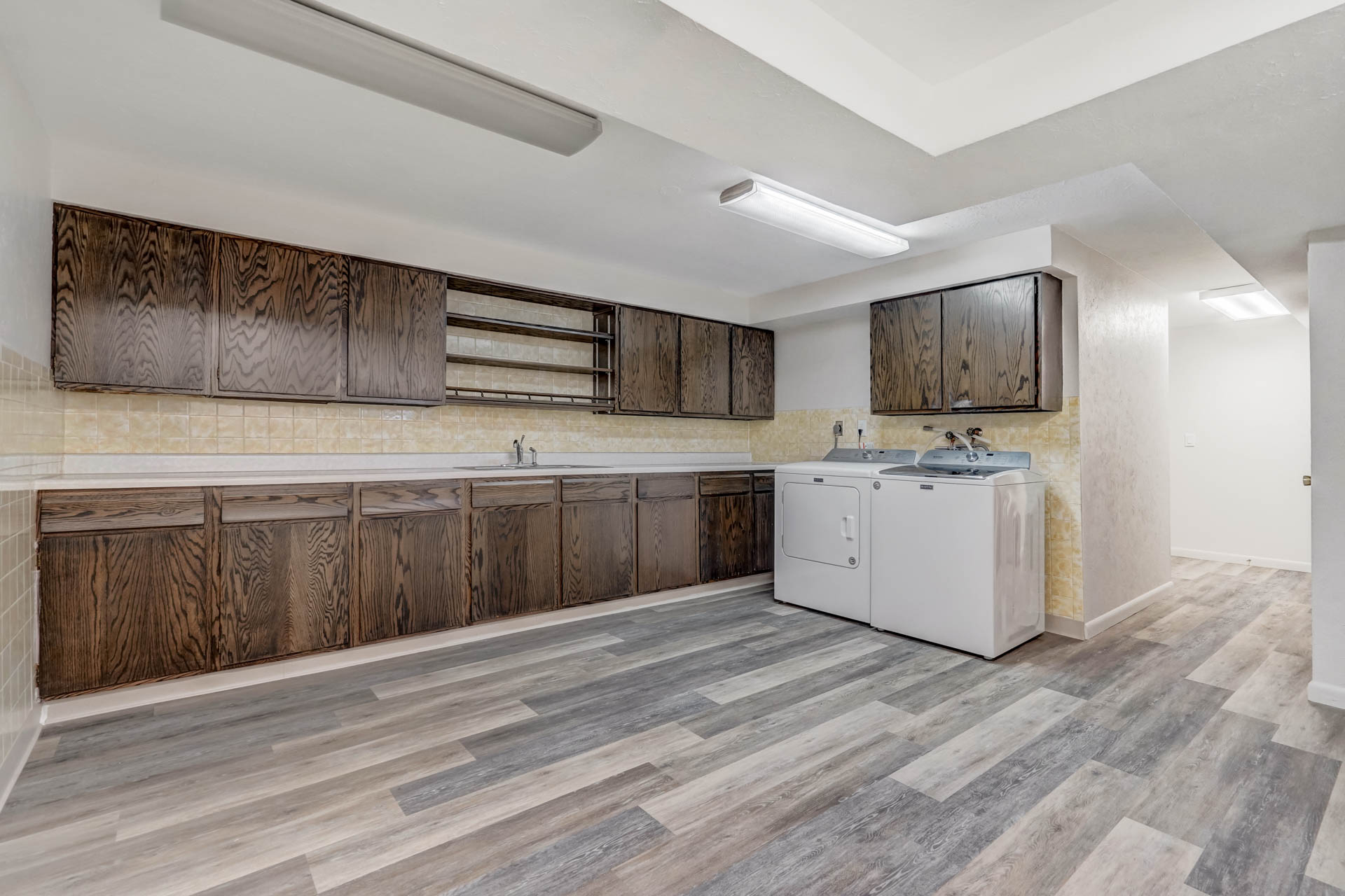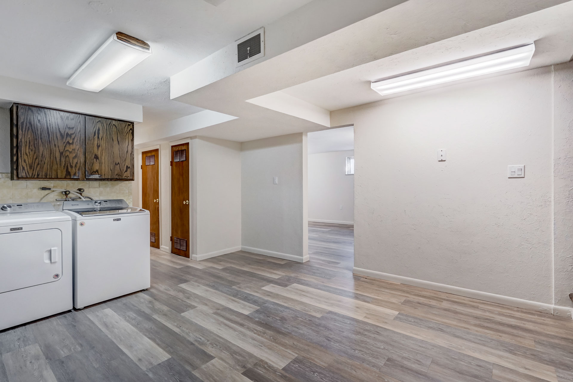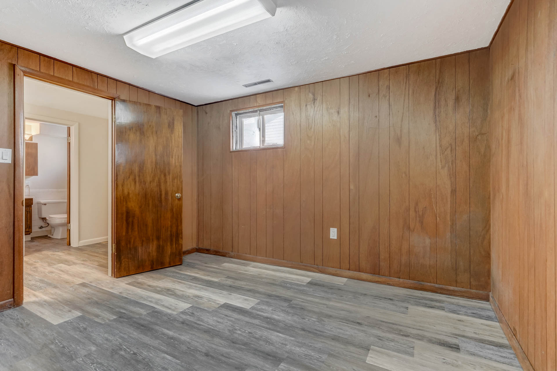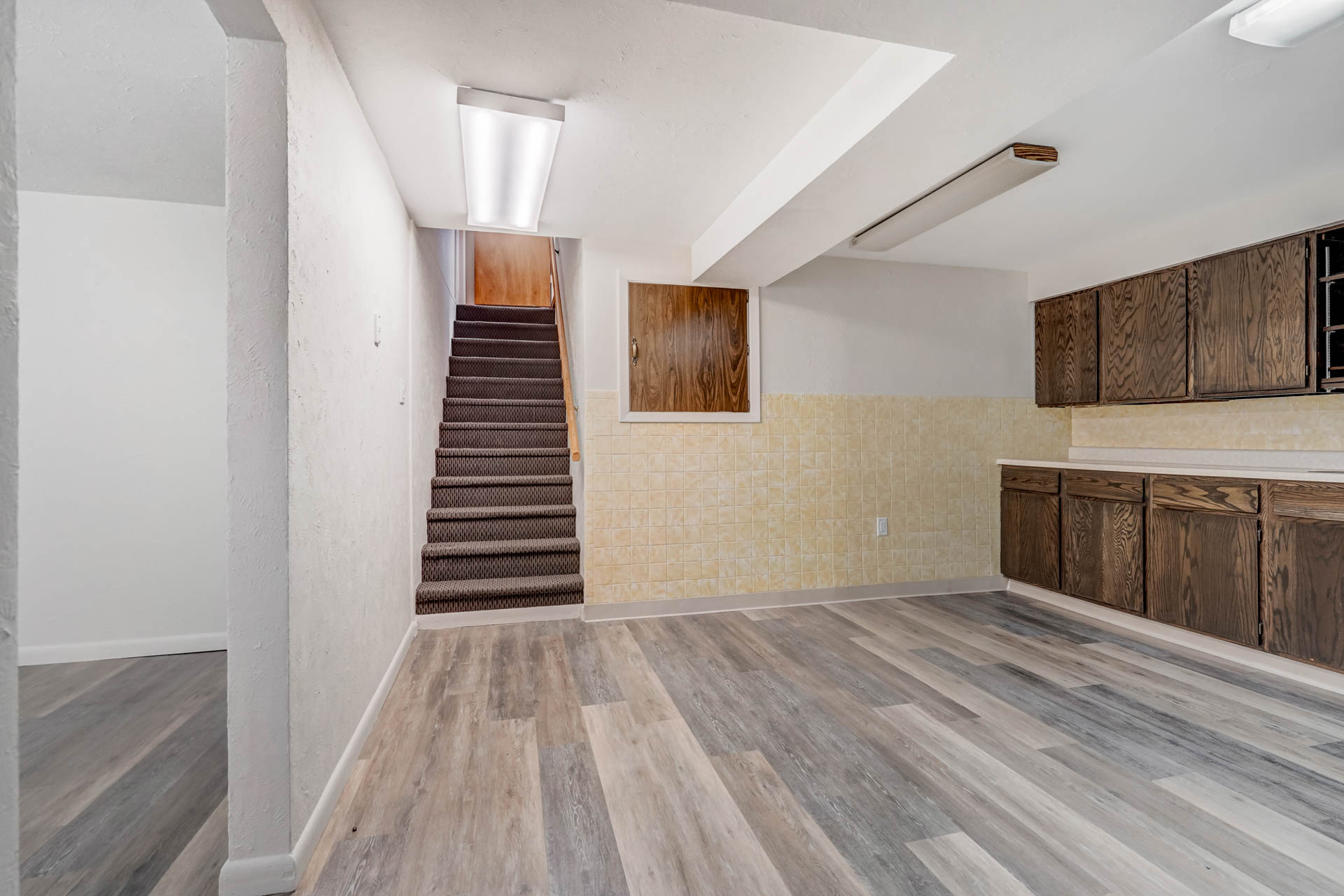Centrally located ranch style home with a fresh coat of interior paint and a brand-new roof. Beautiful entry with new storm door. This 5 bedroom and 2 bath former model home boasts a one car attached garage and a detached oversized two car garage. Imagine what the preserved hardwood floors look like! The kitchen has plenty of cabinet and counter top space with newer appliances. Enjoy three generous bedrooms and a full bathroom on the main level as well as retro cabinets and drawers for storage. Walk out to the nice yard with green grass and extensive patio for evening BBQ’s. Downstairs boasts newer LVP. The laundry area has been opened up to create space for a 2nd kitchen or flex space depending on your needs. Two more bedrooms, a family room and a ¾ bath round out the space. Lots of storage in the crawlspace. Come check out this Palmer Park area gem today.