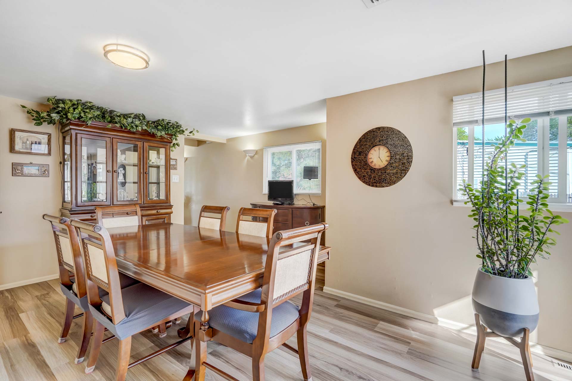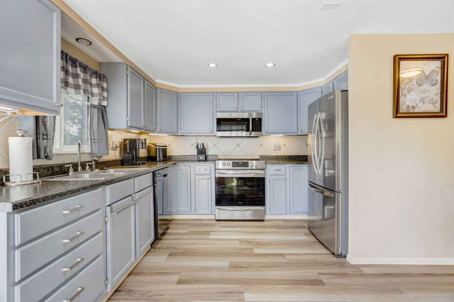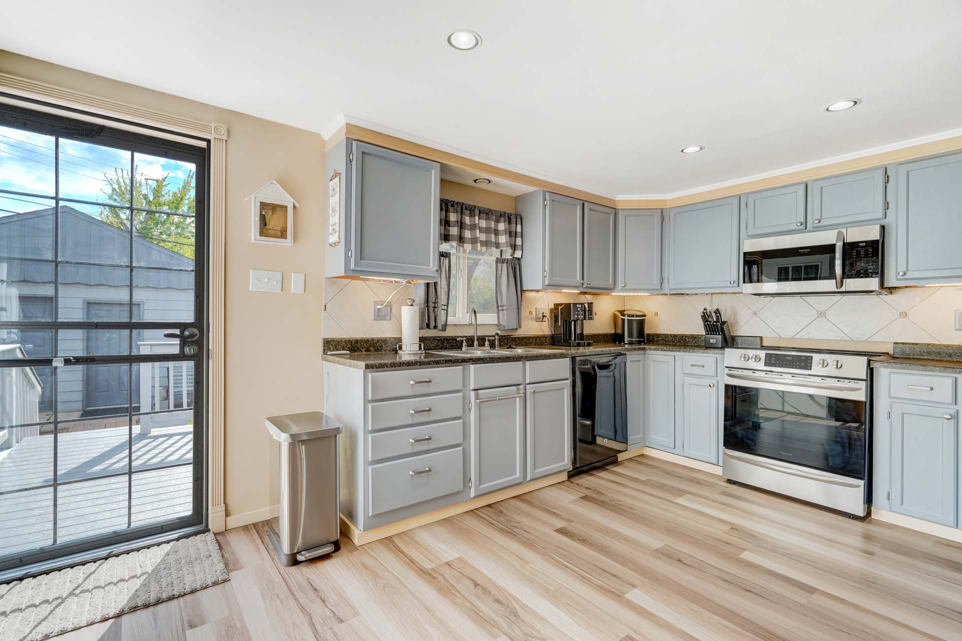 Welcome to your inviting ranch-style retreat! This 4-bedroom, 2-bathroom home is a haven of comfort and convenience. Step inside to find a peaceful main level featuring a cozy primary bedroom with its own attached bathroom. The kitchen and dining area boast newer luxury vinyl plank flooring, blending style with durability. Plus, enjoy the convenience of all newer Frigidaire appliances, including an oven with air fryer capabilities, perfect for creating delicious meals with ease. An additional bedroom on the main level offers flexibility, ideal for a home office or extra space. Downstairs, the finished basement provides an extra living space, two more bedrooms, and another bathroom, perfect for guests or growing families. Outside, a recently installed concrete driveway welcomes you home, complemented by fresh exterior paint and a newly installed fence that encloses the backyard for privacy and security. Explore the attic for additional storage space. Don’t miss the newly built Trex deck, complete with an electric awning equipped with LED lights, ready for outdoor relaxation and entertainment. With its welcoming atmosphere and thoughtful details, this impeccably maintained ranch-style retreat is waiting to welcome you home.