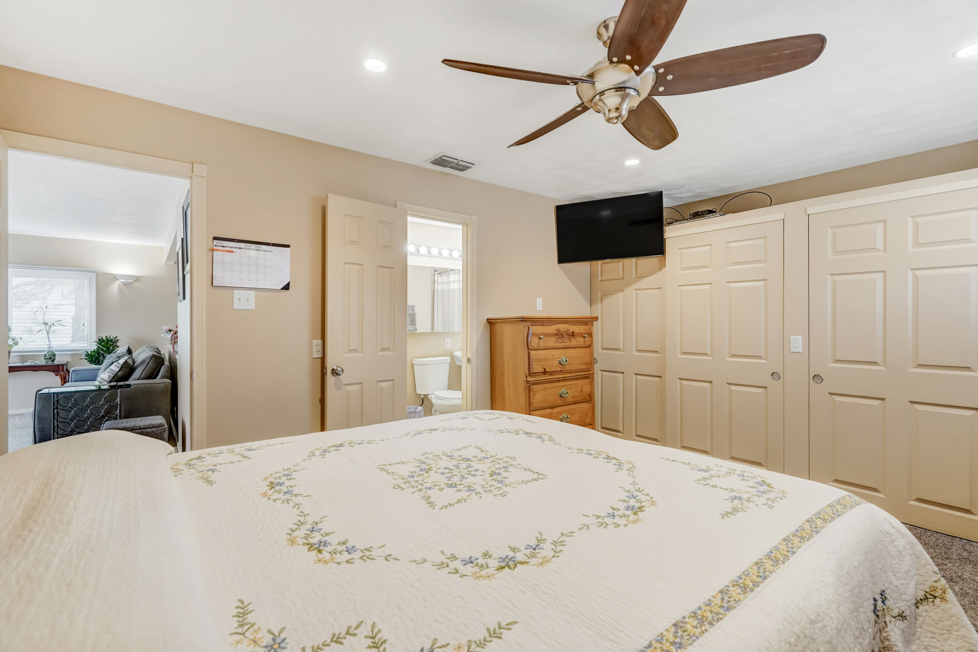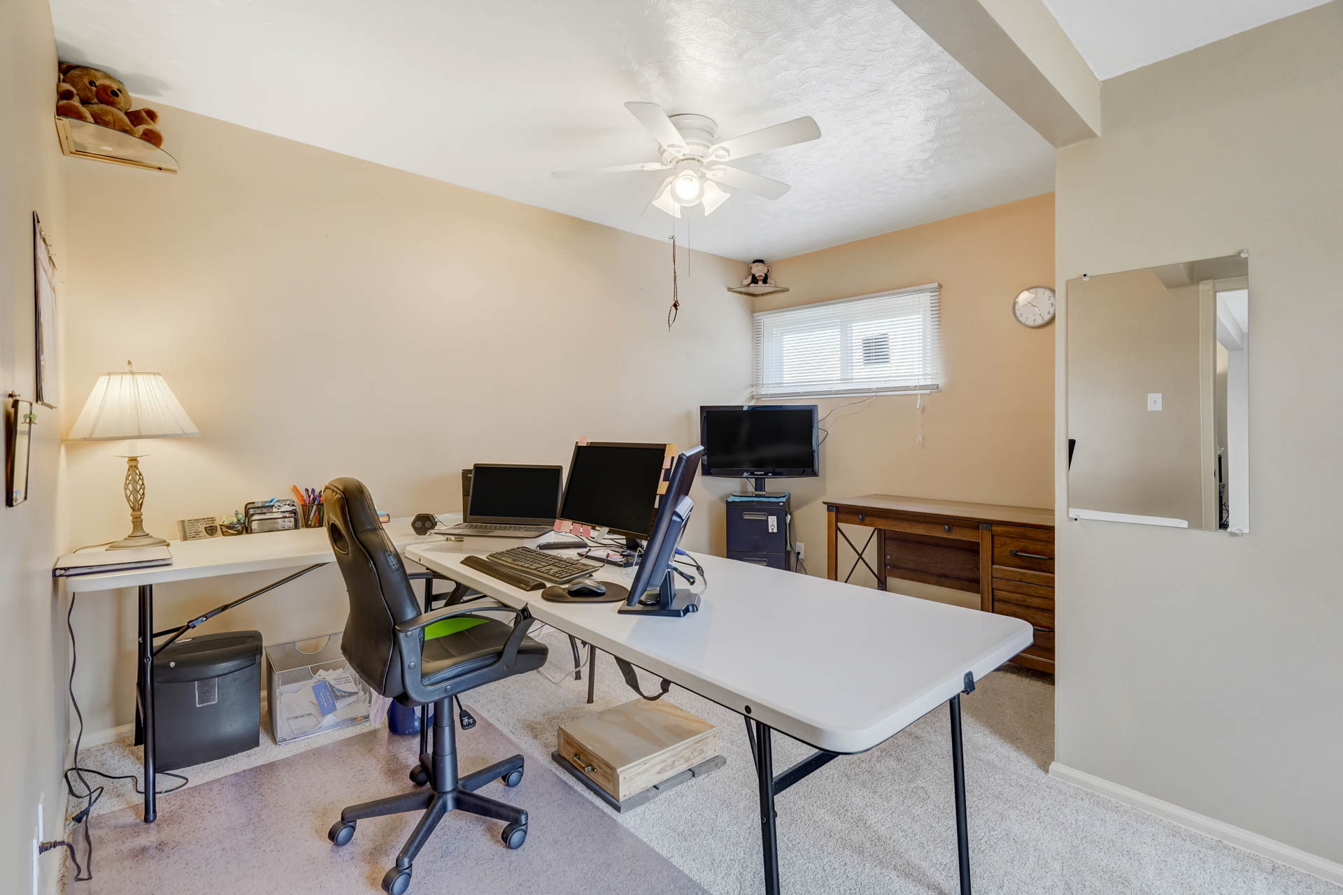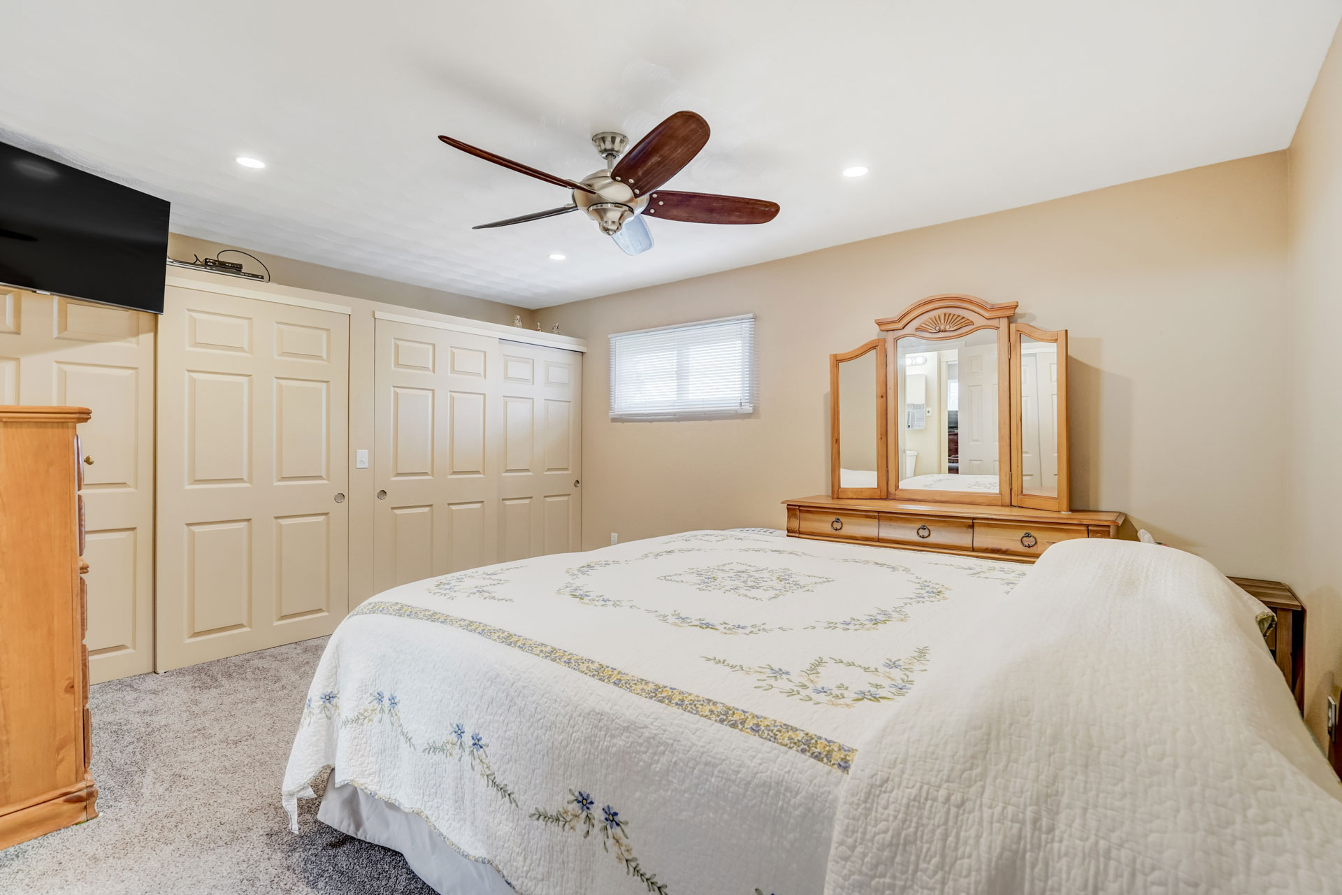 Welcome to your inviting ranch-style retreat! This 4-bedroom, 2-bathroom home is a haven of comfort and convenience. Step inside to find a peaceful main level featuring a cozy primary bedroom with its own attached bathroom. The kitchen and dining area boast newer luxury vinyl plank flooring, blending style with durability. Plus, enjoy the convenience of all newer Frigidaire appliances, including an oven with air fryer capabilities, perfect for creating delicious meals with ease. An additional bedroom on the main level offers flexibility, ideal for a home office or extra space. Downstairs, the finished basement provides an extra living space, two more bedrooms, and another bathroom, perfect for guests or growing families. Outside, a recently installed concrete driveway welcomes you home, complemented by fresh exterior paint and a newly installed fence that encloses the backyard for privacy and security. Explore the attic for additional storage space. Don’t miss the newly built Trex deck, complete with an electric awning equipped with LED lights, ready for outdoor relaxation and entertainment. With its welcoming atmosphere and thoughtful details, this impeccably maintained ranch-style retreat is waiting to welcome you home.