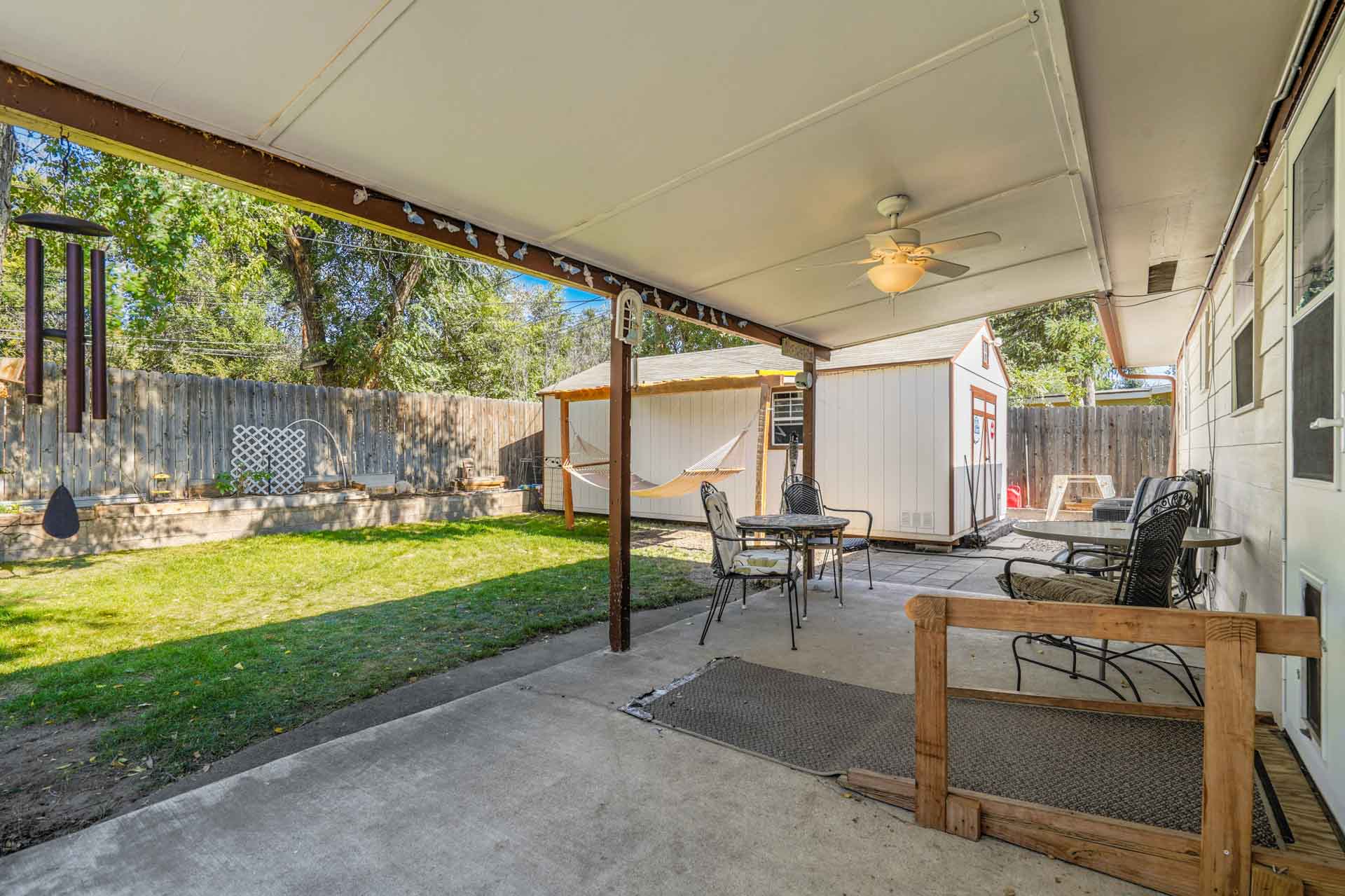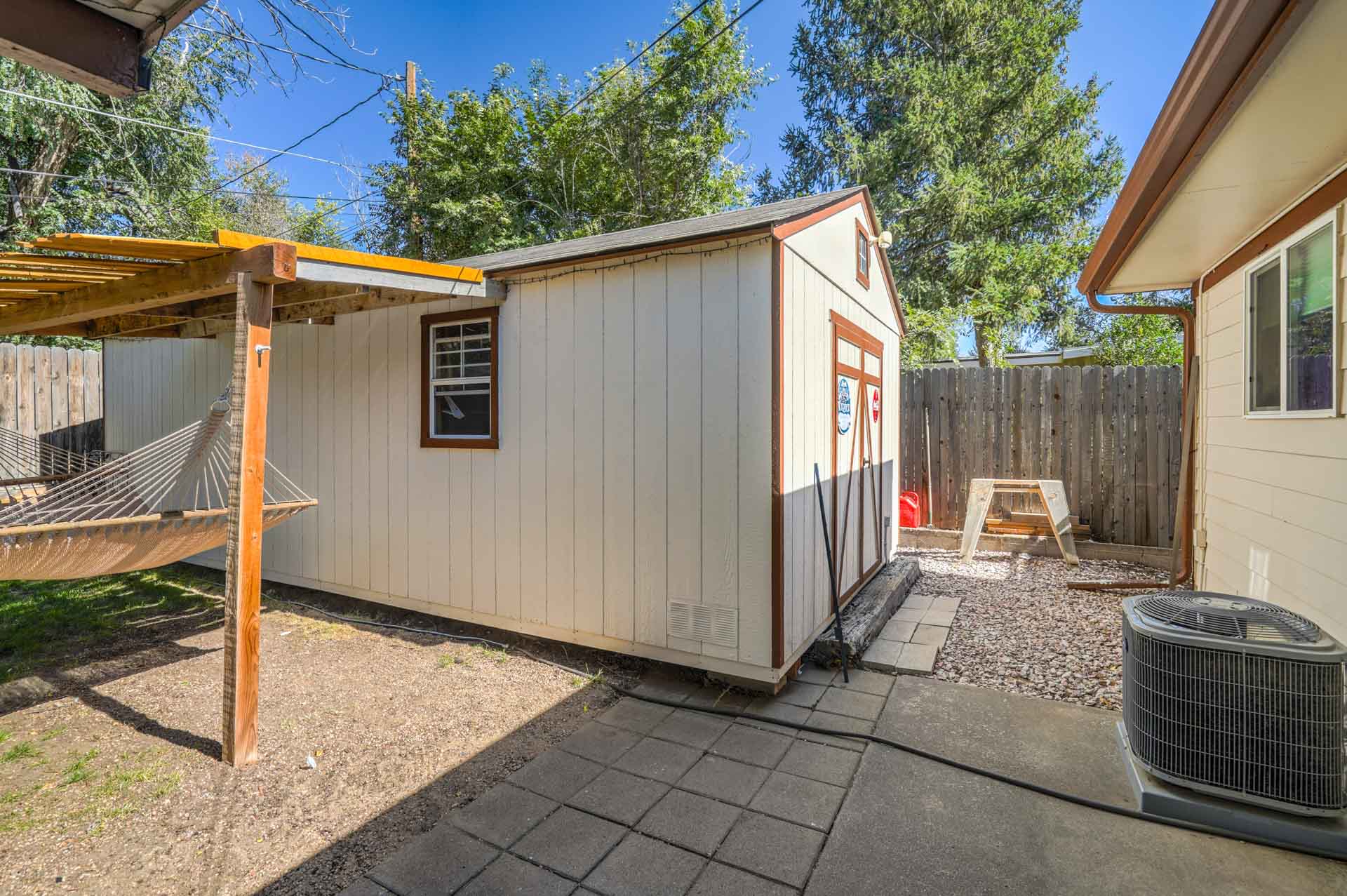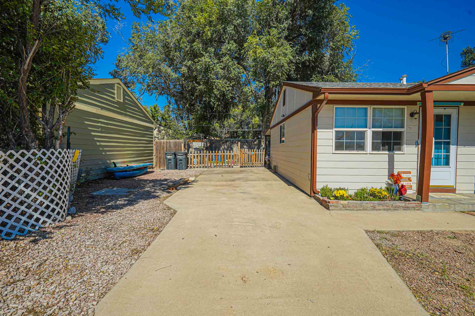Adorable 3 bedroom, 1 bathroom Rancher with RV Parking located in Security/Widefield area! This charming home welcomes you into the living room with ample natural light, freshly painted interior & new honeycomb blinds throughout. The eat-in country kitchen has a new Samsung gas range oven & fancy refrigerator; both include transferable warranties. New stackable Washer & Dryer conveniently located in hallway leading to the bedrooms. Down the hallway, you'll find the spacious master bedroom (large enough to fit a king sized bed), 2 additional bedrooms & bathroom. Access to the fenced backyard from the kitchen/dining area provides enjoyment to the covered patio & large storage shed! The shed not only has extra storage, but provides the perfect workshop, which includes a large workbench & electricity. The landscaped yard also features a fire pit in the back yard perfect for summer nights. Home provides RV hookups which include a 50amp breaker & waste connection. New A/C was installed in (2022), Furnace (2020), Electrical Panel updated to 200Amps (2022), Painted Exterior (2021), Roof (2018). The sewer line has been previously replaced from the home to city main with 2 exterior clean outs. The home currently has a security system installed & service can be resumed by new buyer through Cove if desired. This home has been loved & well cared for over the years, providing you the peace of mind that many big ticket items have already been addressed. Don't miss your opportunity for a great investment!