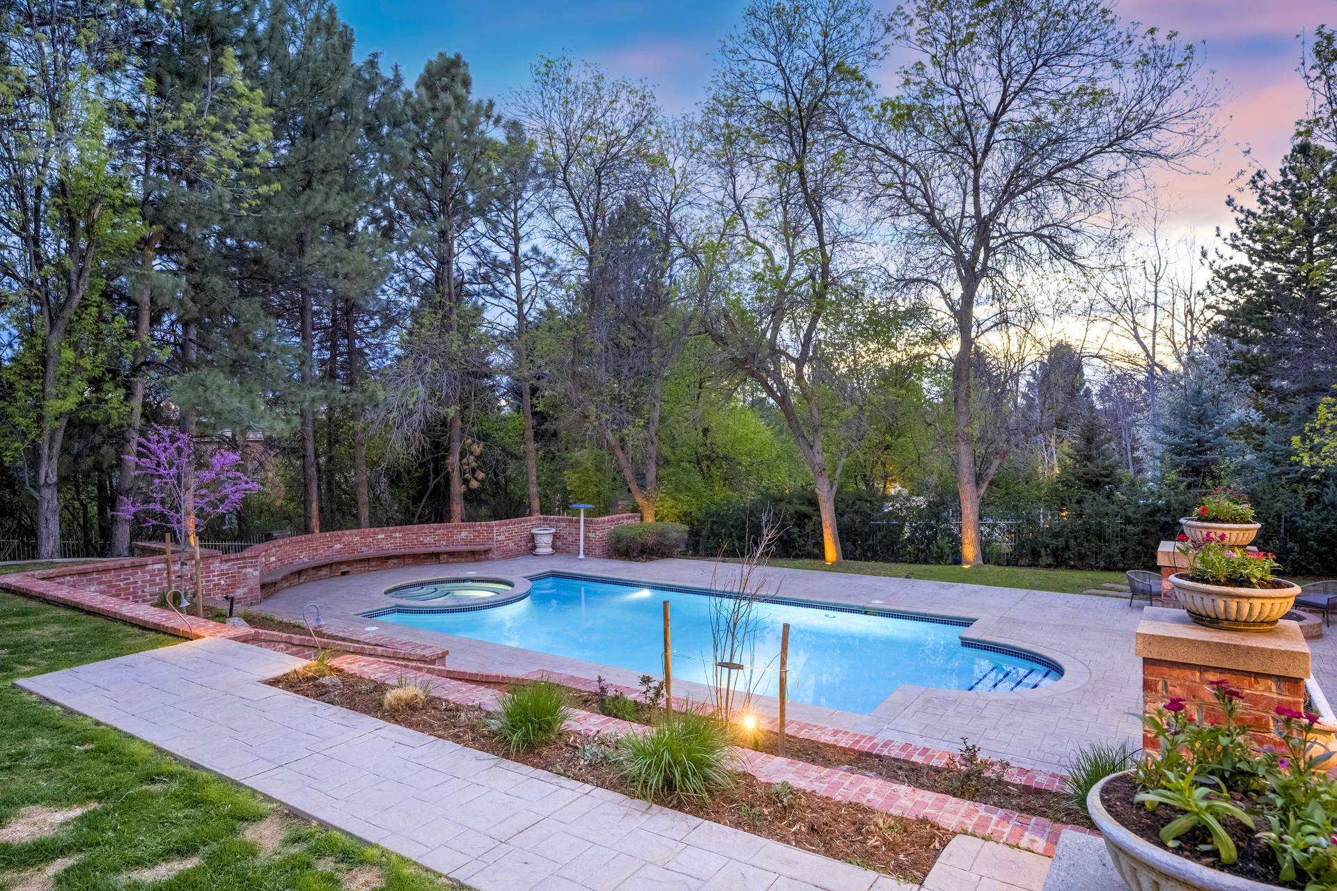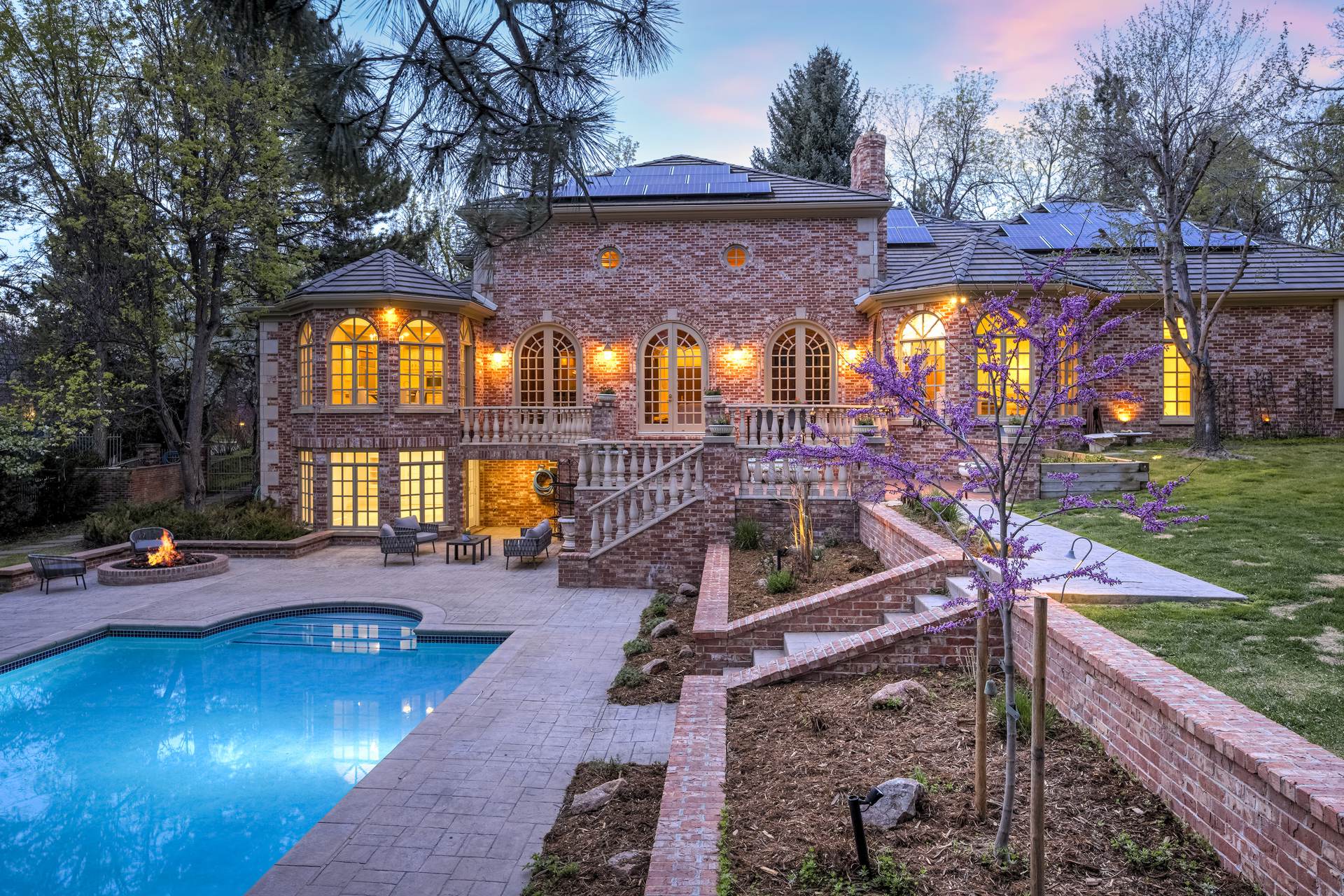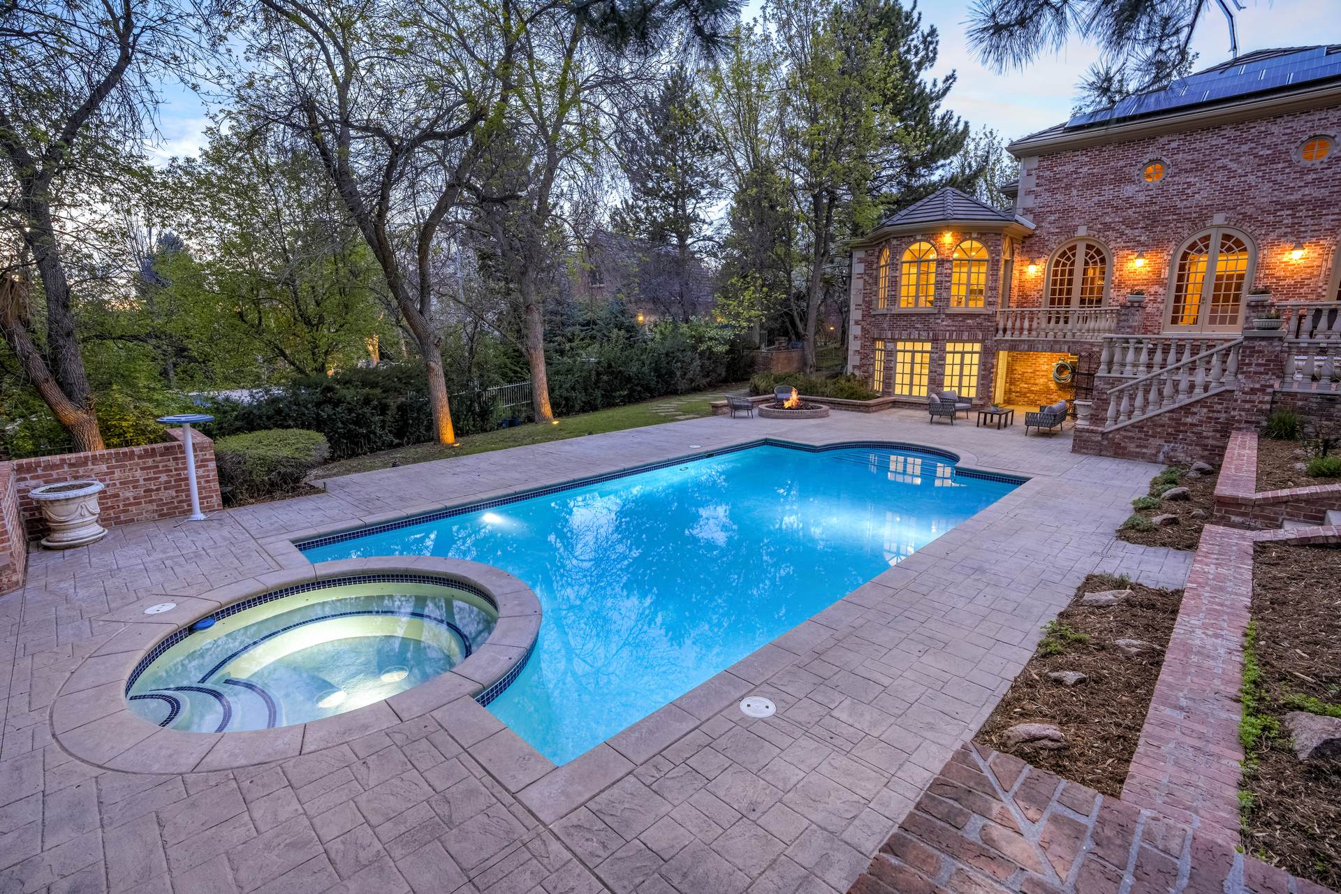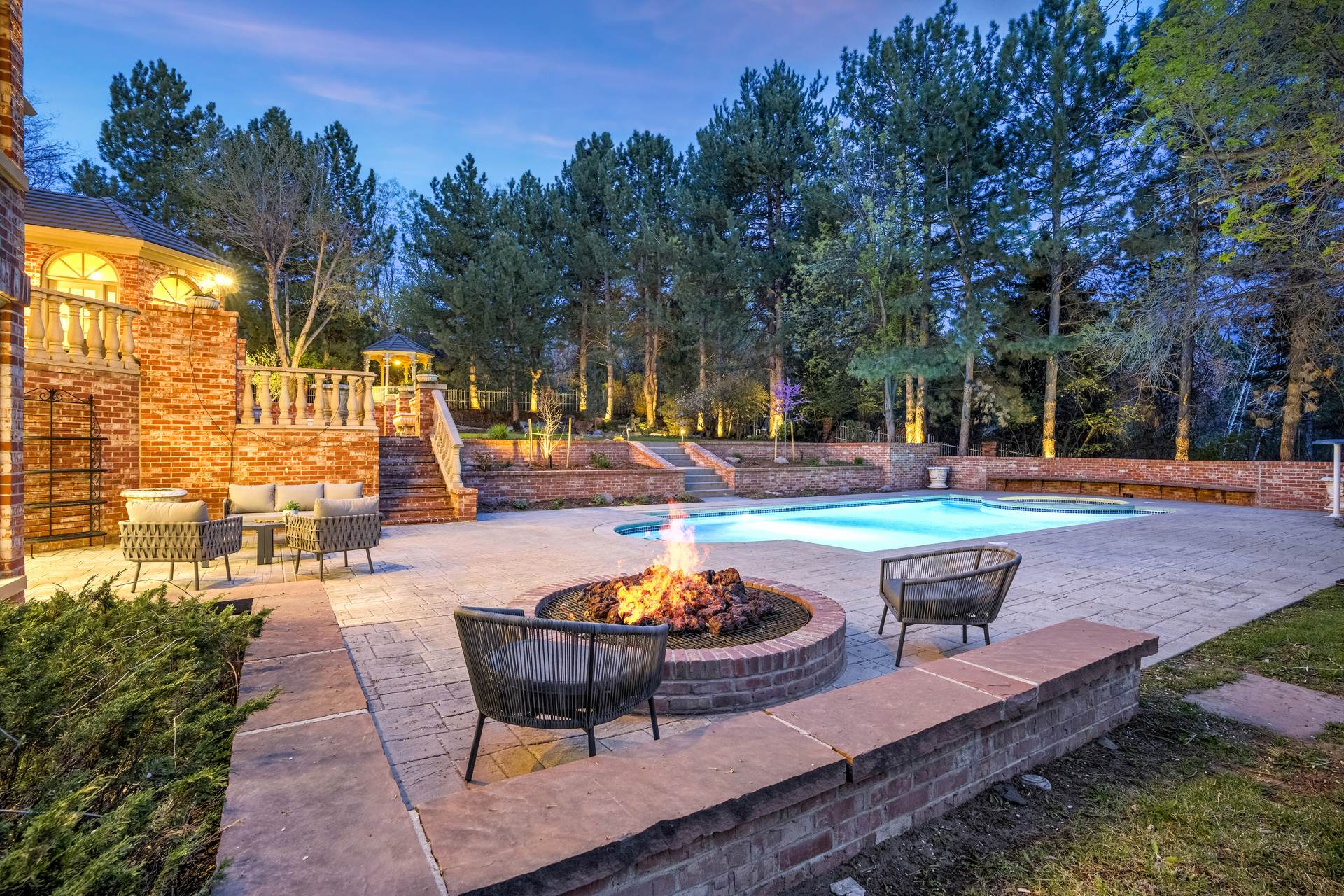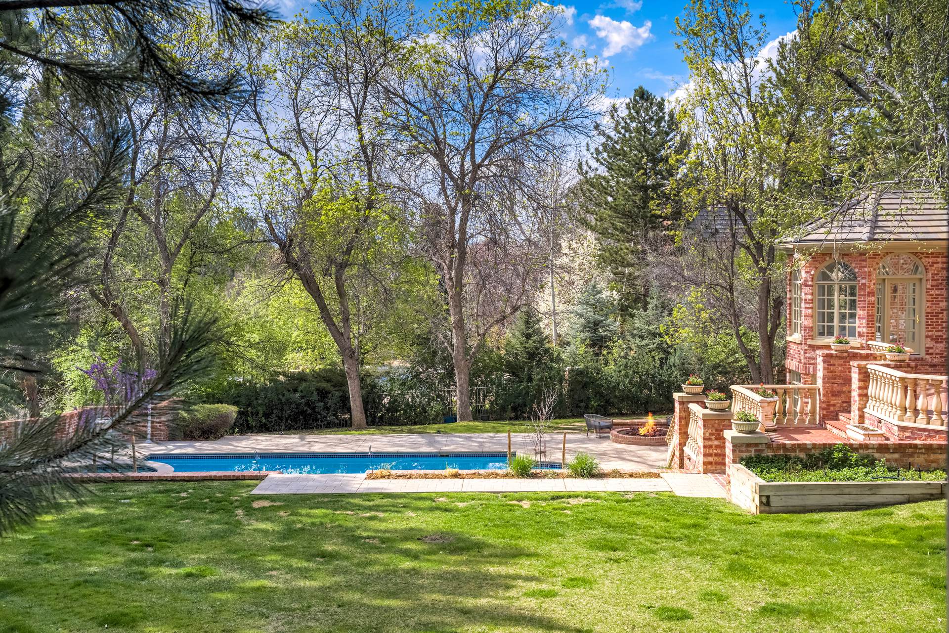 COMING SOON! Located in the prestigious Cherry Hills Farm West neighborhood, this stately red brick two-story estate evokes timeless old-world elegance in an extraordinary natural setting. Situated on nearly an acre and surrounded by mature trees and lush landscaping, the grounds offer a private retreat—featuring a tranquil pond with cascading waterfall, a charming gazebo, and an expansive outdoor living area with a pool, spa, and firepit. Inside, a grand two-story entry introduces interiors rich in craftsmanship and detail. The soaring great room is a showpiece-with dramatic ceilings, marble floors, and a gas fireplace with marble hearth and mantle. Throughout the home, detailed layered moldings, custom millwork and wood columns reflect exceptional artistry. Designed for both entertaining and everyday living, the home includes a formal living and dining room, a sunlit breakfast nook, and a gourmet kitchen with high-end appliances, a large peninsula island and walk-in pantry. An adjacent wet bar with leaded glass cabinetry and crystal chandelier adds sophistication. The main-floor primary suite offers a sitting area, gas fireplace, patio access, and a marble bath with jetted tub, steam shower, and dual walk-in closets. A paneled study with leaded glass doors and fireplace adds warmth and character. Upstairs features hardwood floors throughout, three ensuite bedrooms and an additional office or sixth bedroom. The walk-out lower level includes a home theater area, game room, room for exercise equipment, guest suite, and direct access to the outdoor spaces. A four-car garage and spacious main-floor laundry and mudroom add convenience. Located in the award-winning Cherry Creek School District, this exceptional property offers a rare blend of elegance, comfort, and setting.