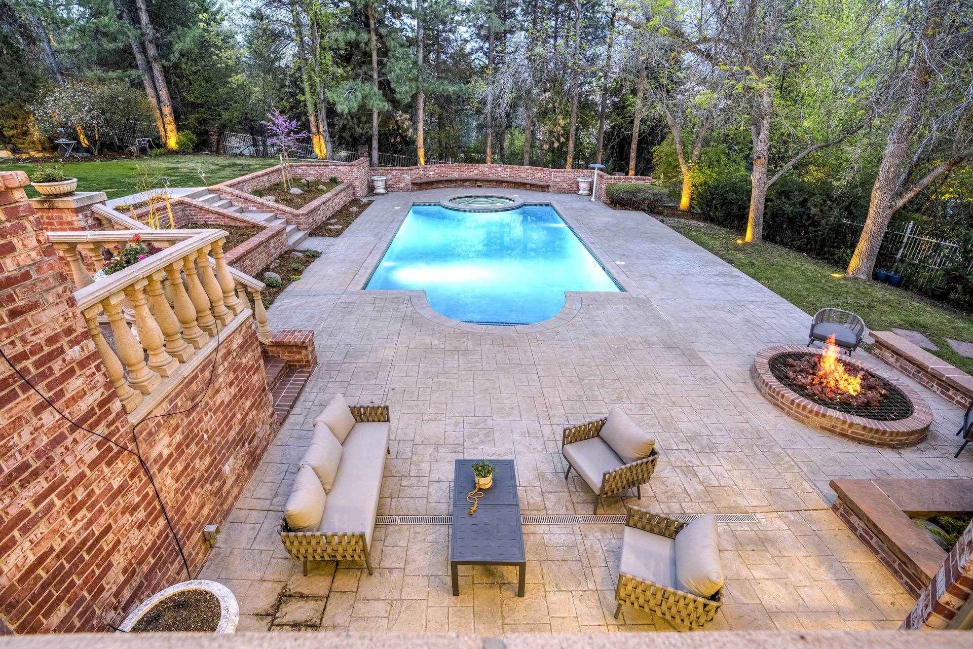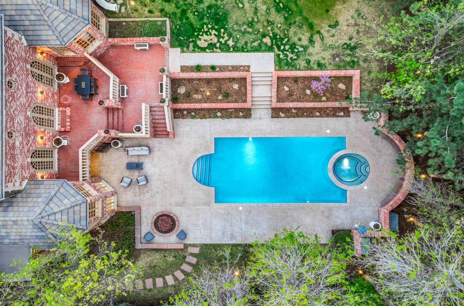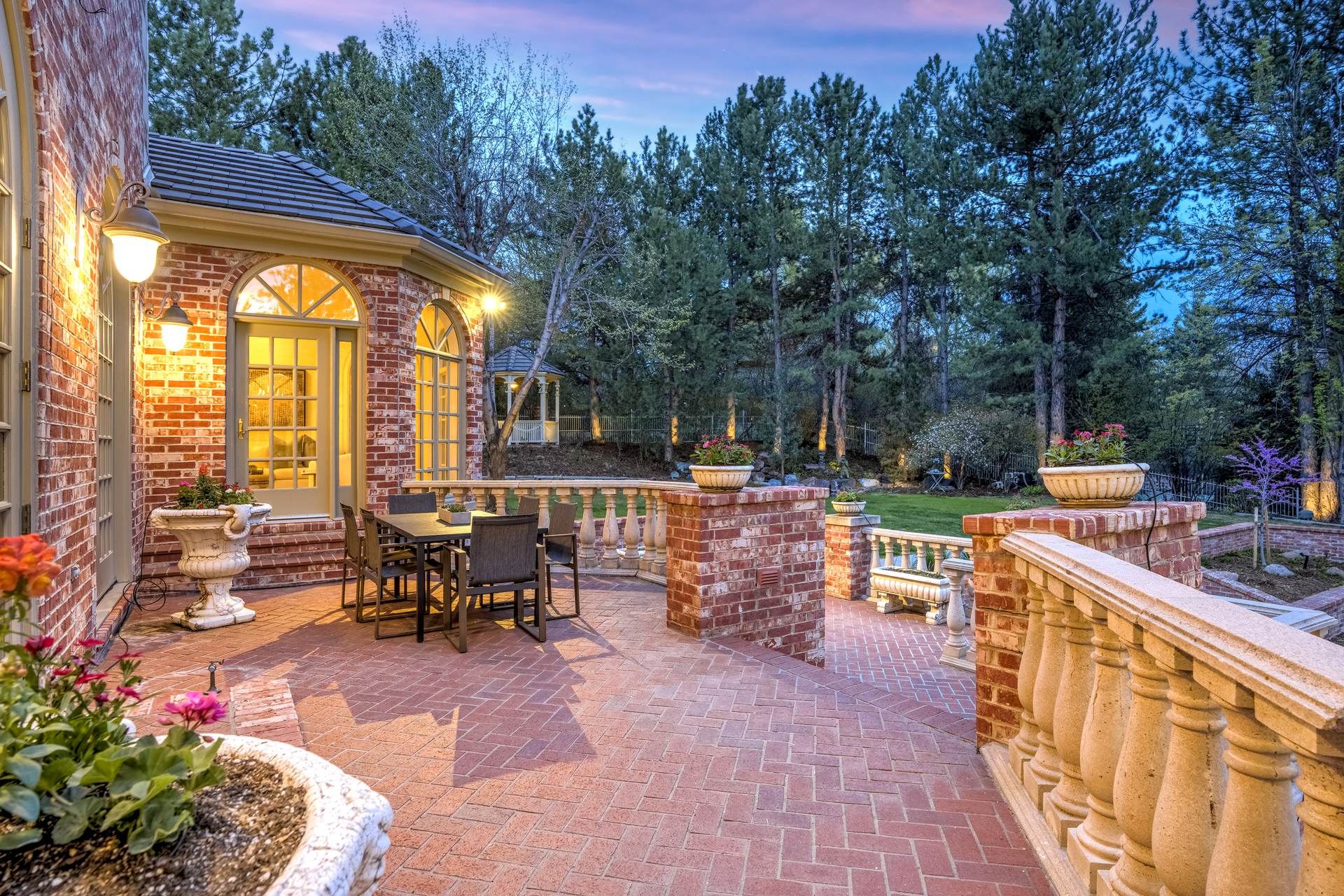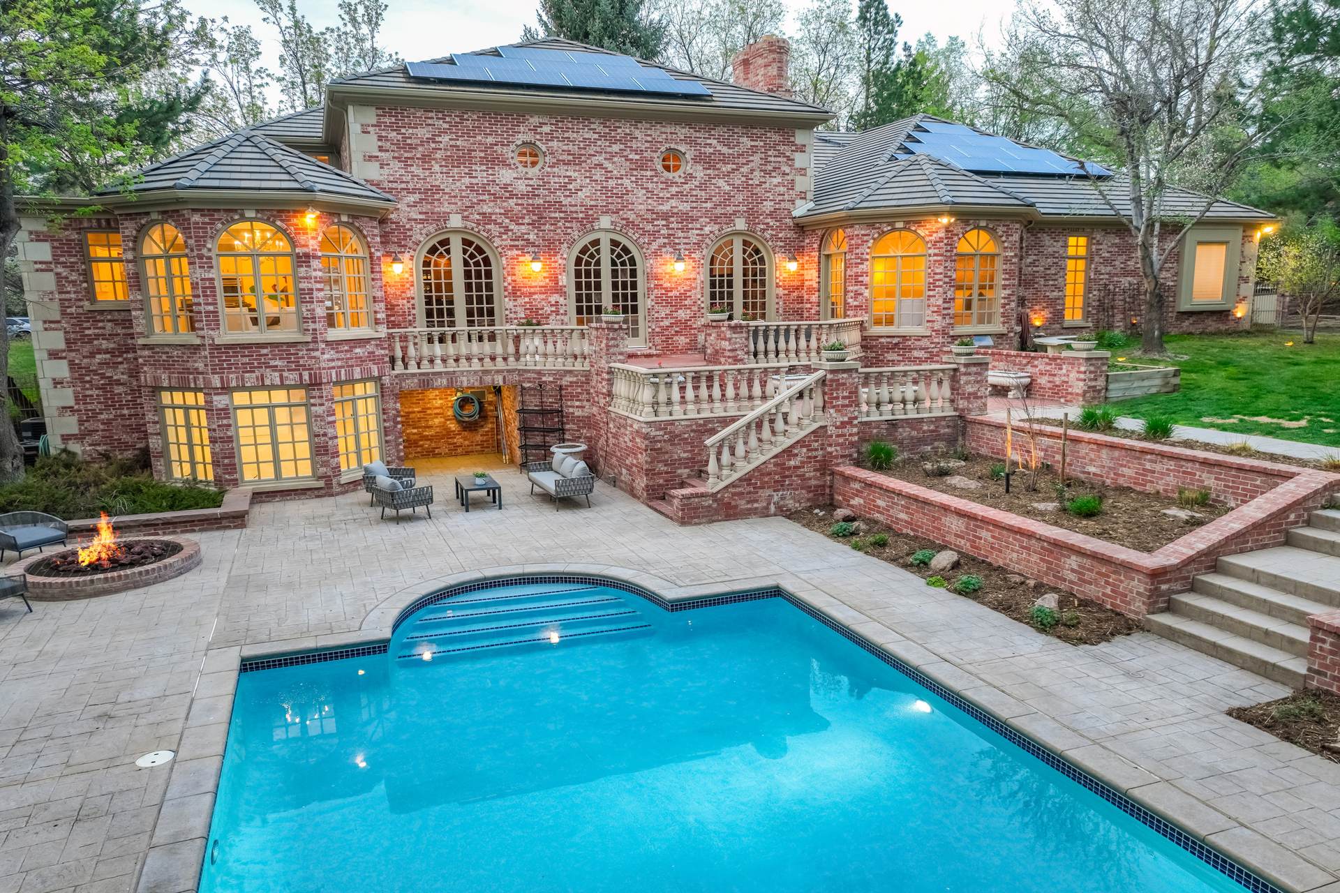 COMING SOON! Located in the prestigious Cherry Hills Farm West neighborhood, this stately red brick two-story estate evokes timeless old-world elegance in an extraordinary natural setting. Situated on nearly an acre and surrounded by mature trees and lush landscaping, the grounds offer a private retreat—featuring a tranquil pond with cascading waterfall, a charming gazebo, and an expansive outdoor living area with a pool, spa, and firepit. Inside, a grand two-story entry introduces interiors rich in craftsmanship and detail. The soaring great room is a showpiece-with dramatic ceilings, marble floors, and a gas fireplace with marble hearth and mantle. Throughout the home, detailed layered moldings, custom millwork and wood columns reflect exceptional artistry. Designed for both entertaining and everyday living, the home includes a formal living and dining room, a sunlit breakfast nook, and a gourmet kitchen with high-end appliances, a large peninsula island and walk-in pantry. An adjacent wet bar with leaded glass cabinetry and crystal chandelier adds sophistication. The main-floor primary suite offers a sitting area, gas fireplace, patio access, and a marble bath with jetted tub, steam shower, and dual walk-in closets. A paneled study with leaded glass doors and fireplace adds warmth and character. Upstairs features hardwood floors throughout, three ensuite bedrooms and an additional office or sixth bedroom. The walk-out lower level includes a home theater area, game room, room for exercise equipment, guest suite, and direct access to the outdoor spaces. A four-car garage and spacious main-floor laundry and mudroom add convenience. Located in the award-winning Cherry Creek School District, this exceptional property offers a rare blend of elegance, comfort, and setting.