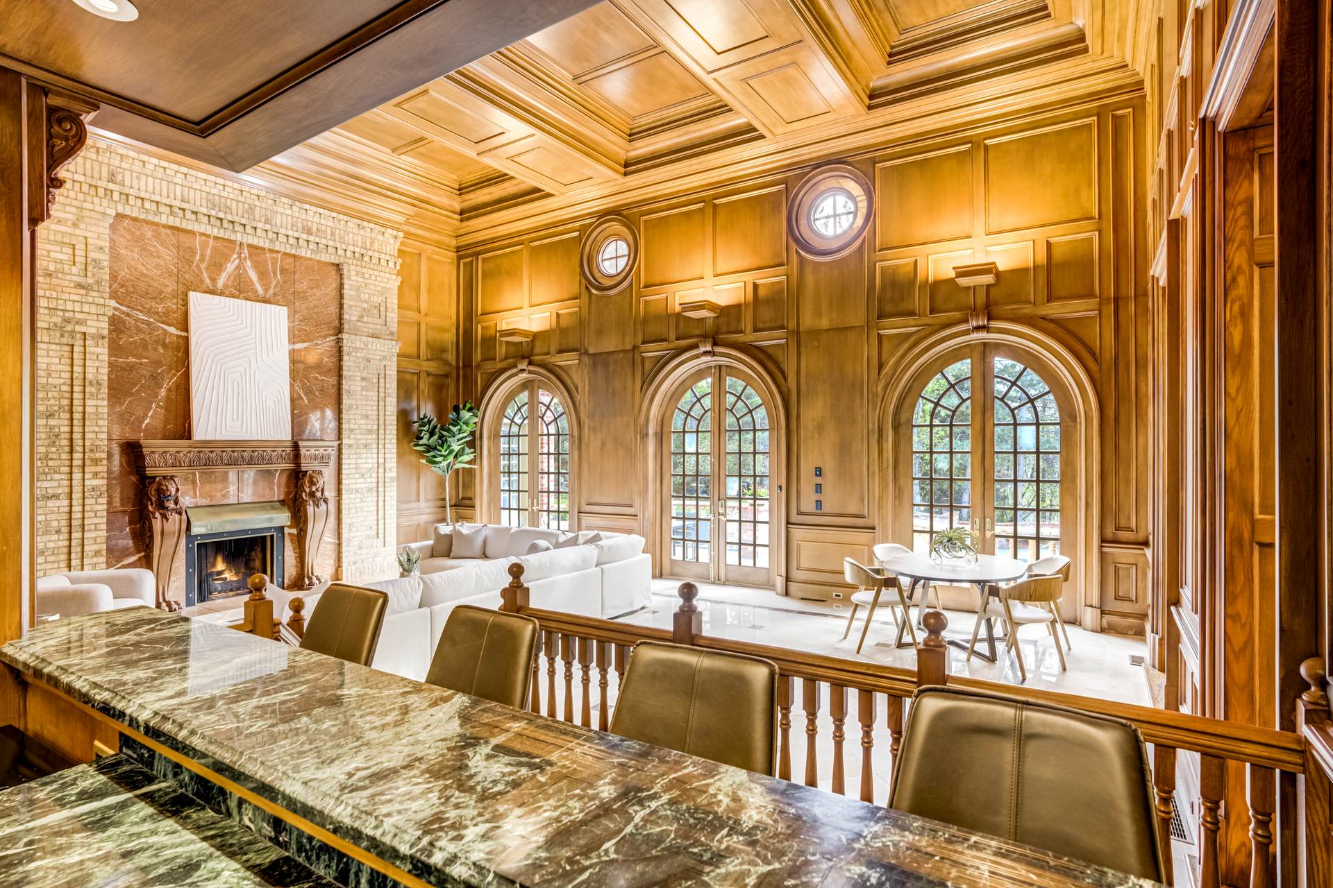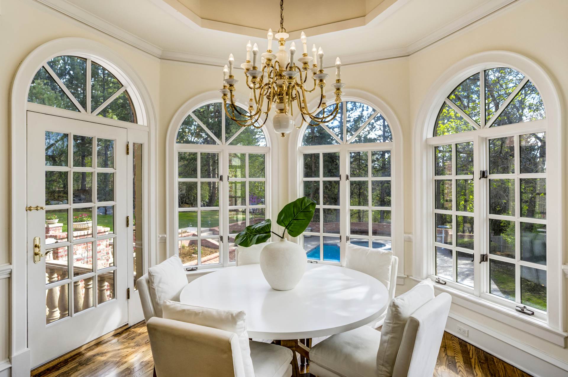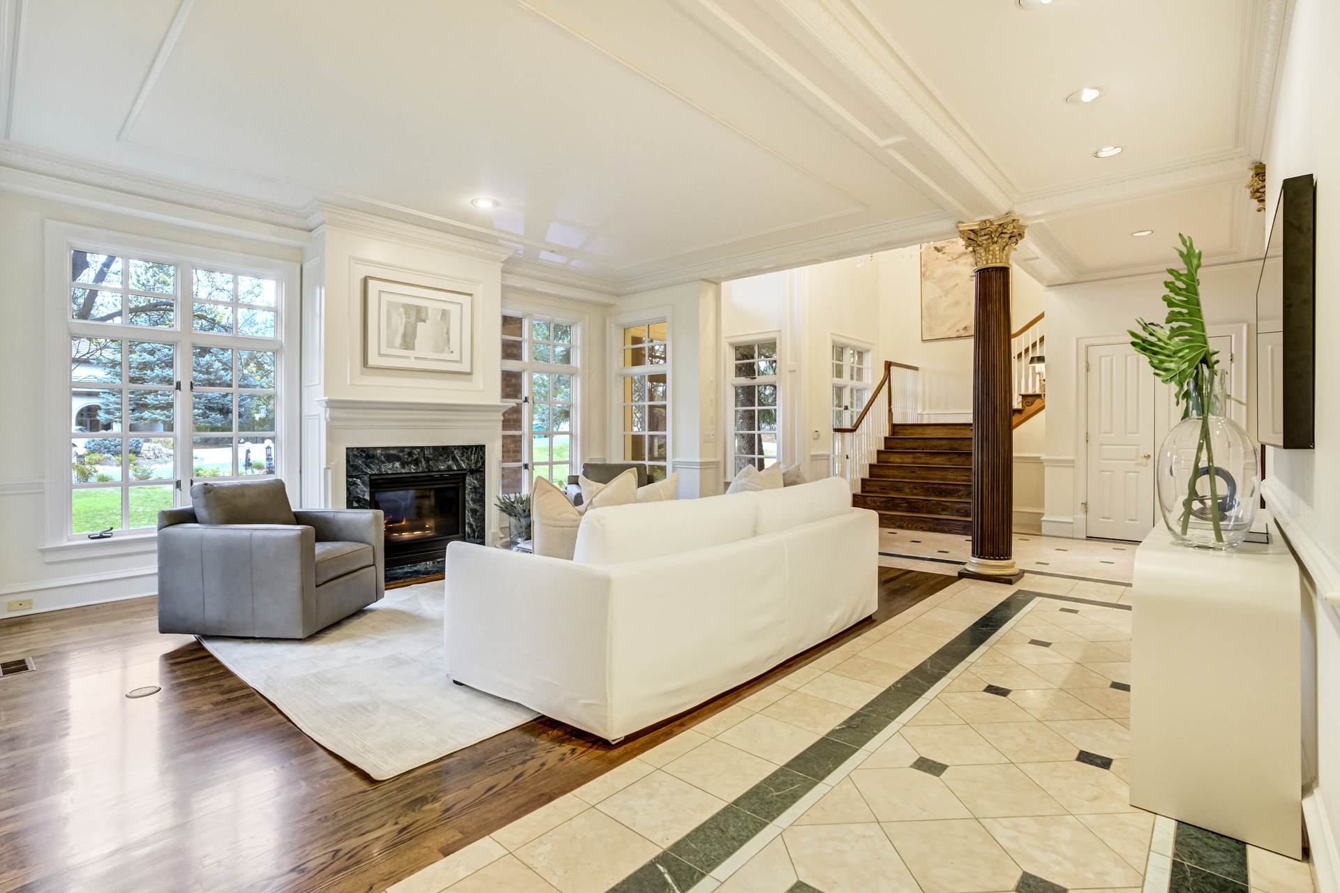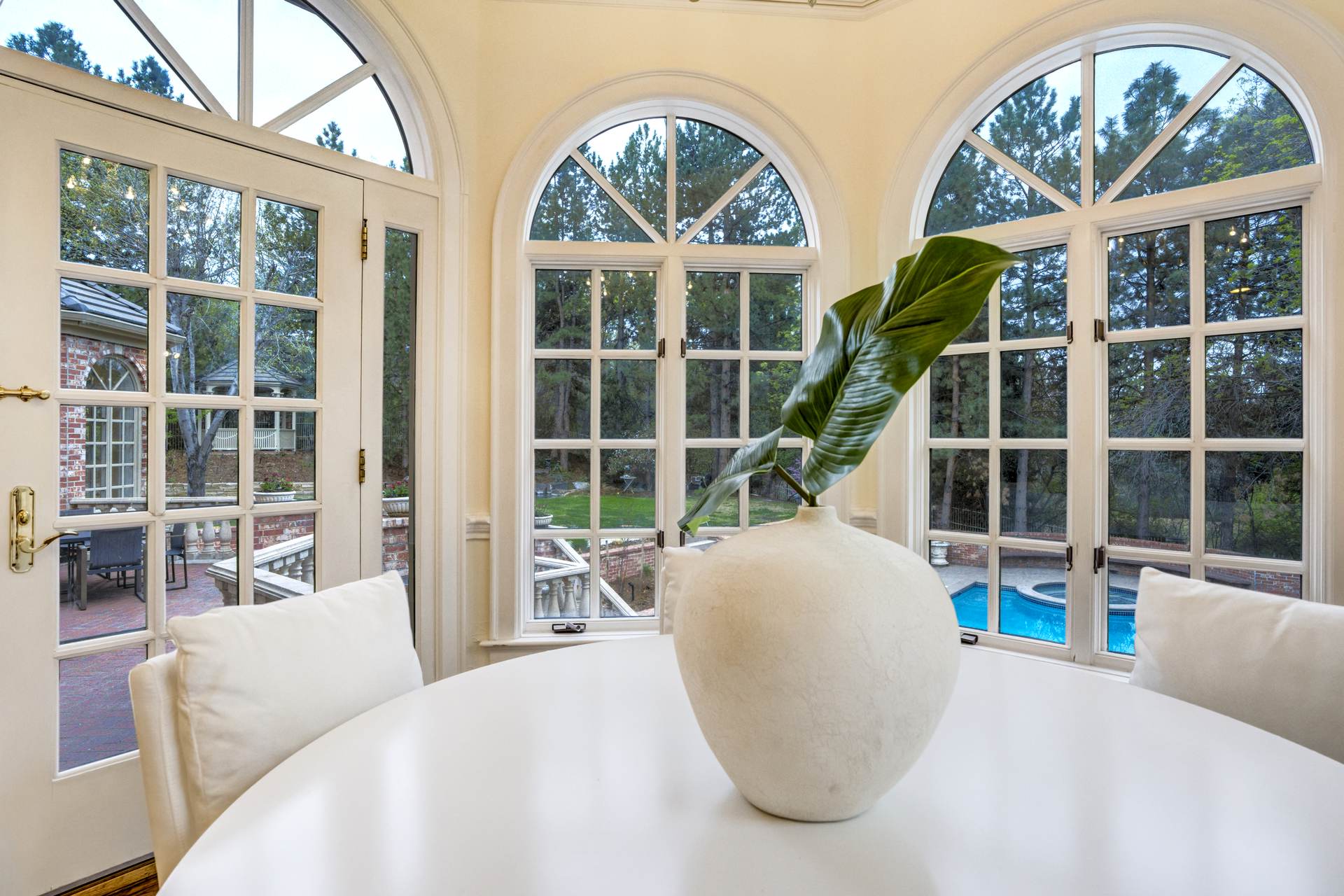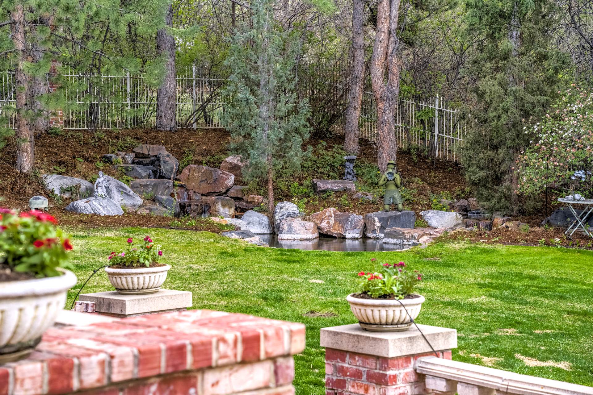 COMING SOON! Located in the prestigious Cherry Hills Farm West neighborhood, this stately red brick two-story estate evokes timeless old-world elegance in an extraordinary natural setting. Situated on nearly an acre and surrounded by mature trees and lush landscaping, the grounds offer a private retreat—featuring a tranquil pond with cascading waterfall, a charming gazebo, and an expansive outdoor living area with a pool, spa, and firepit. Inside, a grand two-story entry introduces interiors rich in craftsmanship and detail. The soaring great room is a showpiece-with dramatic ceilings, marble floors, and a gas fireplace with marble hearth and mantle. Throughout the home, detailed layered moldings, custom millwork and wood columns reflect exceptional artistry. Designed for both entertaining and everyday living, the home includes a formal living and dining room, a sunlit breakfast nook, and a gourmet kitchen with high-end appliances, a large peninsula island and walk-in pantry. An adjacent wet bar with leaded glass cabinetry and crystal chandelier adds sophistication. The main-floor primary suite offers a sitting area, gas fireplace, patio access, and a marble bath with jetted tub, steam shower, and dual walk-in closets. A paneled study with leaded glass doors and fireplace adds warmth and character. Upstairs features hardwood floors throughout, three ensuite bedrooms and an additional office or sixth bedroom. The walk-out lower level includes a home theater area, game room, room for exercise equipment, guest suite, and direct access to the outdoor spaces. A four-car garage and spacious main-floor laundry and mudroom add convenience. Located in the award-winning Cherry Creek School District, this exceptional property offers a rare blend of elegance, comfort, and setting.