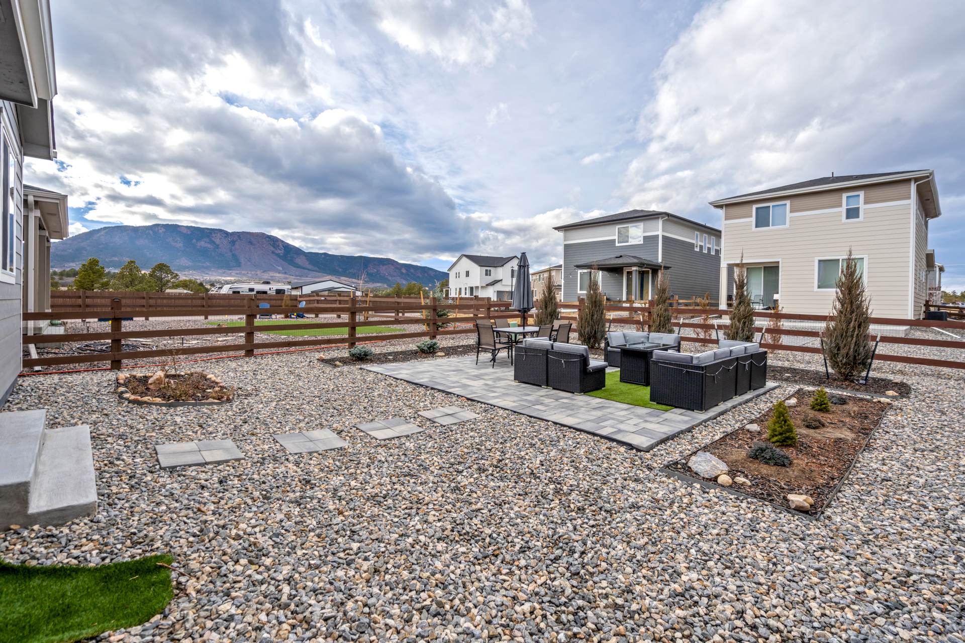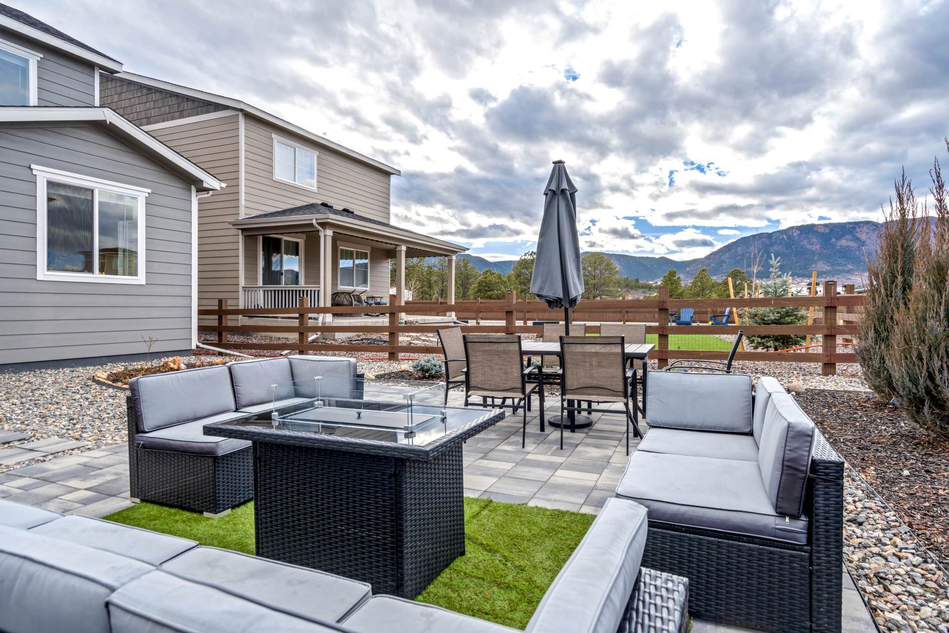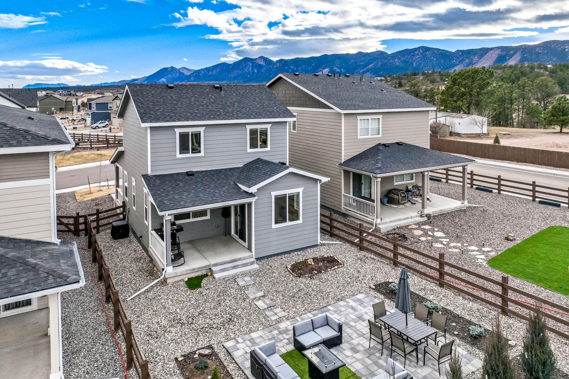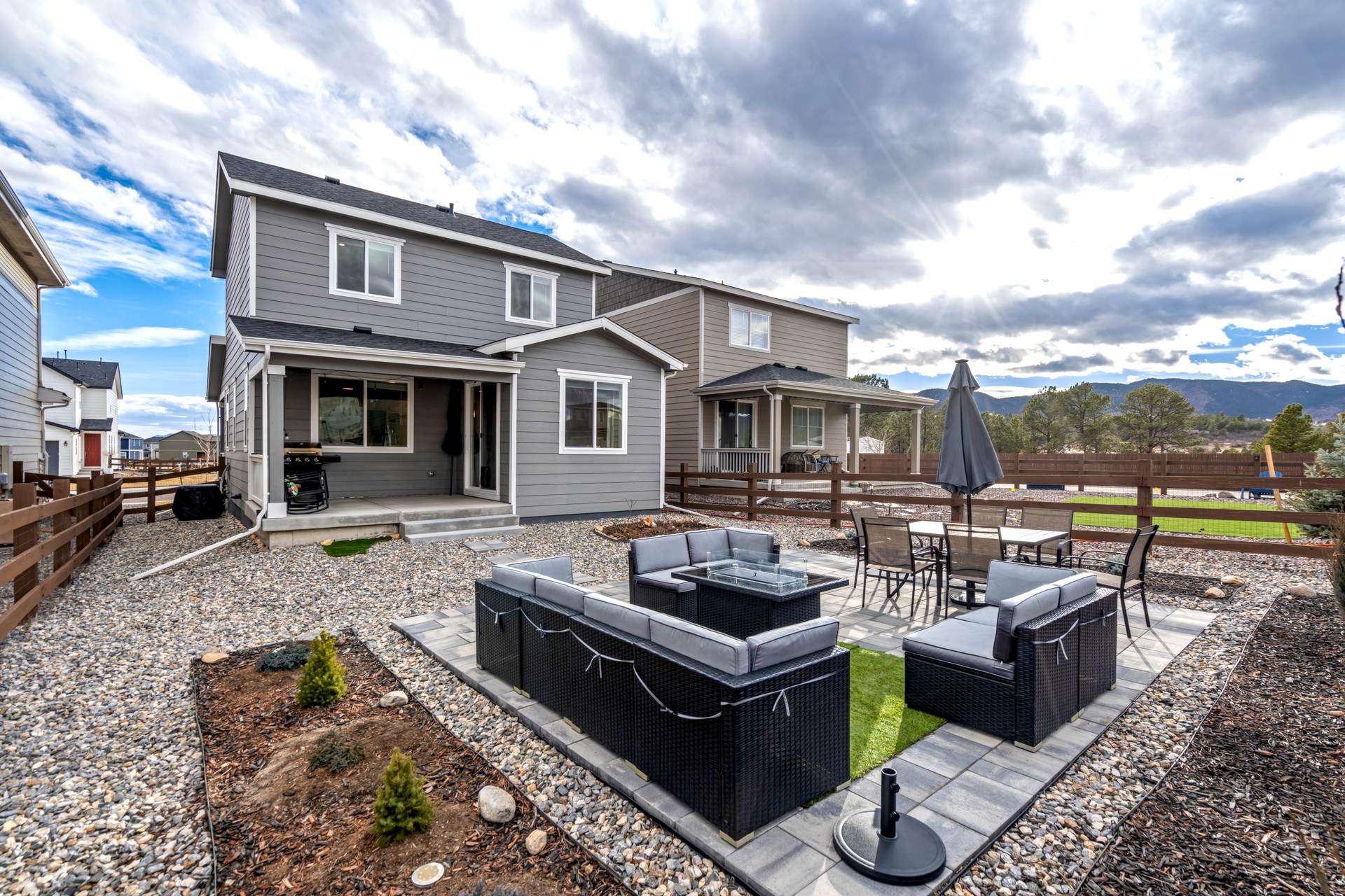 Welcome to this beautifully maintained 3-bedroom, 3-bath home in the desirable Willow Springs Ranch community of Monument. A charming covered front porch sets the tone, inviting you inside to a bright and airy open-concept main level designed for both everyday living and effortless entertaining. Luxury vinyl plank flooring flows throughout the main level, complemented by 9+ foot ceilings and abundant natural light in the spacious living room. The kitchen is the heart of the home, featuring a large quartz island, crisp white cabinetry, stainless steel appliances, a gas range, and a generous pantry — perfect for gathering with family and friends. The adjoining dining area offers walk-out access to a covered patio and fully xeriscaped backyard, complete with an additional patio and seating area ideal for enjoying Colorado’s beautiful seasons with minimal maintenance. A convenient half bath and access to the attached two-car garage complete the main level. Upstairs, the primary suite provides a relaxing retreat with a large walk-in closet and an en suite bath featuring a dual vanity and walk-in shower. The upper-level loft offers flexible space for a home office, playroom, or cozy media area. Two additional bedrooms, a full bathroom, and a centrally located laundry area add functionality and comfort to this thoughtfully designed home. This truly move-in ready home sits just minutes from incredible trails, open space, local restaurants, and charming downtown Monument — with easy access to I-25. With stylish finishes, flexible living spaces, and inviting indoor-outdoor living, this Willow Springs Ranch gem is ready to welcome you home.