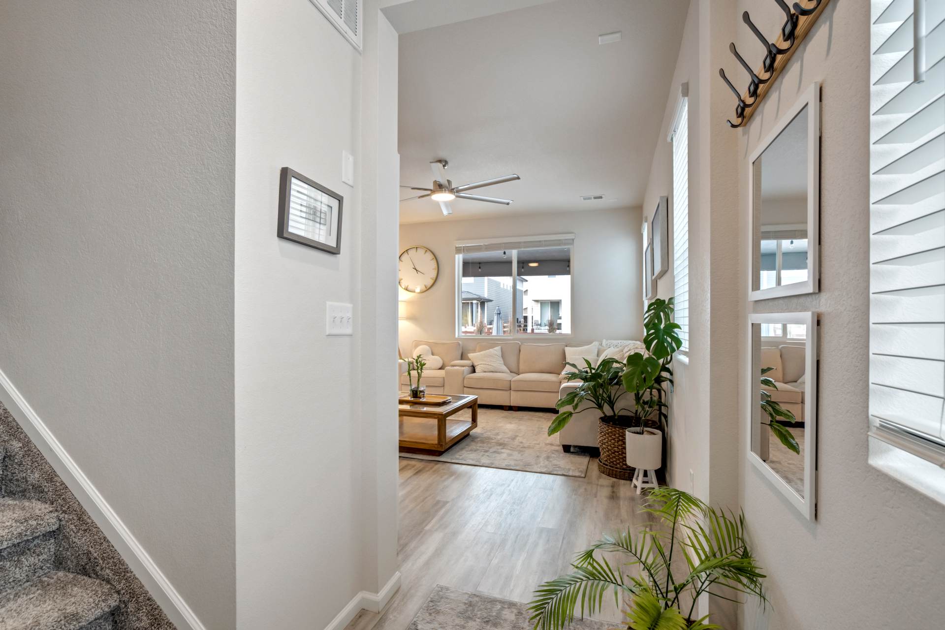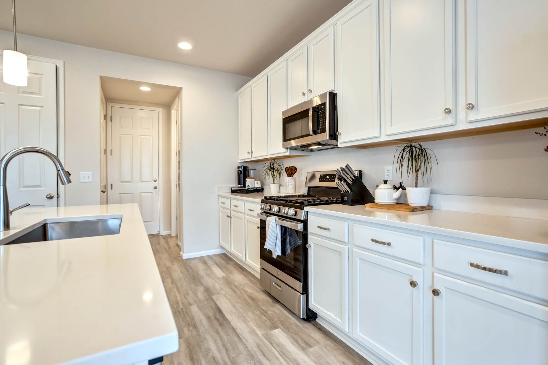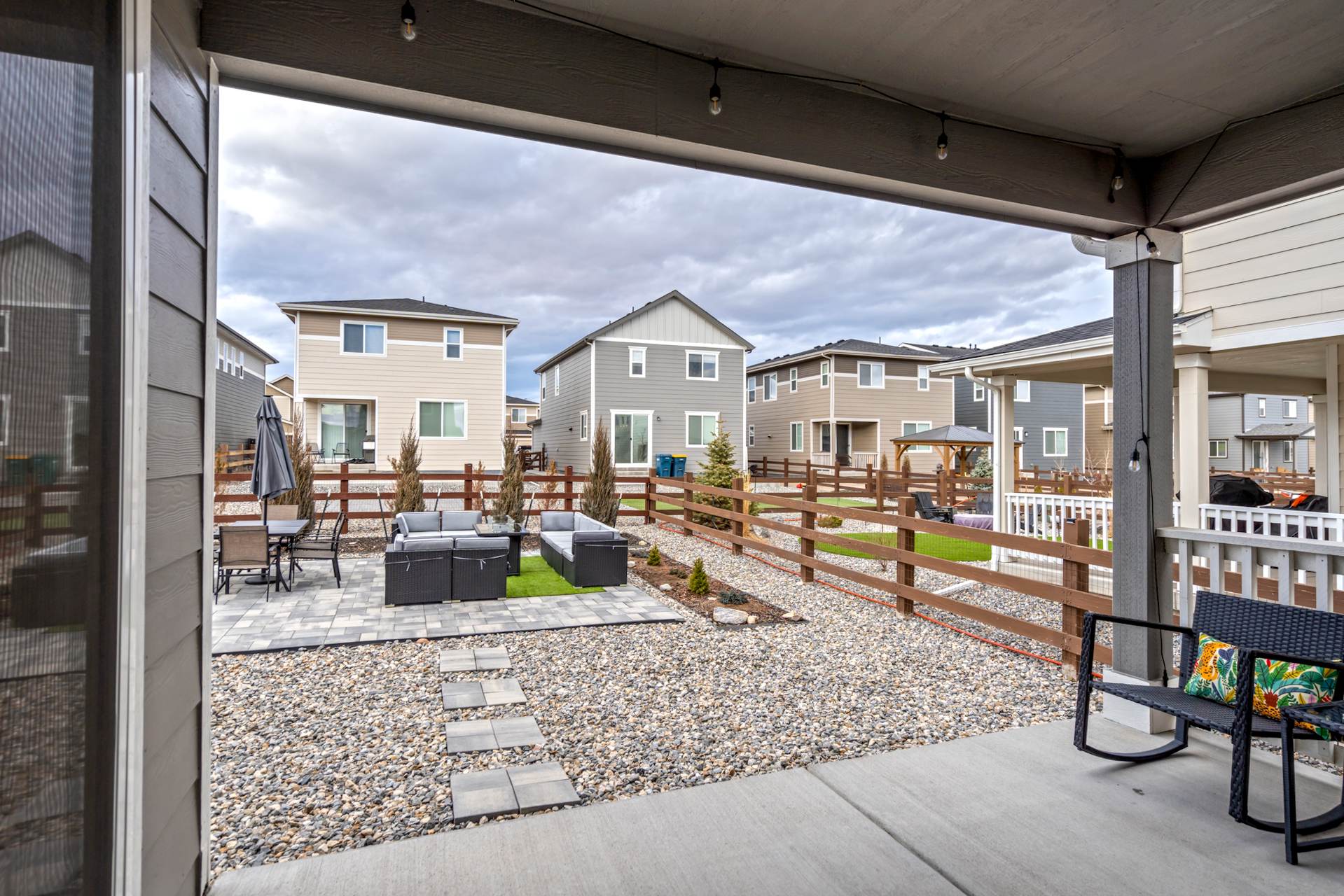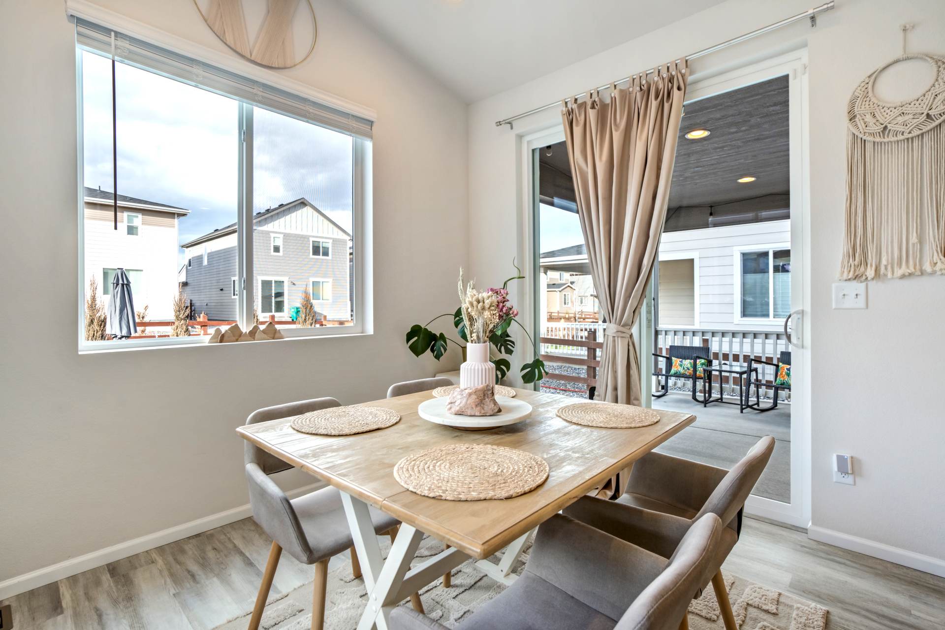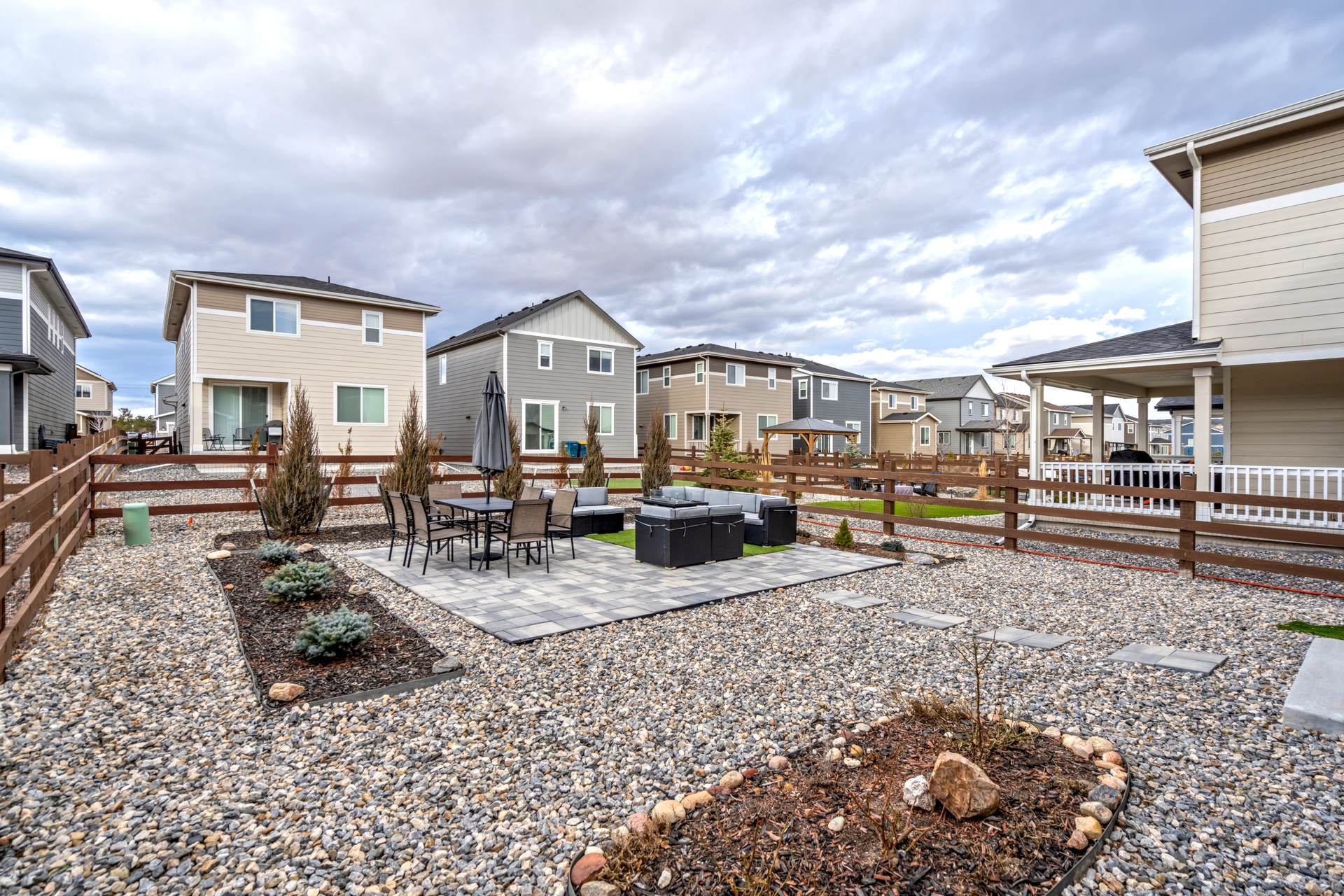 Welcome to this beautifully maintained 3-bedroom, 3-bath home in the desirable Willow Springs Ranch community of Monument. A charming covered front porch sets the tone, inviting you inside to a bright and airy open-concept main level designed for both everyday living and effortless entertaining. Luxury vinyl plank flooring flows throughout the main level, complemented by 9+ foot ceilings and abundant natural light in the spacious living room. The kitchen is the heart of the home, featuring a large quartz island, crisp white cabinetry, stainless steel appliances, a gas range, and a generous pantry — perfect for gathering with family and friends. The adjoining dining area offers walk-out access to a covered patio and fully xeriscaped backyard, complete with an additional patio and seating area ideal for enjoying Colorado’s beautiful seasons with minimal maintenance. A convenient half bath and access to the attached two-car garage complete the main level. Upstairs, the primary suite provides a relaxing retreat with a large walk-in closet and an en suite bath featuring a dual vanity and walk-in shower. The upper-level loft offers flexible space for a home office, playroom, or cozy media area. Two additional bedrooms, a full bathroom, and a centrally located laundry area add functionality and comfort to this thoughtfully designed home. This truly move-in ready home sits just minutes from incredible trails, open space, local restaurants, and charming downtown Monument — with easy access to I-25. With stylish finishes, flexible living spaces, and inviting indoor-outdoor living, this Willow Springs Ranch gem is ready to welcome you home.
