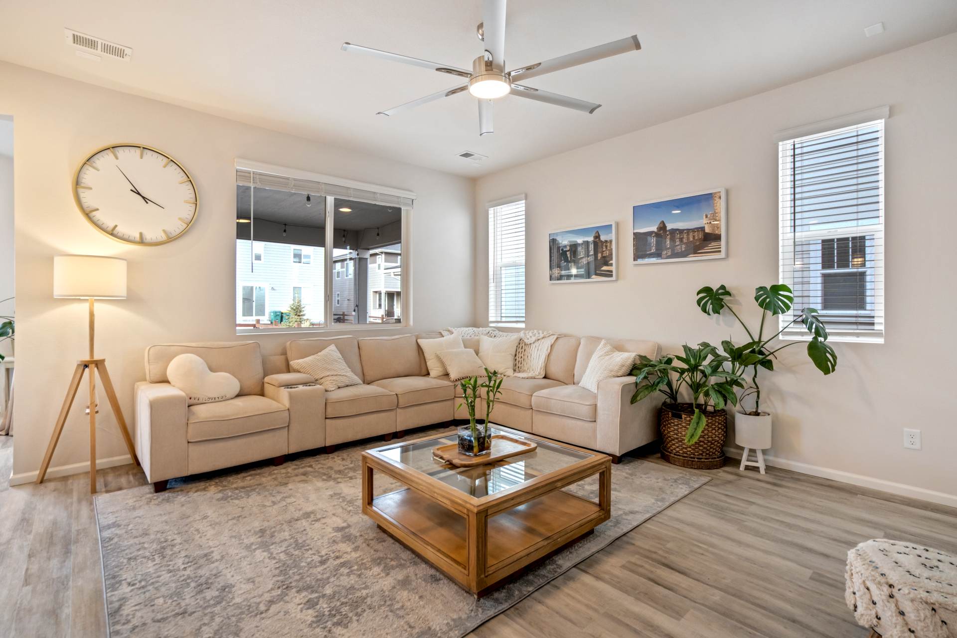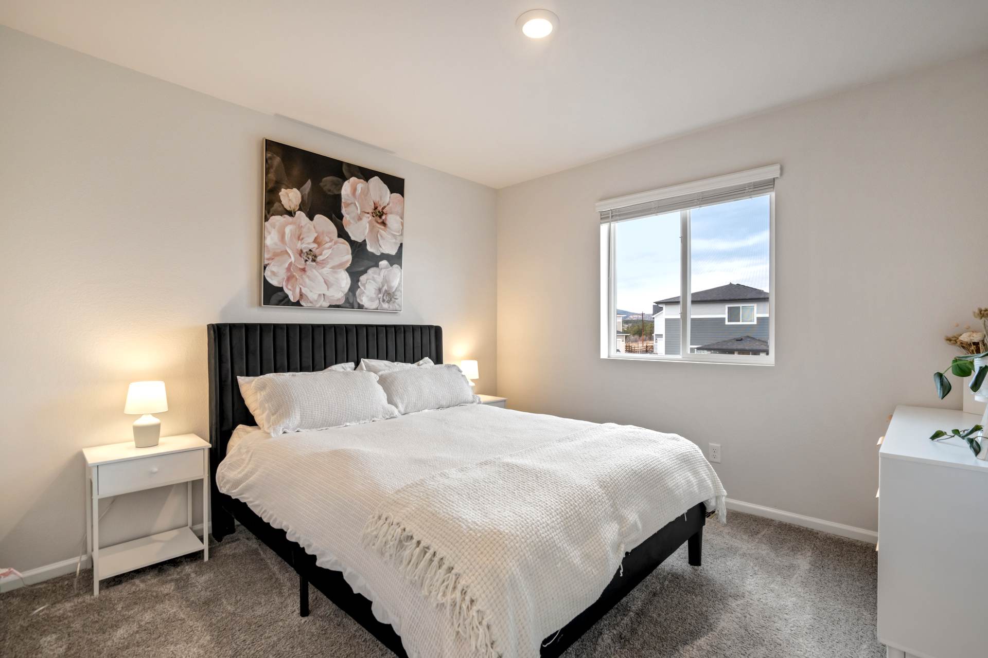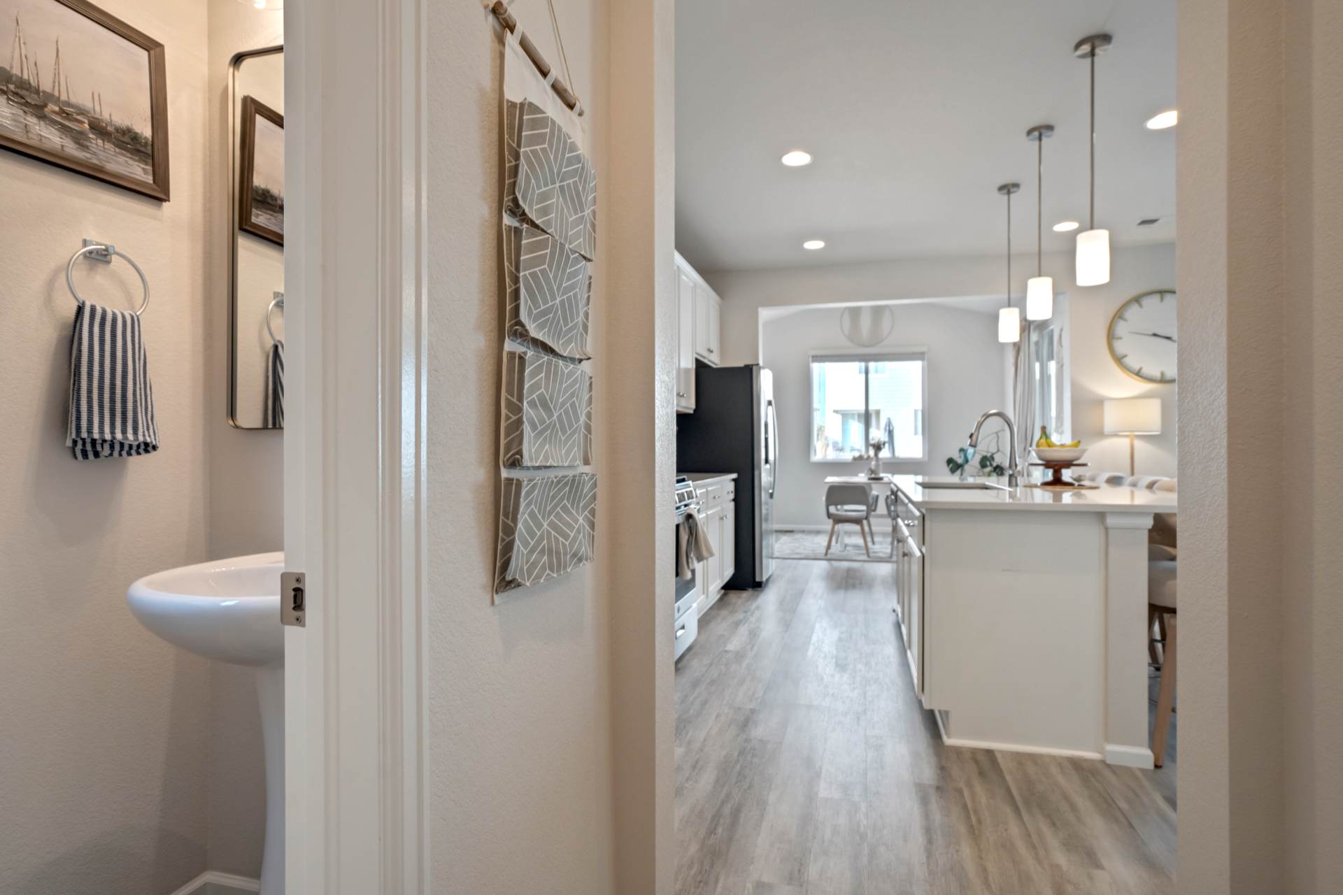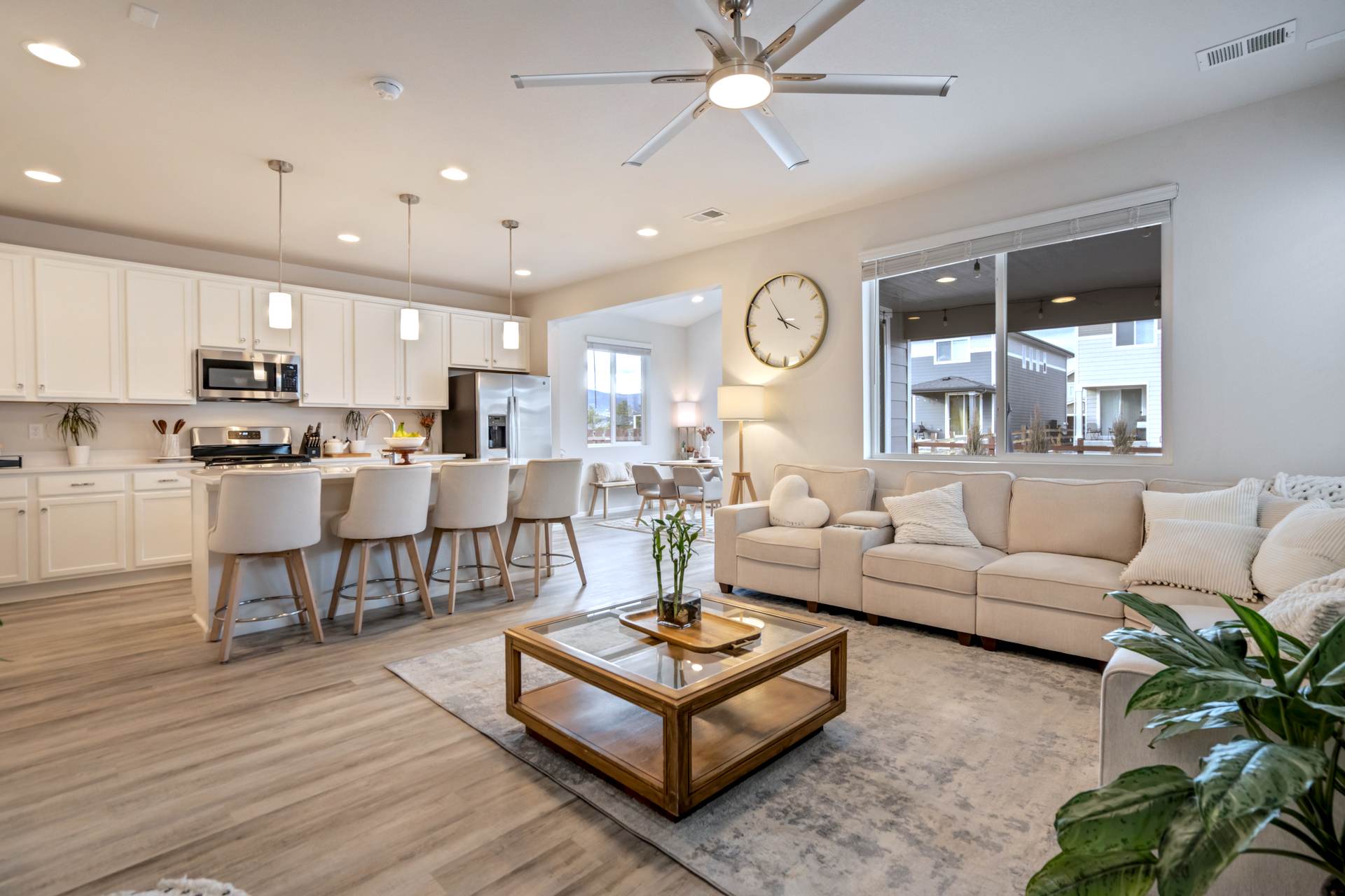 Welcome to this beautifully maintained 3-bedroom, 3-bath home in the desirable Willow Springs Ranch community of Monument. A charming covered front porch sets the tone, inviting you inside to a bright and airy open-concept main level designed for both everyday living and effortless entertaining. Luxury vinyl plank flooring flows throughout the main level, complemented by 9+ foot ceilings and abundant natural light in the spacious living room. The kitchen is the heart of the home, featuring a large quartz island, crisp white cabinetry, stainless steel appliances, a gas range, and a generous pantry — perfect for gathering with family and friends. The adjoining dining area offers walk-out access to a covered patio and fully xeriscaped backyard, complete with an additional patio and seating area ideal for enjoying Colorado’s beautiful seasons with minimal maintenance. A convenient half bath and access to the attached two-car garage complete the main level. Upstairs, the primary suite provides a relaxing retreat with a large walk-in closet and an en suite bath featuring a dual vanity and walk-in shower. The upper-level loft offers flexible space for a home office, playroom, or cozy media area. Two additional bedrooms, a full bathroom, and a centrally located laundry area add functionality and comfort to this thoughtfully designed home. This truly move-in ready home sits just minutes from incredible trails, open space, local restaurants, and charming downtown Monument — with easy access to I-25. With stylish finishes, flexible living spaces, and inviting indoor-outdoor living, this Willow Springs Ranch gem is ready to welcome you home.