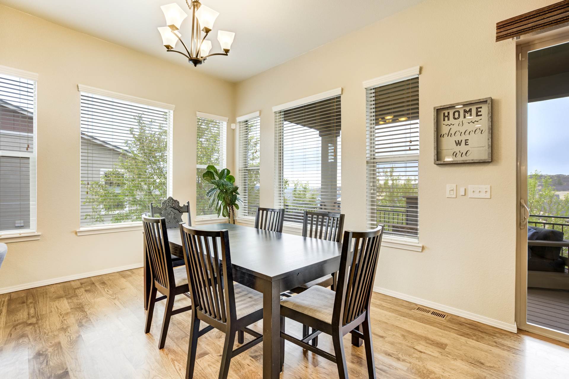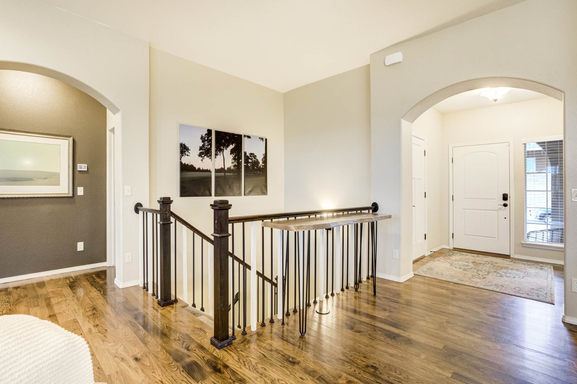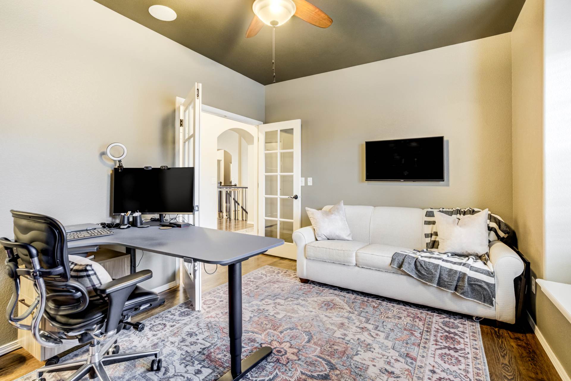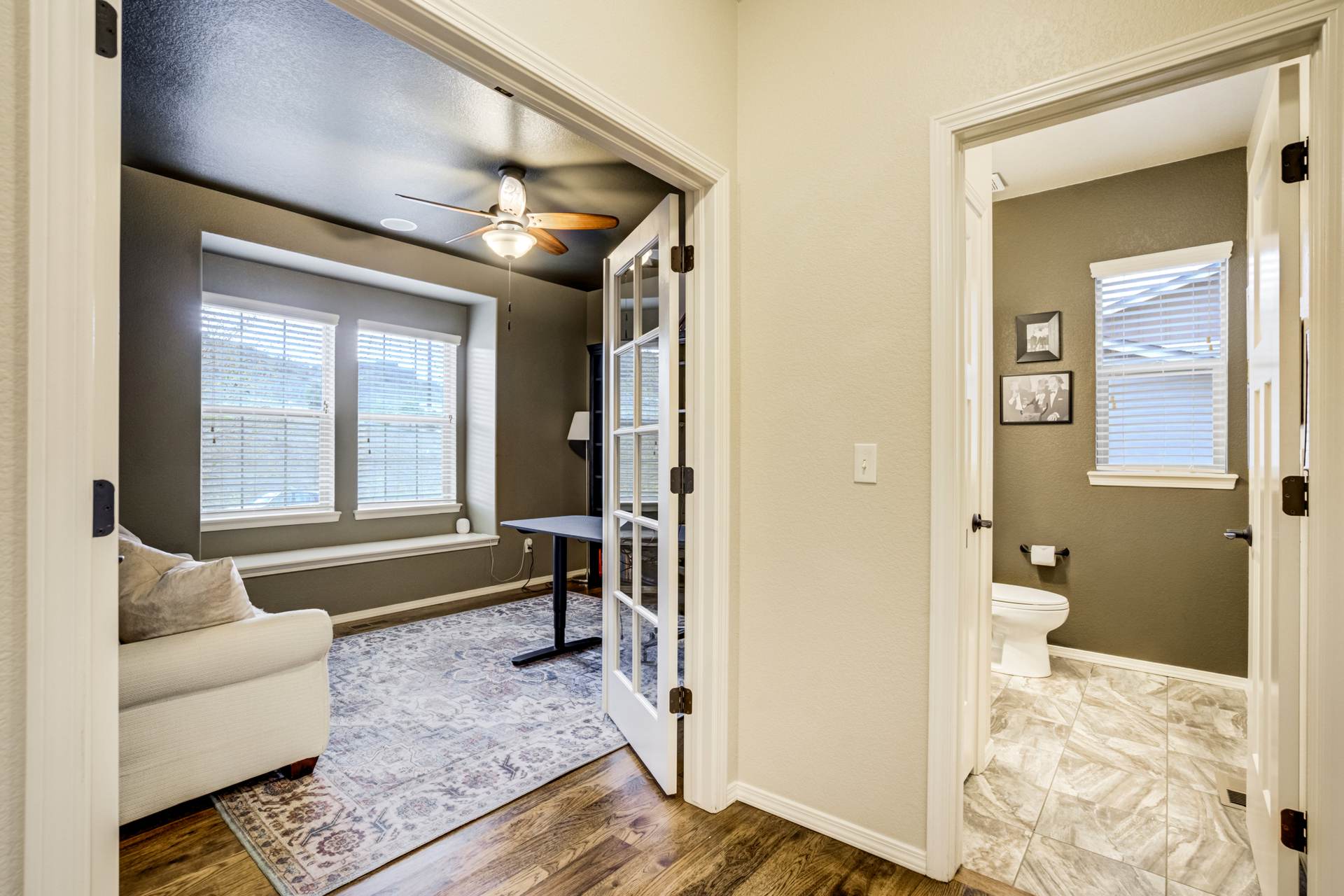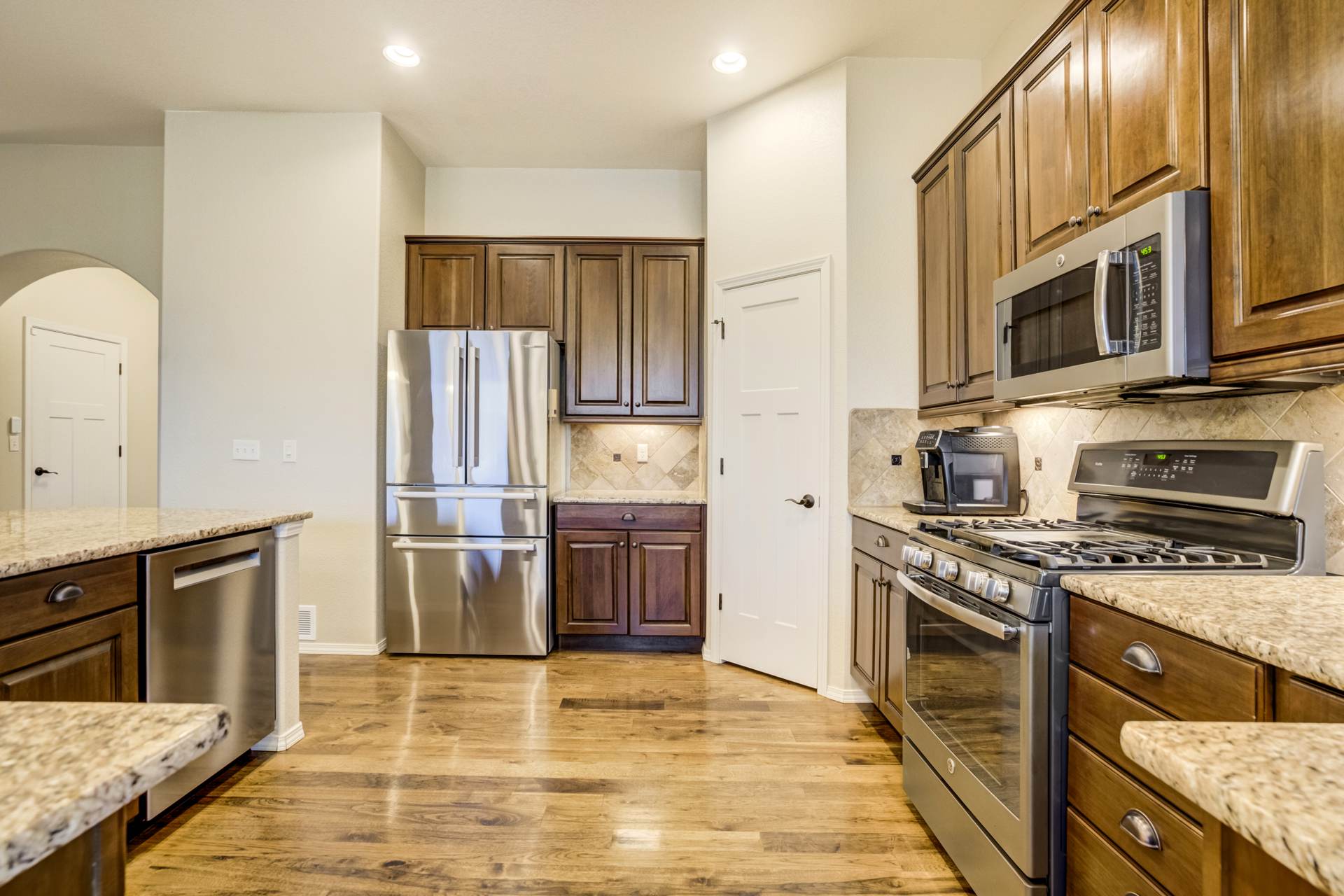 Lakeview. Mountain Views. Forest Lakes Living. This beautifully appointed Classic Home captures the best of Colorado living with sweeping lake and mountain views and thoughtfully designed indoor-outdoor spaces to enjoy them. Step inside to an expansive great room filled with natural light from large, well-placed windows, complemented by rich hickory hardwood floors and soaring 10-foot ceilings. The open layout flows effortlessly to a covered 10x29 composite deck, perfectly positioned to take in the views. The gourmet kitchen features granite countertops, 42-inch cabinetry with crown molding, stainless steel appliances, and a gas convection range with a fifth burner. Generous counter space, abundant cabinetry, and a walk-in pantry make it ideal for both everyday living and entertaining. The main-level primary suite offers convenience and privacy, with tranquil views and a spa-inspired bath complete with dual shower heads, rain feature, and custom tile work. A nearby laundry room with ample storage and utility sink adds everyday ease. A private office near the entry provides flexibility for a fifth bedroom, with an adjacent powder bath. The walk-out lower level offers 9-foot ceilings, a spacious family room with wet bar, and direct access to a hand-laid paver patio, stone firepit, and multiple outdoor gathering areas. Two additional bedrooms and a large unfinished space offer potential for expansion. Additional features include high-efficiency furnace, humidifier, water softener, gas stubs for outdoor heating and grilling, and a finished garage with epoxy floors, built-ins, and a dog wash station. A dedicated generator pad with gas hookup is already in place. Enjoy lake access just minutes away for paddleboarding, kayaking, and fishing, along with close proximity to the Santa Fe Trail, downtown Monument, United States Air Force Academy, and easy I-25 access to both Denver and Colorado Springs.