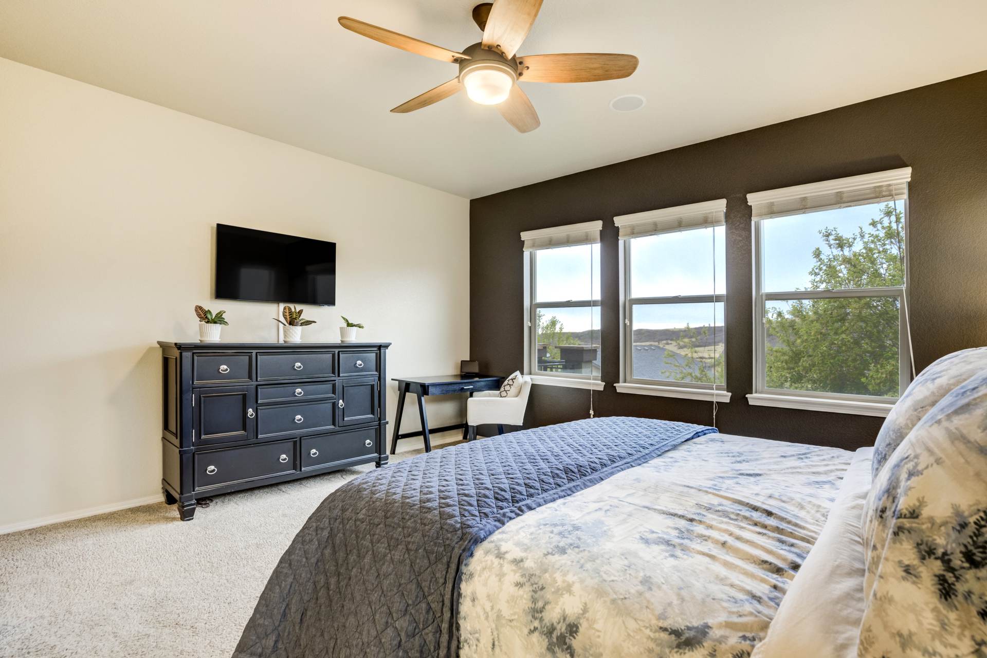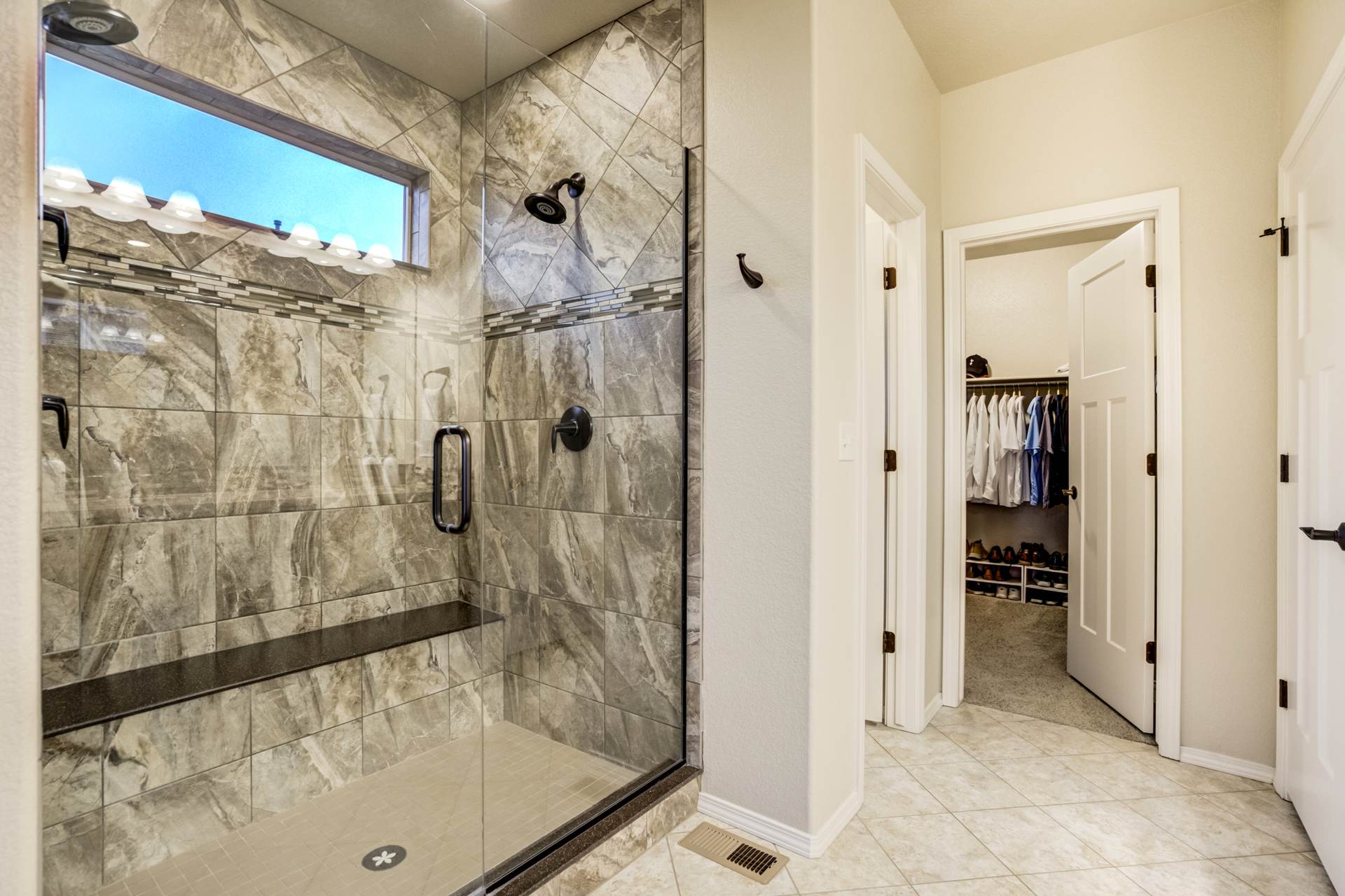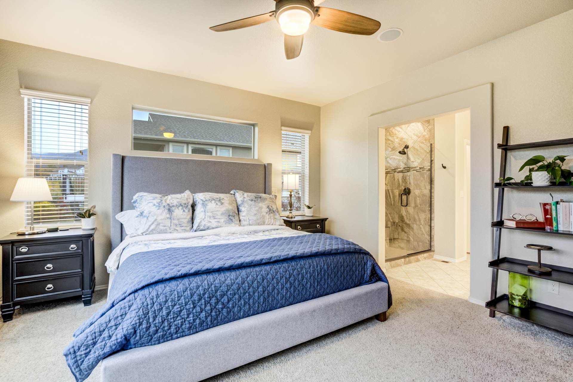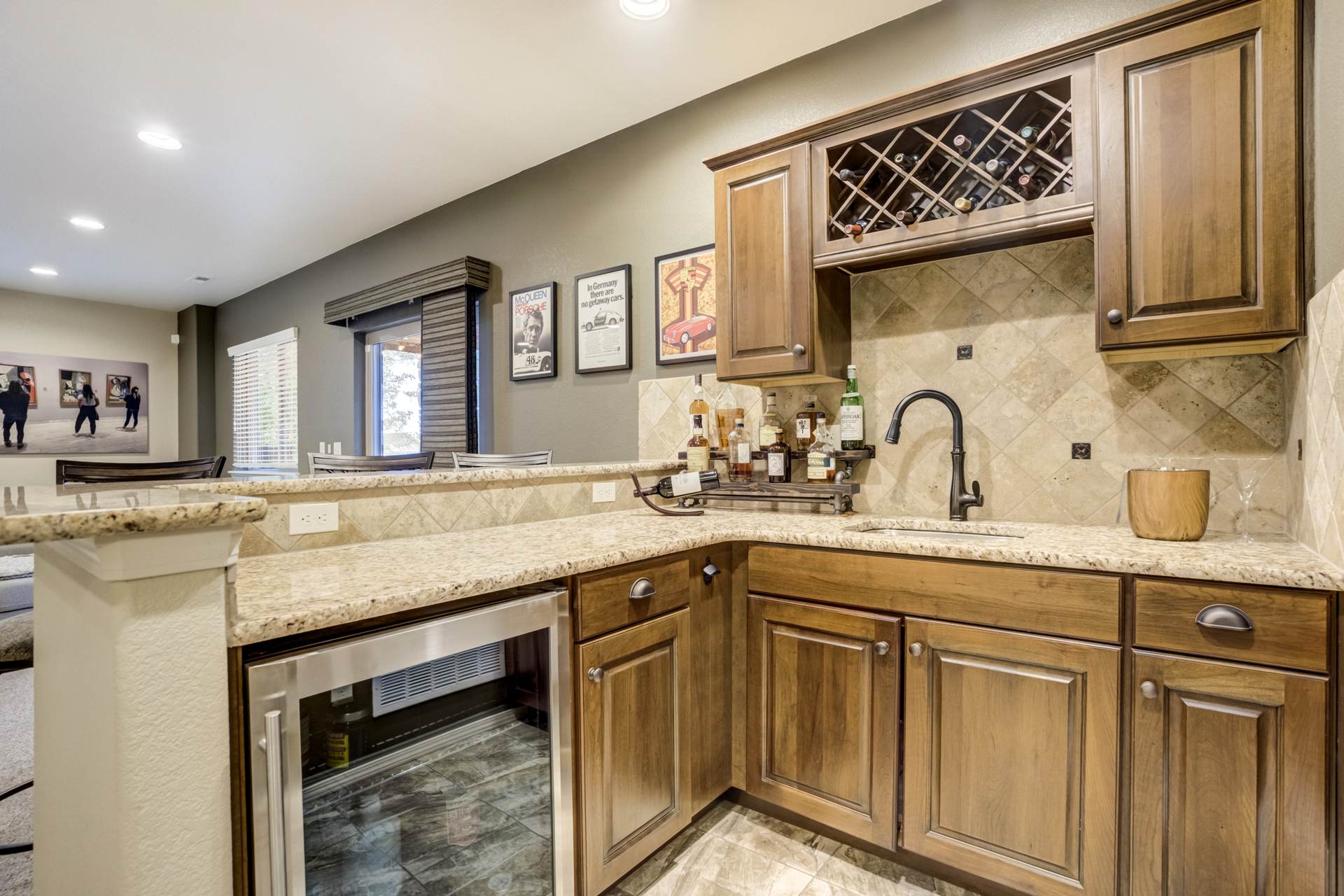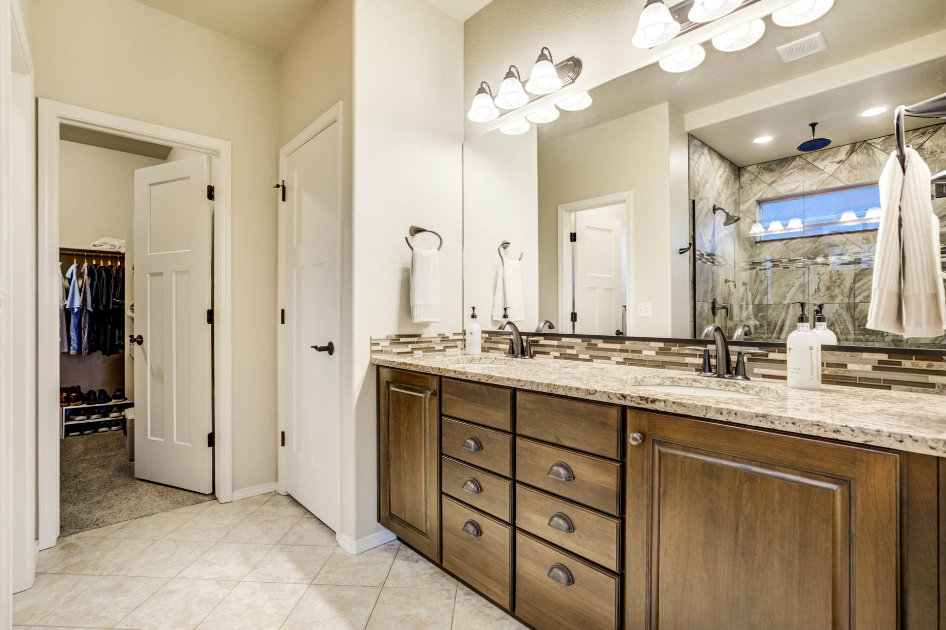 Lakeview. Mountain Views. Forest Lakes Living. This beautifully appointed Classic Home captures the best of Colorado living with sweeping lake and mountain views and thoughtfully designed indoor-outdoor spaces to enjoy them. Step inside to an expansive great room filled with natural light from large, well-placed windows, complemented by rich hickory hardwood floors and soaring 10-foot ceilings. The open layout flows effortlessly to a covered 10x29 composite deck, perfectly positioned to take in the views. The gourmet kitchen features granite countertops, 42-inch cabinetry with crown molding, stainless steel appliances, and a gas convection range with a fifth burner. Generous counter space, abundant cabinetry, and a walk-in pantry make it ideal for both everyday living and entertaining. The main-level primary suite offers convenience and privacy, with tranquil views and a spa-inspired bath complete with dual shower heads, rain feature, and custom tile work. A nearby laundry room with ample storage and utility sink adds everyday ease. A private office near the entry provides flexibility for a fifth bedroom, with an adjacent powder bath. The walk-out lower level offers 9-foot ceilings, a spacious family room with wet bar, and direct access to a hand-laid paver patio, stone firepit, and multiple outdoor gathering areas. Two additional bedrooms and a large unfinished space offer potential for expansion. Additional features include high-efficiency furnace, humidifier, water softener, gas stubs for outdoor heating and grilling, and a finished garage with epoxy floors, built-ins, and a dog wash station. A dedicated generator pad with gas hookup is already in place. Enjoy lake access just minutes away for paddleboarding, kayaking, and fishing, along with close proximity to the Santa Fe Trail, downtown Monument, United States Air Force Academy, and easy I-25 access to both Denver and Colorado Springs.