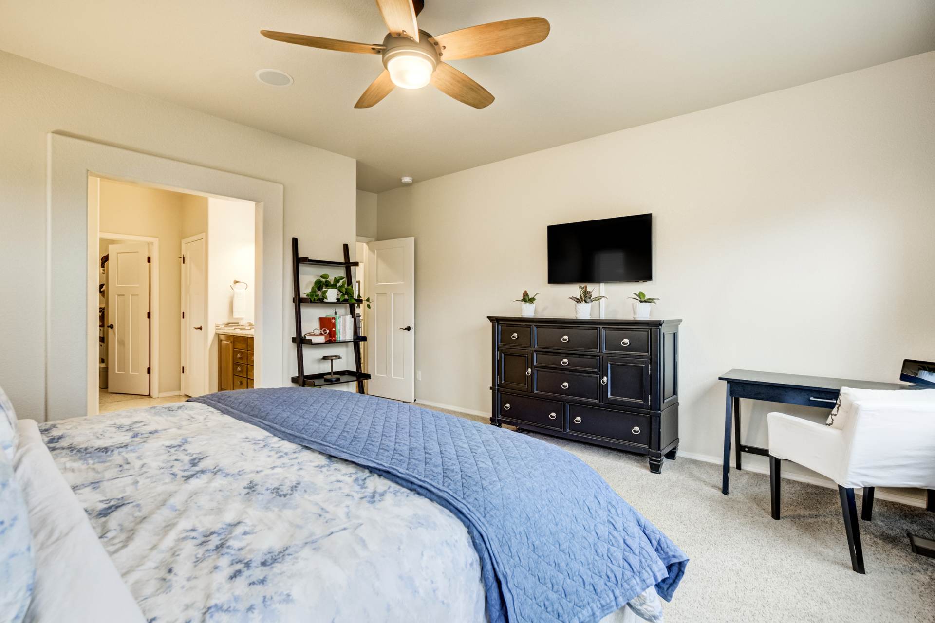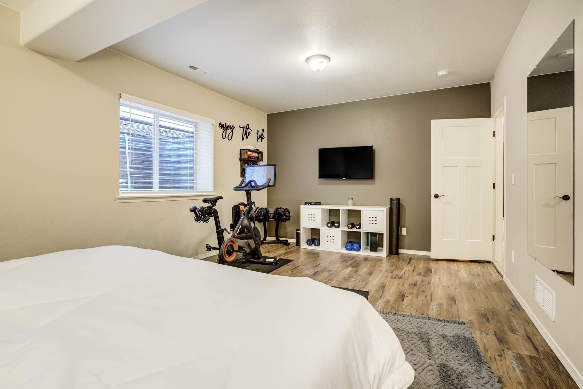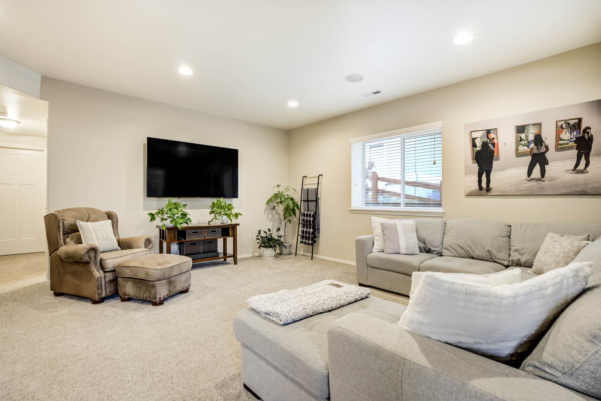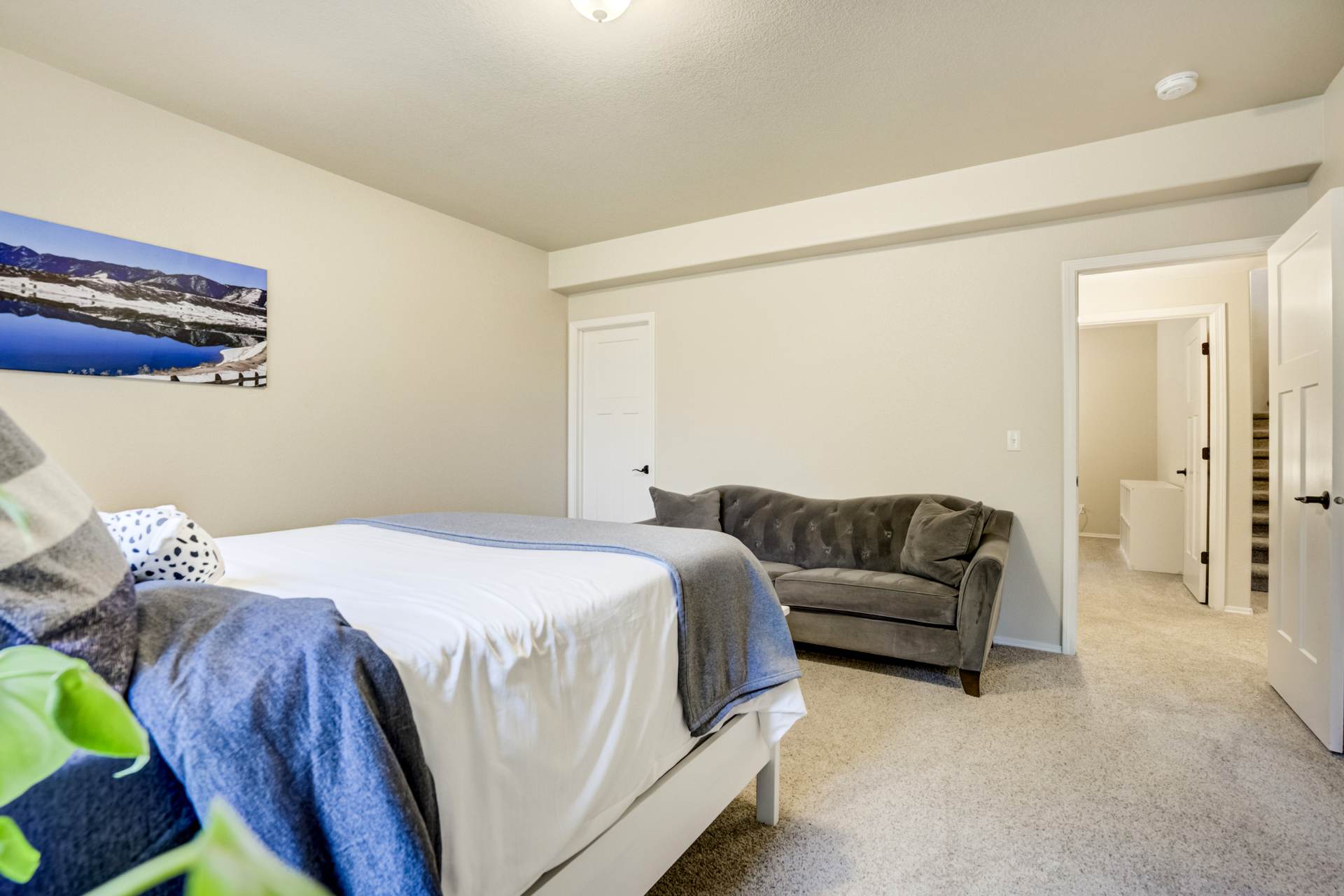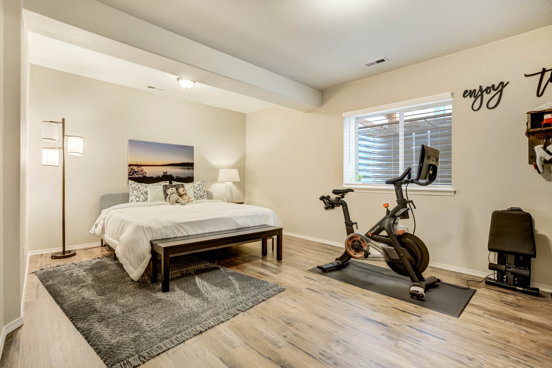 Lakeview. Mountain Views. Forest Lakes Living. This beautifully appointed Classic Home captures the best of Colorado living with sweeping lake and mountain views and thoughtfully designed indoor-outdoor spaces to enjoy them. Step inside to an expansive great room filled with natural light from large, well-placed windows, complemented by rich hickory hardwood floors and soaring 10-foot ceilings. The open layout flows effortlessly to a covered 10x29 composite deck, perfectly positioned to take in the views. The gourmet kitchen features granite countertops, 42-inch cabinetry with crown molding, stainless steel appliances, and a gas convection range with a fifth burner. Generous counter space, abundant cabinetry, and a walk-in pantry make it ideal for both everyday living and entertaining. The main-level primary suite offers convenience and privacy, with tranquil views and a spa-inspired bath complete with dual shower heads, rain feature, and custom tile work. A nearby laundry room with ample storage and utility sink adds everyday ease. A private office near the entry provides flexibility for a fifth bedroom, with an adjacent powder bath. The walk-out lower level offers 9-foot ceilings, a spacious family room with wet bar, and direct access to a hand-laid paver patio, stone firepit, and multiple outdoor gathering areas. Two additional bedrooms and a large unfinished space offer potential for expansion. Additional features include high-efficiency furnace, humidifier, water softener, gas stubs for outdoor heating and grilling, and a finished garage with epoxy floors, built-ins, and a dog wash station. A dedicated generator pad with gas hookup is already in place. Enjoy lake access just minutes away for paddleboarding, kayaking, and fishing, along with close proximity to the Santa Fe Trail, downtown Monument, United States Air Force Academy, and easy I-25 access to both Denver and Colorado Springs.