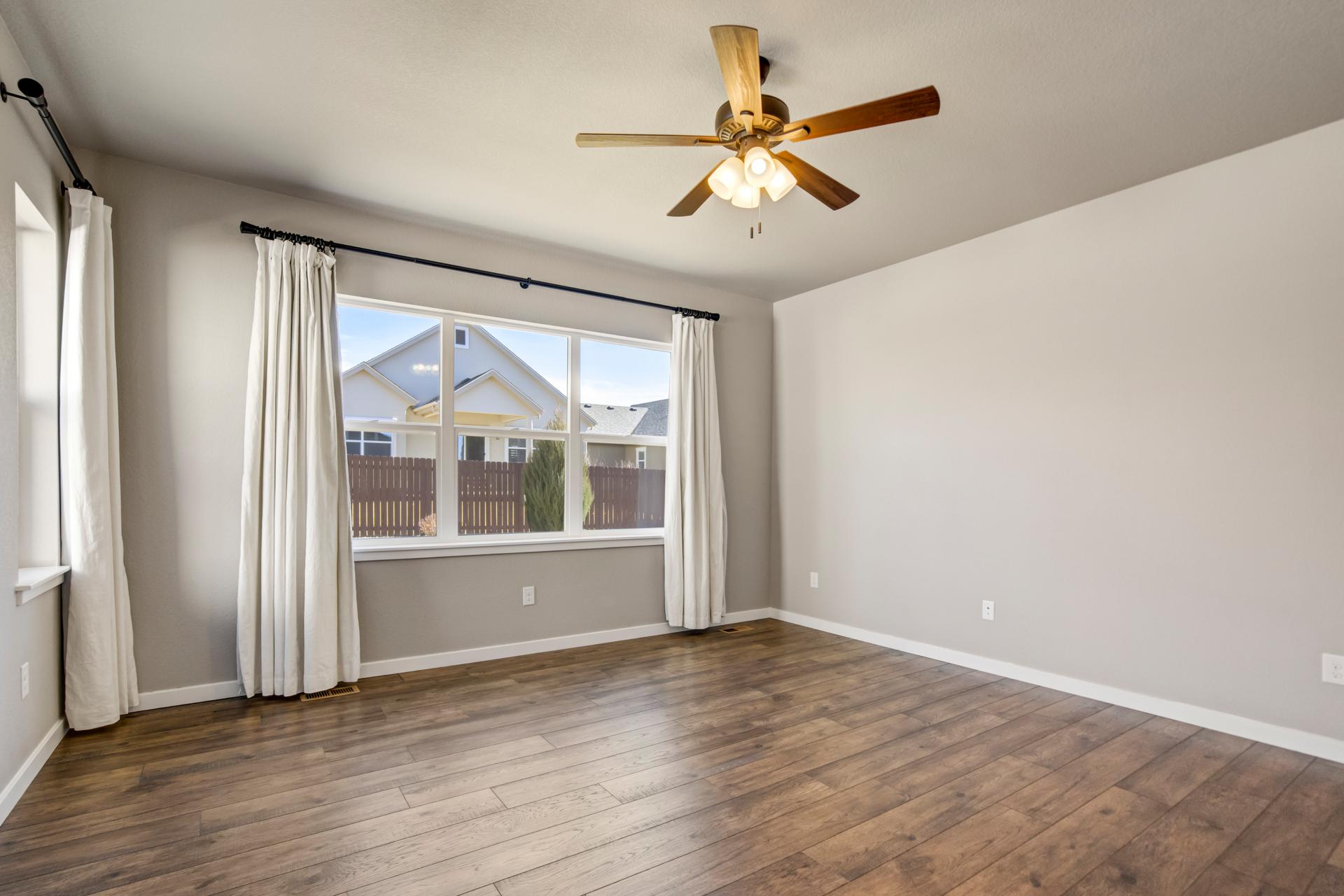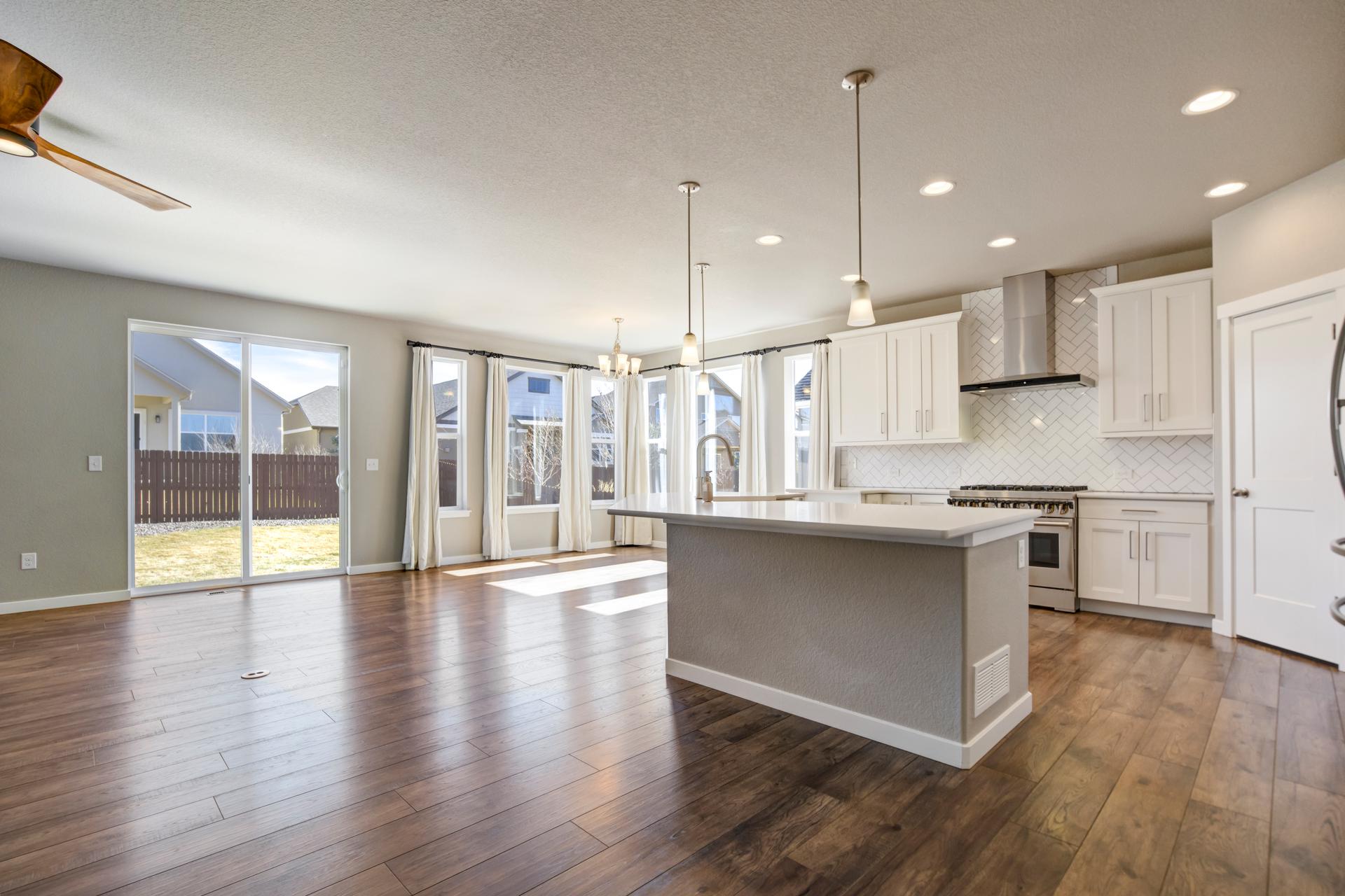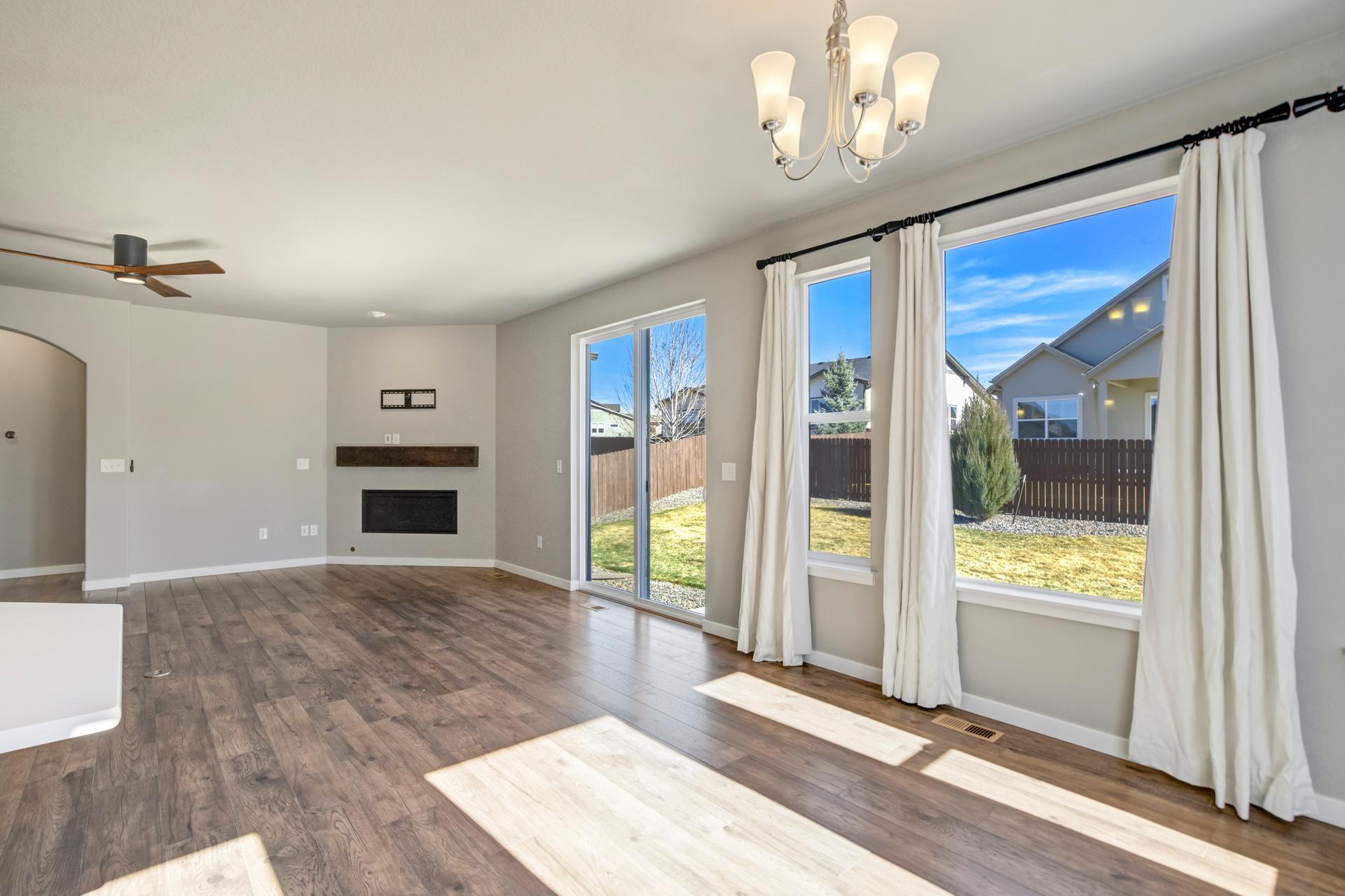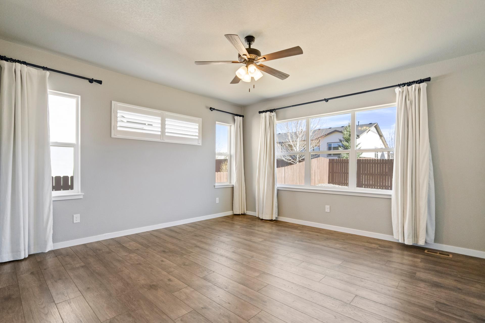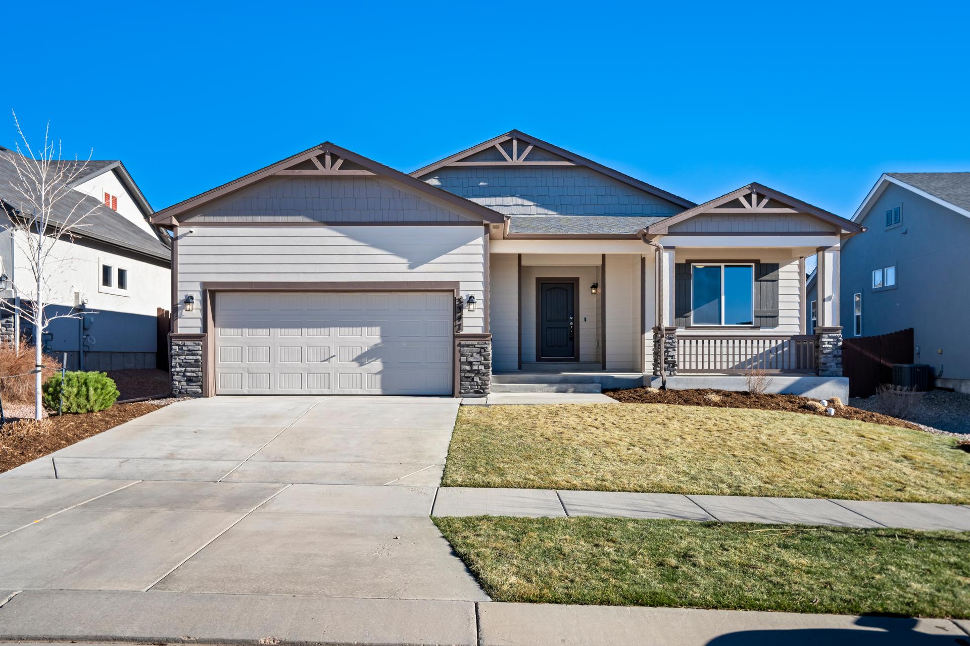 Set in North Fork at Briargate, this like new ranch home pairs a newer neighborhood setting w/ a prime position along the community greenway, creating a wide-open feel w/ Pikes Peak framed in the backdrop. Sidewalks, trails, parks, pet stations, D20 schools, & quick access to Powers, Old Ranch Road, USAFA, InterQuest shopping, dining, theaters, Life Time, VillaSport, Costco, Target, King Soopers, & more all add to the day-to-day convenience. Inside, the open-concept layout delivers easy main-level living w/ 10'ceilings, tons of windows, great natural light, & mountain views from both the front porch & backyard. Luxury vinyl plank flooring flow throughout the main level, while the great room is anchored by a modern gas FP & opens directly to the dining area & gourmet kitchen. The kitchen is finished w/ upgraded quartz counters, SS appliances, a double-oven, pro 6-burner gas range, deep farmhouse-style sink, island w/seating, pantry storage, & clean modern finishes. The main-level laundry is already dialed in w/ full-size Samsung units, while included window treatments add an immediate sense of privacy. The main-level primary suite is spacious & well designed w/a large walk-in closet & an upgraded bath featuring double vanities, a lux walk-in shower w/fllor to ceiling tile, glass door, & dual shower heads. A 2nd main-level bedroom sits nearby, creating flexible space for guests or office use w/ easy access to hallway full bath. Downstairs, the bsmnt w/9' ceilings, a large entertaining area, wet bar, wine fridge, 3 large bedrms, a full bath, & a finished storage room. This layout actually functions well for everyday living. Outside, the front covered patio has views of the open space, fenced backyard, extended-depth two-car garage, EV charger/240V outlet, & central A/C. Clean, updated, & well positioned in one of the most convenient pockets of Briargate, this is a strong ranch plan w/ the right mix of views, finish level, & usable space.