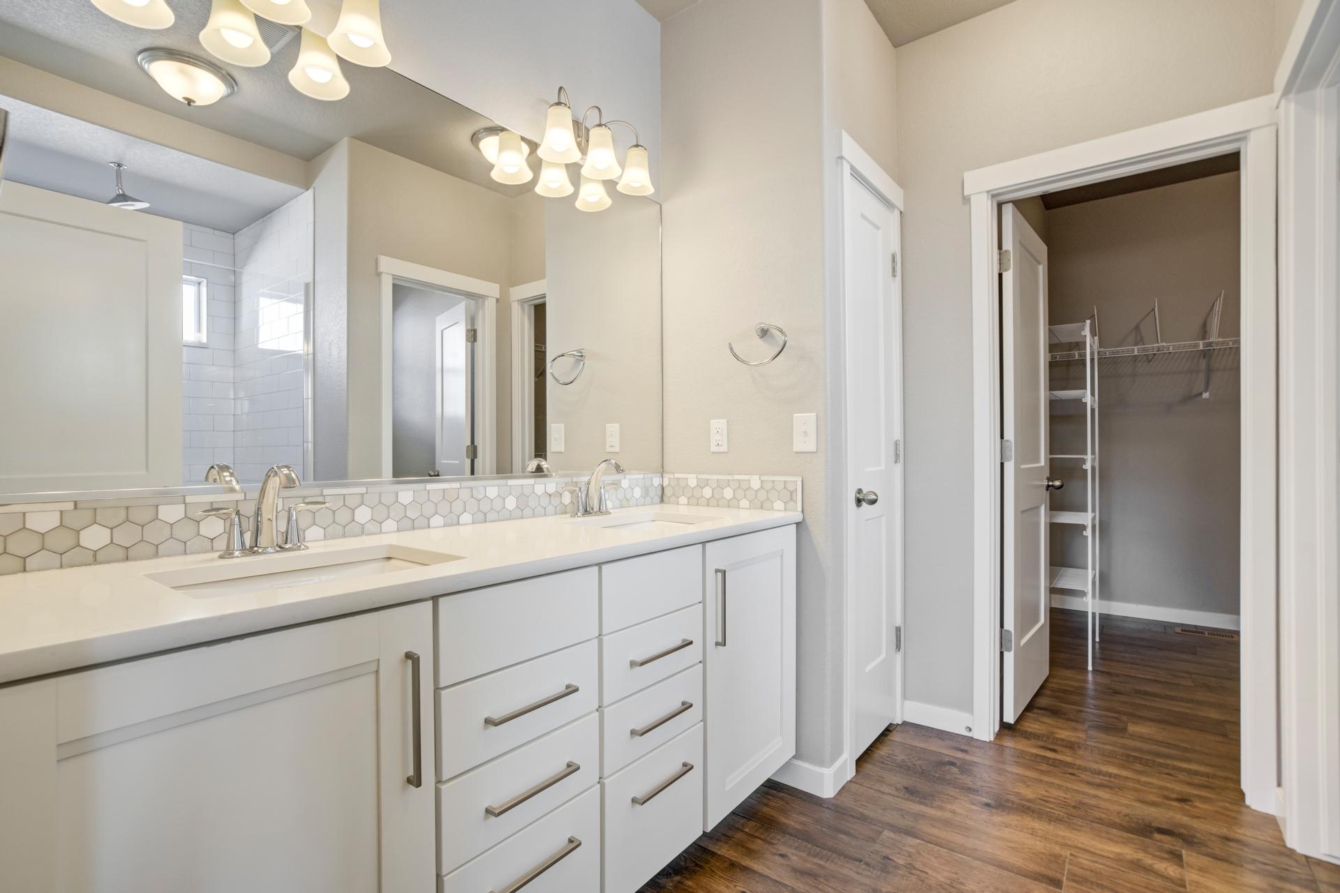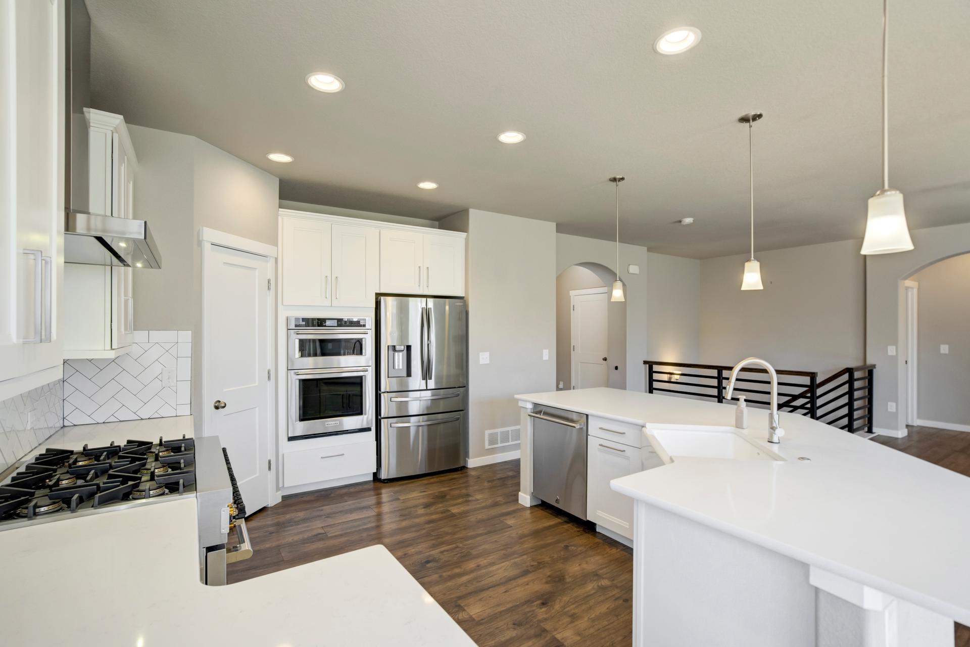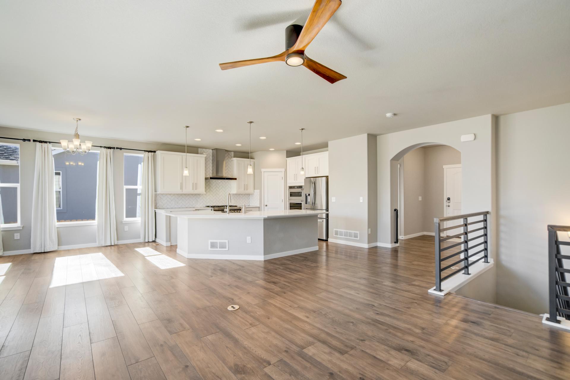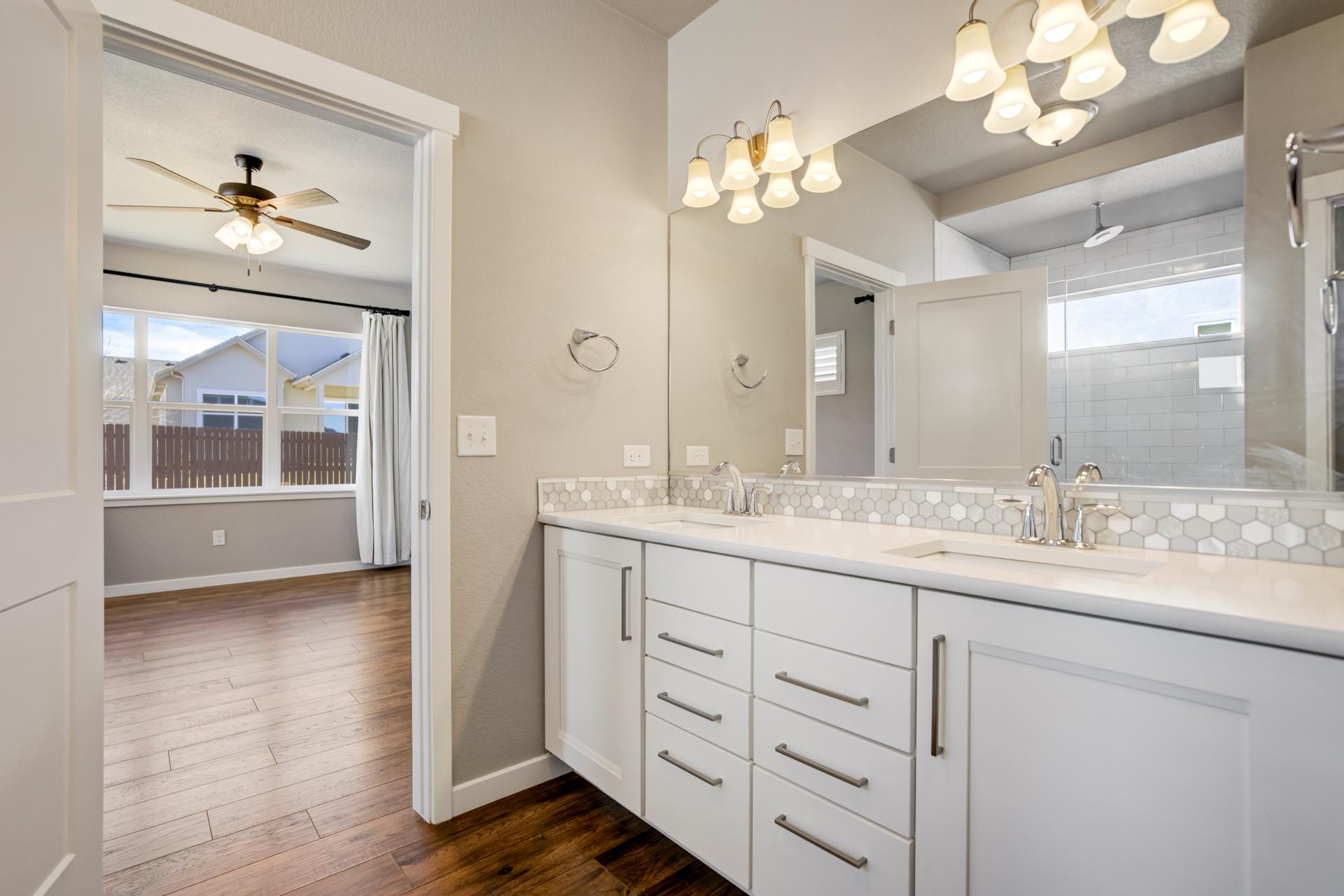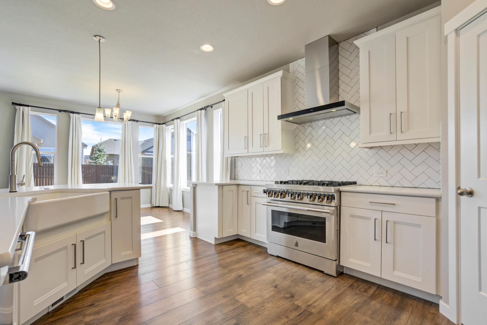 Set in North Fork at Briargate, this like new ranch home pairs a newer neighborhood setting w/ a prime position along the community greenway, creating a wide-open feel w/ Pikes Peak framed in the backdrop. Sidewalks, trails, parks, pet stations, D20 schools, & quick access to Powers, Old Ranch Road, USAFA, InterQuest shopping, dining, theaters, Life Time, VillaSport, Costco, Target, King Soopers, & more all add to the day-to-day convenience. Inside, the open-concept layout delivers easy main-level living w/ 10'ceilings, tons of windows, great natural light, & mountain views from both the front porch & backyard. Luxury vinyl plank flooring flow throughout the main level, while the great room is anchored by a modern gas FP & opens directly to the dining area & gourmet kitchen. The kitchen is finished w/ upgraded quartz counters, SS appliances, a double-oven, pro 6-burner gas range, deep farmhouse-style sink, island w/seating, pantry storage, & clean modern finishes. The main-level laundry is already dialed in w/ full-size Samsung units, while included window treatments add an immediate sense of privacy. The main-level primary suite is spacious & well designed w/a large walk-in closet & an upgraded bath featuring double vanities, a lux walk-in shower w/fllor to ceiling tile, glass door, & dual shower heads. A 2nd main-level bedroom sits nearby, creating flexible space for guests or office use w/ easy access to hallway full bath. Downstairs, the bsmnt w/9' ceilings, a large entertaining area, wet bar, wine fridge, 3 large bedrms, a full bath, & a finished storage room. This layout actually functions well for everyday living. Outside, the front covered patio has views of the open space, fenced backyard, extended-depth two-car garage, EV charger/240V outlet, & central A/C. Clean, updated, & well positioned in one of the most convenient pockets of Briargate, this is a strong ranch plan w/ the right mix of views, finish level, & usable space.