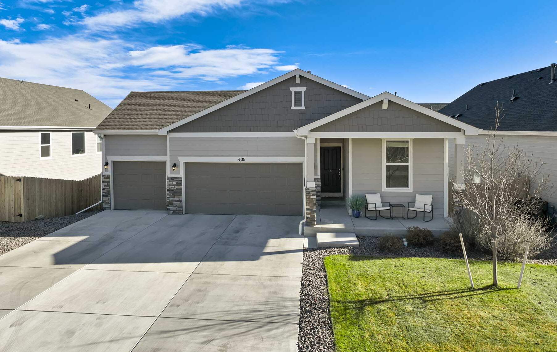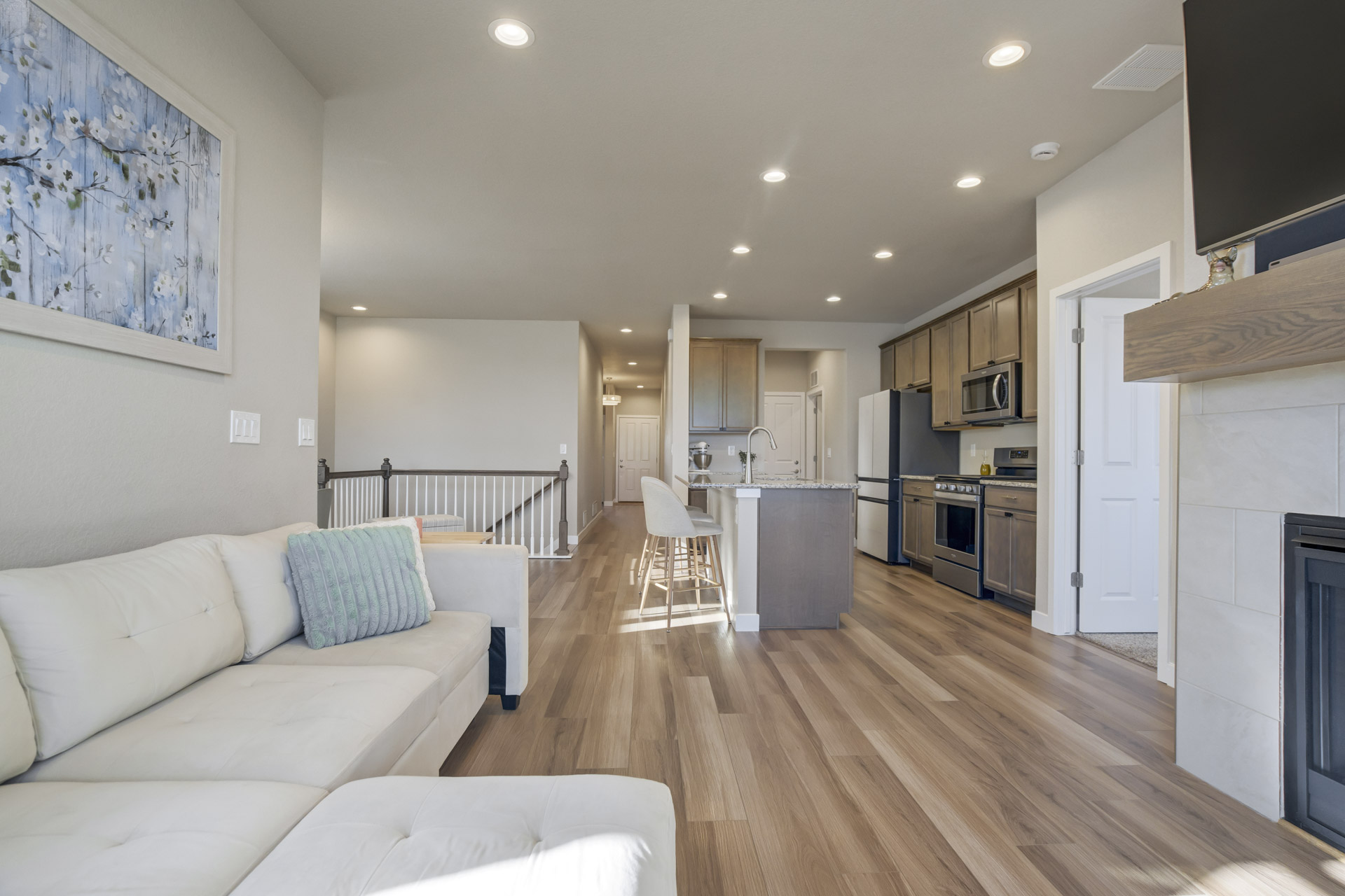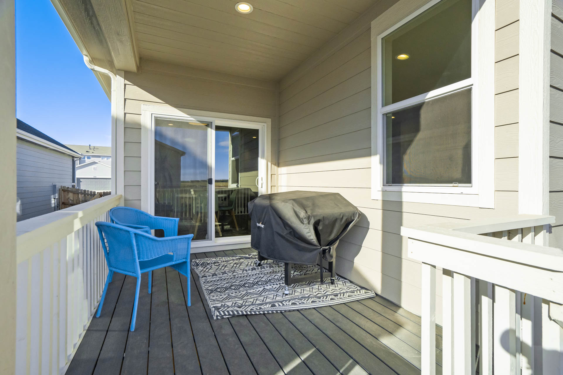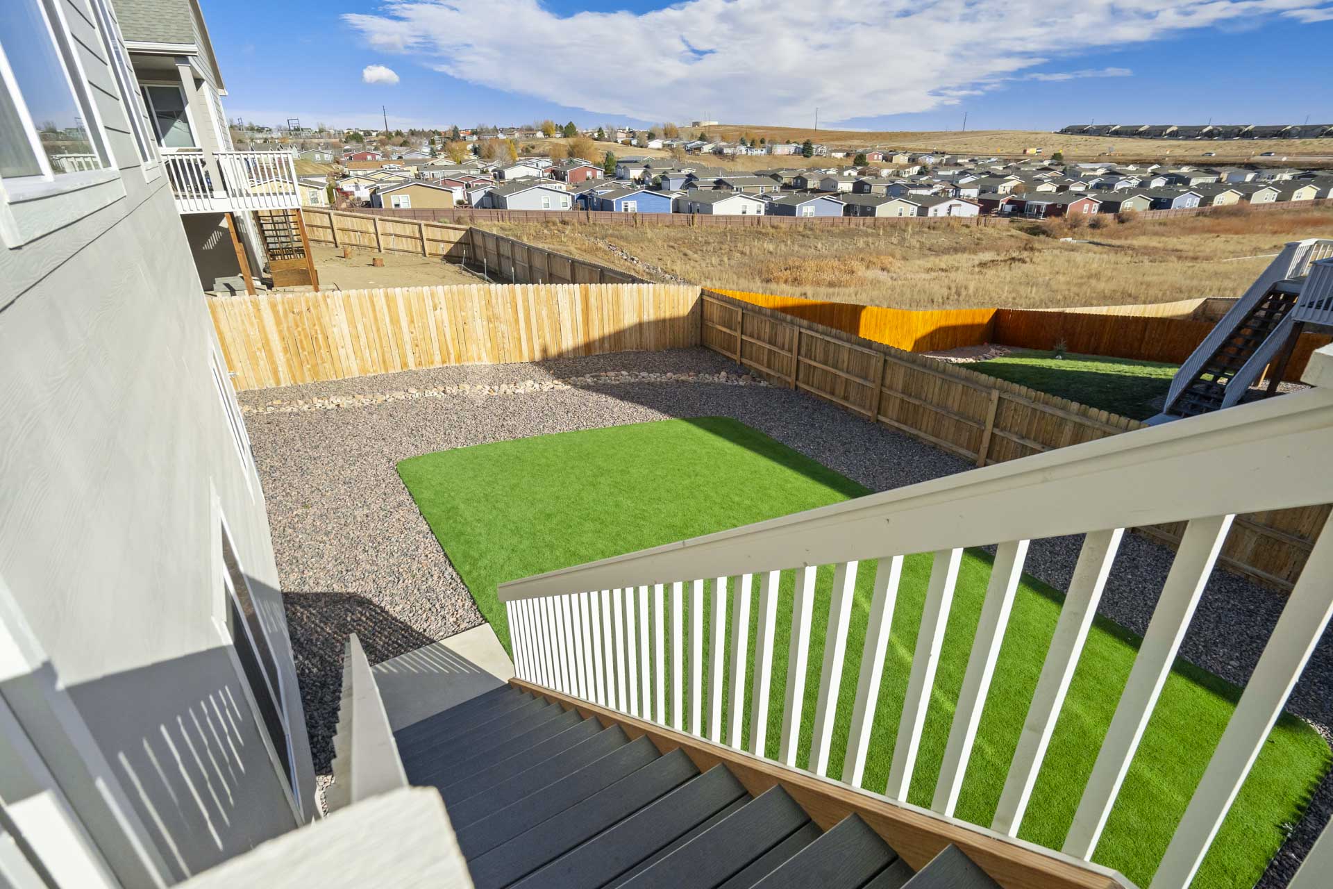 Set in the convenient Powers corridor w/quick access to shopping, dining, parks & D49 schools, this like-new ranch welcomes you w/beautifully manicured front landscaping & a covered front porch that leads into a bright, open main level. Inside, warm LVP wood flooring flows throughout the great room, connecting the upgraded kitchen, dining nook & living area into one cohesive entertaining space. The kitchen features gas stainless appliances, granite countertops, metal hardware, ample cabinet storage & a large island w/breakfast bar. The adjoining great room is centered by a gas fireplace w/tile surround & custom wood mantel, framed by large windows that bring in natural light & capture views of the open space behind the home. From the dining area, walk out to the covered composite deck w/space for a table & grill, extending the indoor–outdoor flow. The main level primary suite overlooks the open space & includes a ceiling fan, a private bath w/quartz double vanities, an oversized tiled shower w/bench & a large walk-in closet. Two additional main level bedrooms sit near the full hall bath finished w/tiled shower surround. The laundry room is also on this level for added convenience. The finished walkout basement expands the livability w/a large open family room, a full bathroom & a spacious bedroom w/walk-in closet. A finished storage area adds flexibility, while an additional unfinished room provides excellent space for storage, workshop needs or a home gym. Outside, the xeriscaped backyard features dog friendly artificial turf & rock for easy care, ideal for pets & play. Nearby community park & open space within walking distance. An oversized insulated 3-car garage, central air, vinyl windows & low-maintenance exterior materials complete this move-in-ready home.