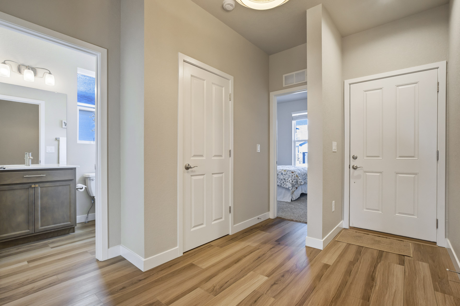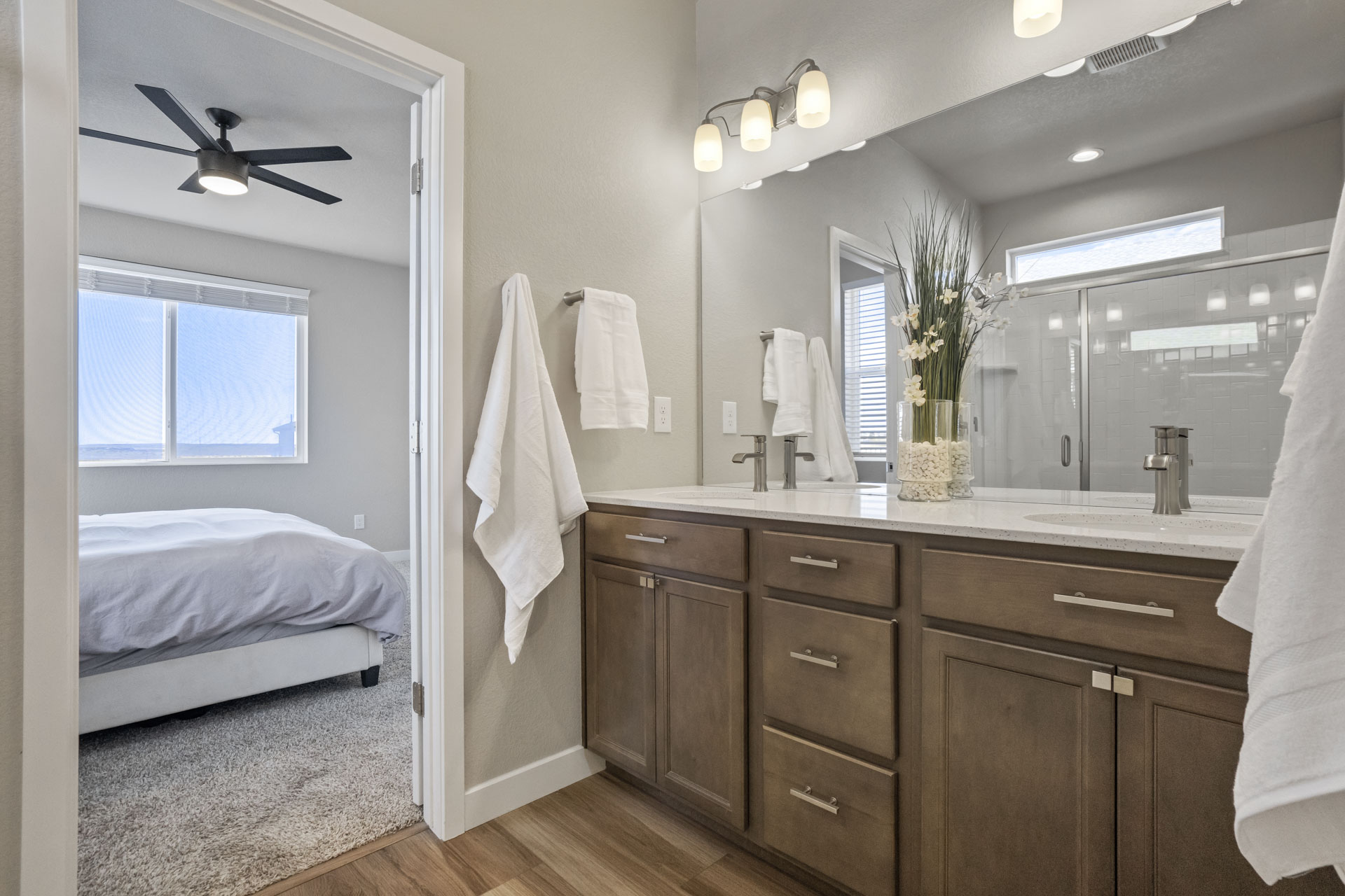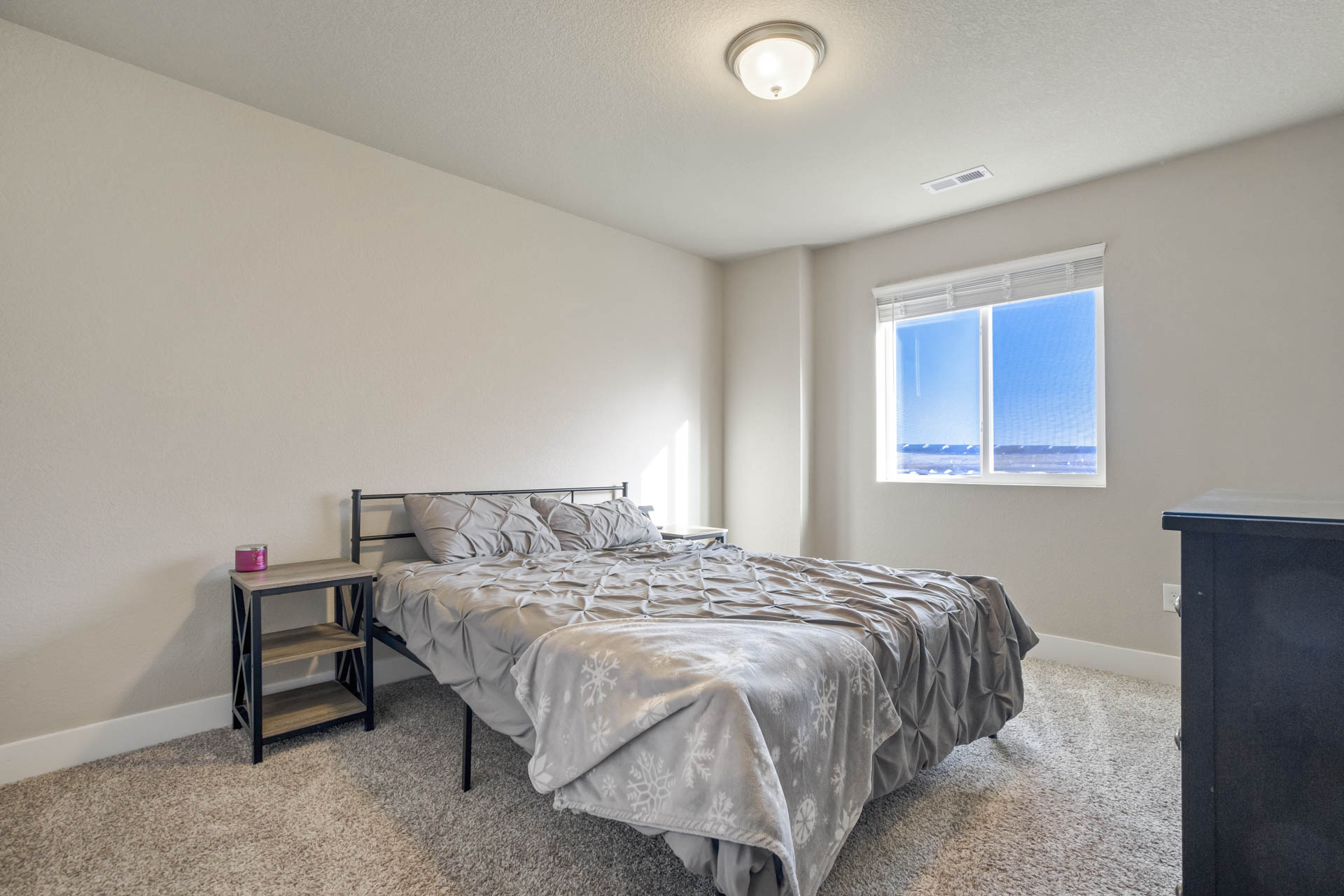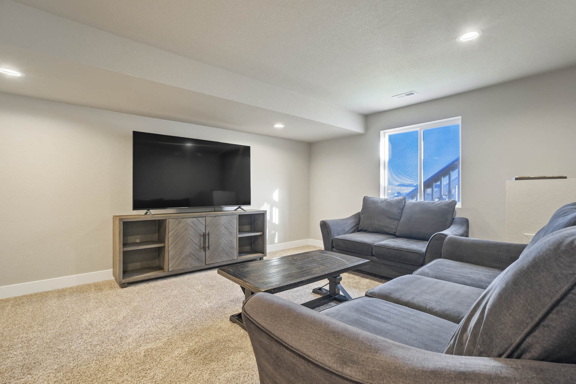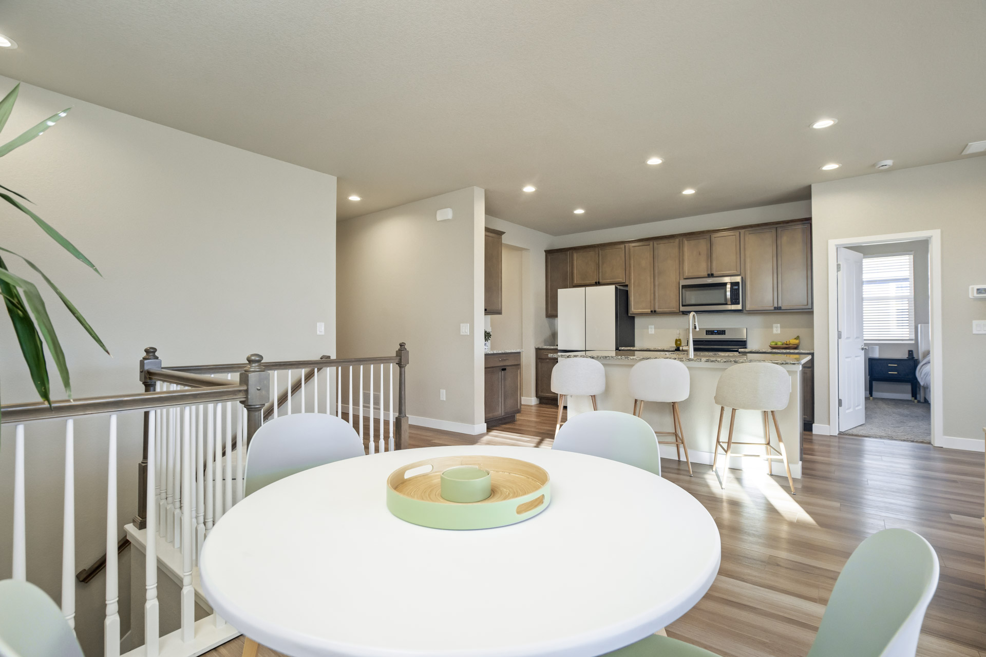 Set in the convenient Powers corridor w/quick access to shopping, dining, parks & D49 schools, this like-new ranch welcomes you w/beautifully manicured front landscaping & a covered front porch that leads into a bright, open main level. Inside, warm LVP wood flooring flows throughout the great room, connecting the upgraded kitchen, dining nook & living area into one cohesive entertaining space. The kitchen features gas stainless appliances, granite countertops, metal hardware, ample cabinet storage & a large island w/breakfast bar. The adjoining great room is centered by a gas fireplace w/tile surround & custom wood mantel, framed by large windows that bring in natural light & capture views of the open space behind the home. From the dining area, walk out to the covered composite deck w/space for a table & grill, extending the indoor–outdoor flow. The main level primary suite overlooks the open space & includes a ceiling fan, a private bath w/quartz double vanities, an oversized tiled shower w/bench & a large walk-in closet. Two additional main level bedrooms sit near the full hall bath finished w/tiled shower surround. The laundry room is also on this level for added convenience. The finished walkout basement expands the livability w/a large open family room, a full bathroom & a spacious bedroom w/walk-in closet. A finished storage area adds flexibility, while an additional unfinished room provides excellent space for storage, workshop needs or a home gym. Outside, the xeriscaped backyard features dog friendly artificial turf & rock for easy care, ideal for pets & play. Nearby community park & open space within walking distance. An oversized insulated 3-car garage, central air, vinyl windows & low-maintenance exterior materials complete this move-in-ready home.
