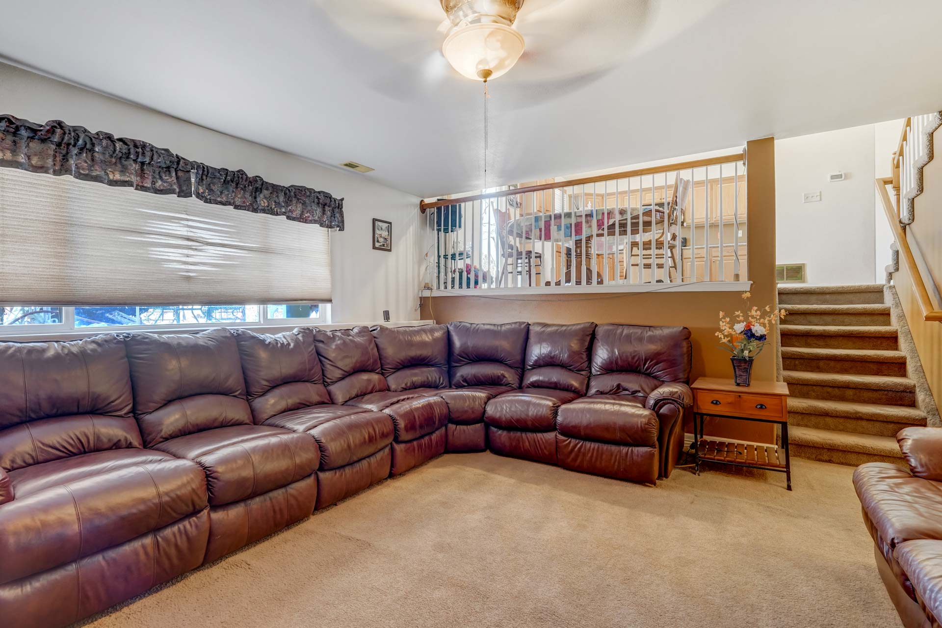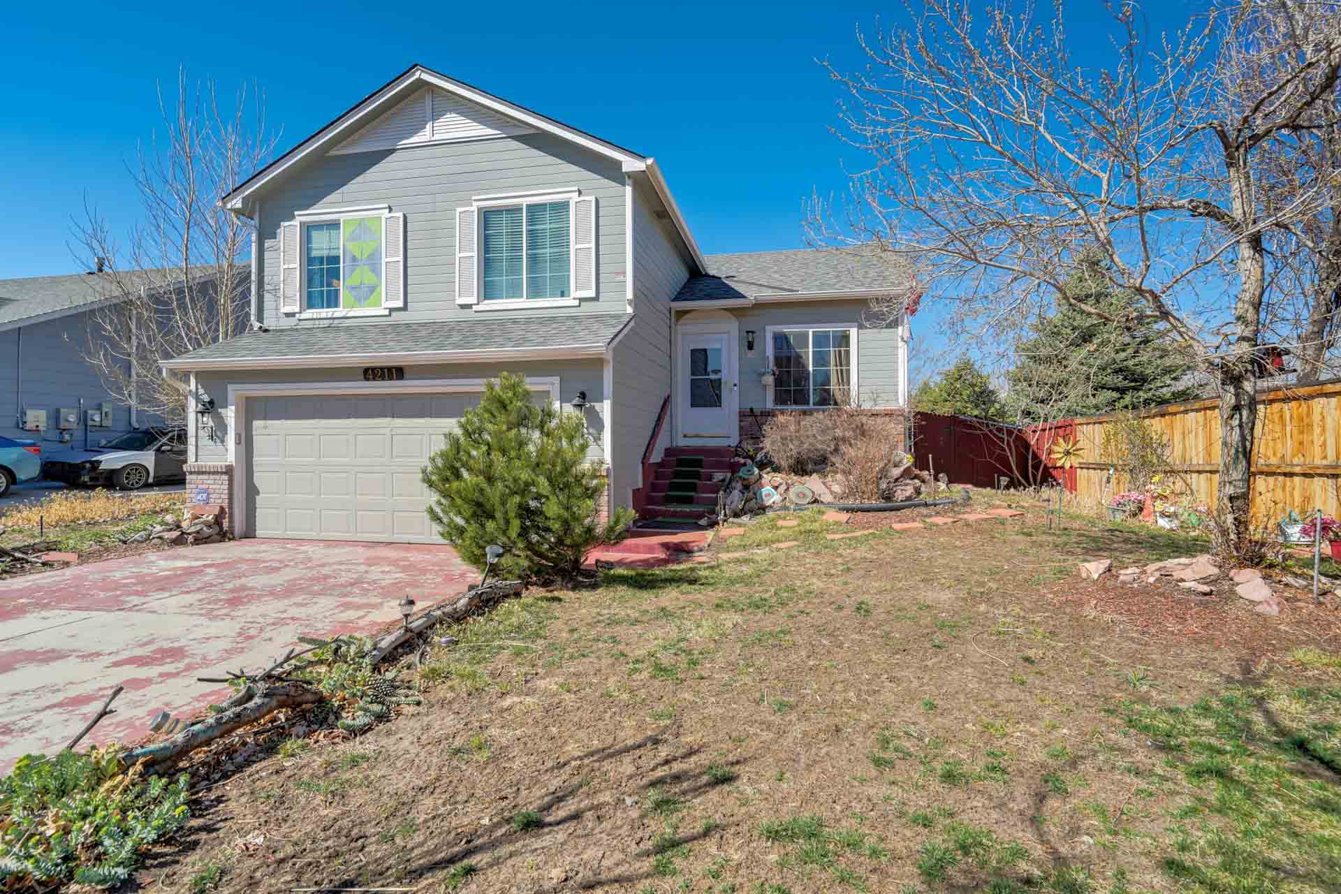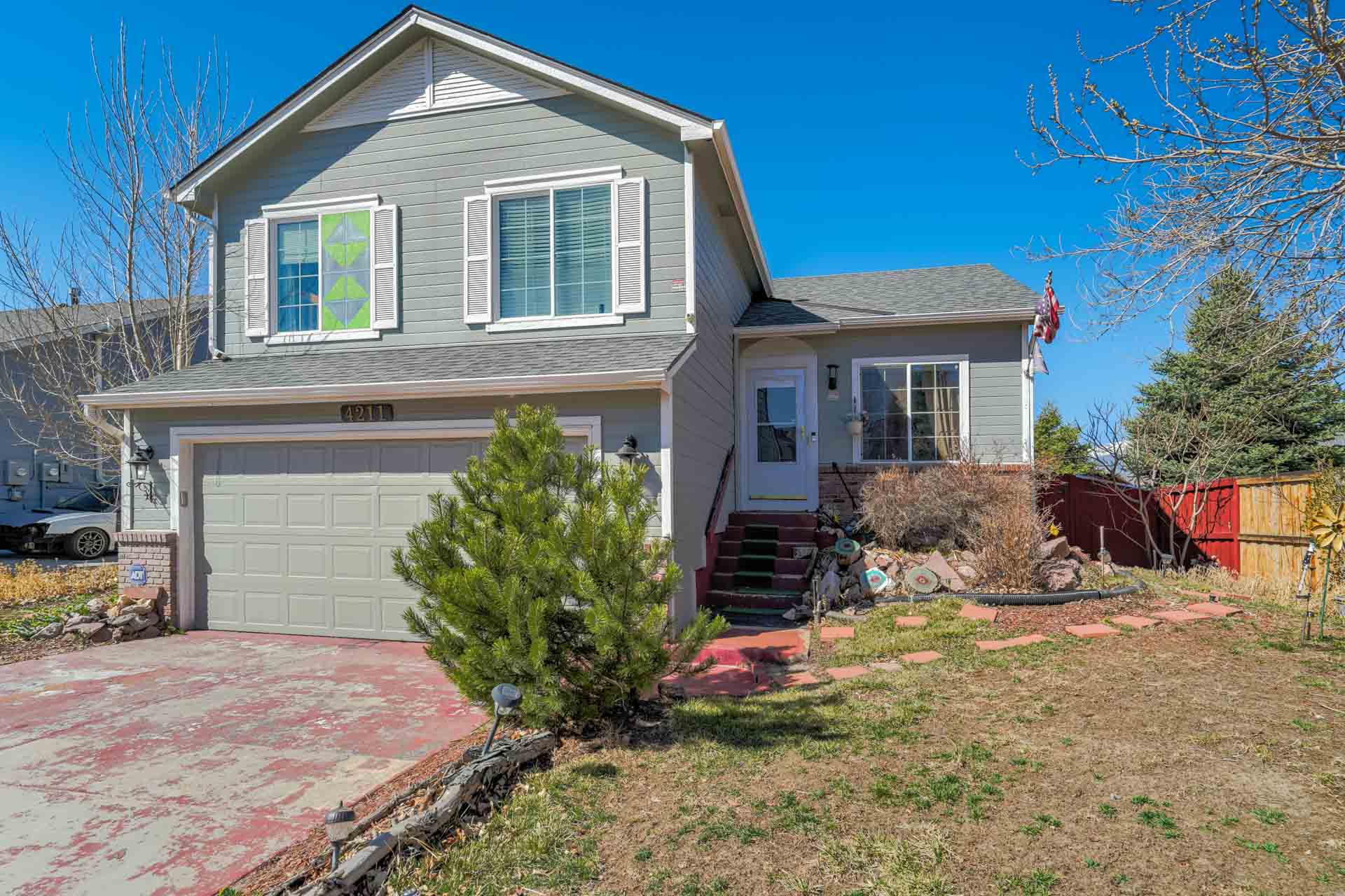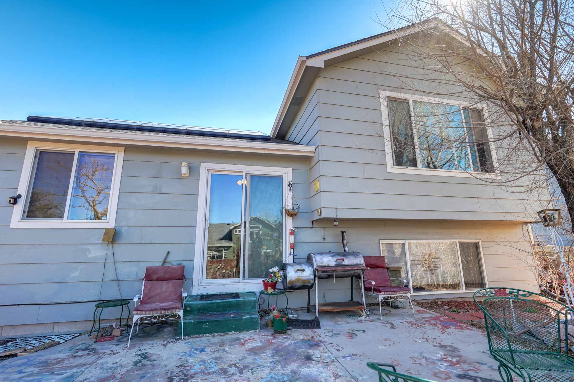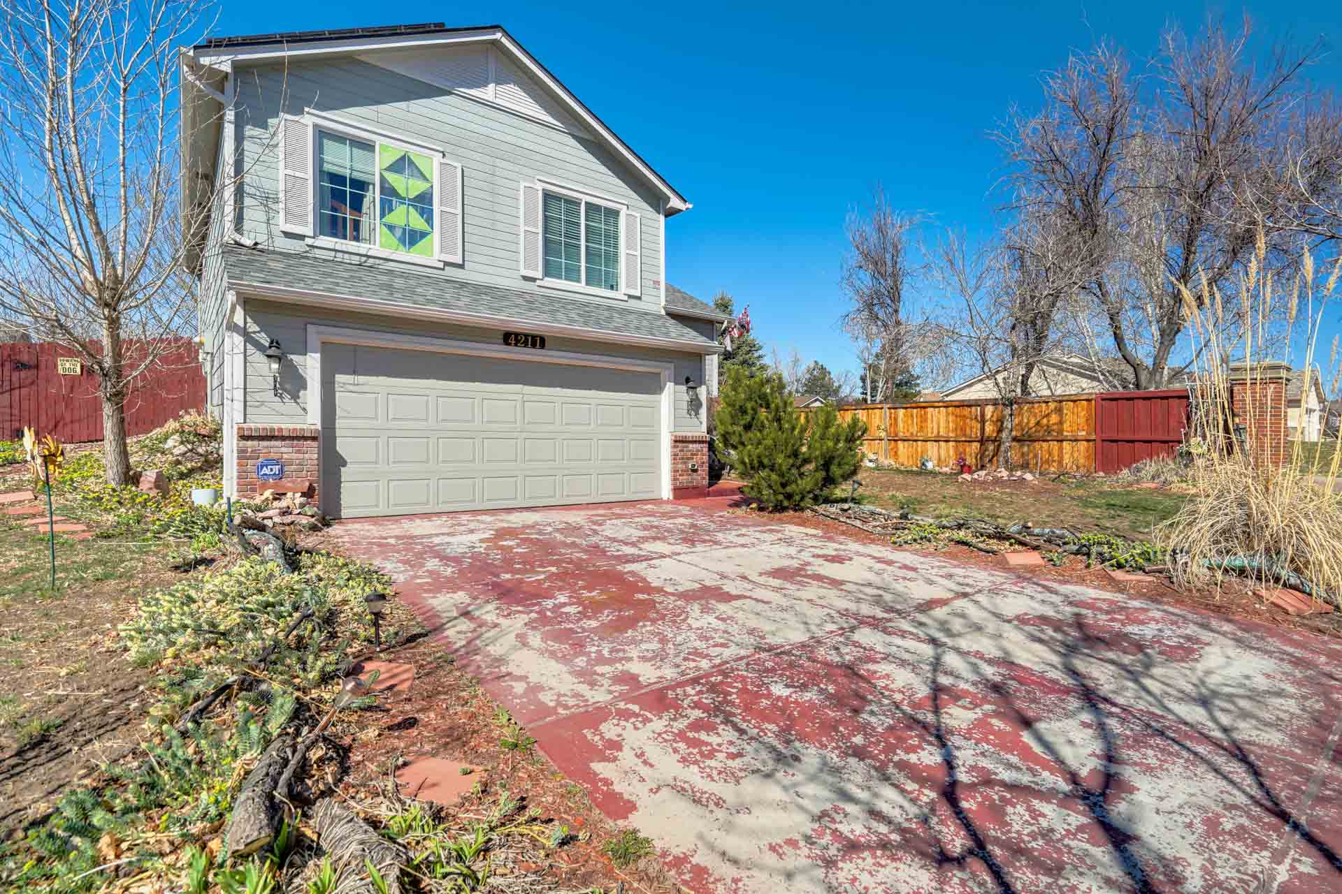 Great floorplan in Villages at Sand Creek! This home offers 3 beds, 2.5 baths and an unfinished basement. Walking in you'll love the vaulted ceilings! The kitchen/dining area opens up to the spacious fenced backyard. The living room has a cozy gas fireplace, plenty of natural light & convenient 1/2 bath with laundry room. The upper level has 3 bedrooms, a full hall bath, and the primary bedroom with another attached full bath. PLUS, enjoy energy savings with Solar Panels that are completely paid off. Schedule your showing today!