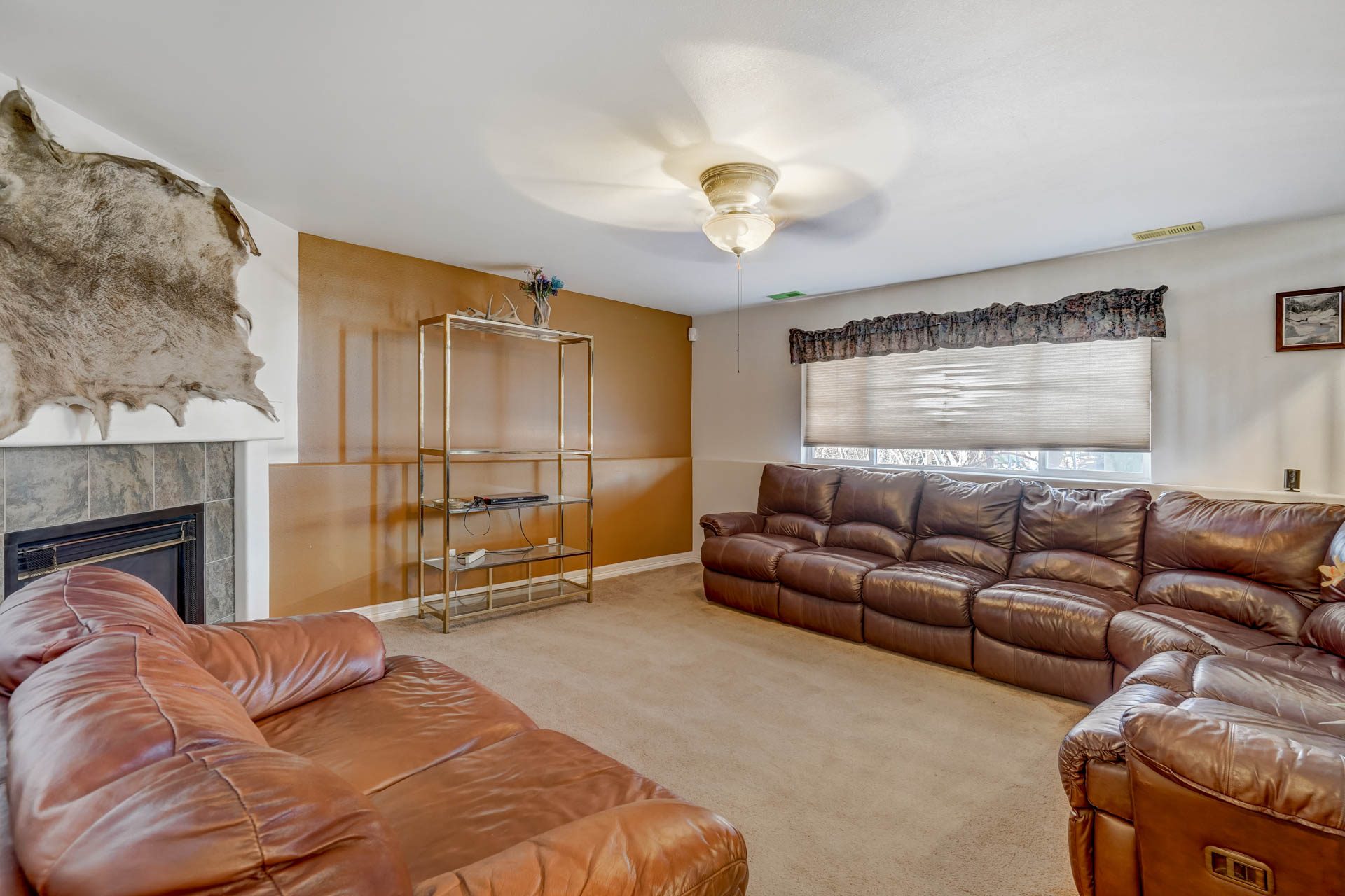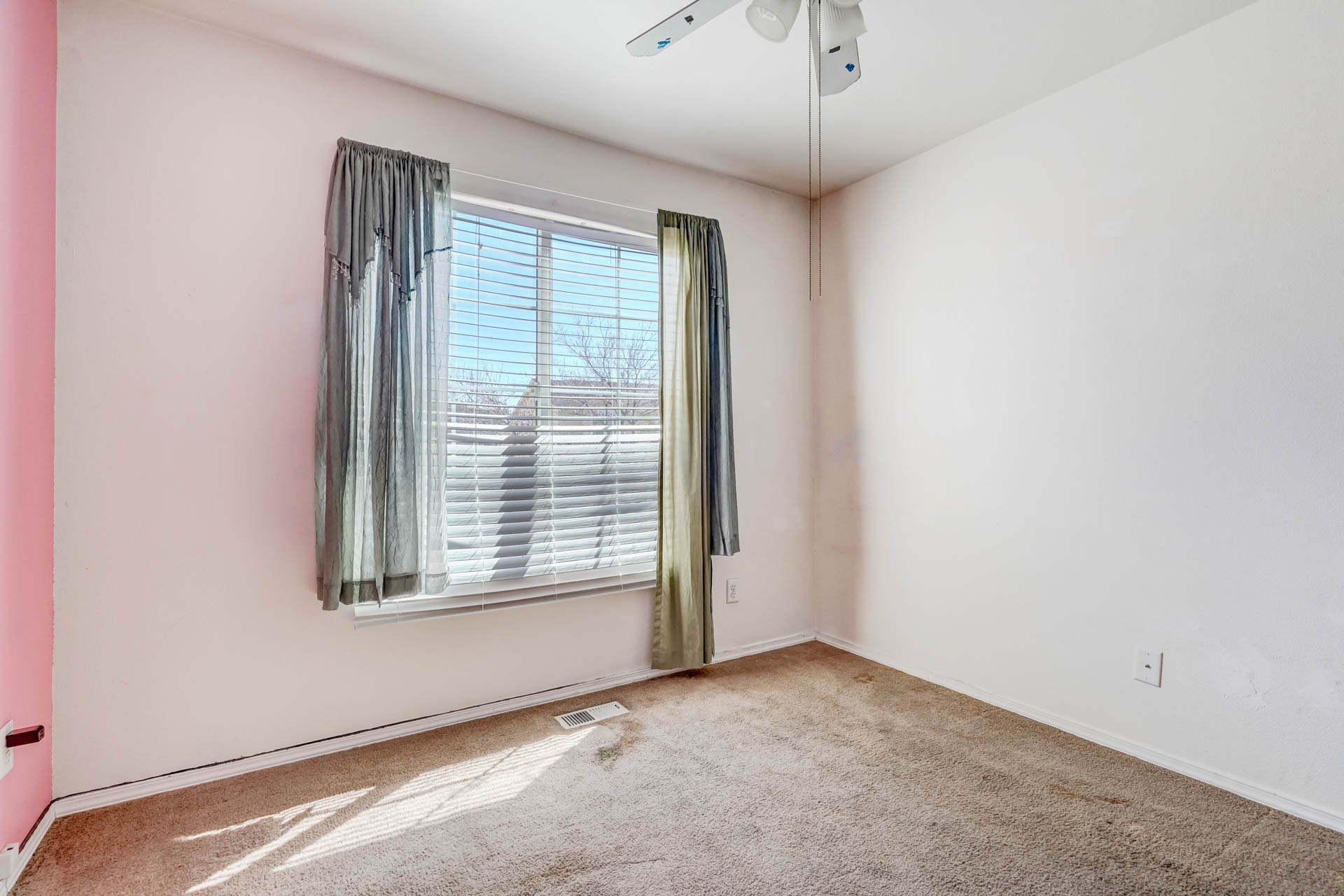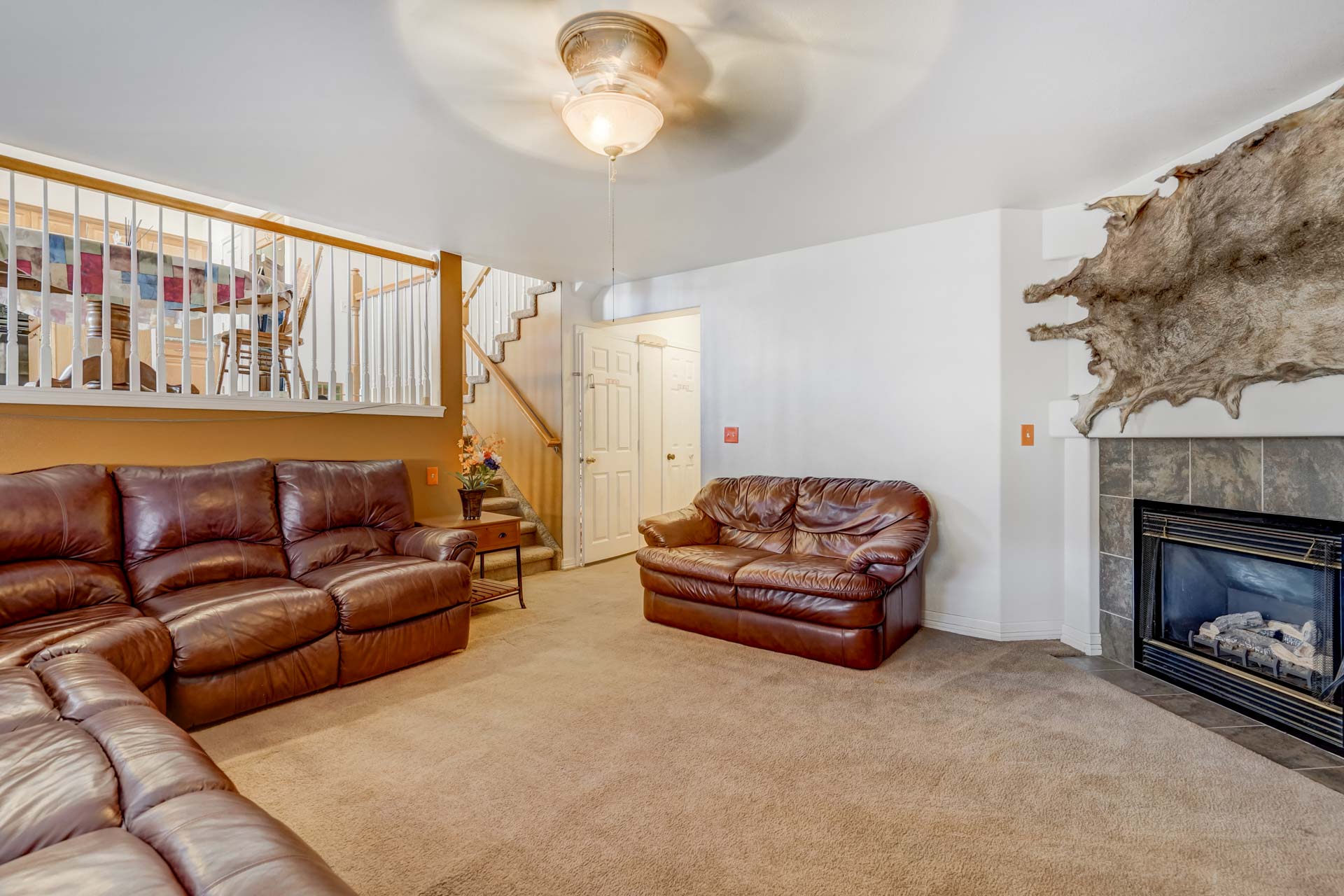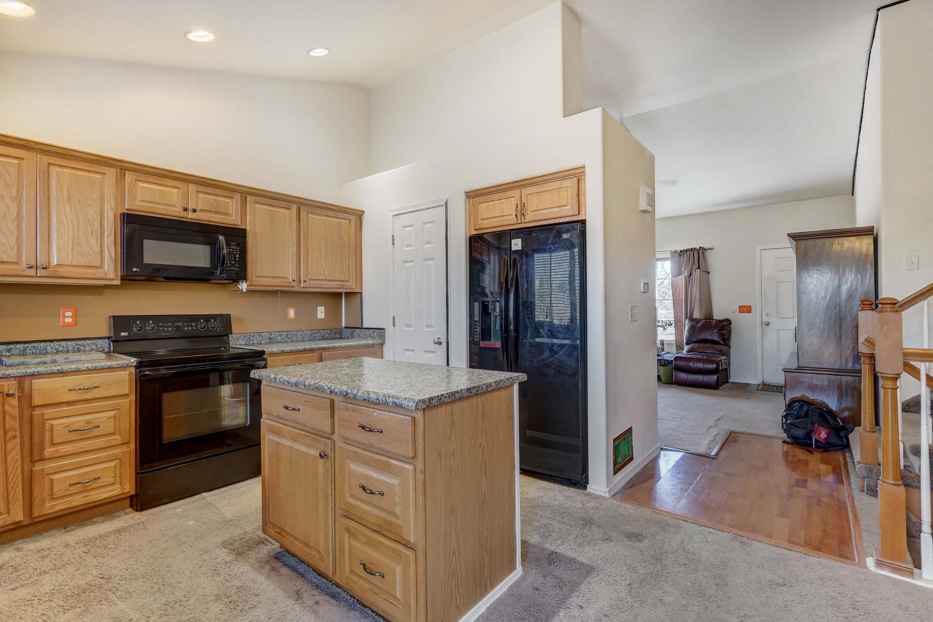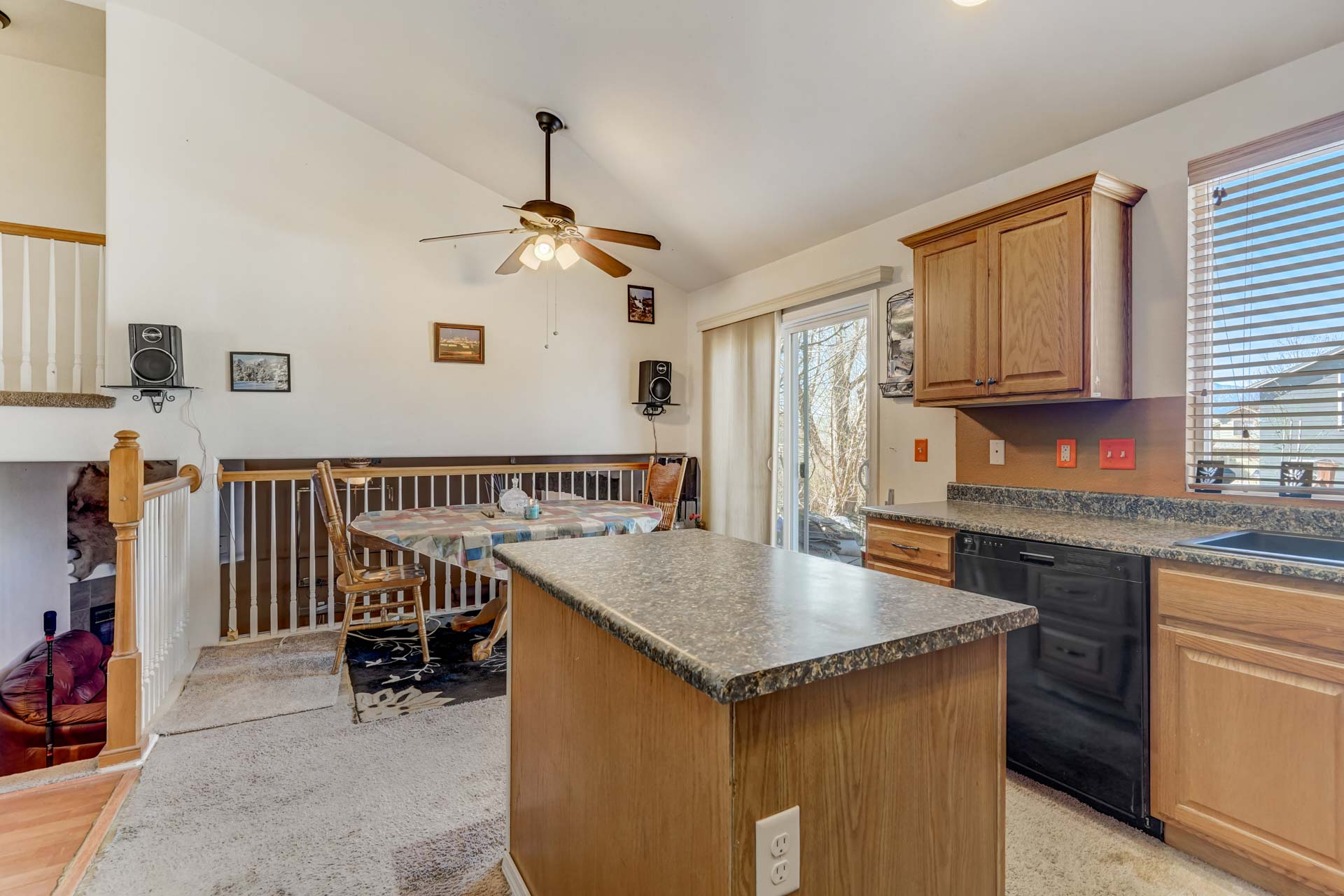 Great floorplan in Villages at Sand Creek! This home offers 3 beds, 2.5 baths and an unfinished basement. Walking in you'll love the vaulted ceilings! The kitchen/dining area opens up to the spacious fenced backyard. The living room has a cozy gas fireplace, plenty of natural light & convenient 1/2 bath with laundry room. The upper level has 3 bedrooms, a full hall bath, and the primary bedroom with another attached full bath. PLUS, enjoy energy savings with Solar Panels that are completely paid off. Schedule your showing today!