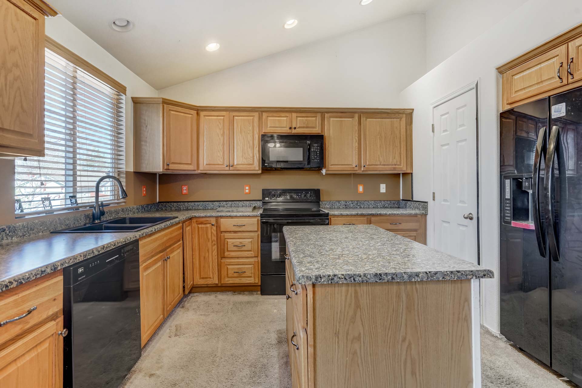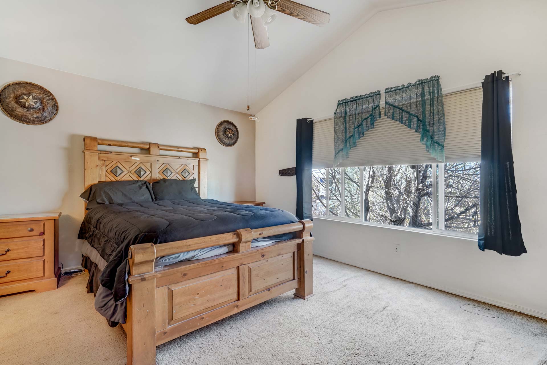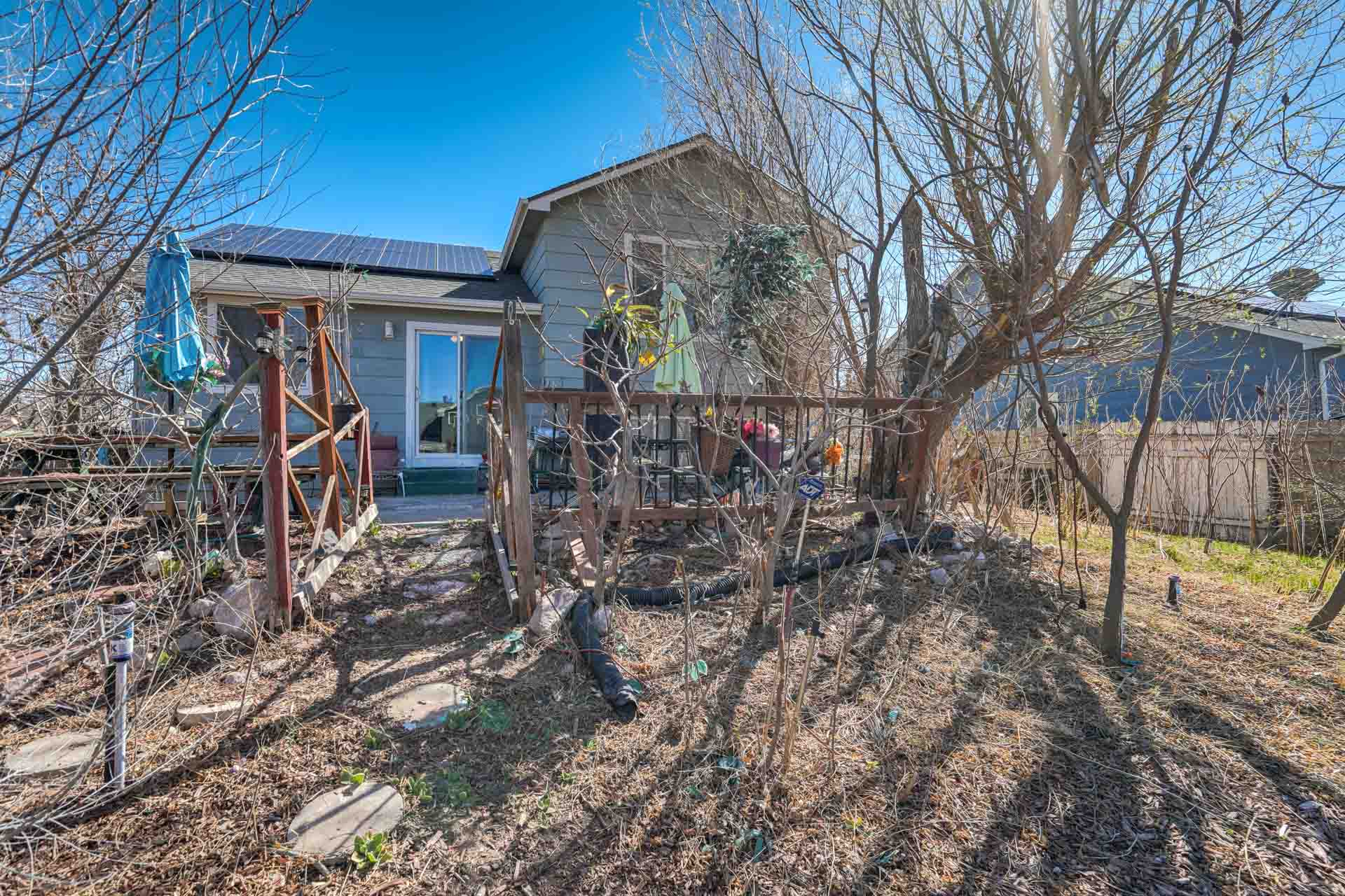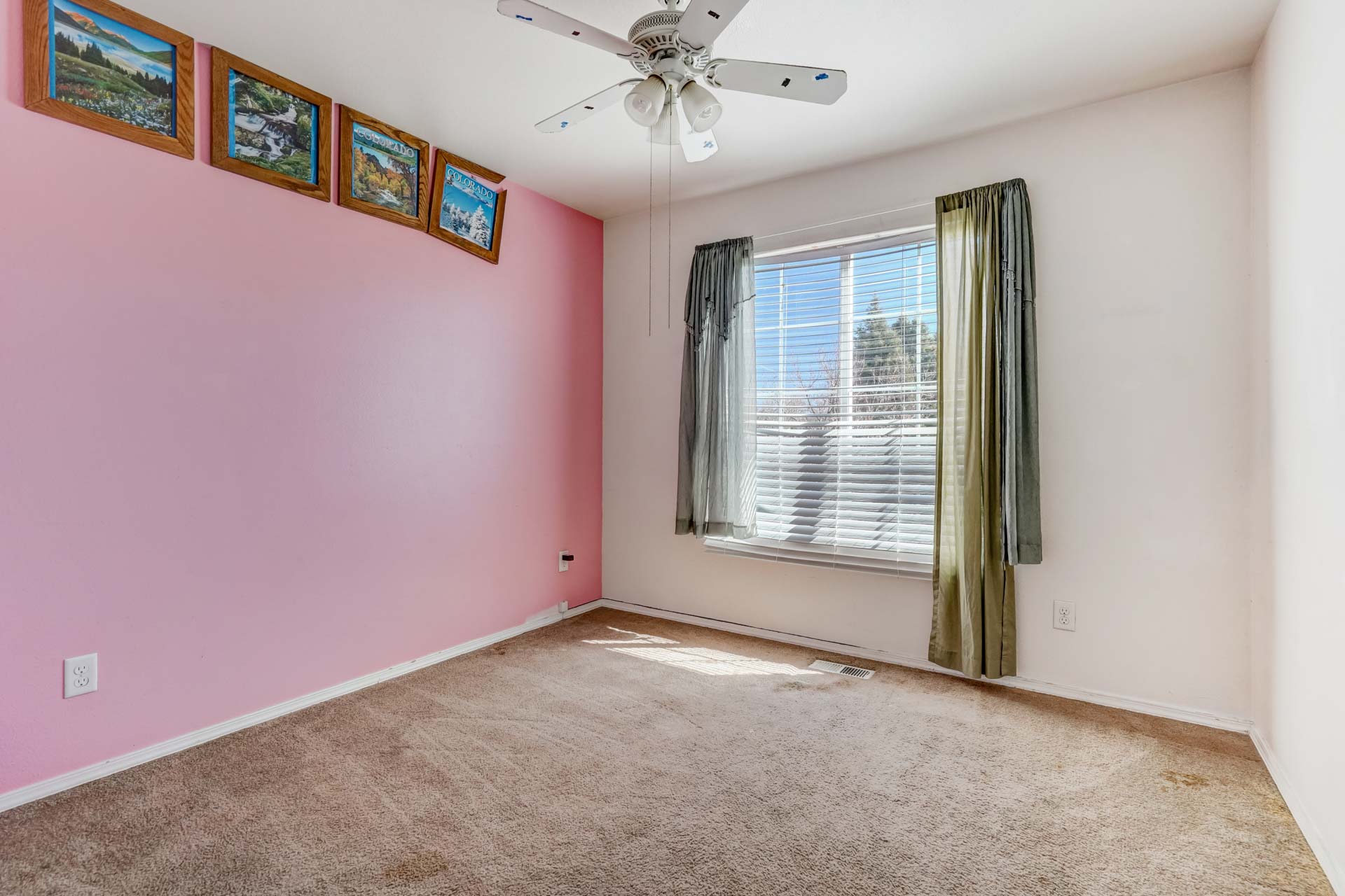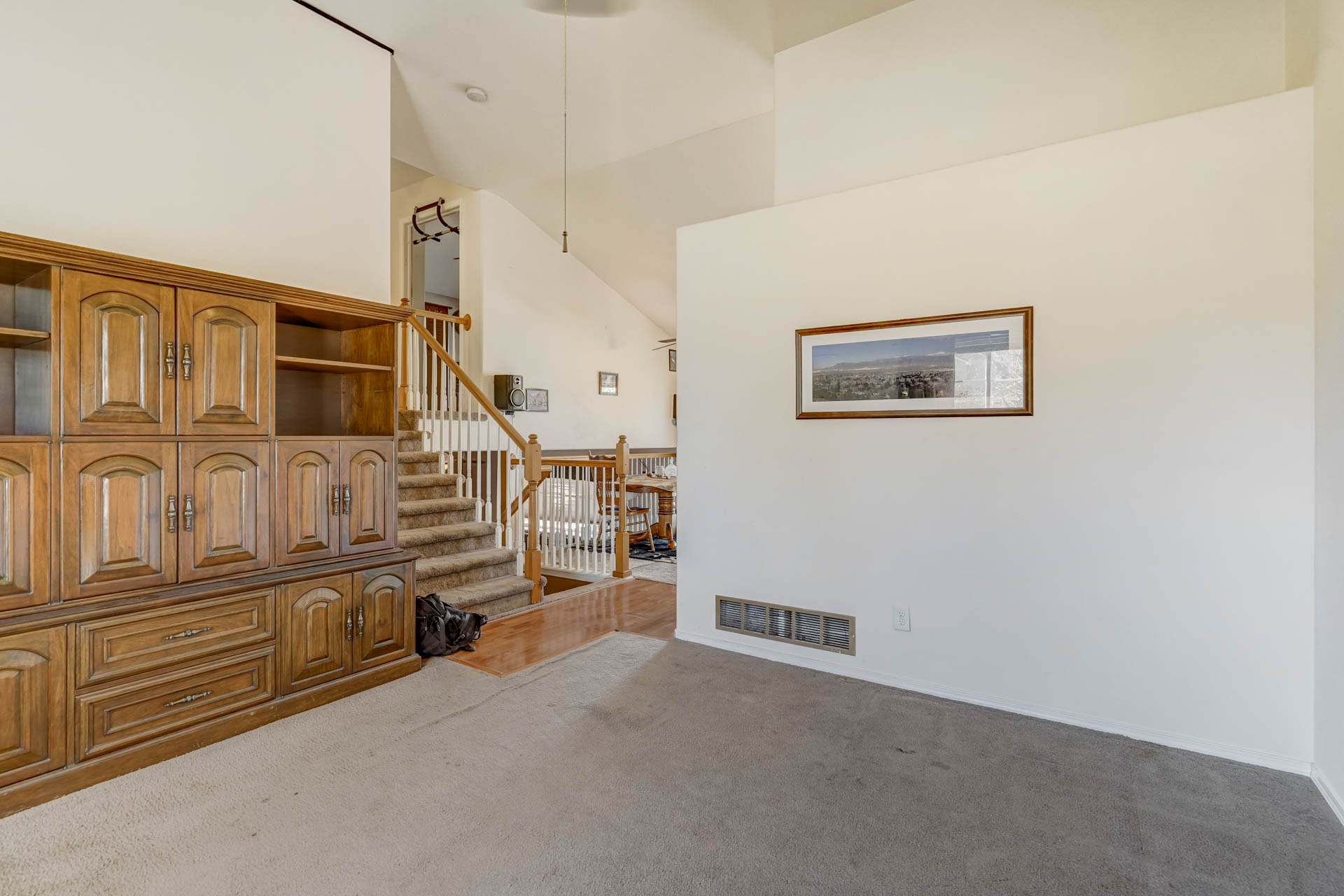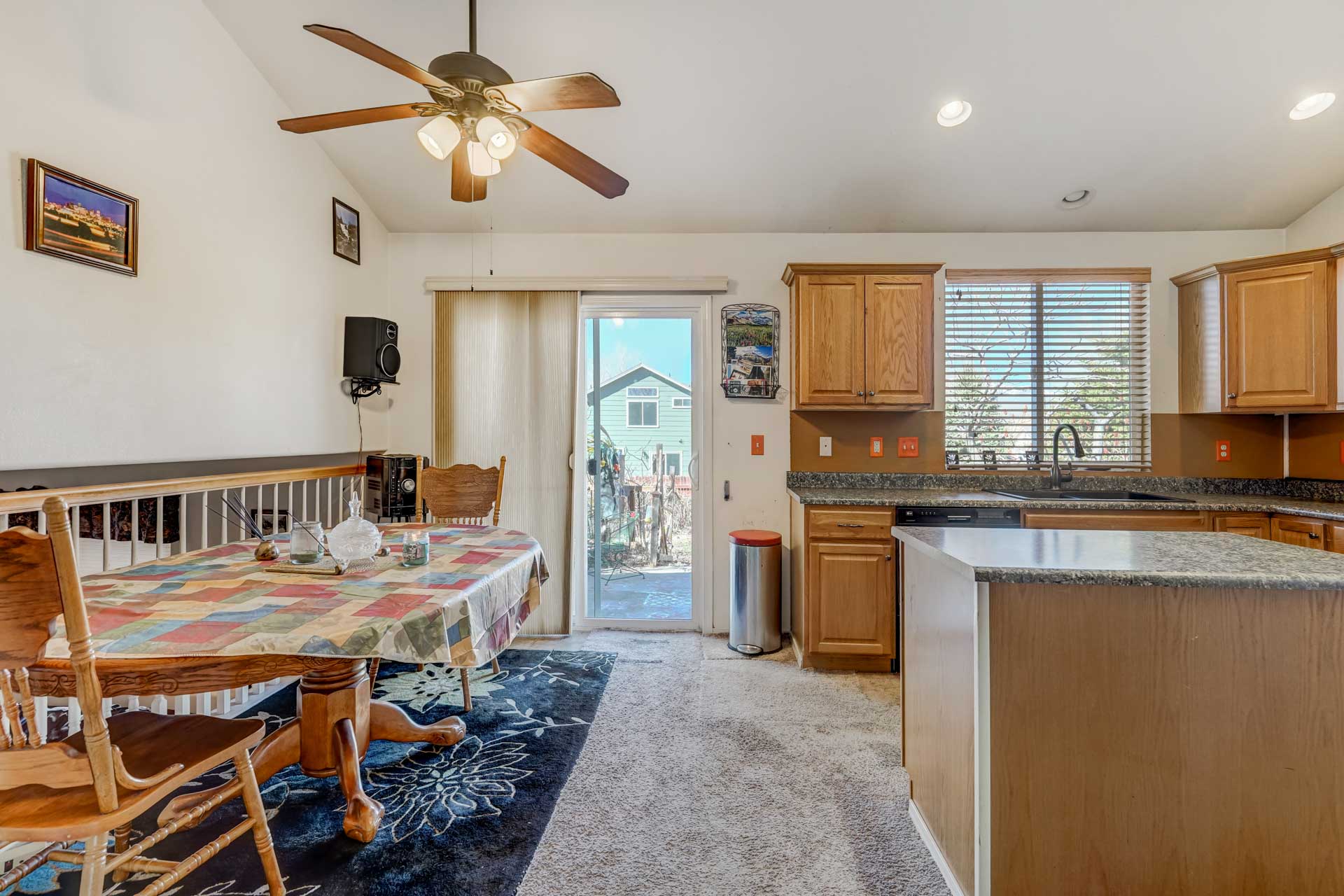 Great floorplan in Villages at Sand Creek! This home offers 3 beds, 2.5 baths and an unfinished basement. Walking in you'll love the vaulted ceilings! The kitchen/dining area opens up to the spacious fenced backyard. The living room has a cozy gas fireplace, plenty of natural light & convenient 1/2 bath with laundry room. The upper level has 3 bedrooms, a full hall bath, and the primary bedroom with another attached full bath. PLUS, enjoy energy savings with Solar Panels that are completely paid off. Schedule your showing today!