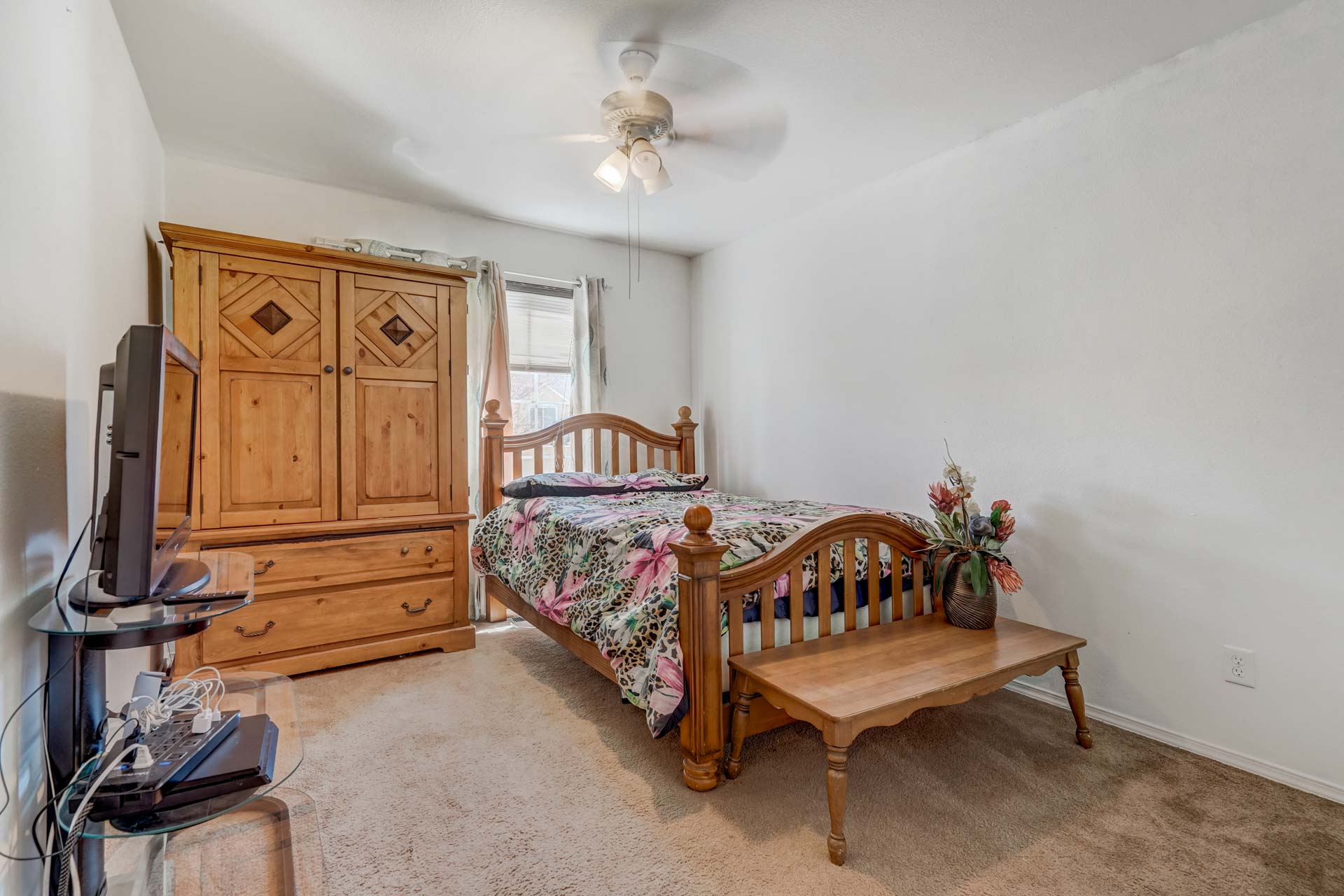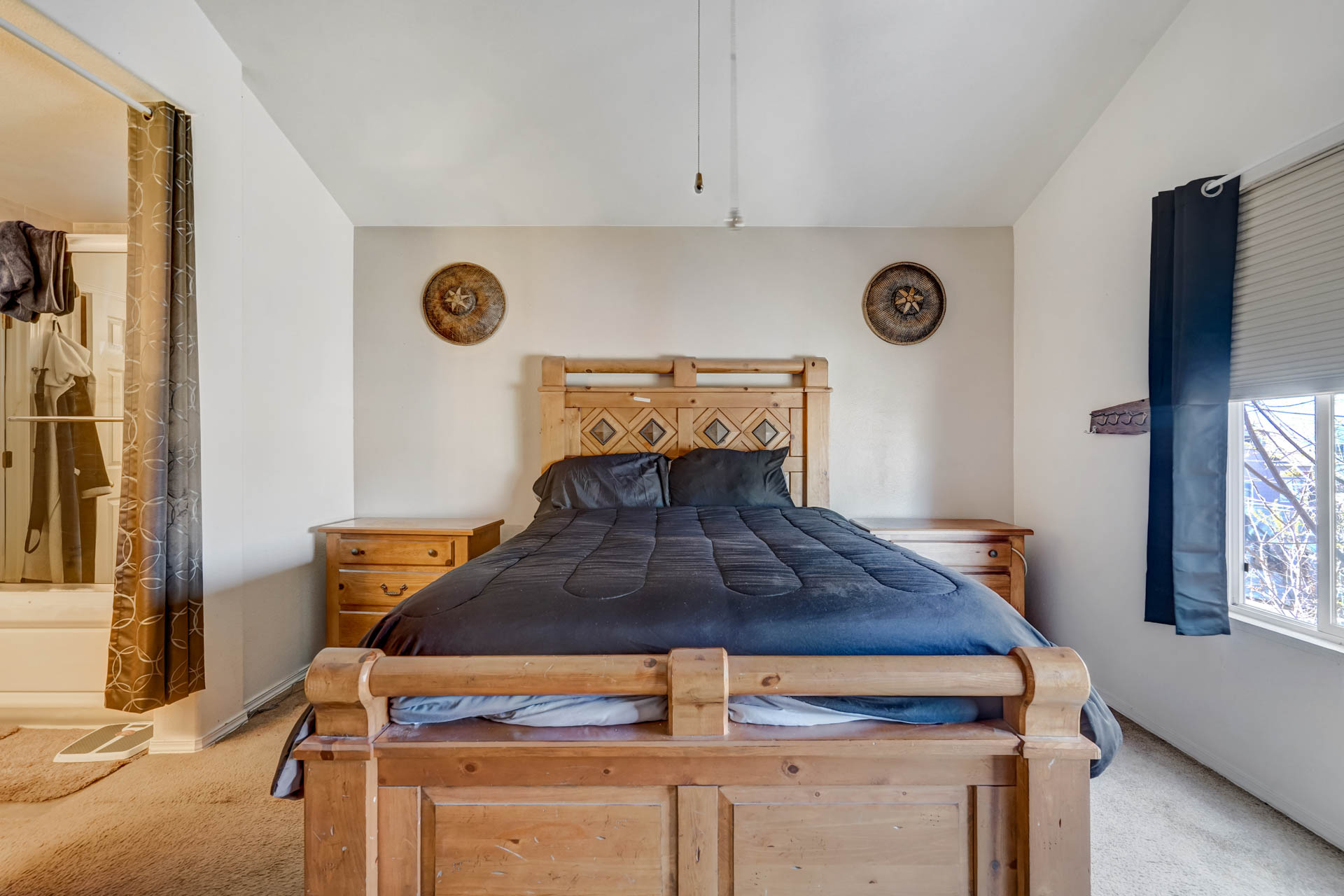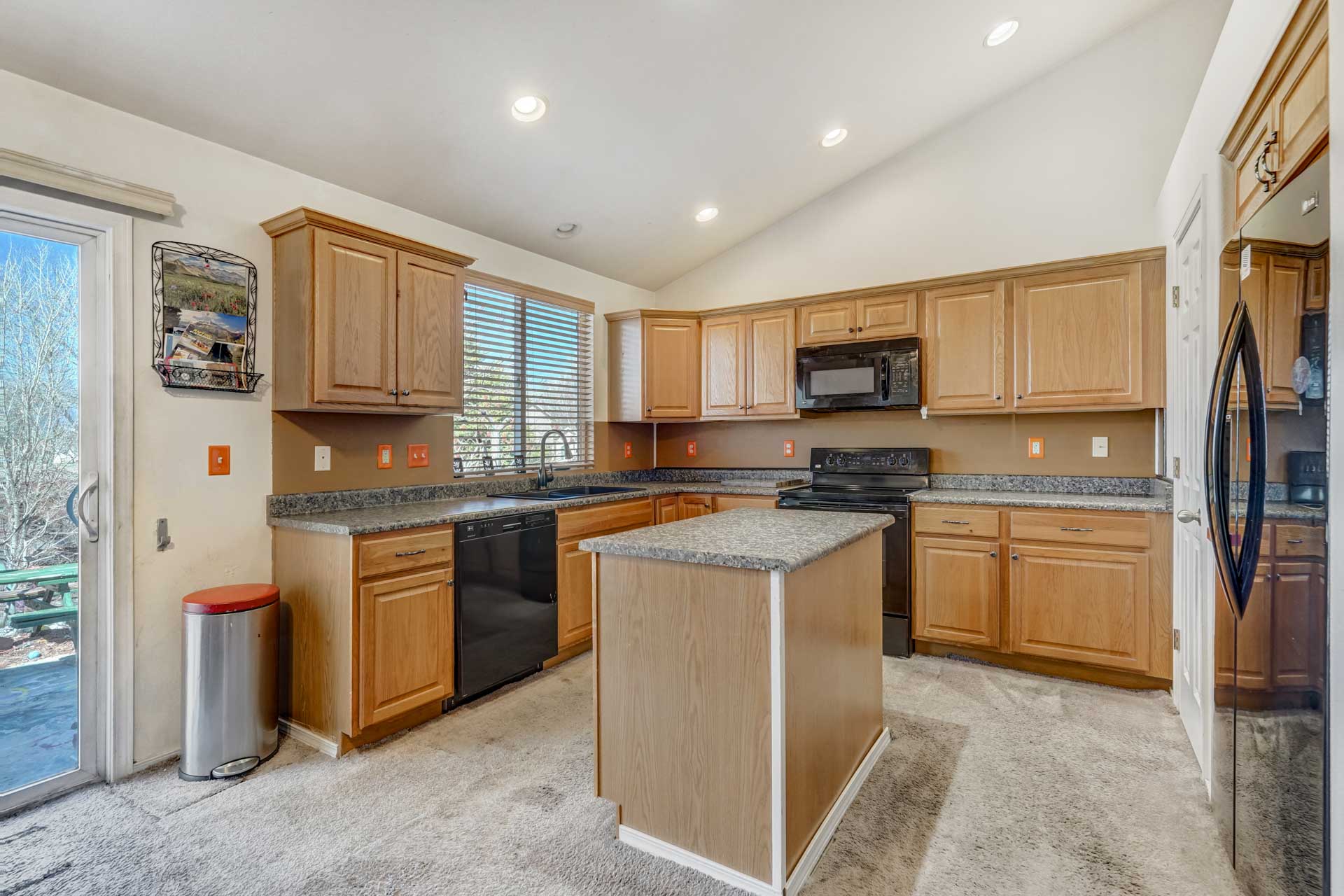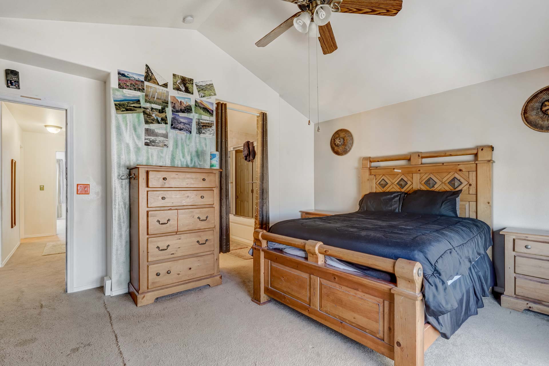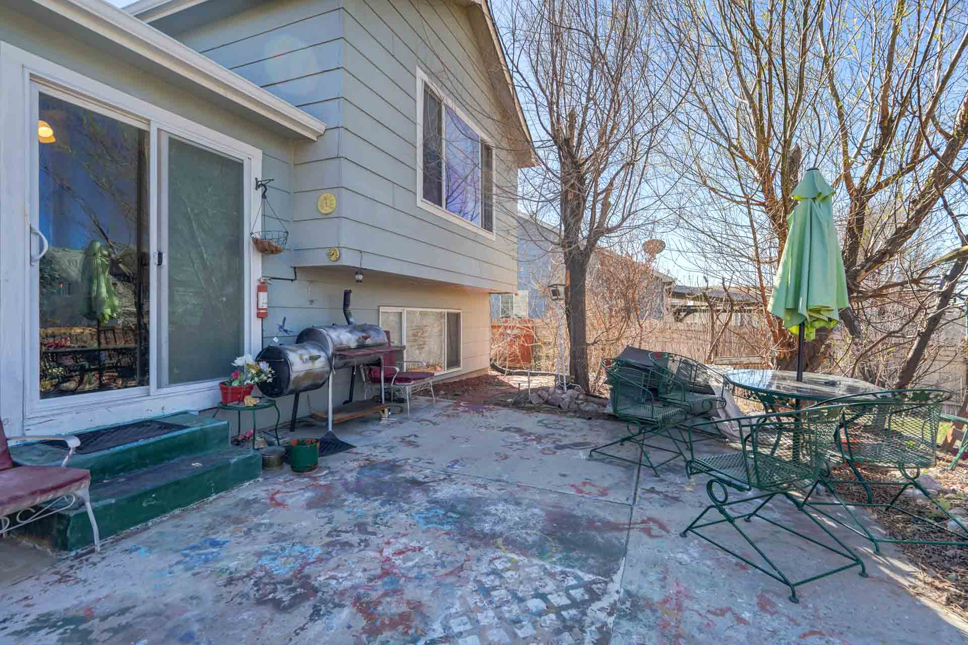 Great floorplan in Villages at Sand Creek! This home offers 3 beds, 2.5 baths and an unfinished basement. Walking in you'll love the vaulted ceilings! The kitchen/dining area opens up to the spacious fenced backyard. The living room has a cozy gas fireplace, plenty of natural light & convenient 1/2 bath with laundry room. The upper level has 3 bedrooms, a full hall bath, and the primary bedroom with another attached full bath. PLUS, enjoy energy savings with Solar Panels that are completely paid off. Schedule your showing today!