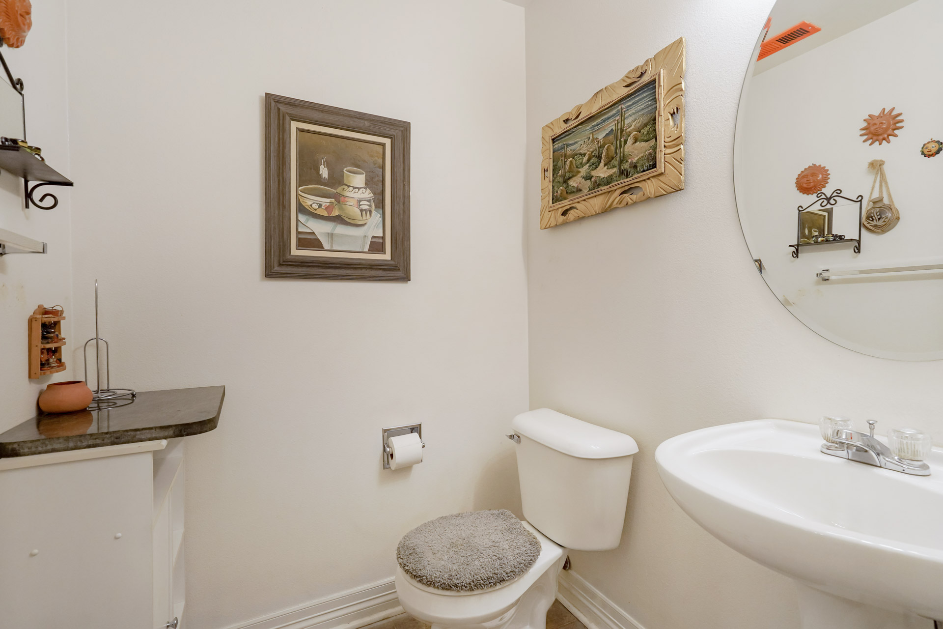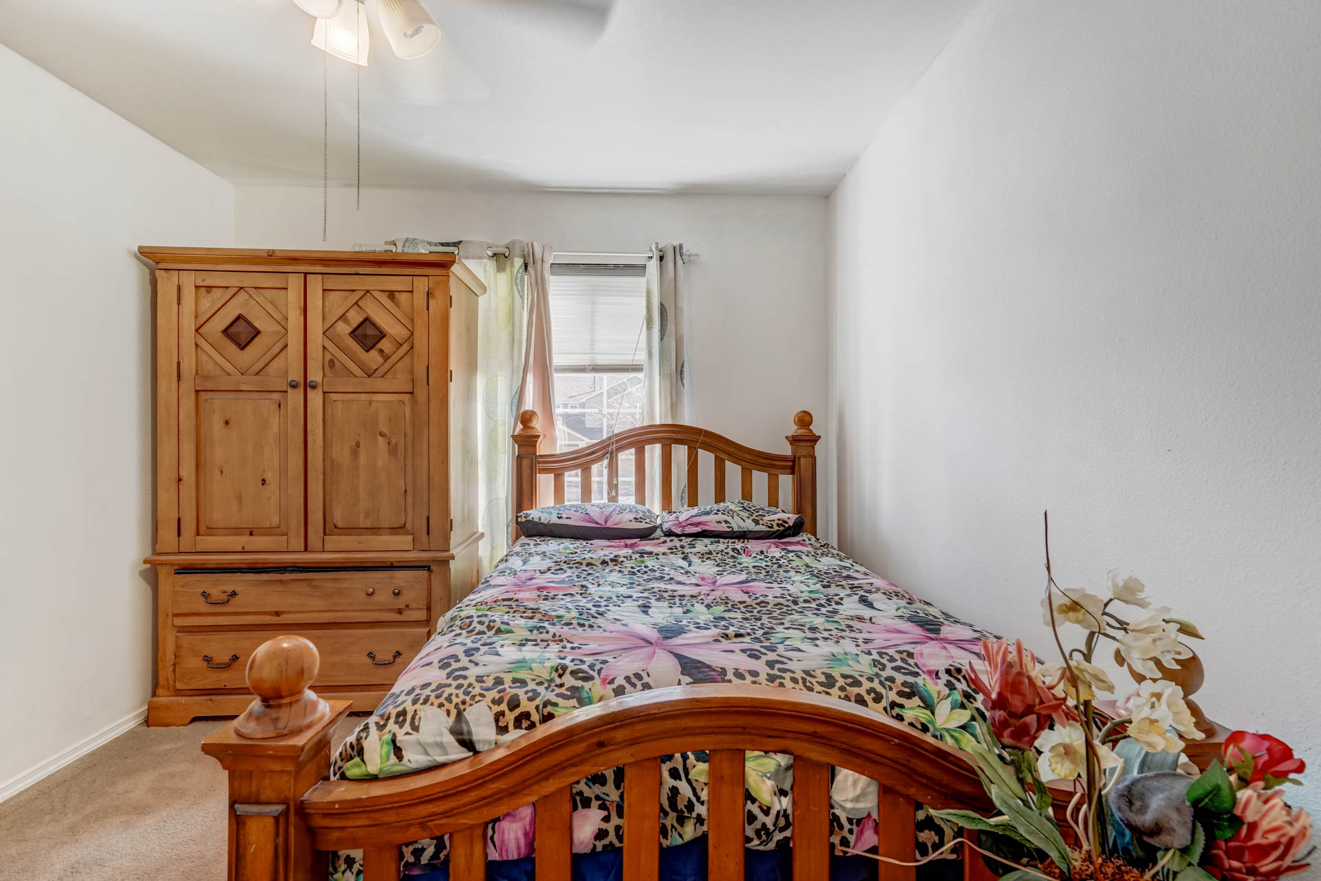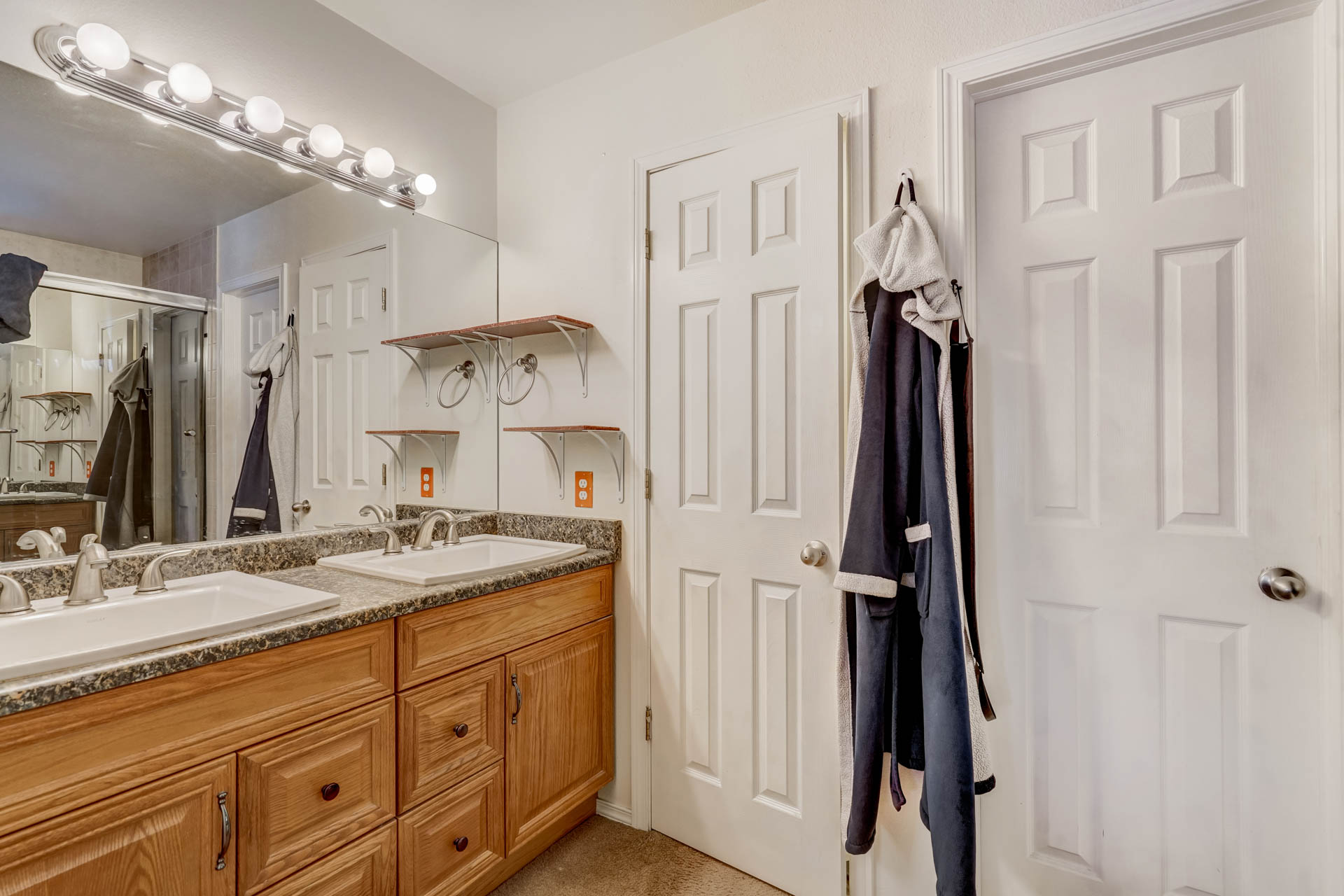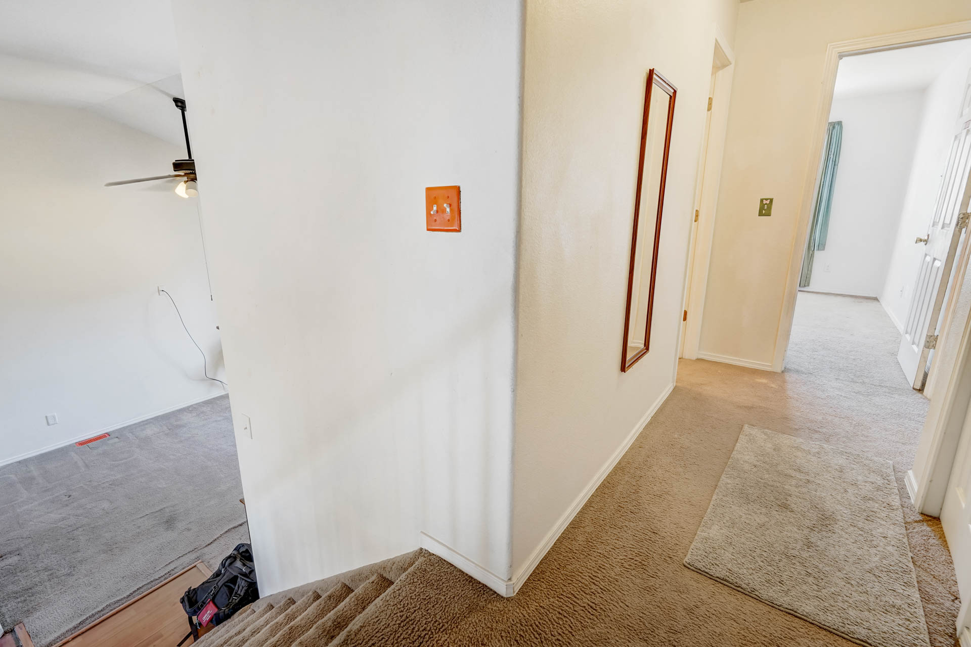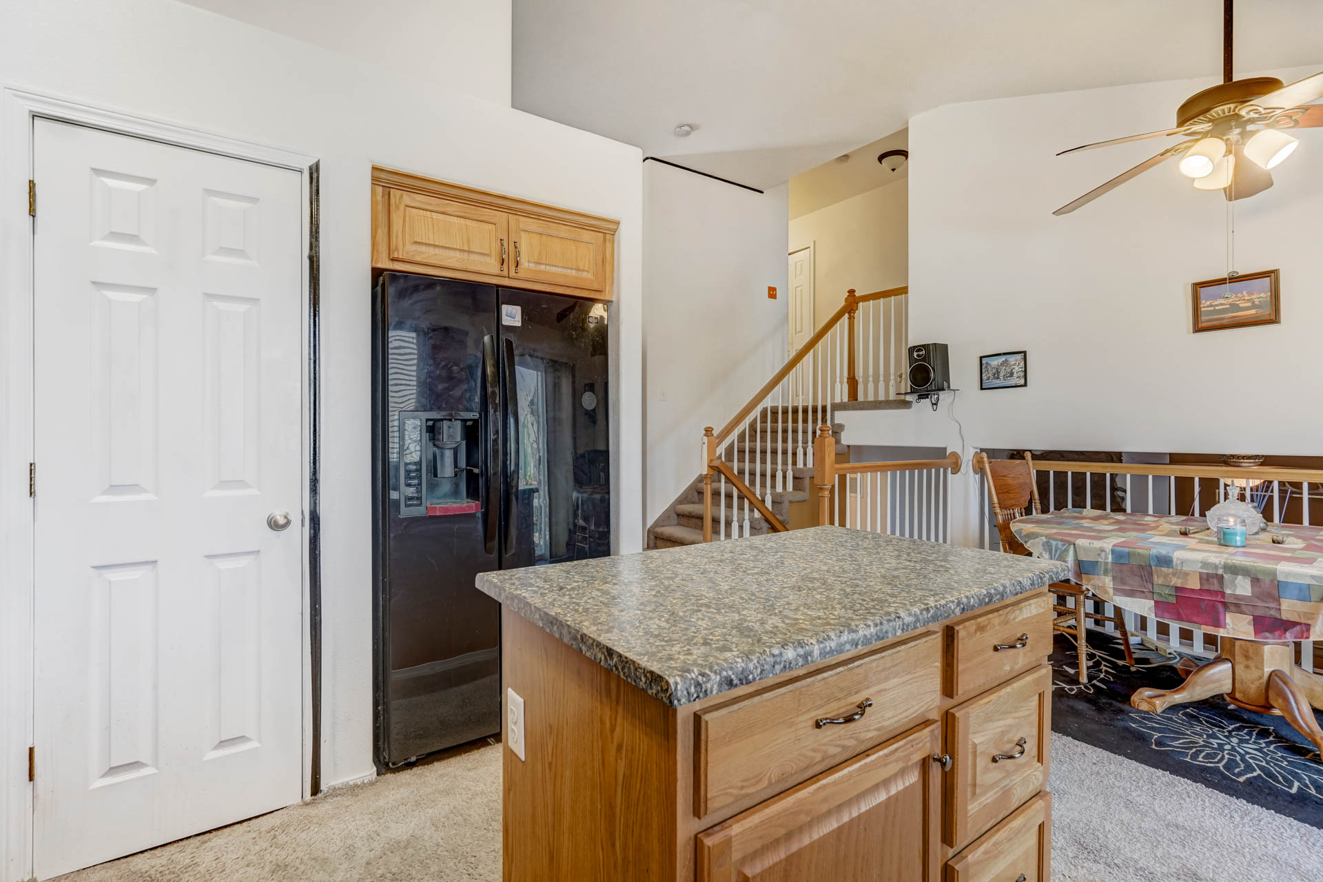 Great floorplan in Villages at Sand Creek! This home offers 3 beds, 2.5 baths and an unfinished basement. Walking in you'll love the vaulted ceilings! The kitchen/dining area opens up to the spacious fenced backyard. The living room has a cozy gas fireplace, plenty of natural light & convenient 1/2 bath with laundry room. The upper level has 3 bedrooms, a full hall bath, and the primary bedroom with another attached full bath. PLUS, enjoy energy savings with Solar Panels that are completely paid off. Schedule your showing today!