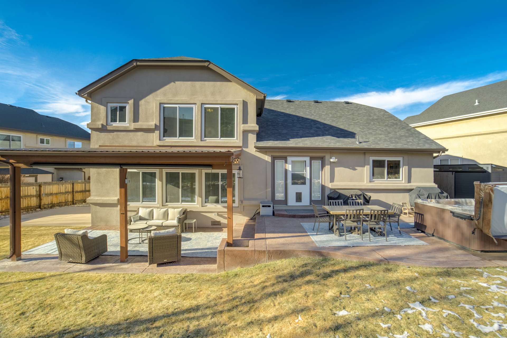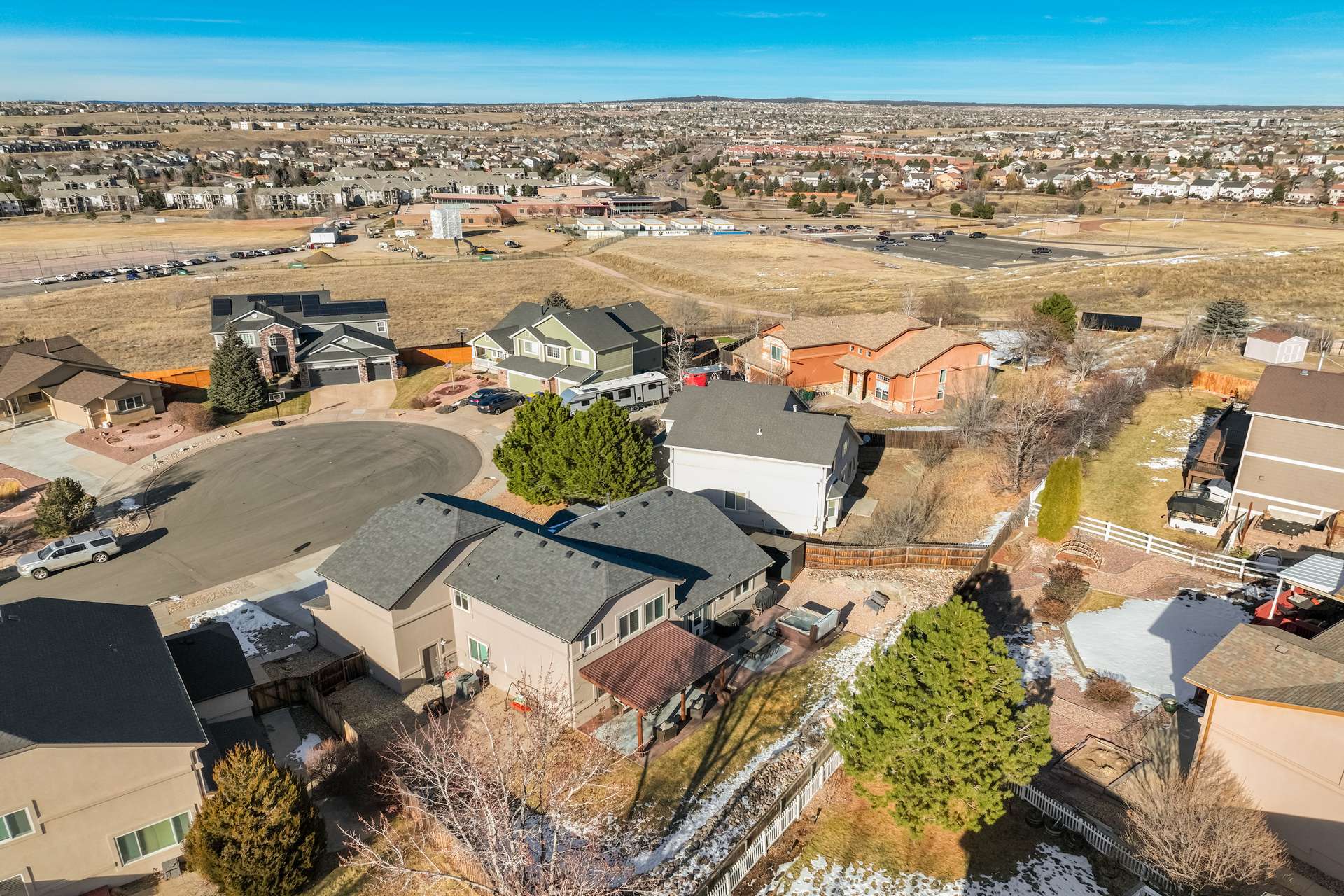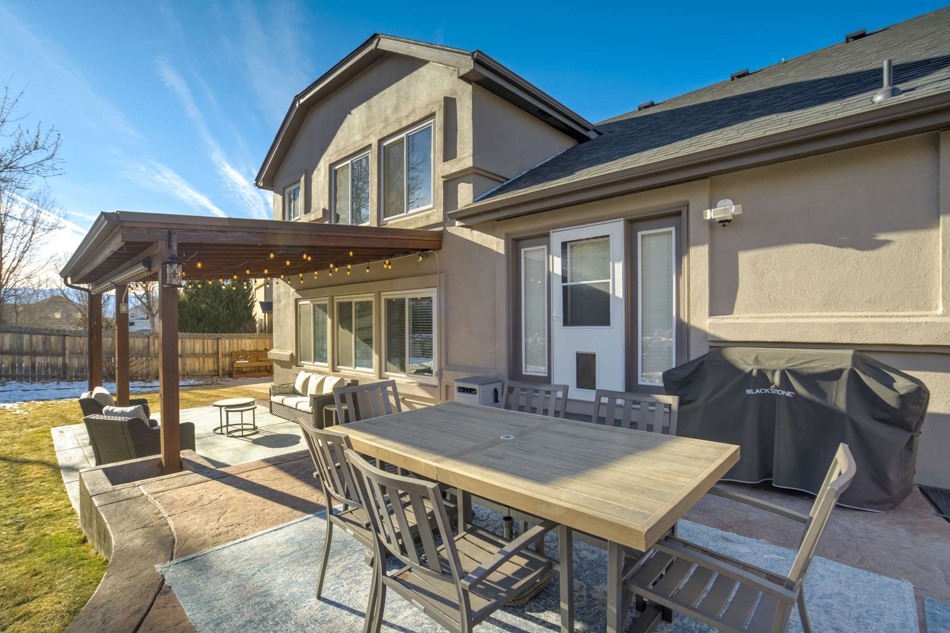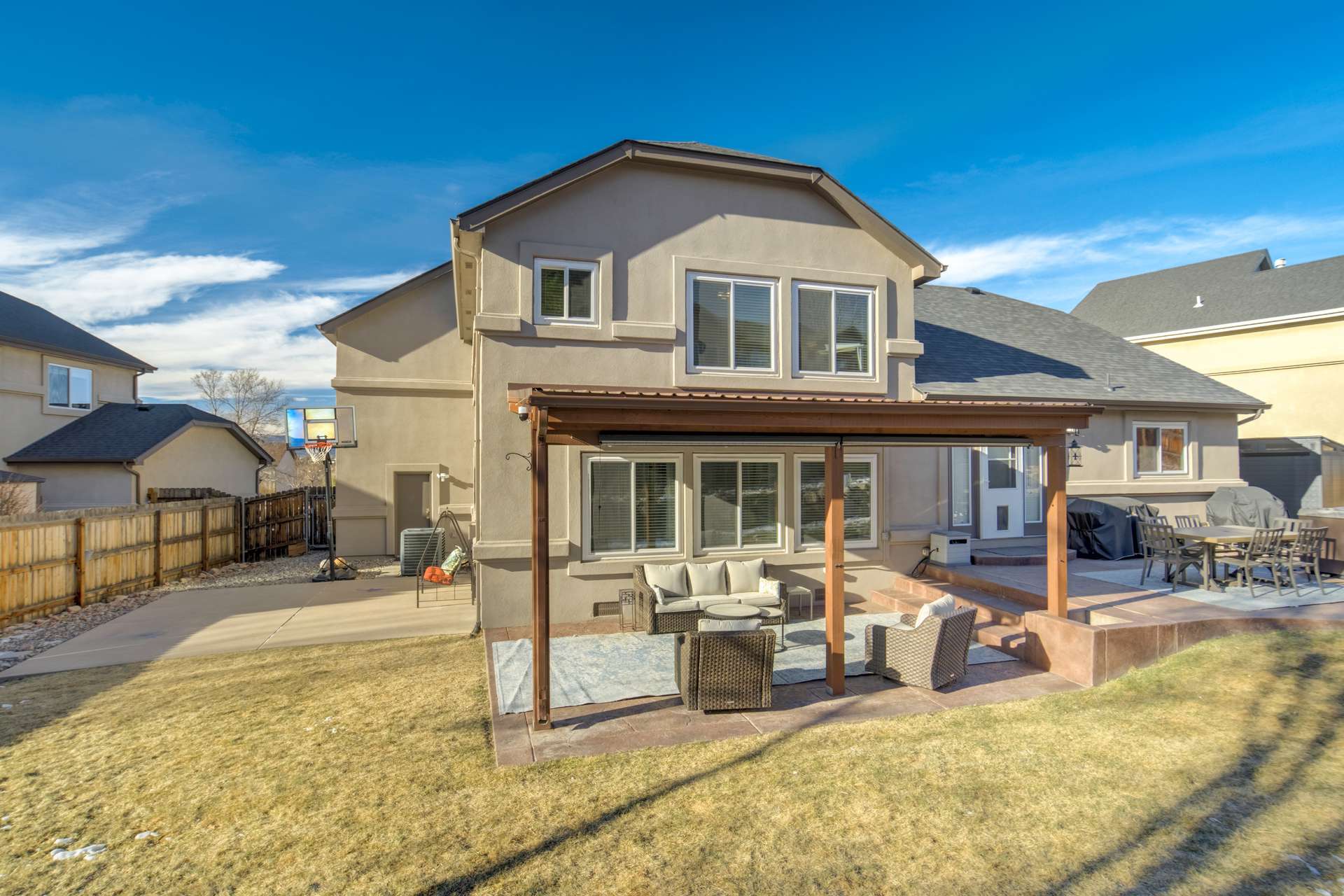 Tucked into a quiet cul de sac, this 5 bed, 4 bath home offers a lifestyle that balances comfort, space, and ease of living. From the moment you arrive, it is clear the home has been well cared for, with quality workmanship and pride of ownership throughout. The main level is designed for both everyday routines and special gatherings. A dedicated office with built in shelving and French doors creates a quiet work from home setup. Formal living and dining areas provide room to host, while the family room serves as the heart of the home with custom built ins, a sound system, and a gas fireplace. The kitchen features a large island, walk in pantry, double ovens, gas cooktop, upgraded cabinetry, and a dining area that opens directly to the backyard. Upstairs, the primary suite includes a spacious walk in closet and a well appointed bathroom. 3 additional bedrooms and a full bathroom round out the upper level. The basement adds another bedroom, bathroom, living space, and ample storage space, including a concreted crawlspace. Step outside and the home really comes to life. The backyard is private, fenced, and set up for both relaxation and activity. A large patio creates an ideal setting for morning coffee, evenings in the hot tub, or hosting friends for dinner. A dedicated concrete pad offers space for shooting hoops, playing yard games, and more. The oversized 735 sq ft 3 car garage provides plenty of room for vehicles and storage. Many recent updates and amenities, including a new roof in 2021, furnace in 2022, water heater in 2023, newer driveway, newer triple pane windows, fresh paint, A/C, humidifier, Attic fan offer added peace of mind and comfort. This is a home perfect for quiet mornings, relaxing evenings, and gathering with friends and family. It is move in ready, exceptionally well maintained, and ready for its next chapter. A 3D tour is available, allowing you to conveniently walk through the home.