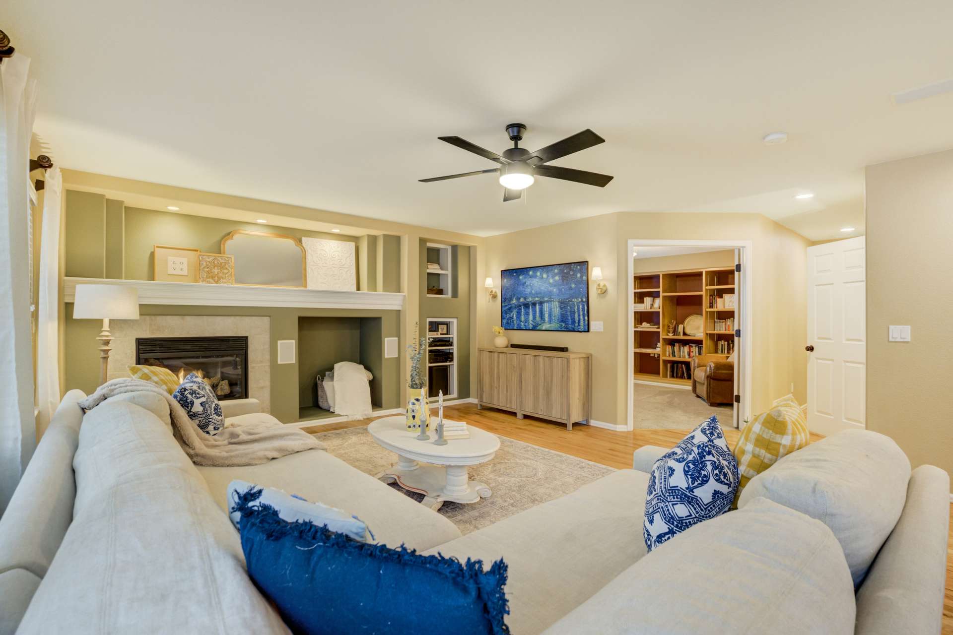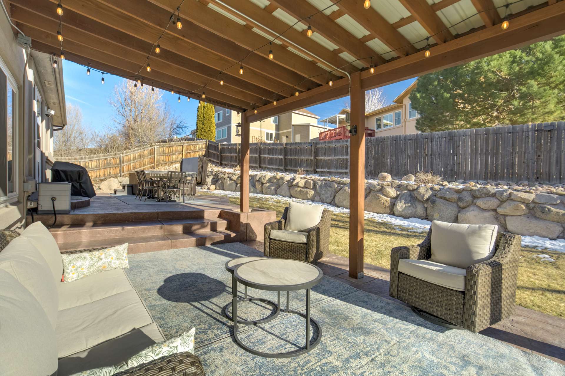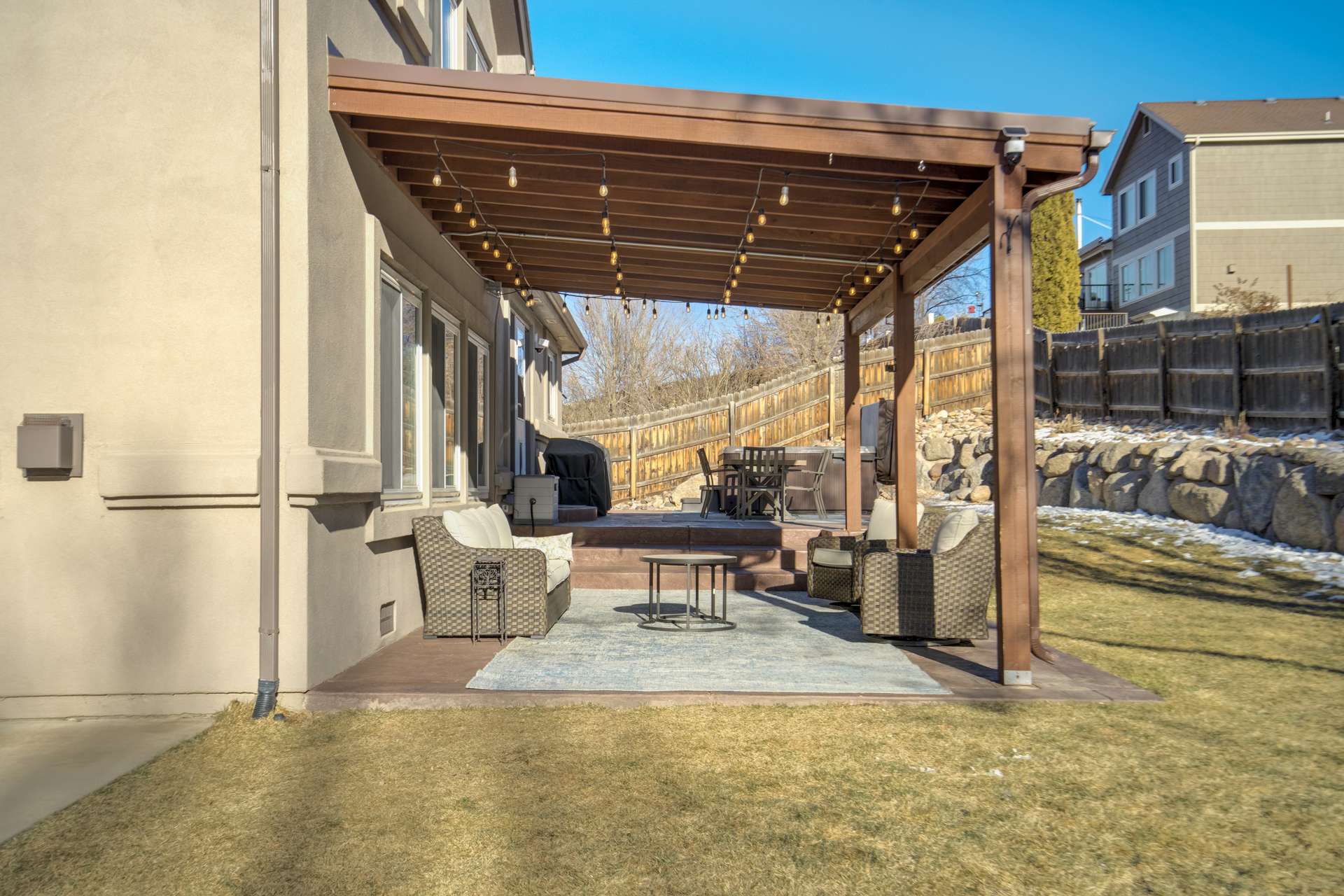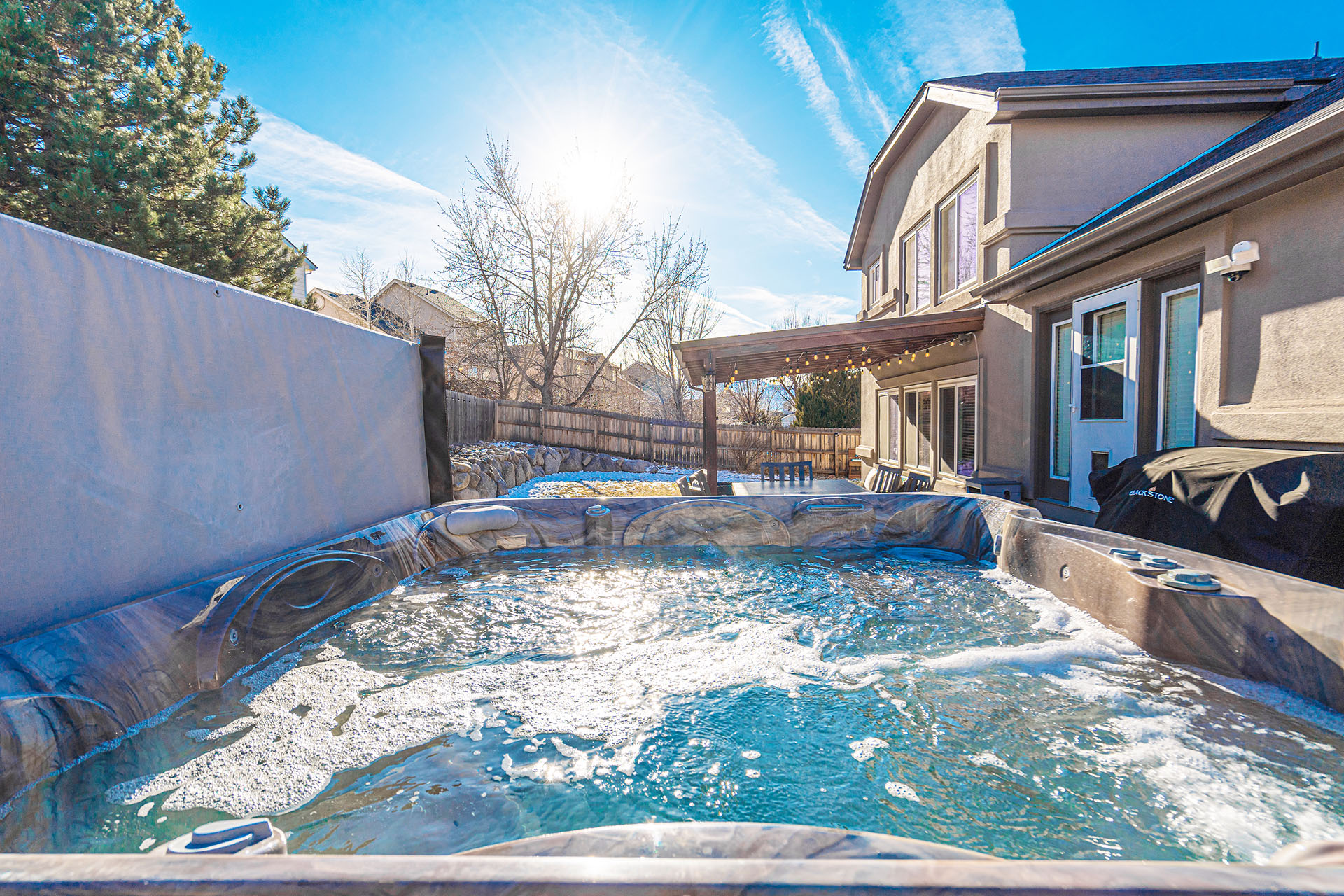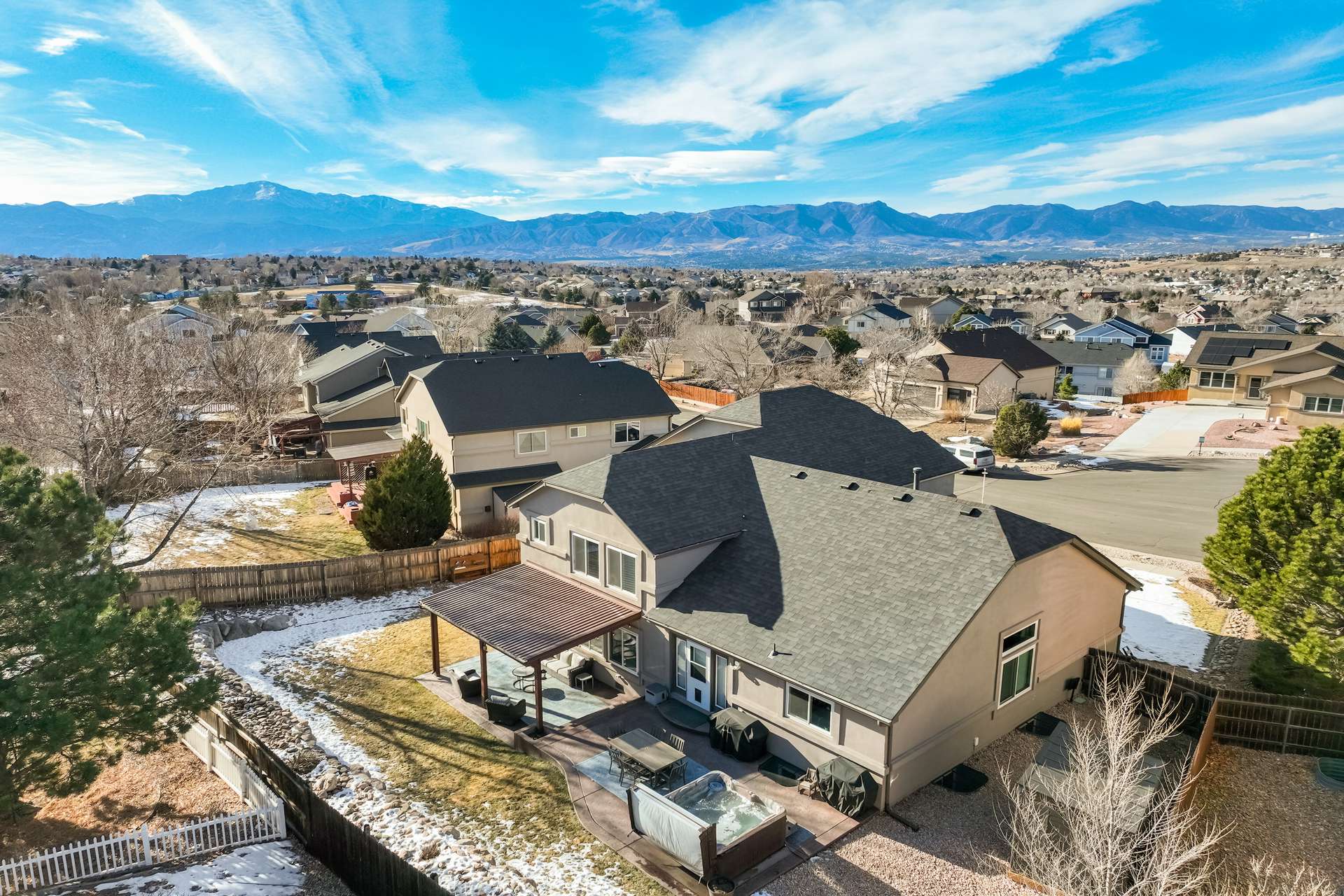 Tucked into a quiet cul de sac, this 5 bed, 4 bath home offers a lifestyle that balances comfort, space, and ease of living. From the moment you arrive, it is clear the home has been well cared for, with quality workmanship and pride of ownership throughout. The main level is designed for both everyday routines and special gatherings. A dedicated office with built in shelving and French doors creates a quiet work from home setup. Formal living and dining areas provide room to host, while the family room serves as the heart of the home with custom built ins, a sound system, and a gas fireplace. The kitchen features a large island, walk in pantry, double ovens, gas cooktop, upgraded cabinetry, and a dining area that opens directly to the backyard. Upstairs, the primary suite includes a spacious walk in closet and a well appointed bathroom. 3 additional bedrooms and a full bathroom round out the upper level. The basement adds another bedroom, bathroom, living space, and ample storage space, including a concreted crawlspace. Step outside and the home really comes to life. The backyard is private, fenced, and set up for both relaxation and activity. A large patio creates an ideal setting for morning coffee, evenings in the hot tub, or hosting friends for dinner. A dedicated concrete pad offers space for shooting hoops, playing yard games, and more. The oversized 735 sq ft 3 car garage provides plenty of room for vehicles and storage. Many recent updates and amenities, including a new roof in 2021, furnace in 2022, water heater in 2023, newer driveway, newer triple pane windows, fresh paint, A/C, humidifier, Attic fan offer added peace of mind and comfort. This is a home perfect for quiet mornings, relaxing evenings, and gathering with friends and family. It is move in ready, exceptionally well maintained, and ready for its next chapter. A 3D tour is available, allowing you to conveniently walk through the home.