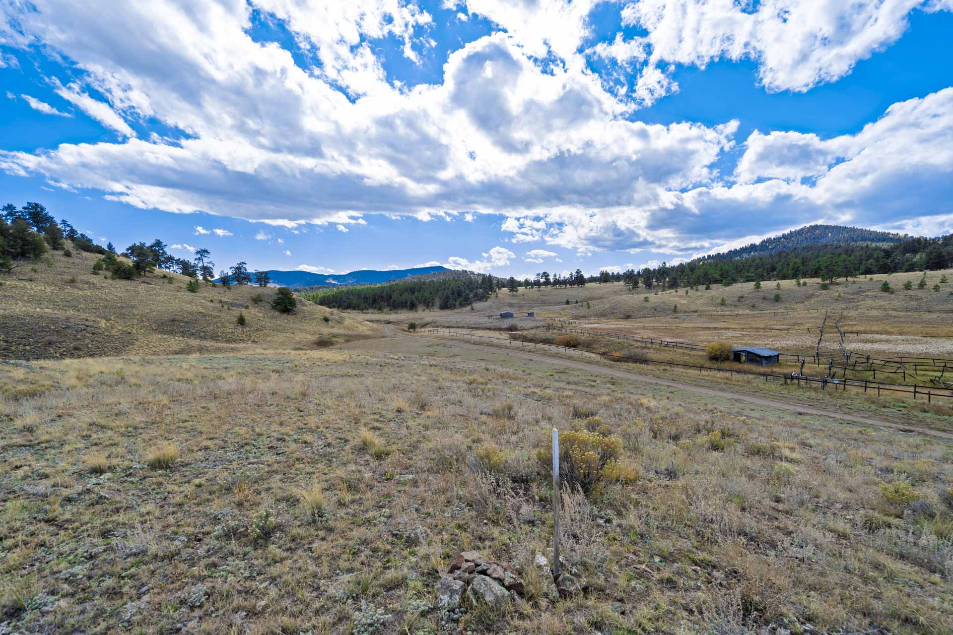 Trade city chaos for clear skies and breathing room on 35.97 acres in Aspen Creek Ranch, just 4.5 miles from Guffey up paved CR 102. Year round access begins on county maintained gravel roads off the pavement and continues across usable terrain that rises from a sheltered valley to ridge top benches with big sky views! A robust domestic/stock well is already drilled and ready, giving you a true head start on planning and long term value while you map out next steps! The land blends sunny meadows, scattered ponderosa for windbreak and privacy, and a seasonal draw that adds character and natural drainage, creating multiple logical build zones that feel inspiring rather than cramped. Power can be pulled from the north side of the parcel, and the absence of HOAs or covenants keeps decisions in your hands! Use it now as a straightforward weekend basecamp or hold as an investment while you design future homes (up to two), shop, or barn, subject to county approvals. For hunters and wildlife watchers, this parcel lies in Colorado GMU 58, a unit known for elk and mule deer movement through this country, with public lands in comfortable reach for expanded opportunity. Everyday needs are close in Guffey, while broader supplies and services are found in Cañon City and Woodland Park, with Florissant and Cripple Creek offering additional amenities and dining. Outdoor days start on your own ground and radiate outward to lakes, trail systems, and wide open national forest that support hiking, fishing, boating, horseback riding, and winter recreation! This acreage photographs beautifully and lives even better thanks to its mix of open ground and timber, water on site, year round county access, and nearby power at the north boundary. If you are seeking a practical foothold in the Rockies with flexible use, quiet surroundings, and lasting upside you can hold confidently and enjoy immediately, this property stands out as an opportunity to secure land in a scenic corner of Colorado!