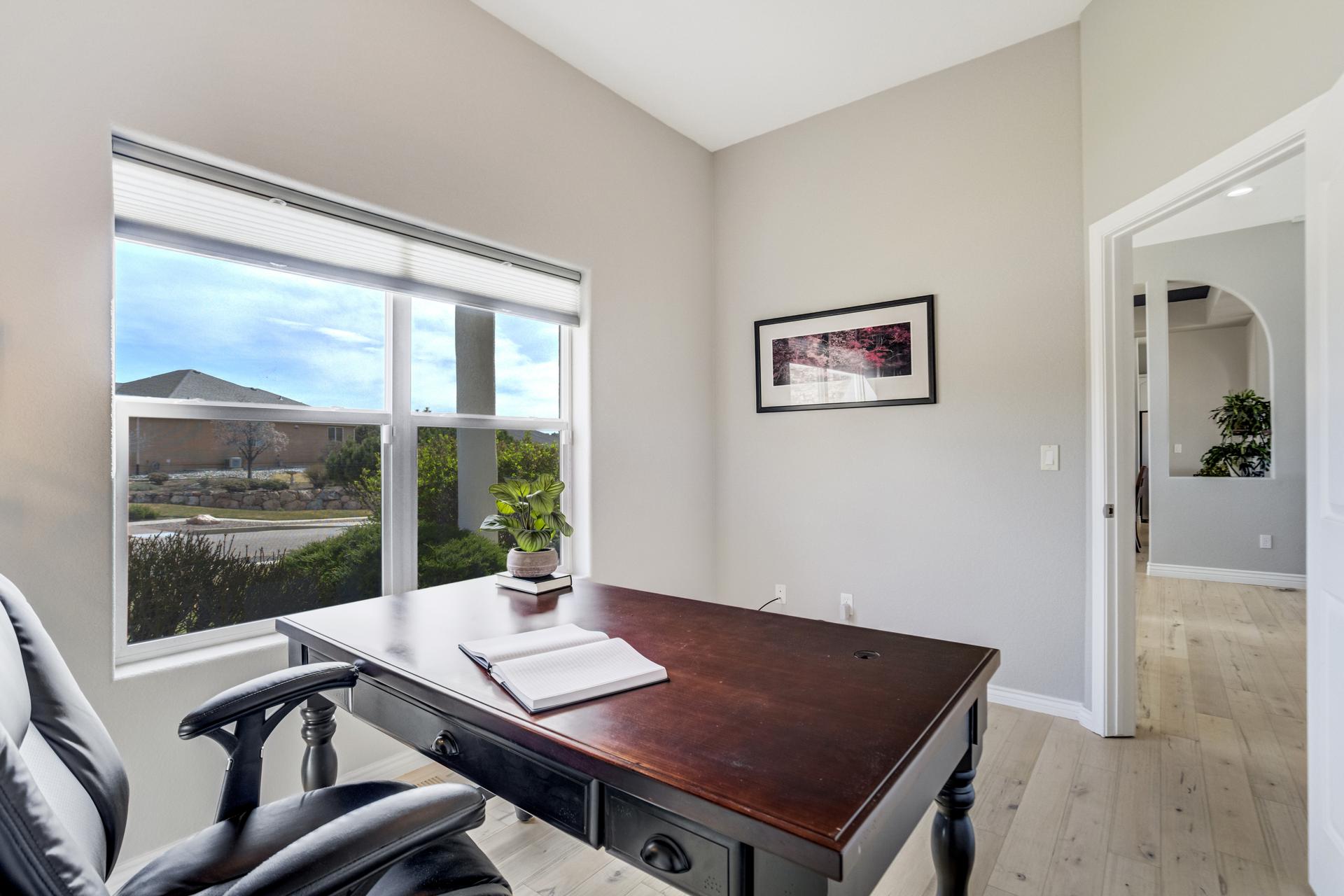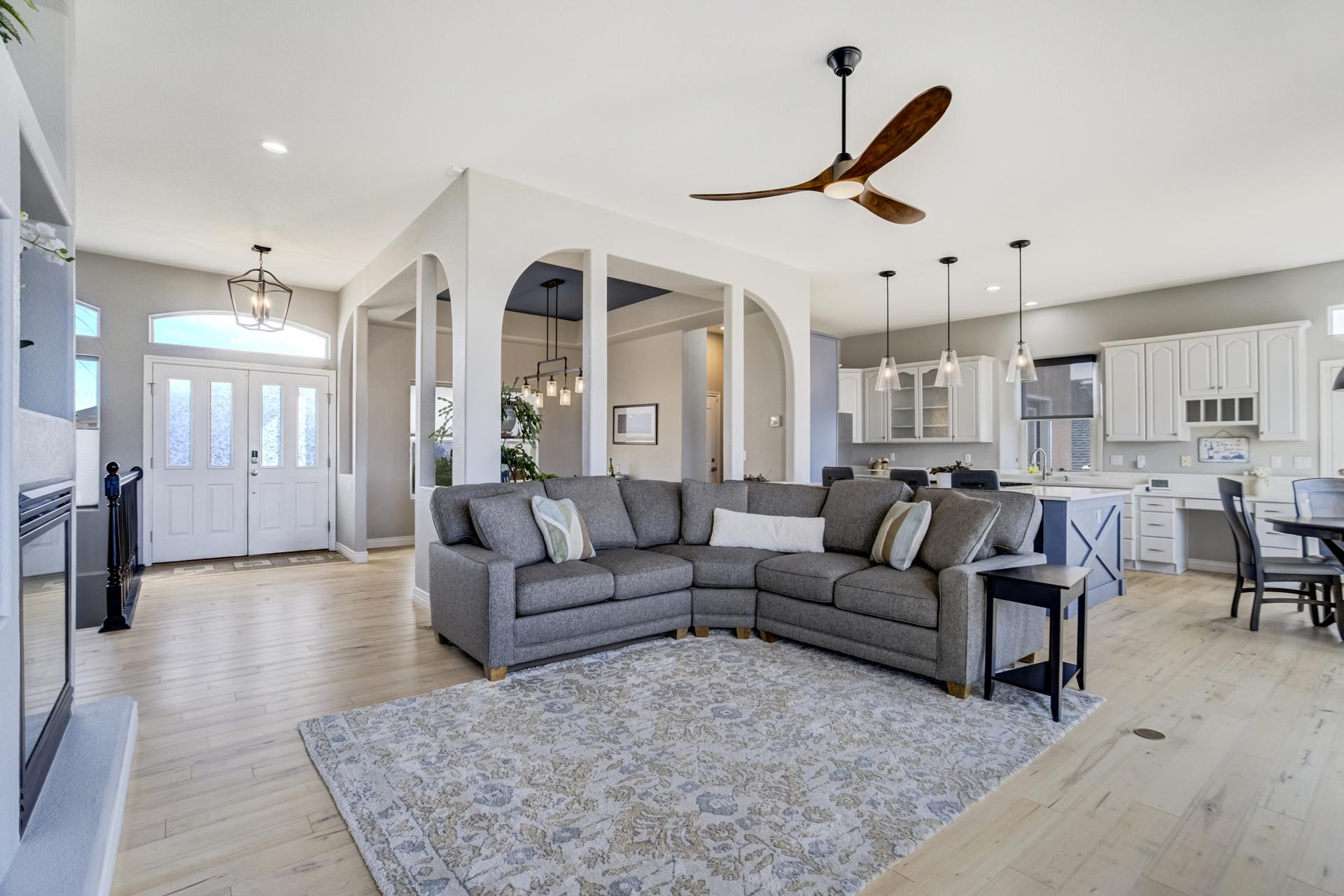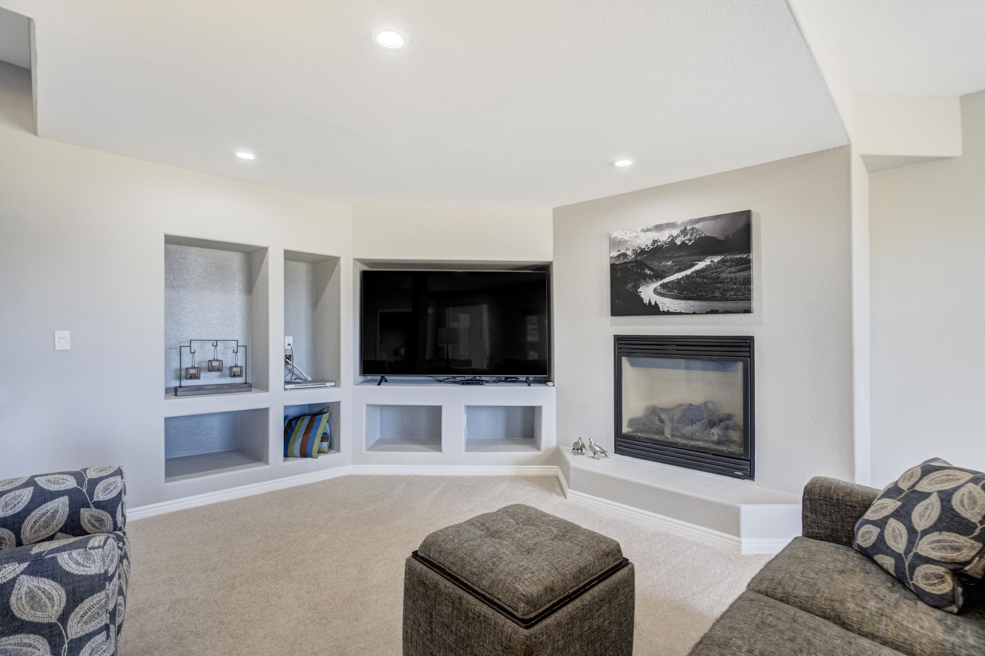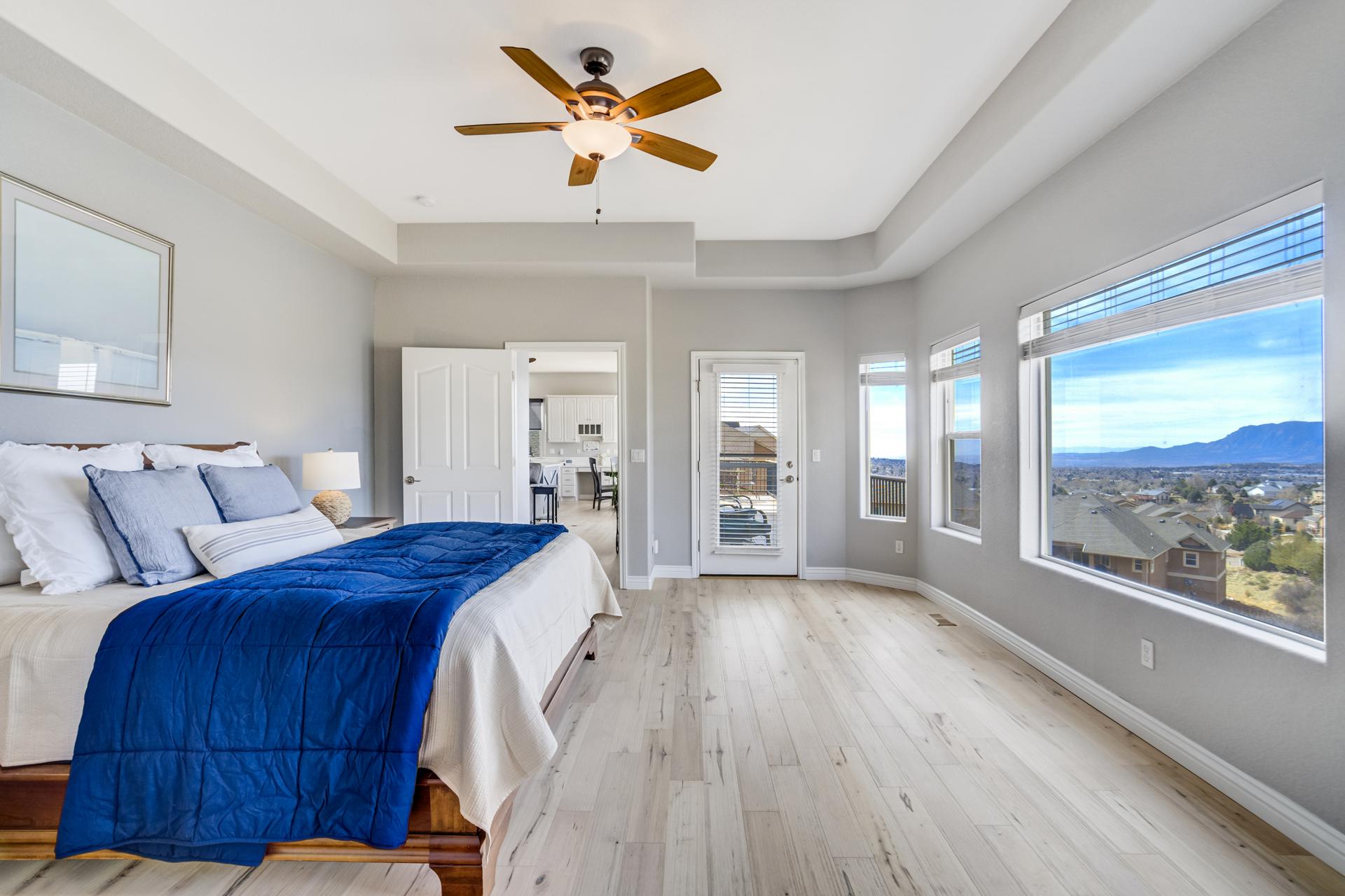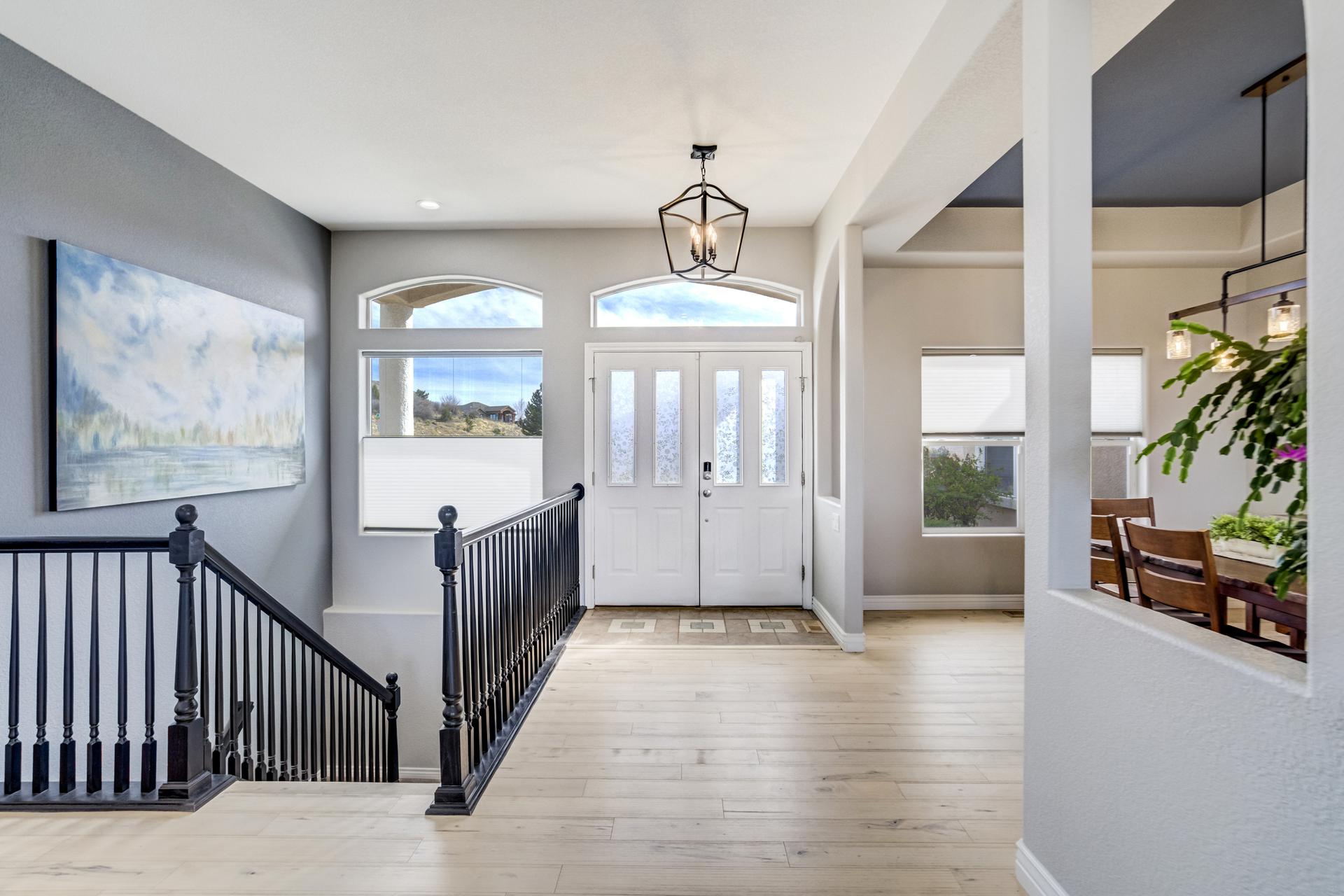Experience the peak of Colorado living in this stunning residence, where architectural elegance meets unobstructed views of Pikes Peak and the Front Range. The double-door entry opens to a light-filled main level featuring expansive windows and a living room centered around a gas-log fireplace with a custom built-in entertainment center. The gourmet kitchen is a chef’s dream, boasting quartz countertops, a 6-burner gas range, a large pantry, and a sun-drenched breakfast nook with bay windows. Retreat to the primary suite, a private sanctuary with tray ceilings, deck access, and a spa-like 5-piece bath featuring a soaking tub, stone-walled shower, and a walk-through closet with custom shelving and direct laundry access. A versatile second bedroom or office and a 3/4 bath complete the main level. The fully finished walkout basement is designed for entertainment, offering a massive family room with a second fireplace, recessed lighting, and ample space for game tables. Two additional basement bedrooms and a full bath provide plenty of space for guests. Outside, the long, wrap-around Trex deck and lower-level patio capitalize on the breathtaking mountain views and overlook peaceful open space. This home is complete with a 3-car tandem garage and a dedicated storage and utility area. Every detail of this property has been curated to highlight the picturesque Western landscape, offering a sophisticated lifestyle in a premier setting.