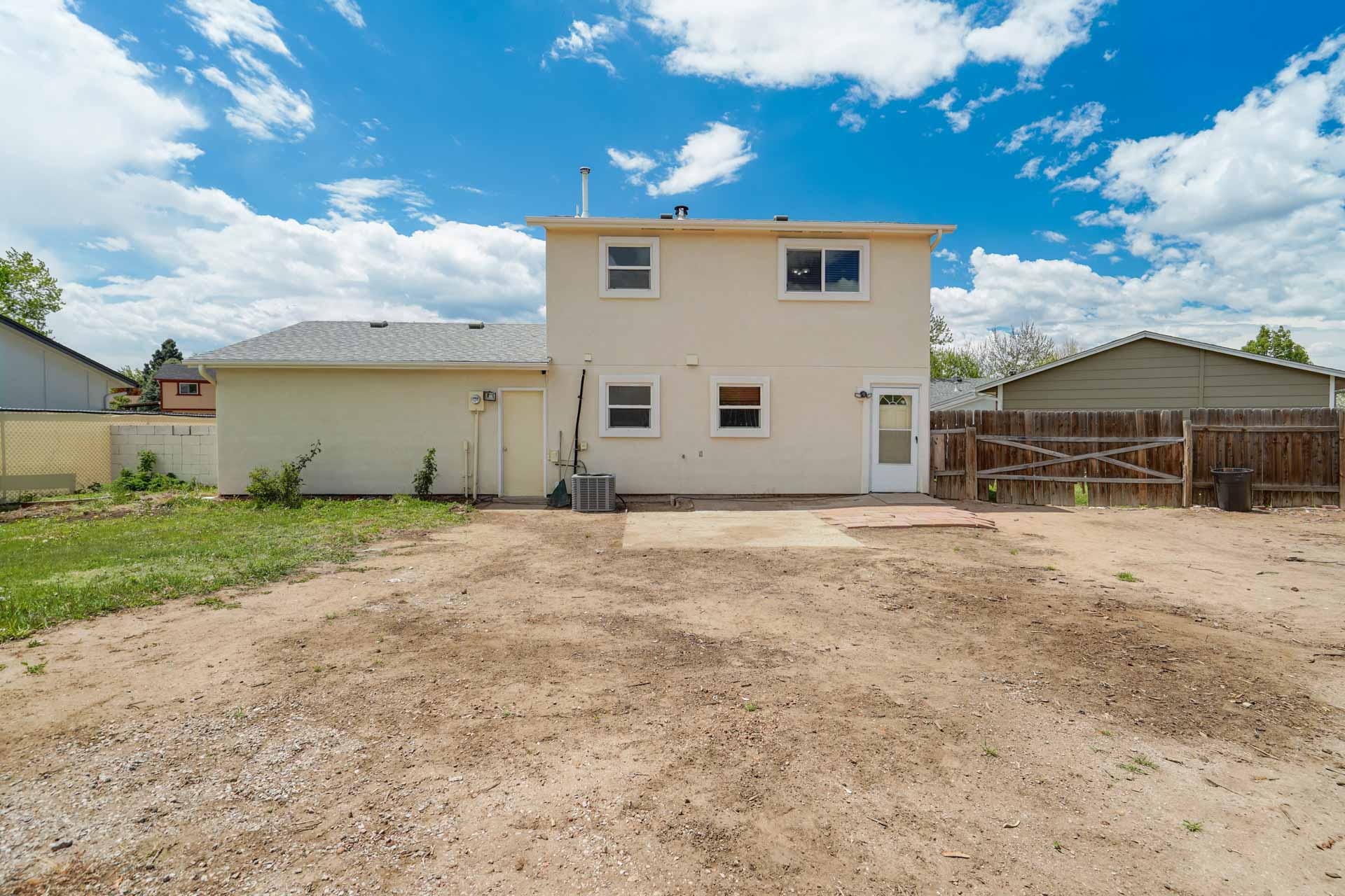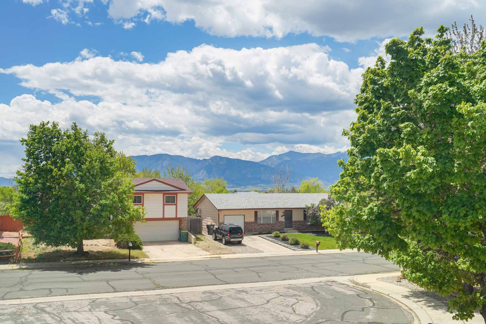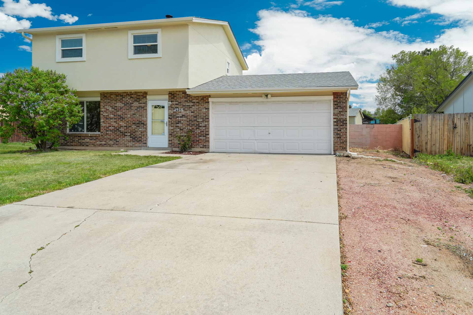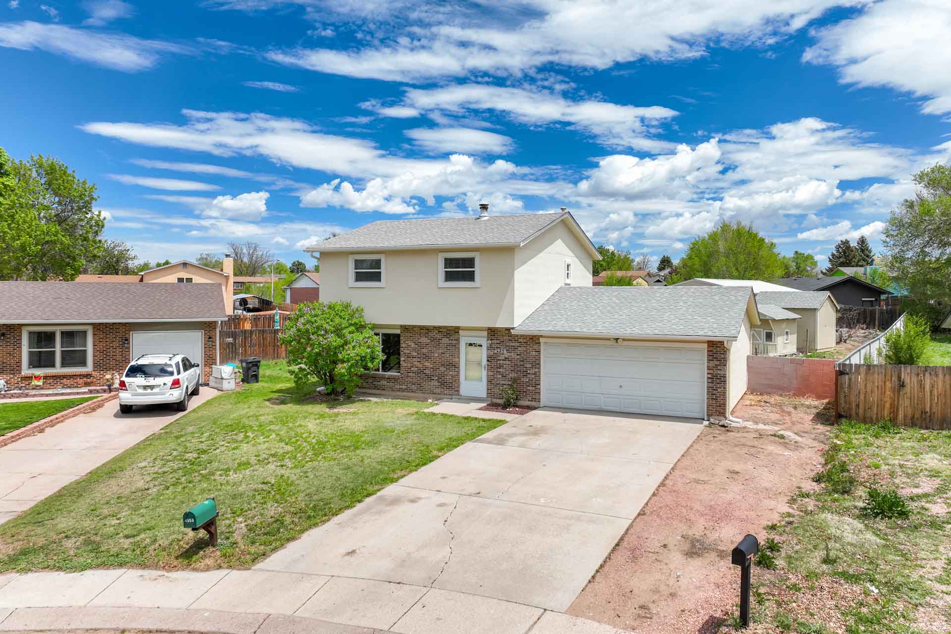 Huge backyard on this 10,000 sq.ft. lot with a drive-through side gate. Great for a car enthusiast, featuring a 2-Car Attached Garage (23x19.5 ft) with garage door opener and access door to backyard. Plus a detached 3+ Car Garage/Shop Building (29.5x23.5 ft.) built in 2018, insulated and includes 220 electric service. Upgraded low-maintenance stucco siding (NEW 2021) and upgraded electrical panel (2018). Fresh interior paint (2024). New carpet on stairs and new interior doors/doorknobs on bedrooms/baths (2024). Wood laminate flooring throughout most of the home. Eat-in Kitchen includes a stainless steel refrigerator, gas range/oven, dishwasher, ceiling fan with lights, wood laminate flooring and an eating nook area, plus door to backyard. The nicely-sized sunken Living Room features a wood-burning stove, wood laminate flooring, faux wood blinds and a large window looking out at the beautiful lilac tree in the front yard. The Powder Room/Laundry Room is light and bright with an updated vanity with composite countertop, a built-in medicine cabinet, and the washer and dryer are included. Upstairs are three bedrooms with laminate flooring and ceiling fans, and a 3/4 Bath featuring a double vanity with updated countertop, walk-in shower with upgraded shower insert and specialized sprayer system, tile flooring and linen shelves behind door. Mountain views from bedrooms 2 and 3! Nice decorative touches include iron railings at the stairs and a tile deco wall in the main level bath. Central Air Conditioning. Great potential for outdoor entertaining with 16x10 concrete and pavestone patio, plus separate 16x16 concrete pad, ideal for future above-ground swimming pool or basketball hoop, etc. Plus exterior gas hookup for grill. Additional features include a Ring doorbell, storage shed, playhouse, and tons of space for gardening and more! Located in a cul-de-sac on a low-traffic street, just one block from Penstemon Park with playground. Great property!