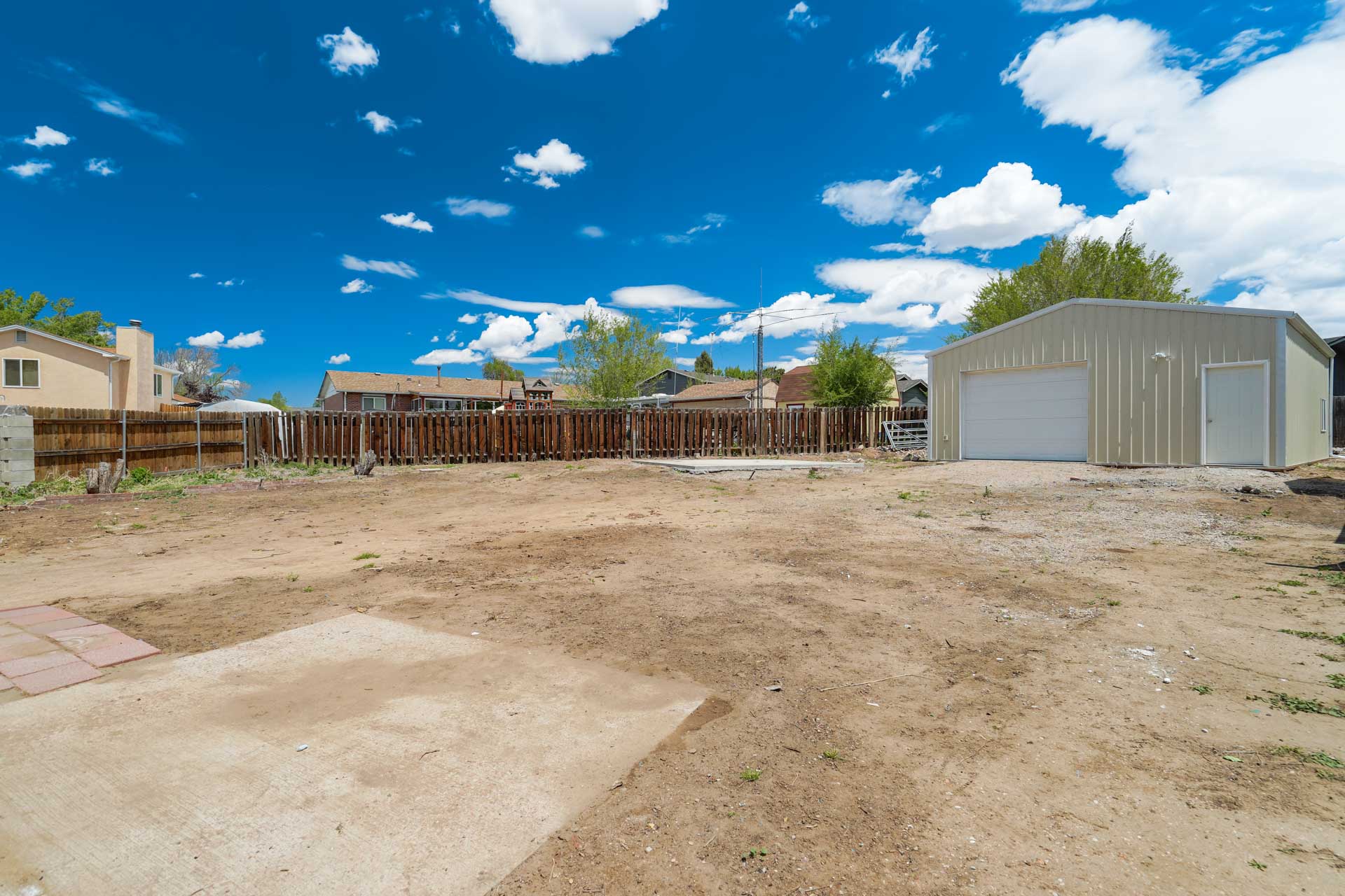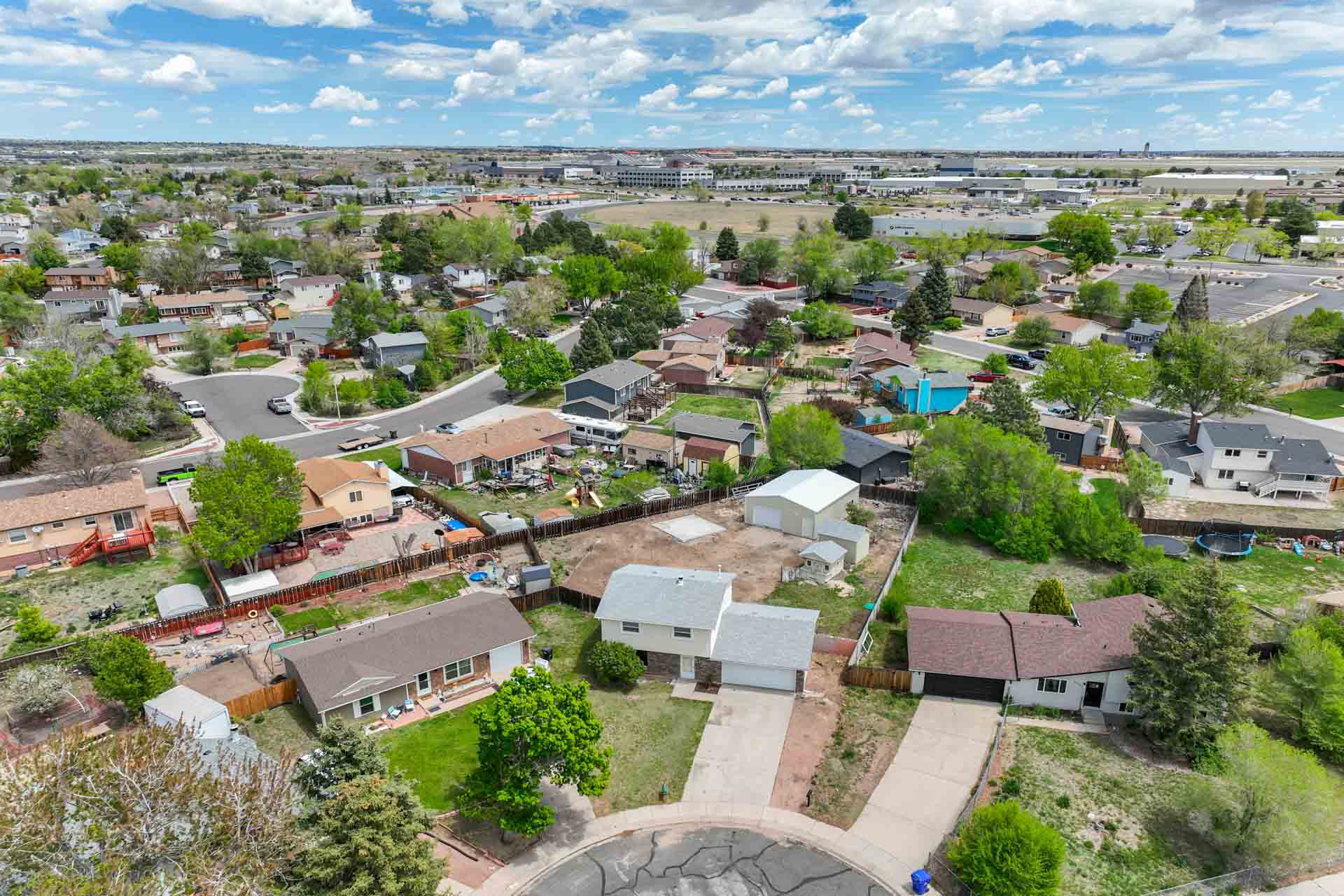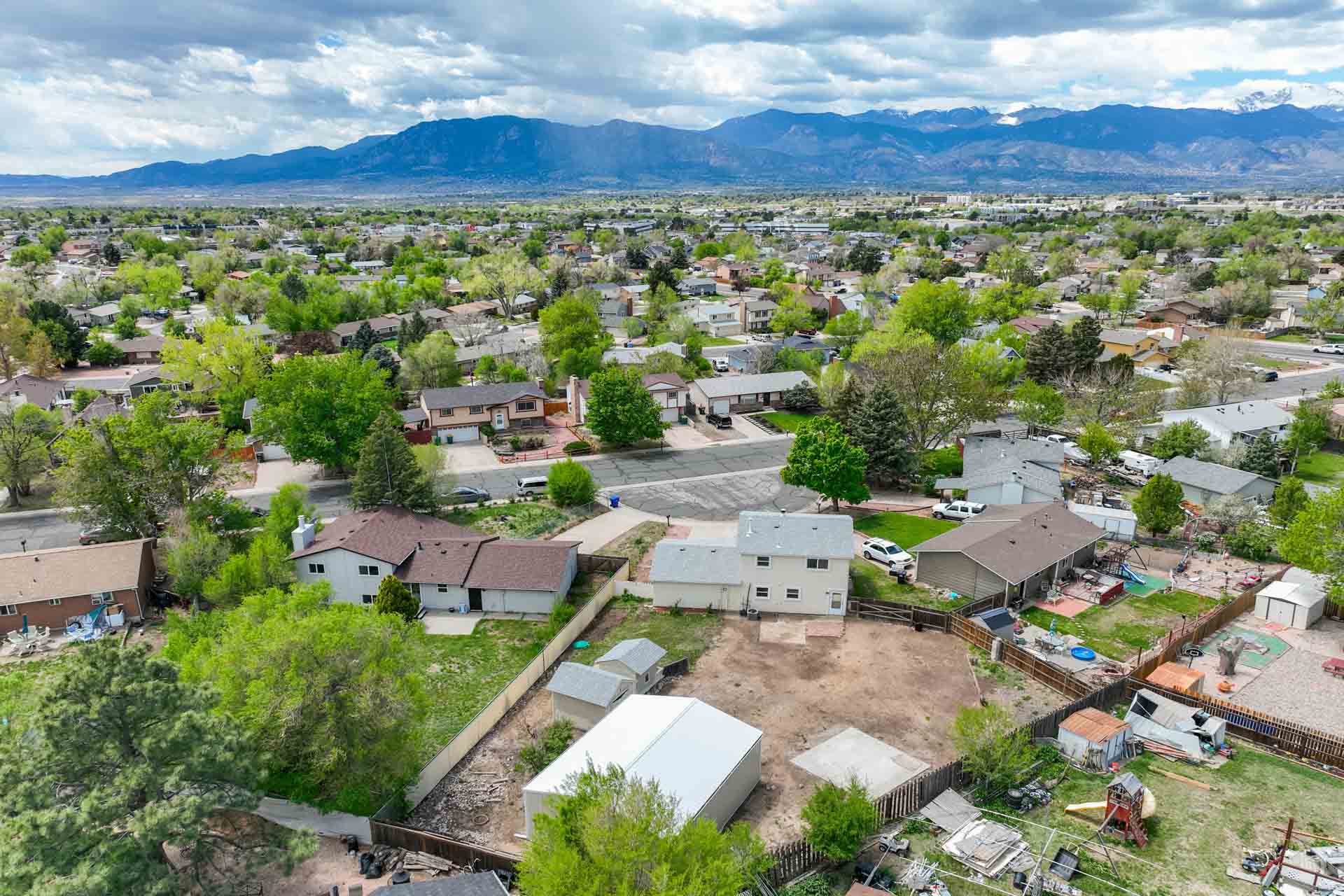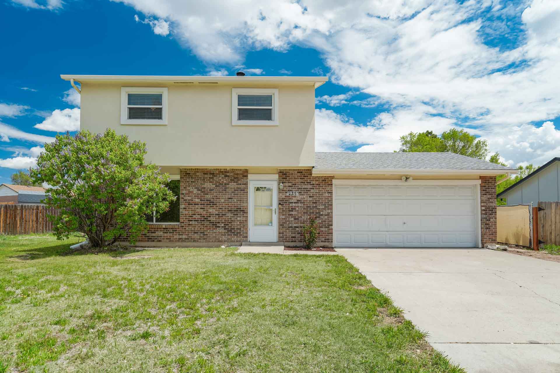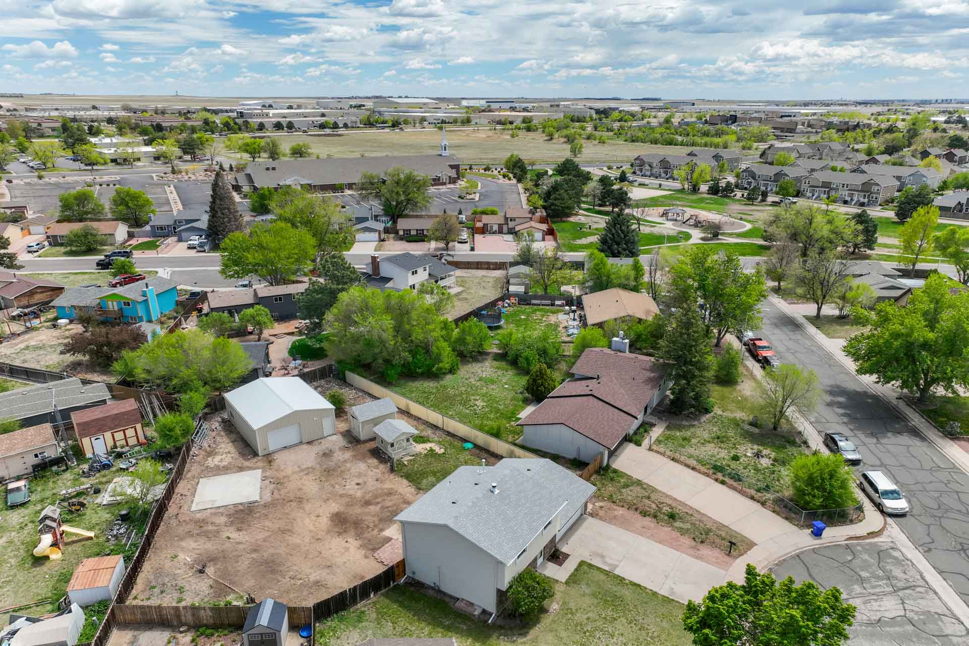 Huge backyard on this 10,000 sq.ft. lot with a drive-through side gate. Great for a car enthusiast, featuring a 2-Car Attached Garage (23x19.5 ft) with garage door opener and access door to backyard. Plus a detached 3+ Car Garage/Shop Building (29.5x23.5 ft.) built in 2018, insulated and includes 220 electric service. Upgraded low-maintenance stucco siding (NEW 2021) and upgraded electrical panel (2018). Fresh interior paint (2024). New carpet on stairs and new interior doors/doorknobs on bedrooms/baths (2024). Wood laminate flooring throughout most of the home. Eat-in Kitchen includes a stainless steel refrigerator, gas range/oven, dishwasher, ceiling fan with lights, wood laminate flooring and an eating nook area, plus door to backyard. The nicely-sized sunken Living Room features a wood-burning stove, wood laminate flooring, faux wood blinds and a large window looking out at the beautiful lilac tree in the front yard. The Powder Room/Laundry Room is light and bright with an updated vanity with composite countertop, a built-in medicine cabinet, and the washer and dryer are included. Upstairs are three bedrooms with laminate flooring and ceiling fans, and a 3/4 Bath featuring a double vanity with updated countertop, walk-in shower with upgraded shower insert and specialized sprayer system, tile flooring and linen shelves behind door. Mountain views from bedrooms 2 and 3! Nice decorative touches include iron railings at the stairs and a tile deco wall in the main level bath. Central Air Conditioning. Great potential for outdoor entertaining with 16x10 concrete and pavestone patio, plus separate 16x16 concrete pad, ideal for future above-ground swimming pool or basketball hoop, etc. Plus exterior gas hookup for grill. Additional features include a Ring doorbell, storage shed, playhouse, and tons of space for gardening and more! Located in a cul-de-sac on a low-traffic street, just one block from Penstemon Park with playground. Great property!