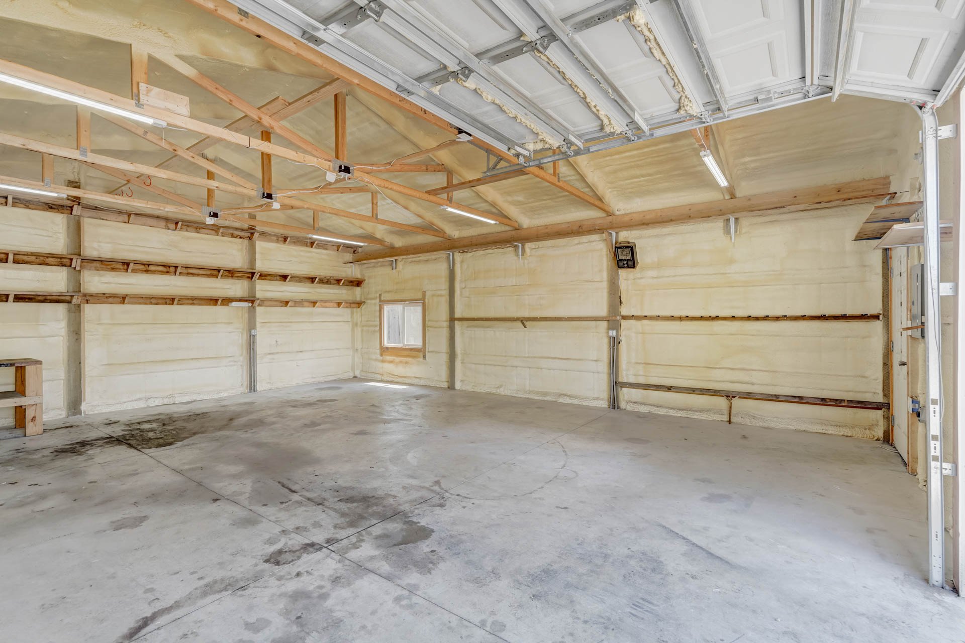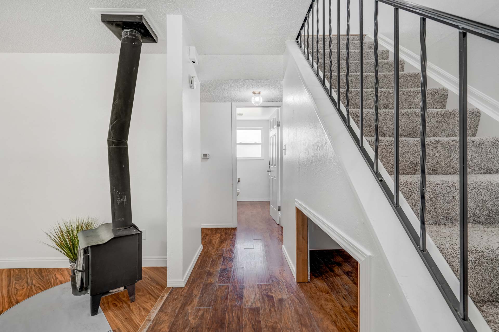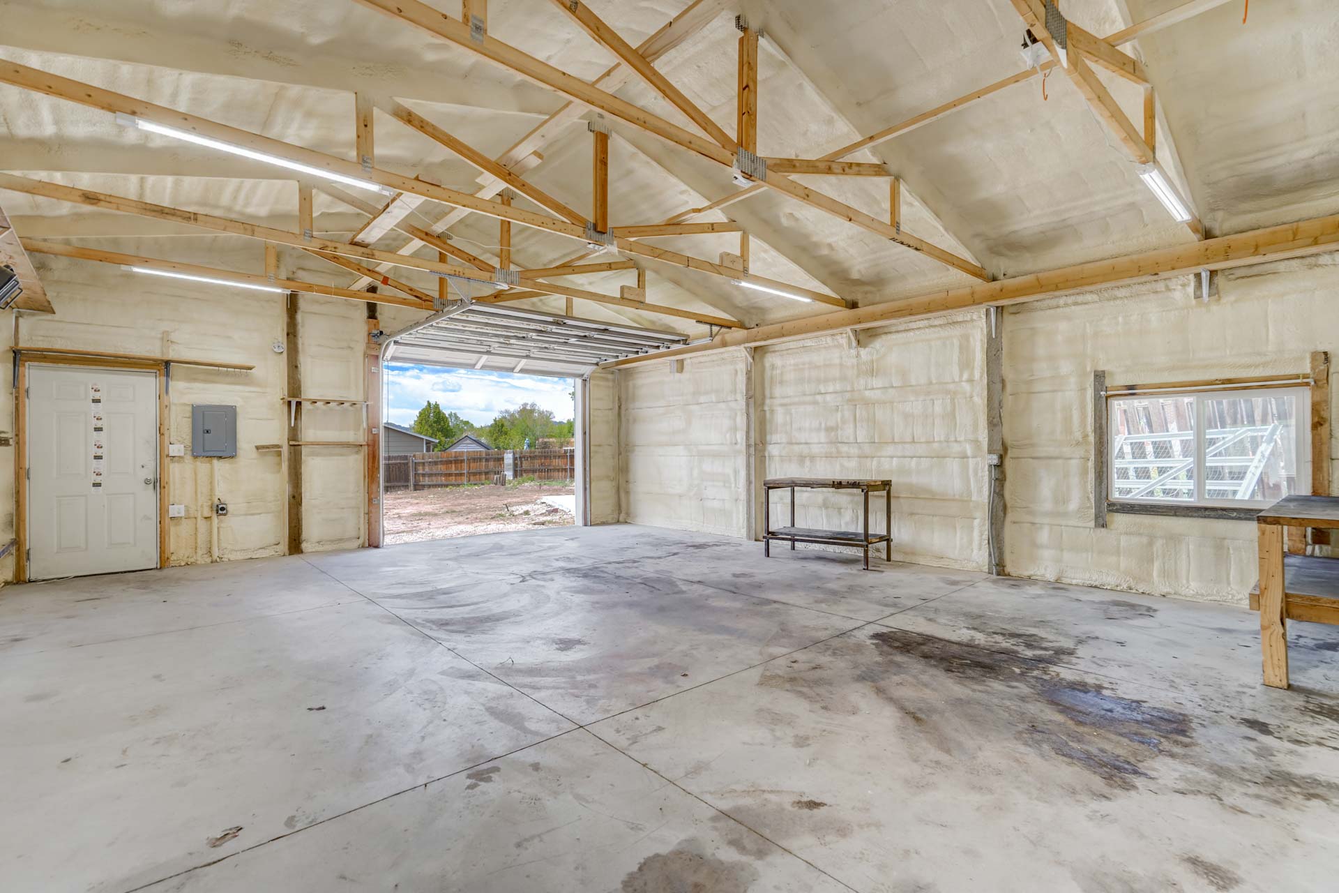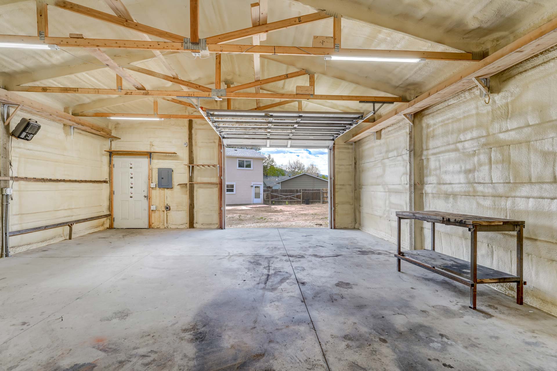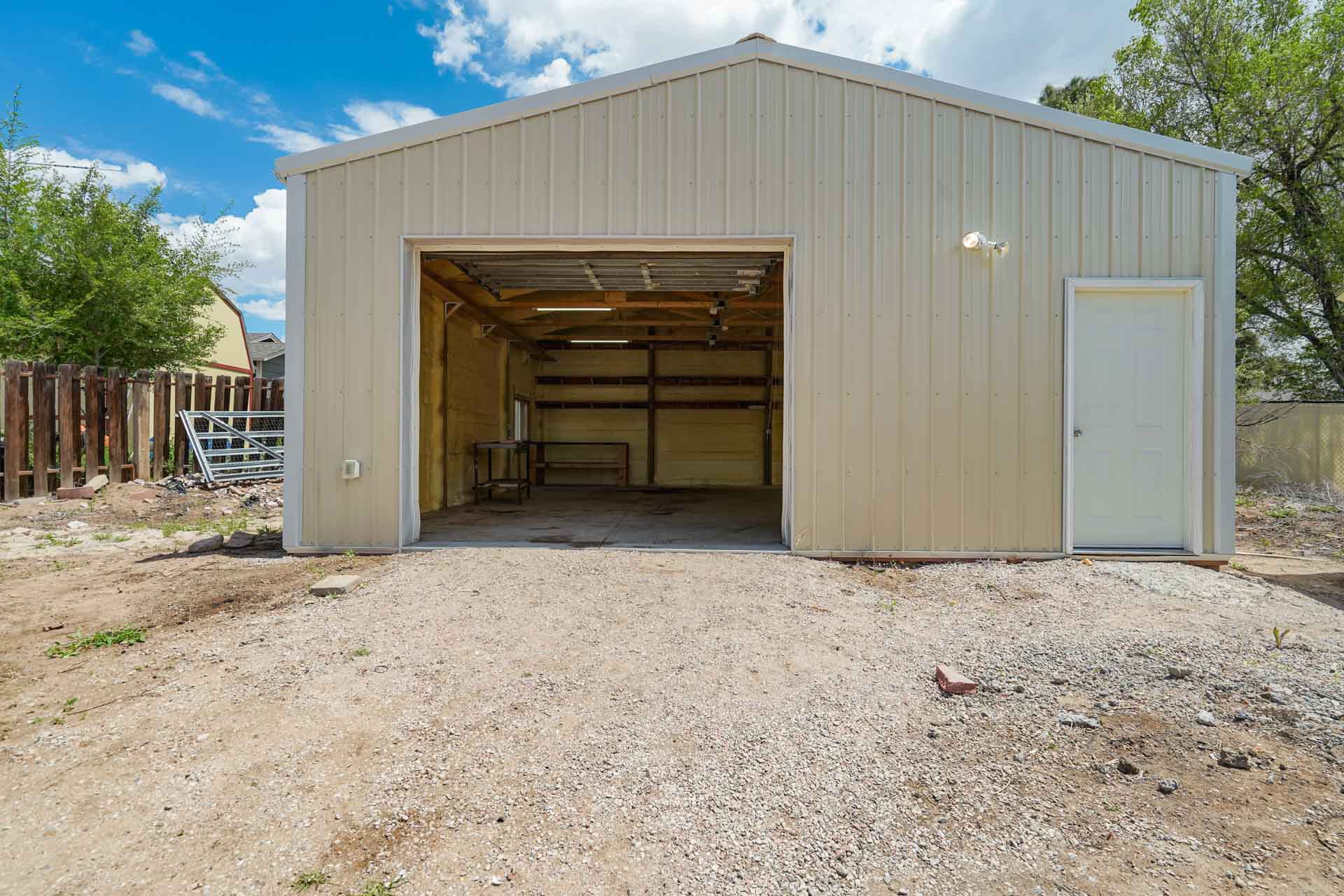 Huge backyard on this 10,000 sq.ft. lot with a drive-through side gate. Great for a car enthusiast, featuring a 2-Car Attached Garage (23x19.5 ft) with garage door opener and access door to backyard. Plus a detached 3+ Car Garage/Shop Building (29.5x23.5 ft.) built in 2018, insulated and includes 220 electric service. Upgraded low-maintenance stucco siding (NEW 2021) and upgraded electrical panel (2018). Fresh interior paint (2024). New carpet on stairs and new interior doors/doorknobs on bedrooms/baths (2024). Wood laminate flooring throughout most of the home. Eat-in Kitchen includes a stainless steel refrigerator, gas range/oven, dishwasher, ceiling fan with lights, wood laminate flooring and an eating nook area, plus door to backyard. The nicely-sized sunken Living Room features a wood-burning stove, wood laminate flooring, faux wood blinds and a large window looking out at the beautiful lilac tree in the front yard. The Powder Room/Laundry Room is light and bright with an updated vanity with composite countertop, a built-in medicine cabinet, and the washer and dryer are included. Upstairs are three bedrooms with laminate flooring and ceiling fans, and a 3/4 Bath featuring a double vanity with updated countertop, walk-in shower with upgraded shower insert and specialized sprayer system, tile flooring and linen shelves behind door. Mountain views from bedrooms 2 and 3! Nice decorative touches include iron railings at the stairs and a tile deco wall in the main level bath. Central Air Conditioning. Great potential for outdoor entertaining with 16x10 concrete and pavestone patio, plus separate 16x16 concrete pad, ideal for future above-ground swimming pool or basketball hoop, etc. Plus exterior gas hookup for grill. Additional features include a Ring doorbell, storage shed, playhouse, and tons of space for gardening and more! Located in a cul-de-sac on a low-traffic street, just one block from Penstemon Park with playground. Great property!
