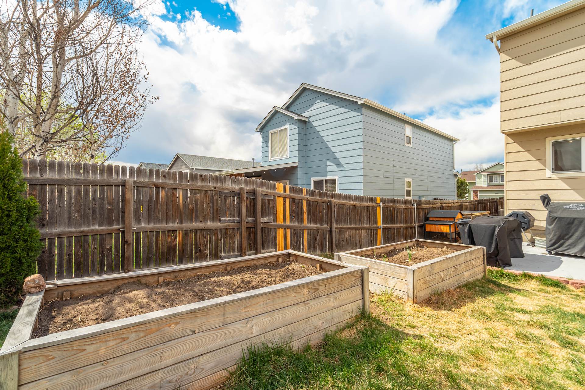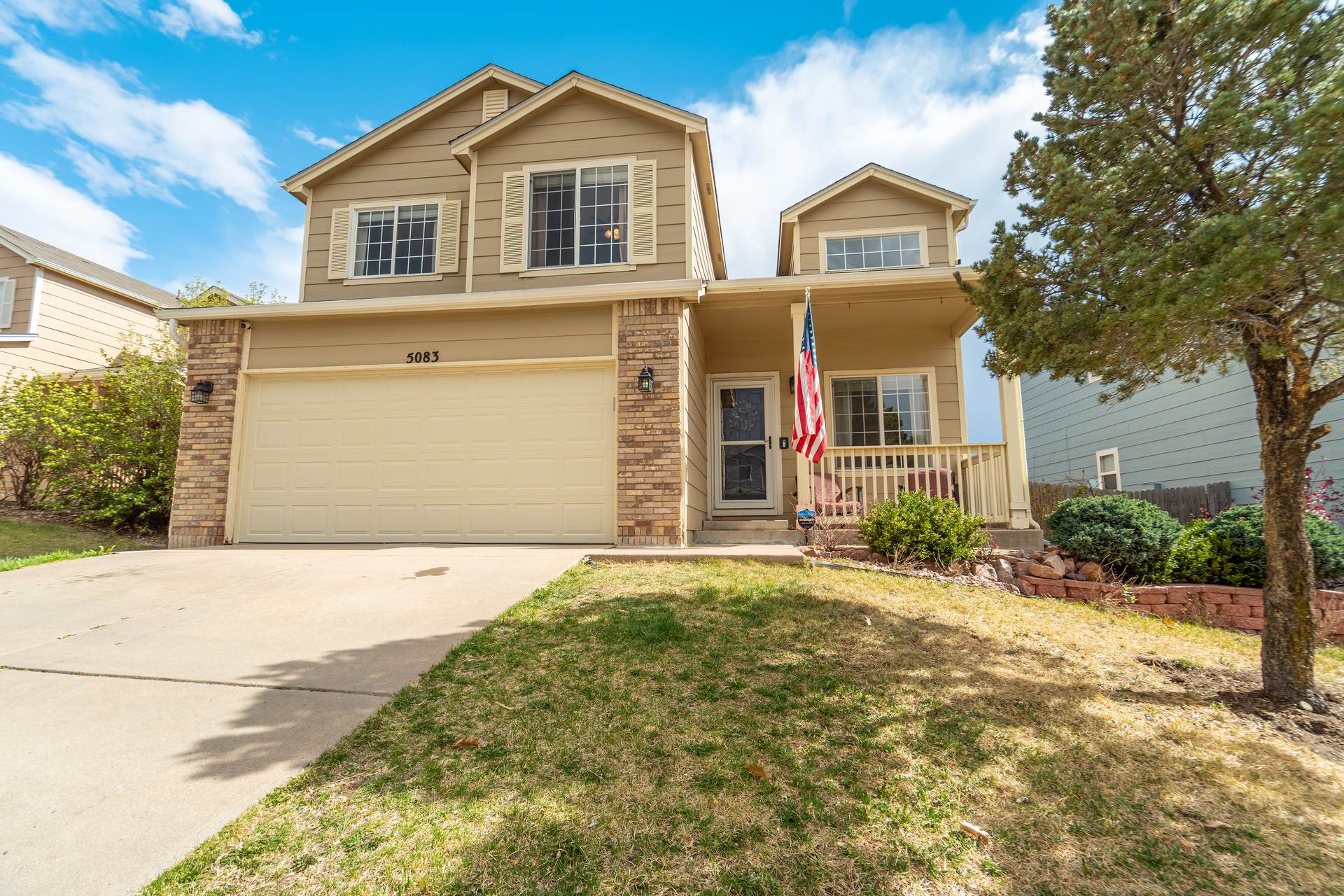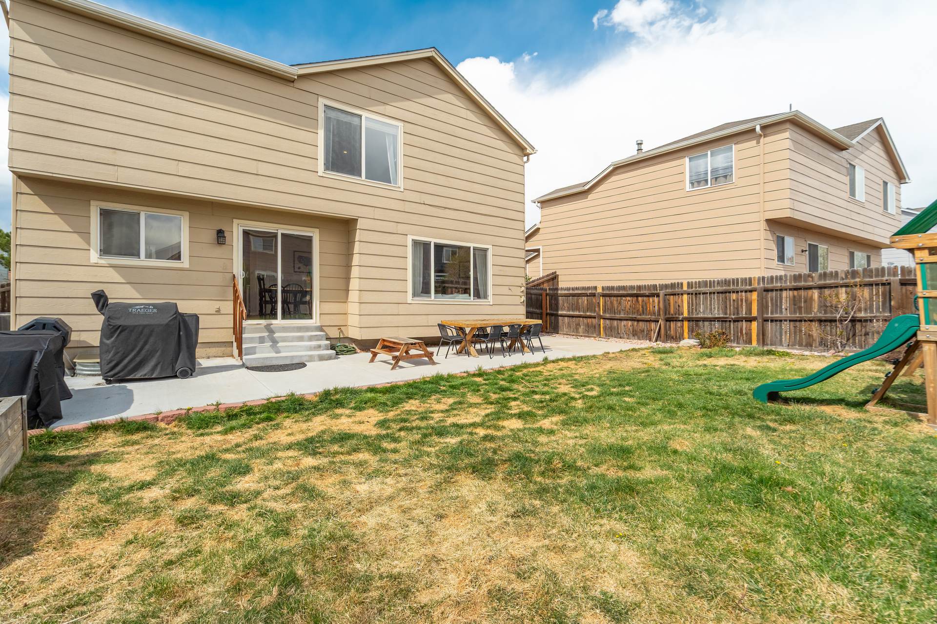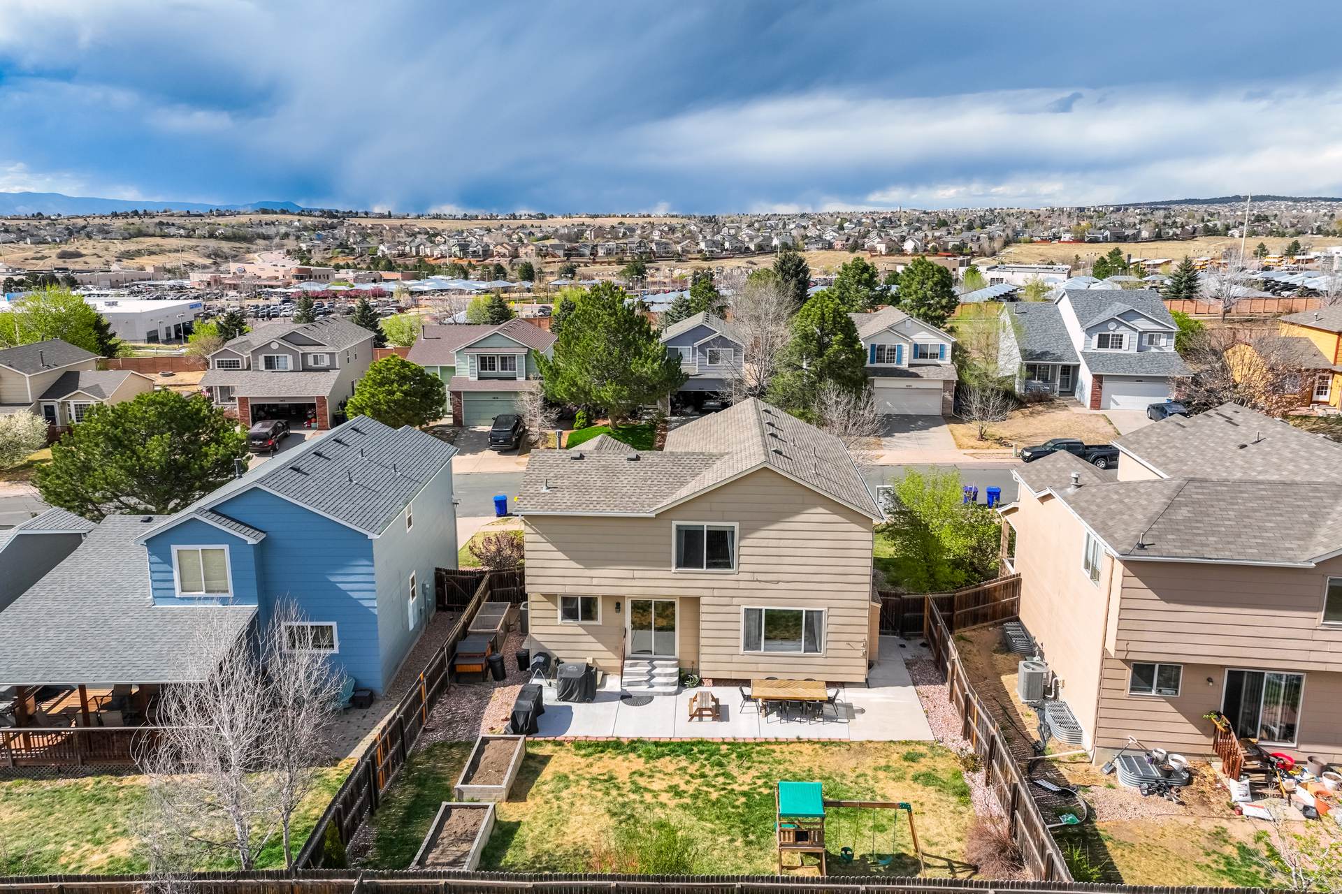 Welcome to this spacious 4-bedroom, 4-bathroom two-story home located in the desirable Wagon Trails community! From the inviting front porch to the bright, open interior, this home offers comfort, functionality, and room to grow. Step inside to a welcoming living room filled with natural light and soaring vaulted ceilings. The kitchen is thoughtfully designed for both everyday living and entertaining, featuring freshly painted cabinets, quartz countertops, a subway tile backsplash, stainless steel appliances with a gas range, an island, and a pantry. The kitchen flows seamlessly into the dining area, which provides walkout access to a large concrete patio and fully fenced backyard—perfect for outdoor gatherings. The backyard also includes raised garden beds, ideal for gardening enthusiasts. Just off the dining area, a spacious family room offers additional living space, while a nearby half bath, laundry room with new washer and dryer, and access to the attached 2-car garage add everyday convenience. Upstairs, the generous primary suite serves as a private retreat, complete with a sitting area, walk-in closet, and en suite bathroom featuring a dual vanity, soaking tub, and separate shower. Two additional bedrooms complete the upper level. The finished basement expands your living space with a second family or recreation room, a fourth bedroom, a ¾ bathroom, and additional storage. Enjoy peace of mind with a NEW Class 4 roof, a new garage door, and most interior doors recently replaced. Wagon Trails offers fantastic community amenities, including a neighborhood pool, parks, basketball courts, and tennis courts—perfect for enjoying Colorado living year-round.
