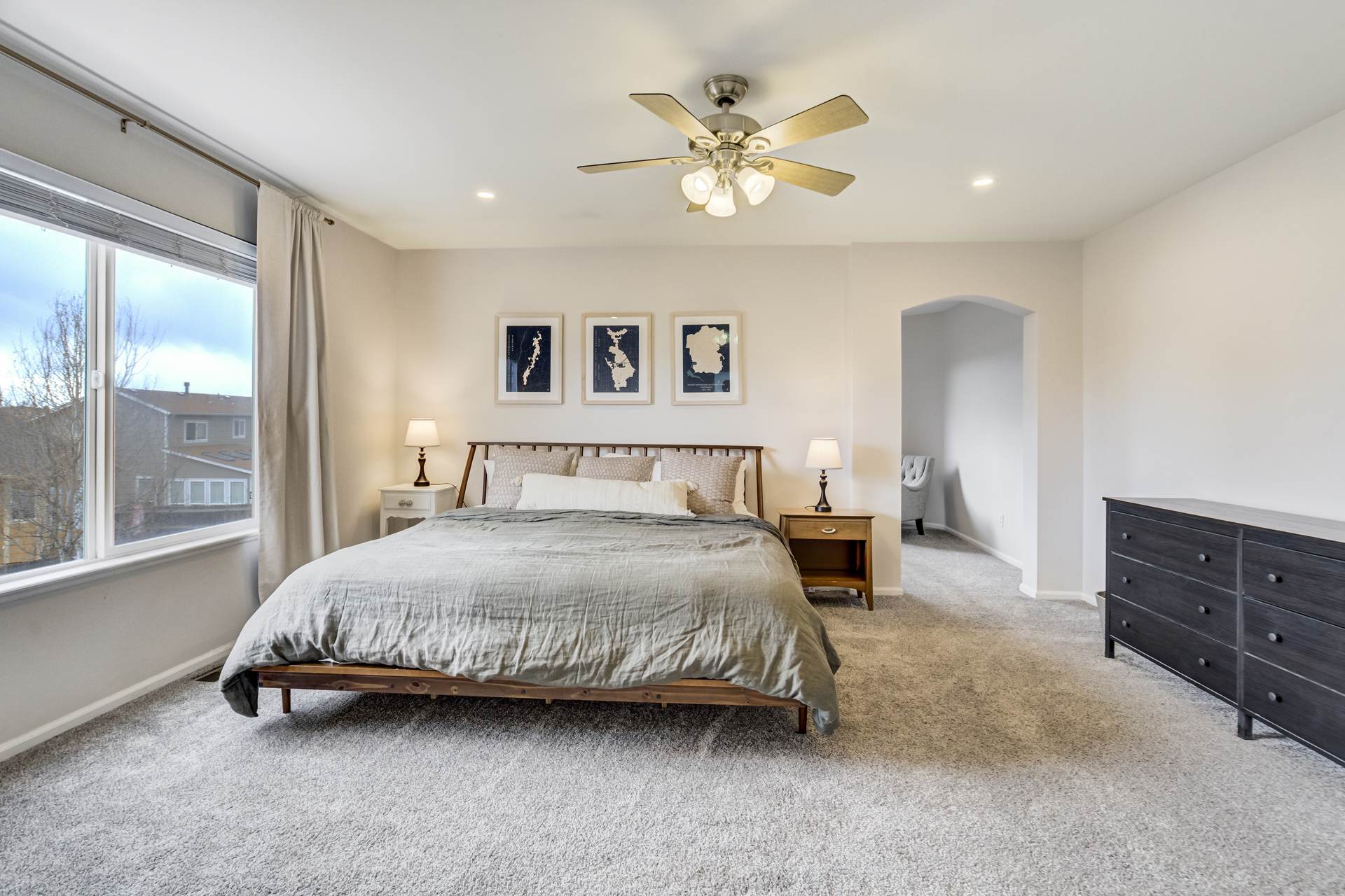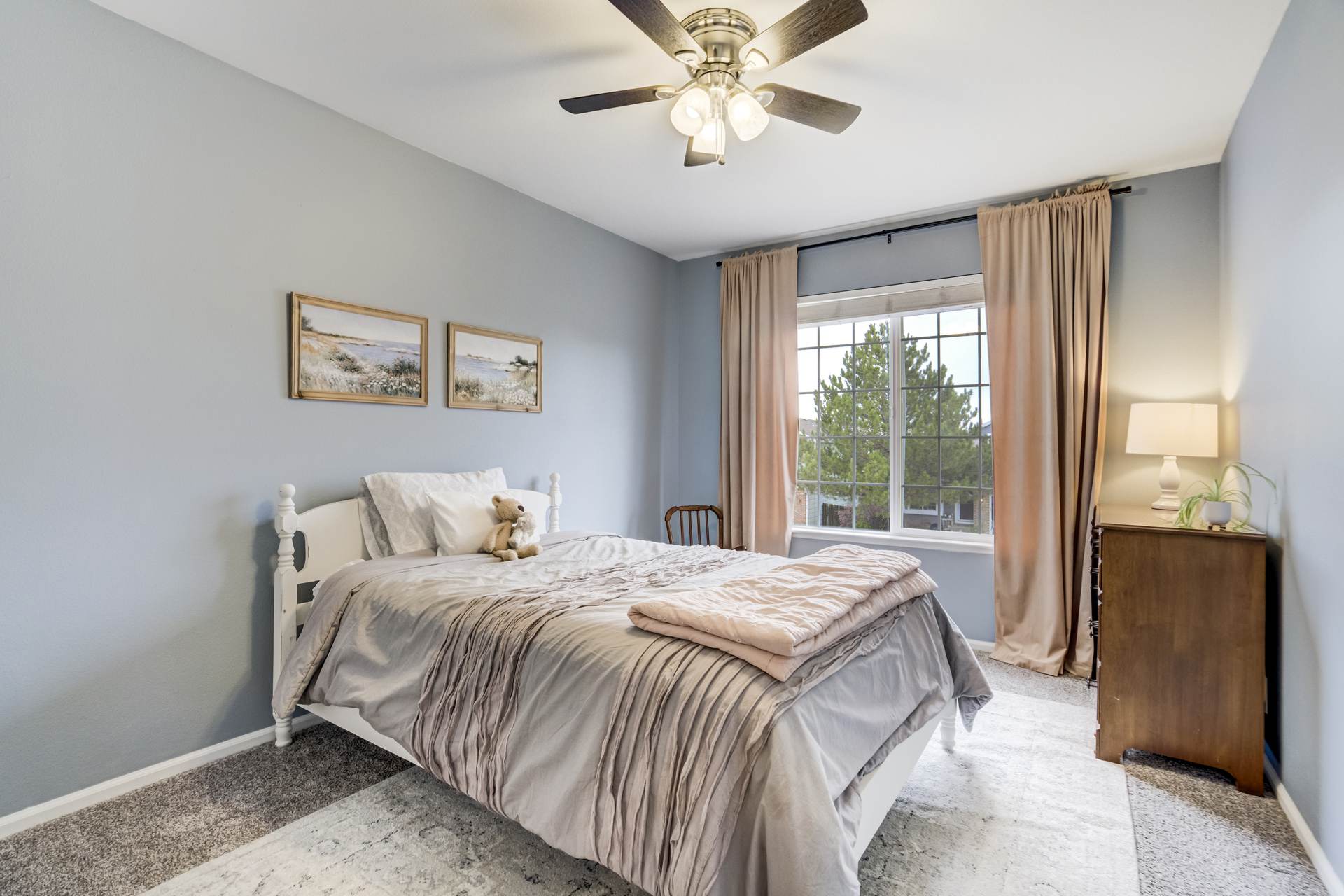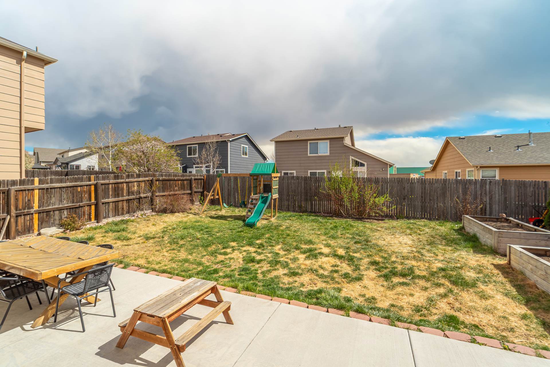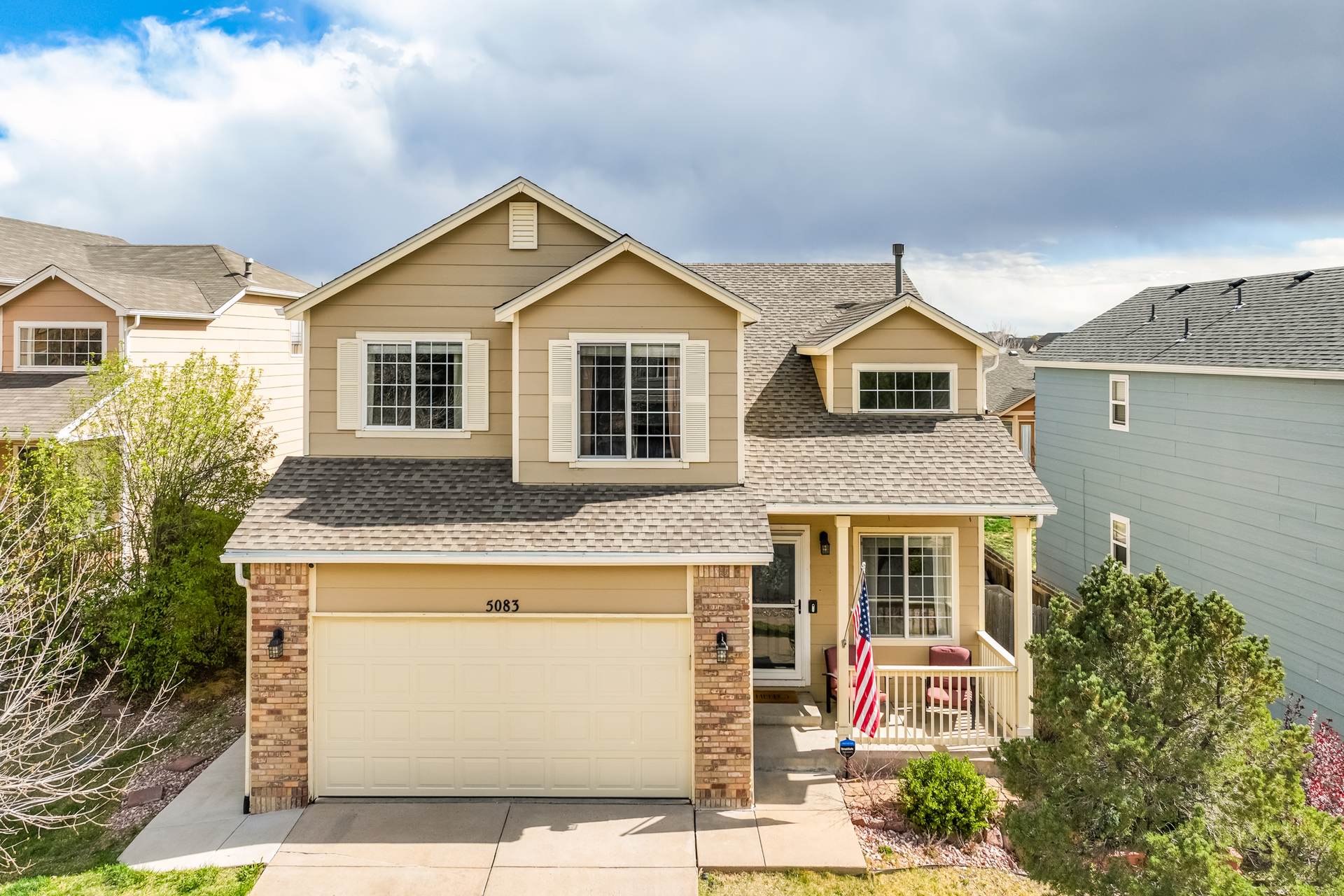 Welcome to this spacious 4-bedroom, 4-bathroom two-story home located in the desirable Wagon Trails community! From the inviting front porch to the bright, open interior, this home offers comfort, functionality, and room to grow. Step inside to a welcoming living room filled with natural light and soaring vaulted ceilings. The kitchen is thoughtfully designed for both everyday living and entertaining, featuring freshly painted cabinets, quartz countertops, a subway tile backsplash, stainless steel appliances with a gas range, an island, and a pantry. The kitchen flows seamlessly into the dining area, which provides walkout access to a large concrete patio and fully fenced backyard—perfect for outdoor gatherings. The backyard also includes raised garden beds, ideal for gardening enthusiasts. Just off the dining area, a spacious family room offers additional living space, while a nearby half bath, laundry room with new washer and dryer, and access to the attached 2-car garage add everyday convenience. Upstairs, the generous primary suite serves as a private retreat, complete with a sitting area, walk-in closet, and en suite bathroom featuring a dual vanity, soaking tub, and separate shower. Two additional bedrooms complete the upper level. The finished basement expands your living space with a second family or recreation room, a fourth bedroom, a ¾ bathroom, and additional storage. Enjoy peace of mind with a NEW Class 4 roof, a new garage door, and most interior doors recently replaced. Wagon Trails offers fantastic community amenities, including a neighborhood pool, parks, basketball courts, and tennis courts—perfect for enjoying Colorado living year-round.