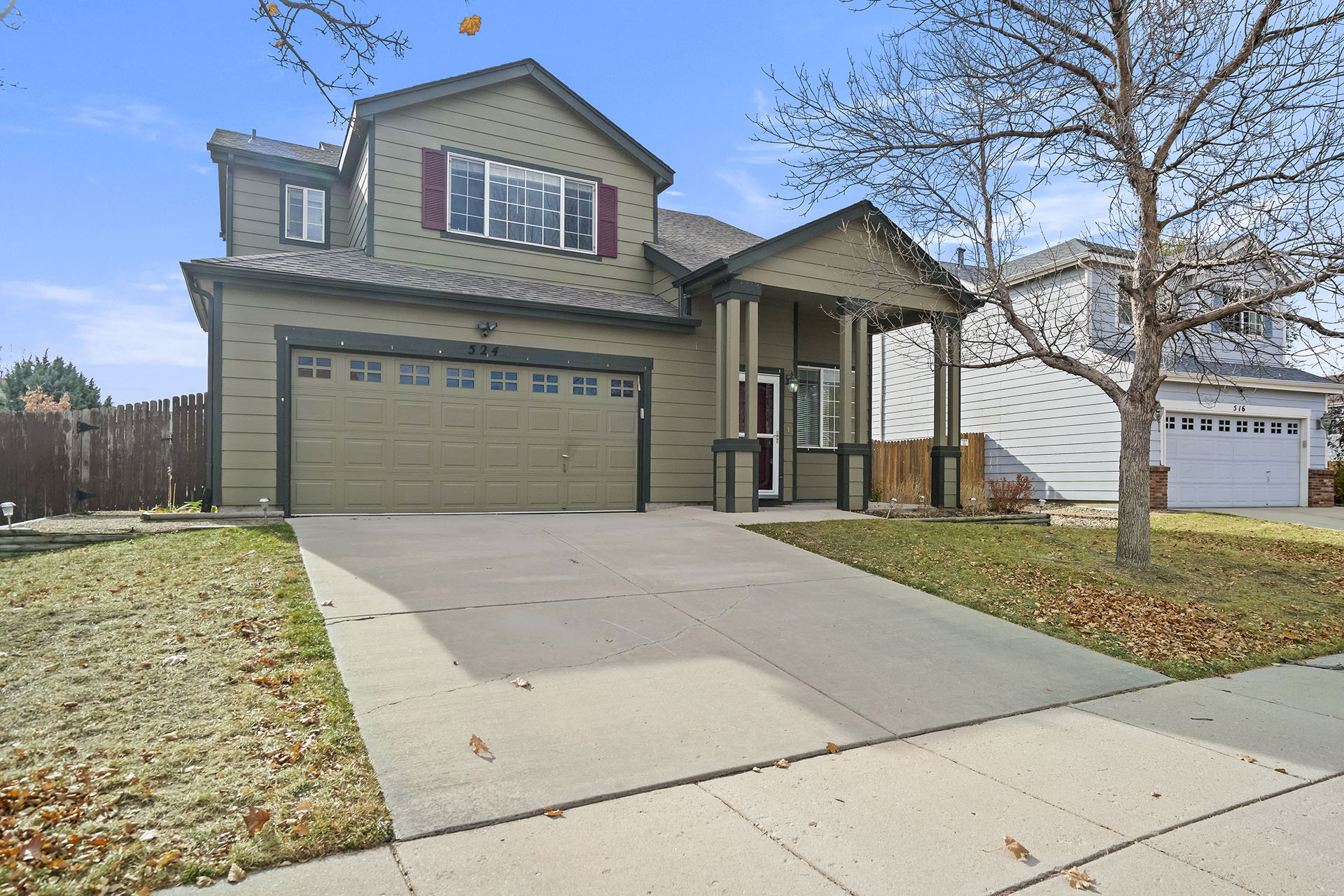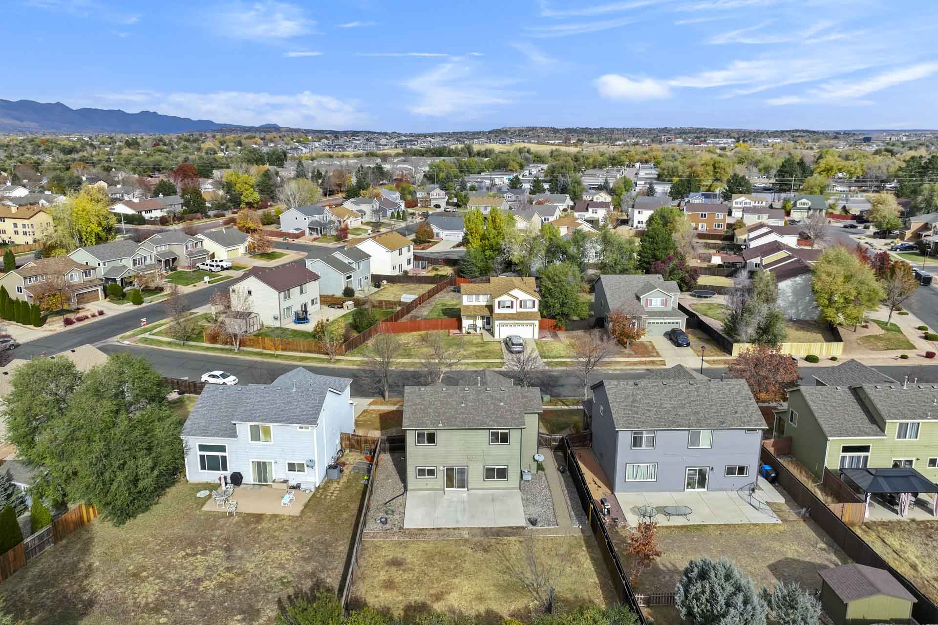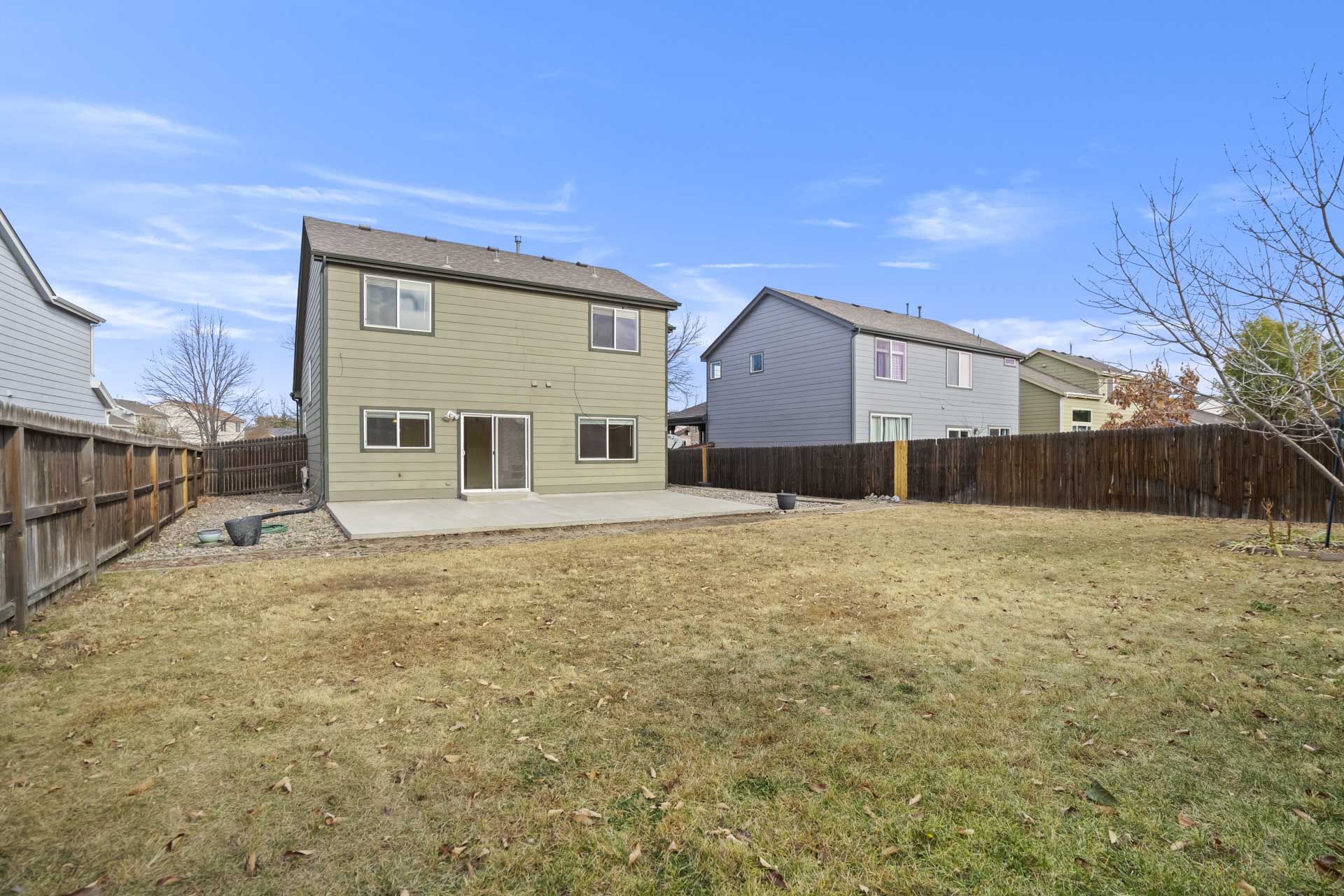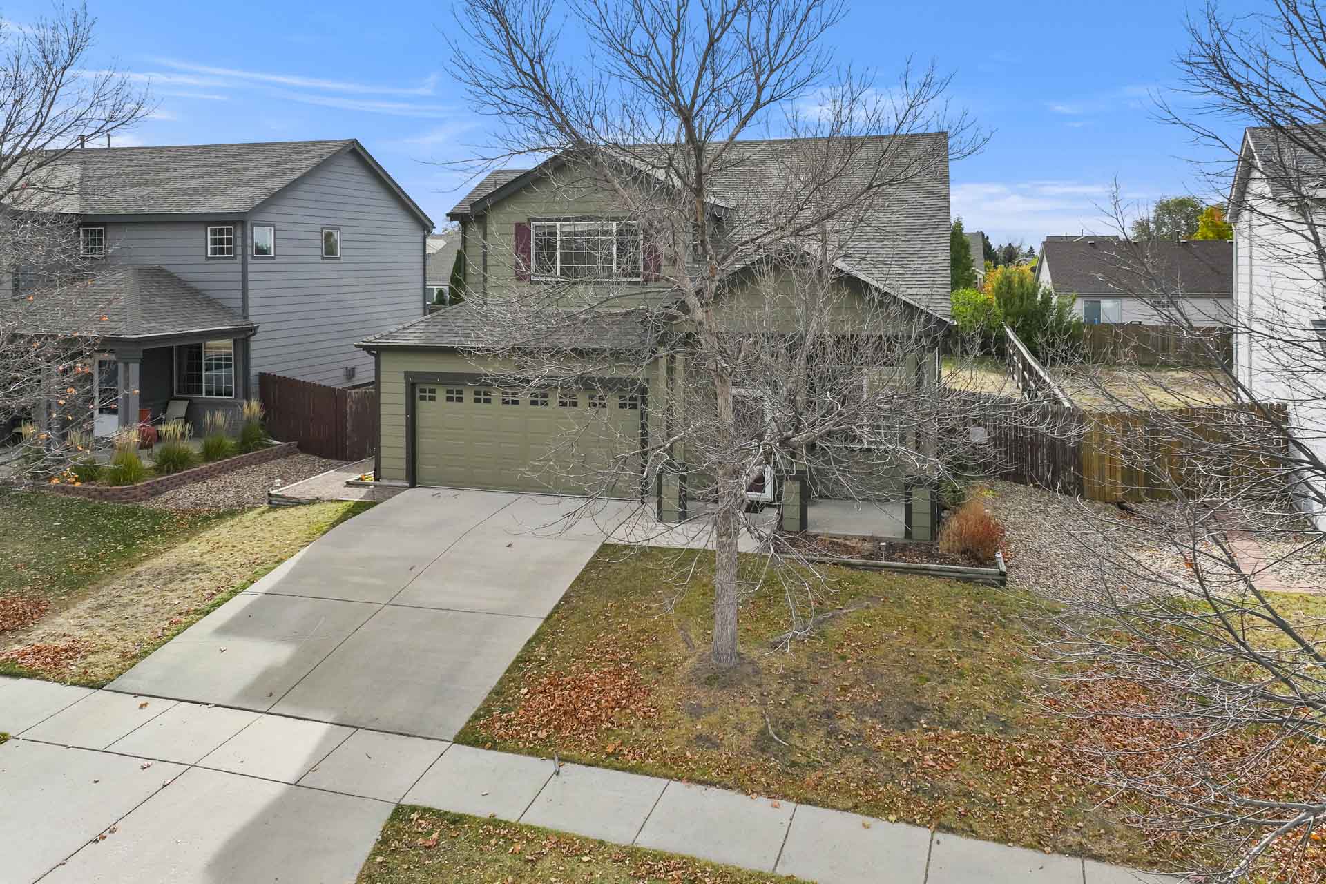 Welcome to this lovely two-story home located in the Villages at Sand Creek a vibrant sub-division in Colorado Springs! This residence is in excellent condition and boasts a beautifully landscaped, fully fenced yard creating an outdoor area perfect for relaxation and entertainment. The main level features beautiful wood laminate flooring and brand-new carpet throughout the home, enhancing the warm and inviting atmosphere throughout the living spaces. The spacious kitchen is equipped with stainless steel appliances, ample cabinetry, and generous counter space, seamlessly opening to the cozy family room, which includes built-in shelving and a charming gas fireplace. Upstairs, you’ll find three well-appointed bedrooms filled with natural light, along with two full bathrooms and a convenient laundry area. Step outside to discover an expansive backyard featuring a sprinkler system and a brand new massive concrete patio providing ideal spaces for outdoor dining and gatherings. The exterior of the home has a nice front porch enhancing its curb appeal, and additional features include central air conditioning for year-round comfort. Located in a wonderful community with easy access to parks, schools, shopping, and dining, this remarkable home combines modern amenities with a charming atmosphere, making it the perfect place to create lasting memories. Schedule your private showing today and experience the lifestyle that awaits you!